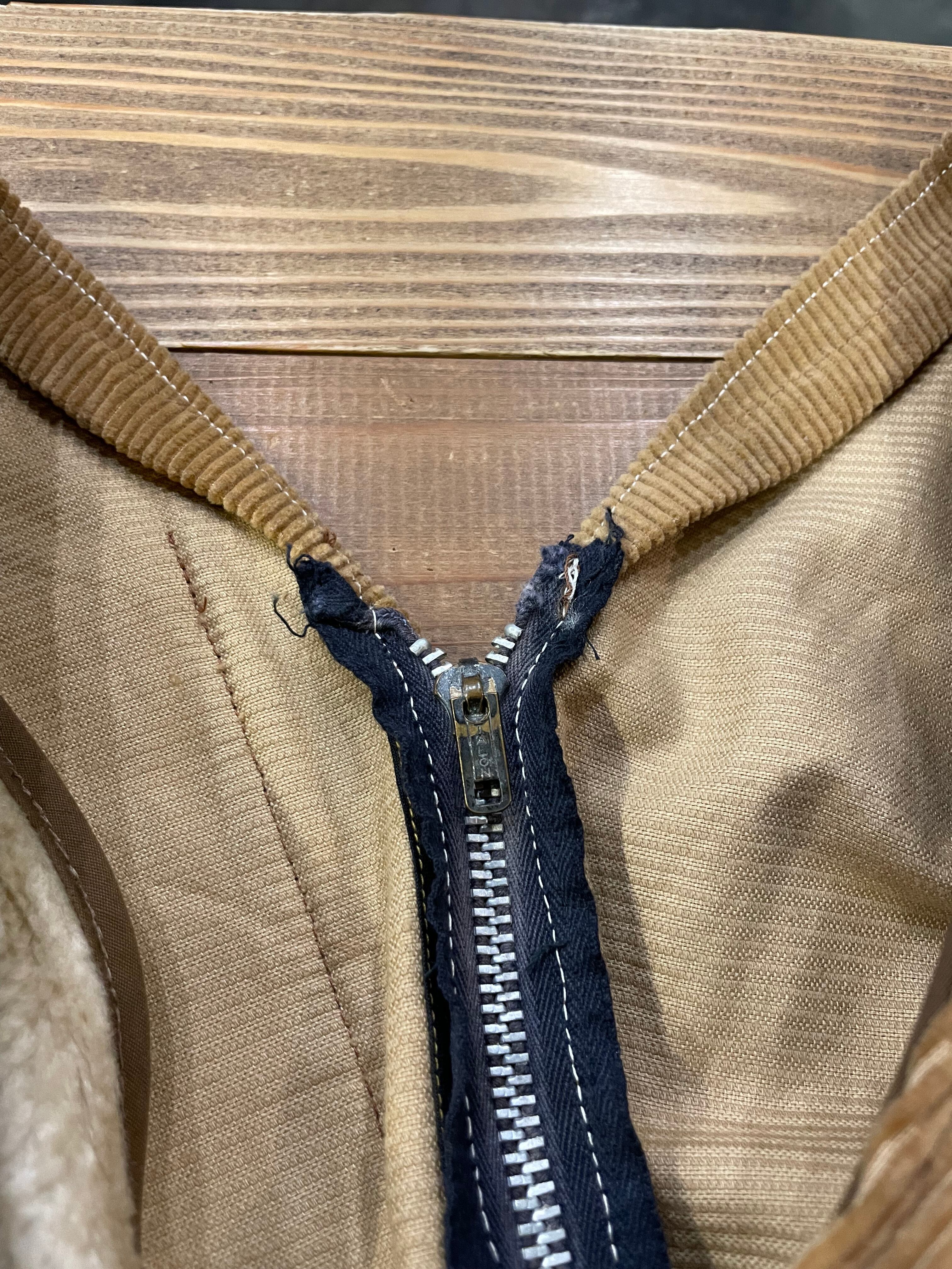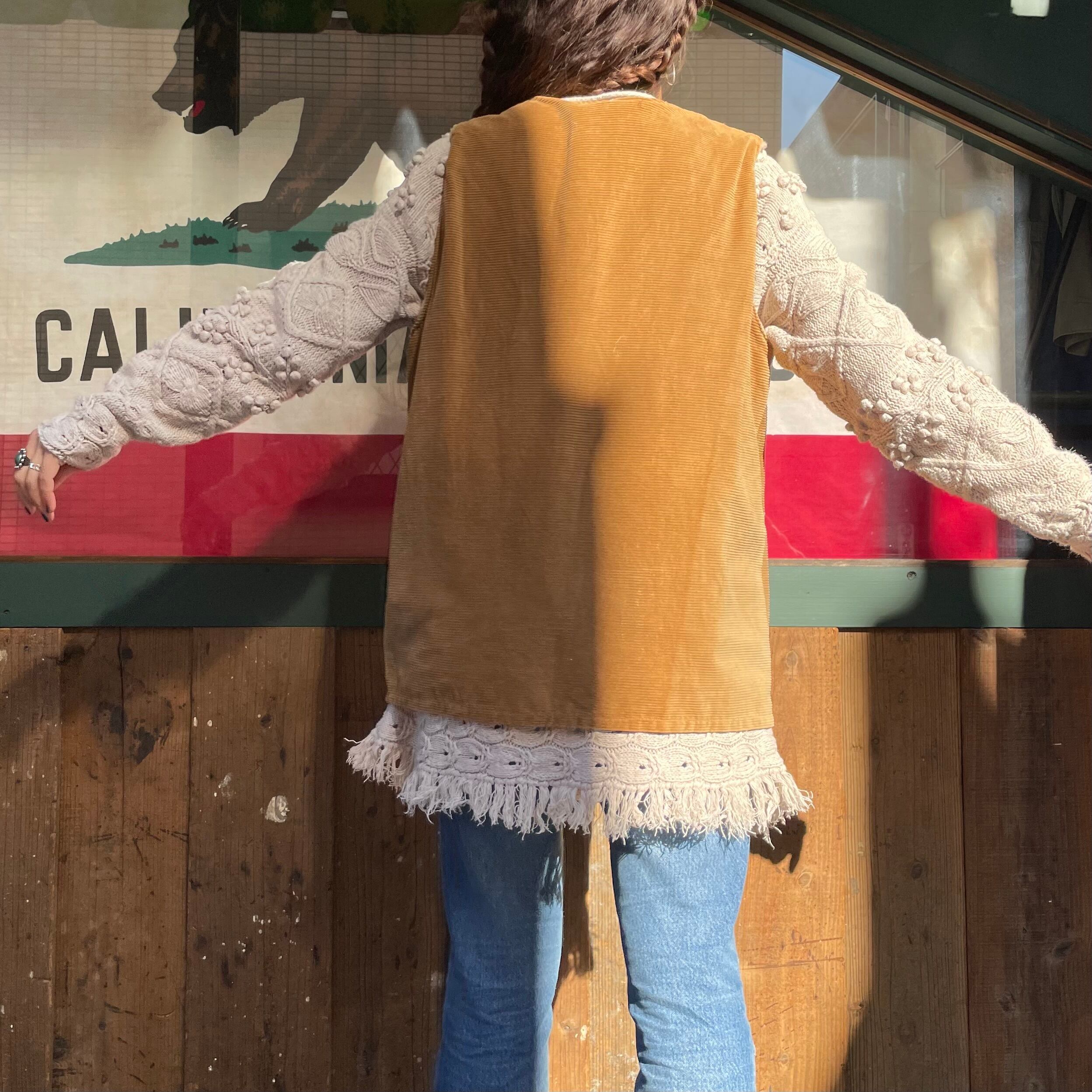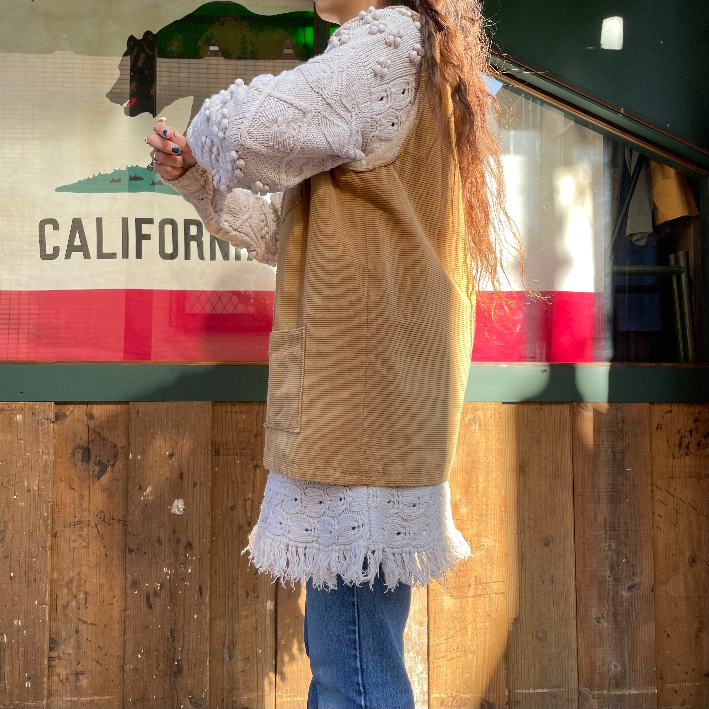 おそらくリメイクかハンドメイドのもので、コーデュロイが横地で使われていたり、裏地が足りておらずだったりしますが、身幅は大きすぎないのに丈はしっかり長めでかわいい一枚です。