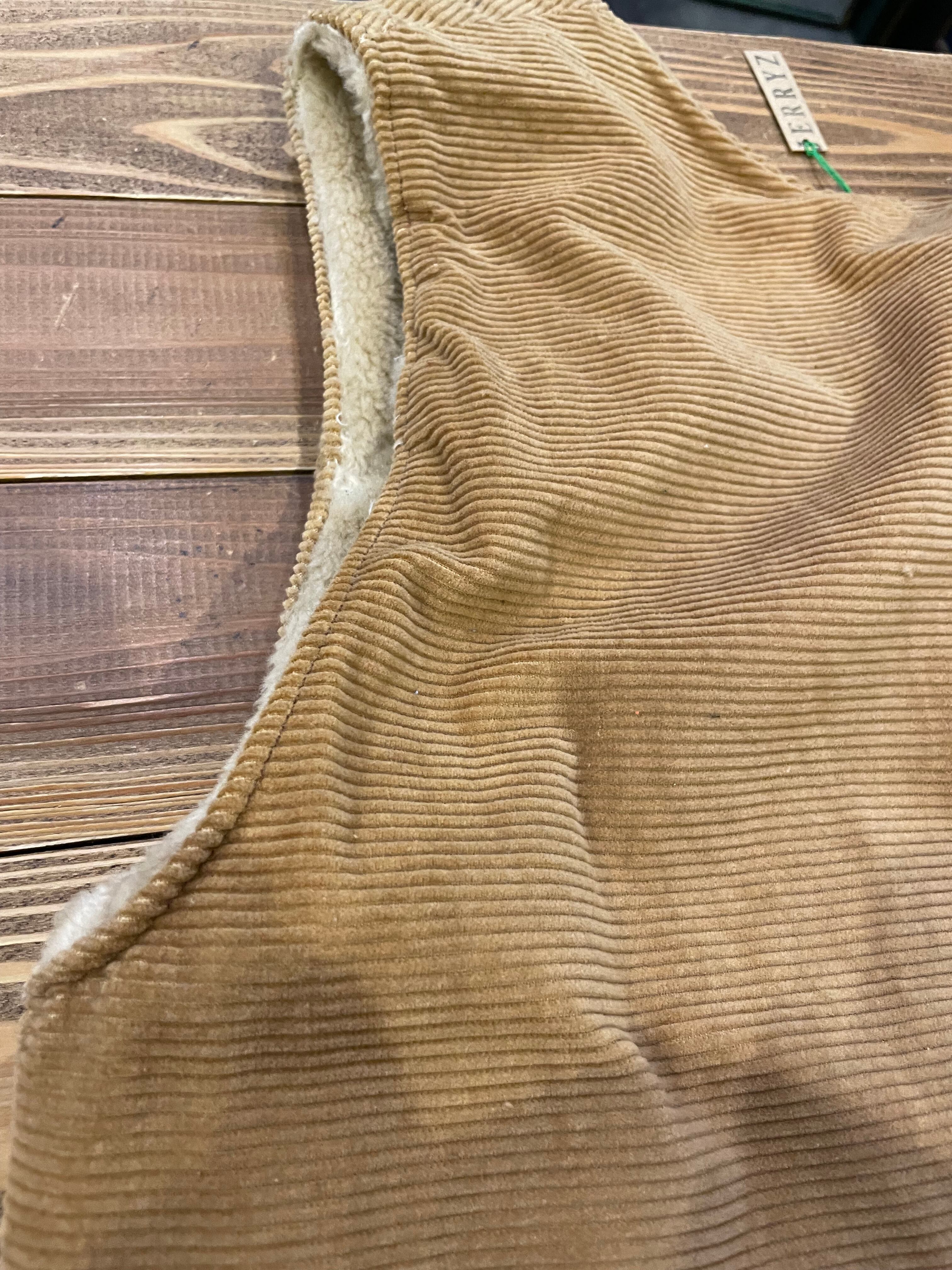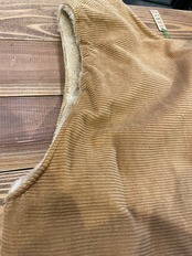 表地コーデュロイ、裏地フェイクファーのふんわりかわいい雰囲気のベストです。