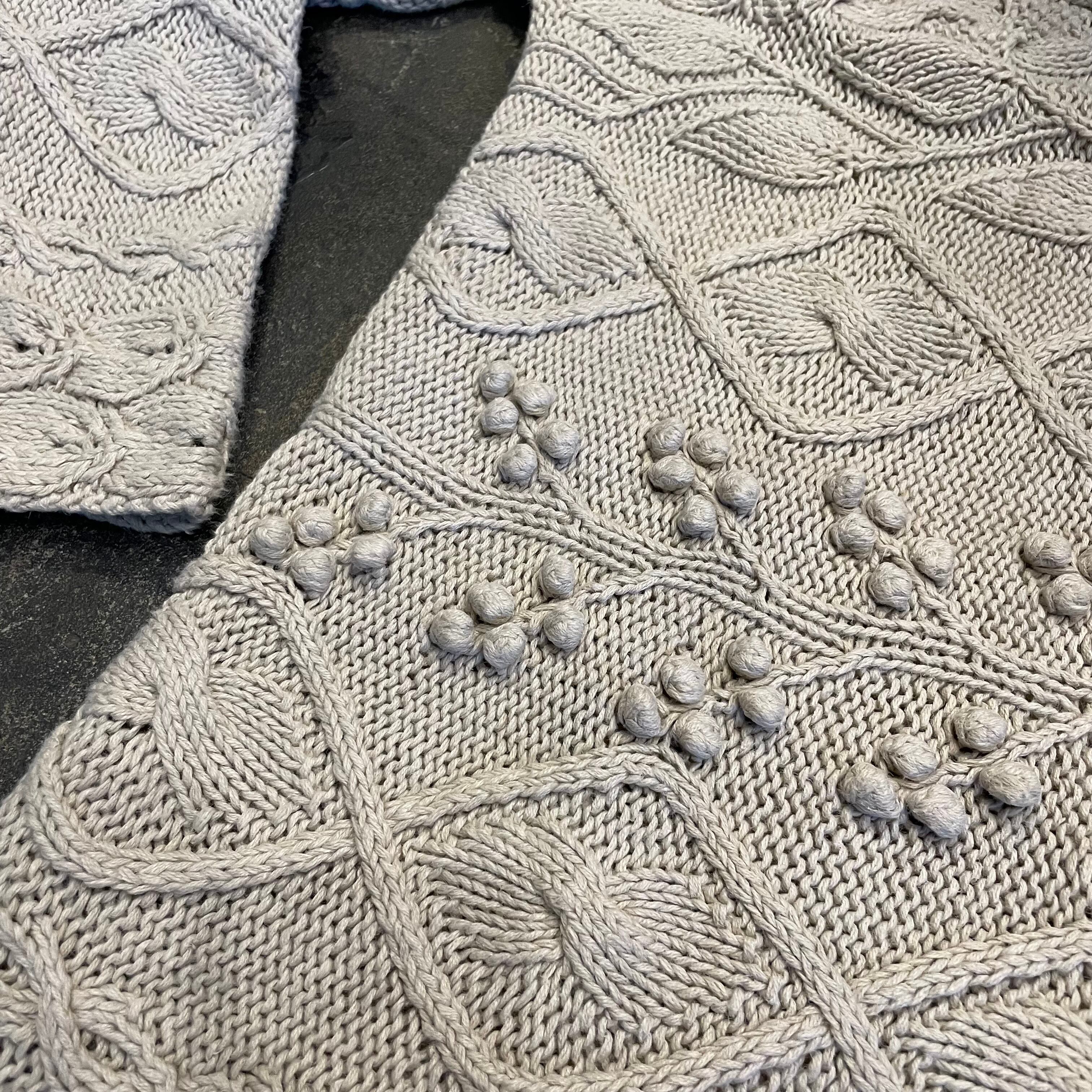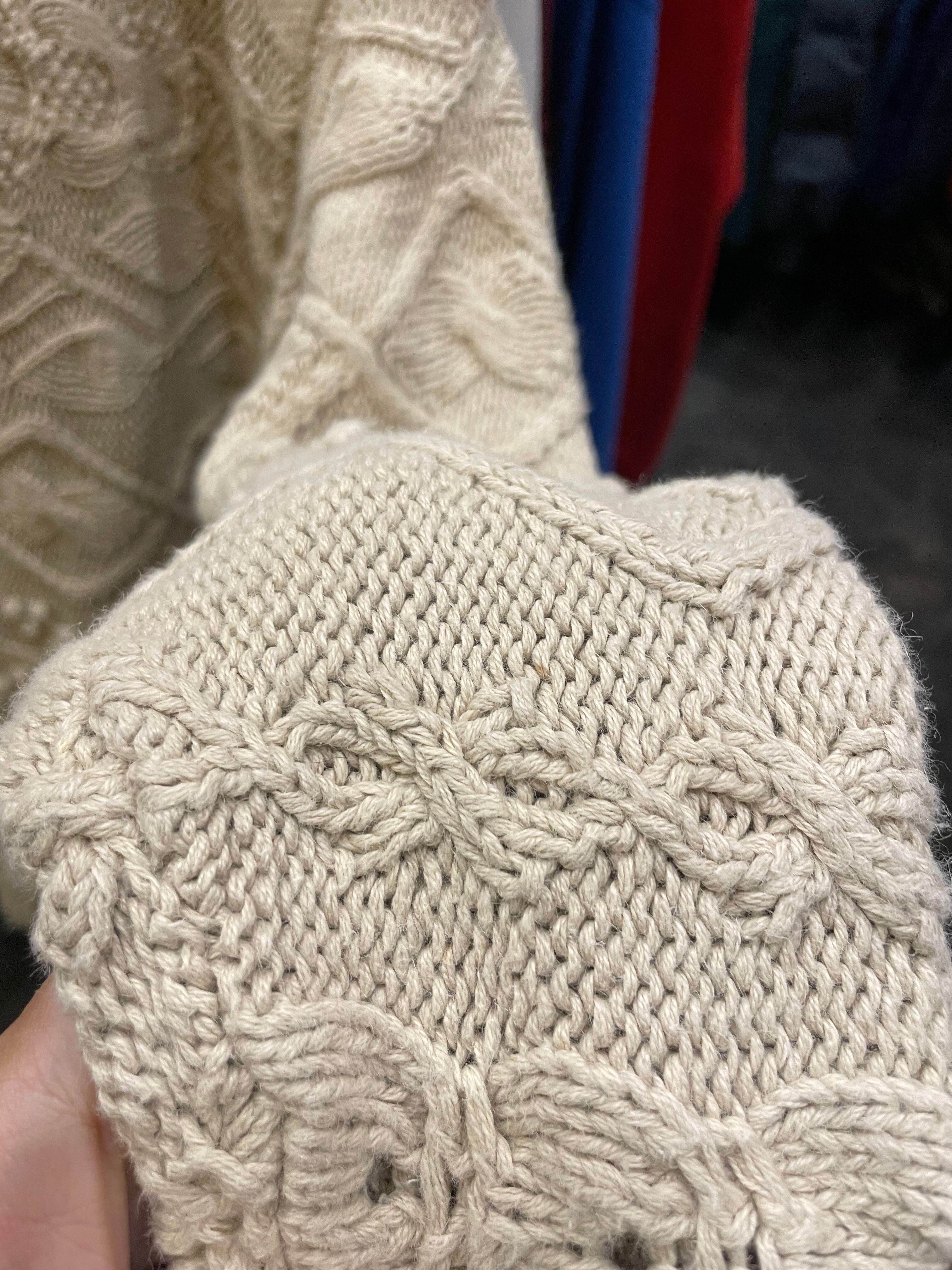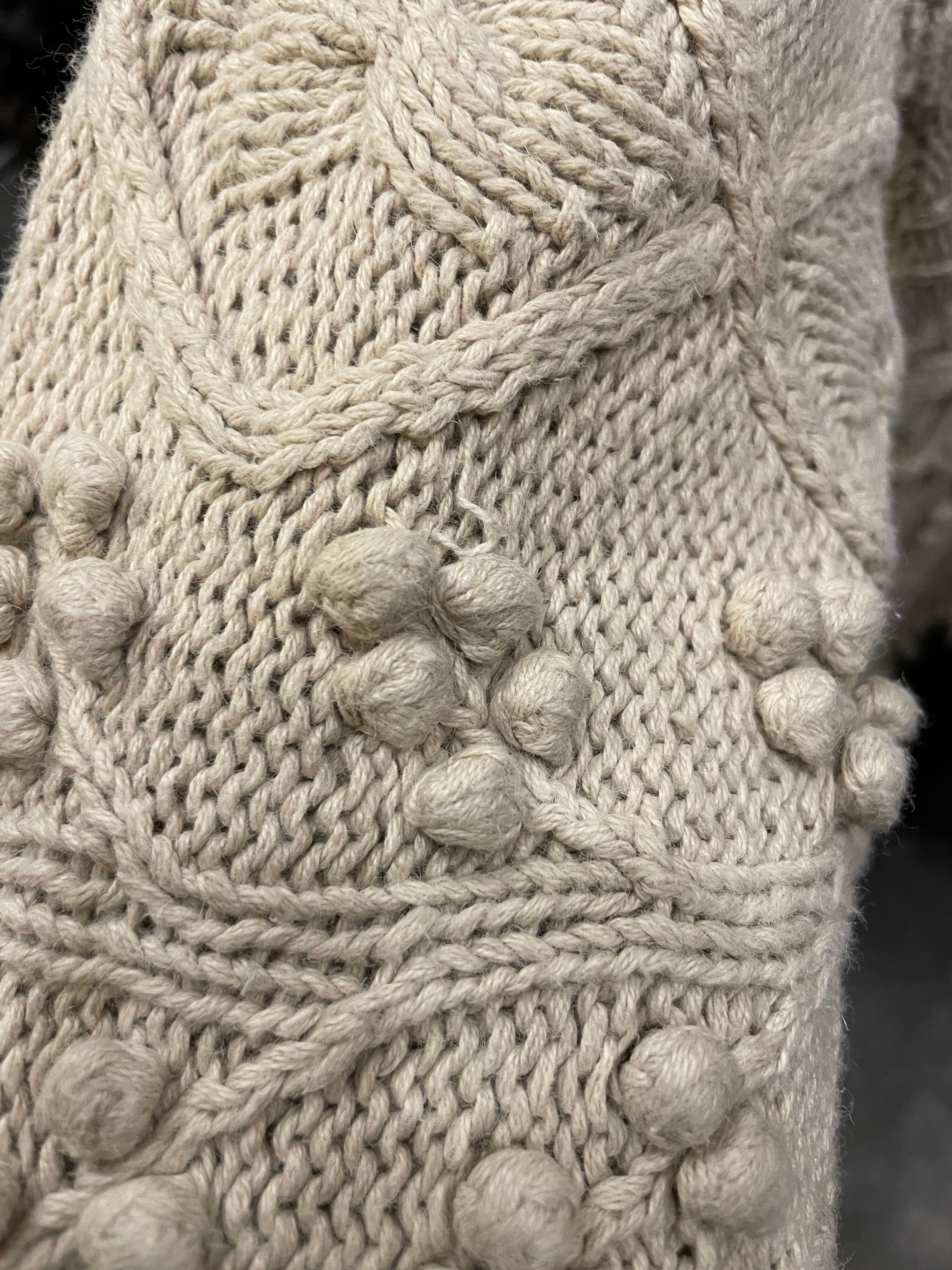 模様編みの見本帳のように、いろんな模様編みが施されていてかわいいセーターです。