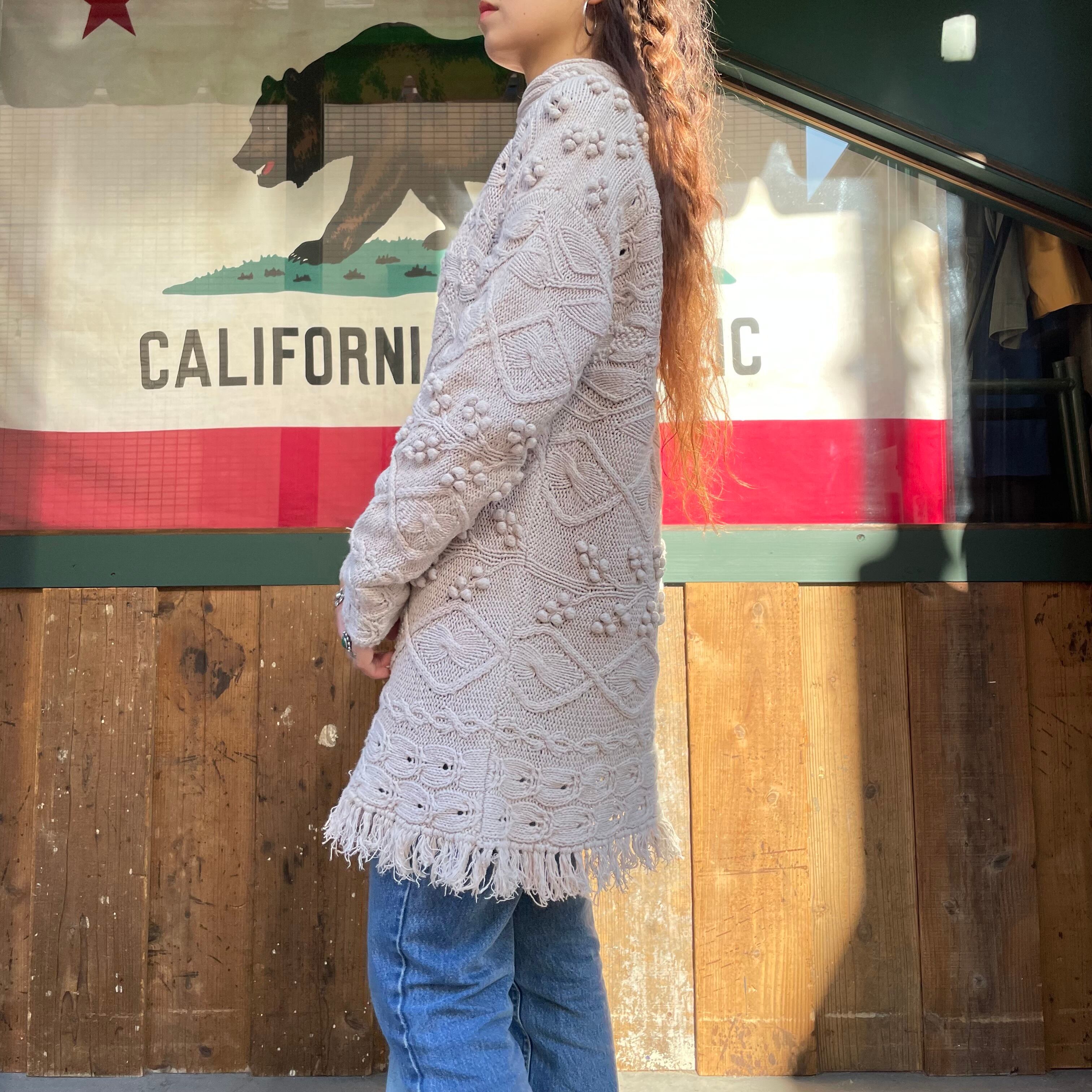マクラメのようなボヘミアンな雰囲気もあっていろんな着こなしが楽しめそうなおすすめの一着です。