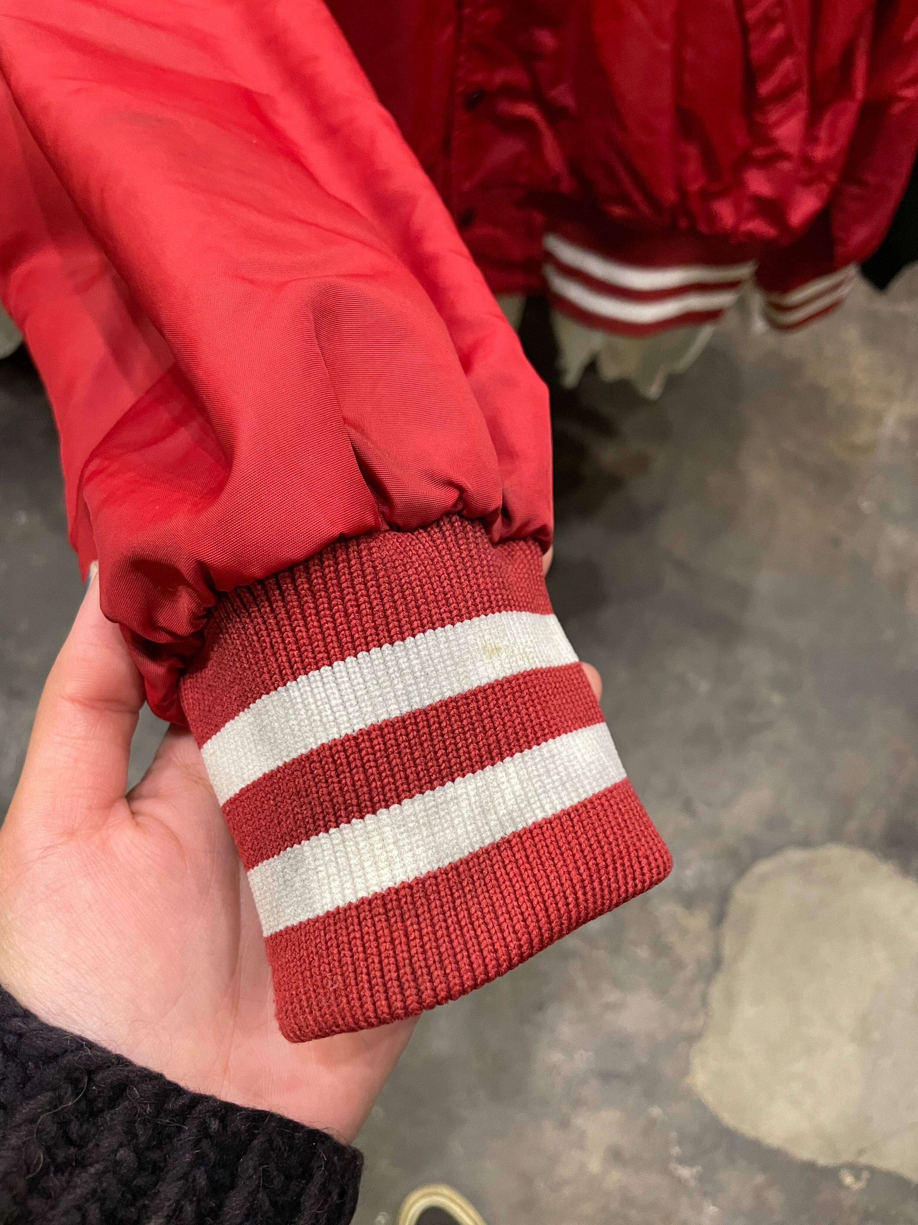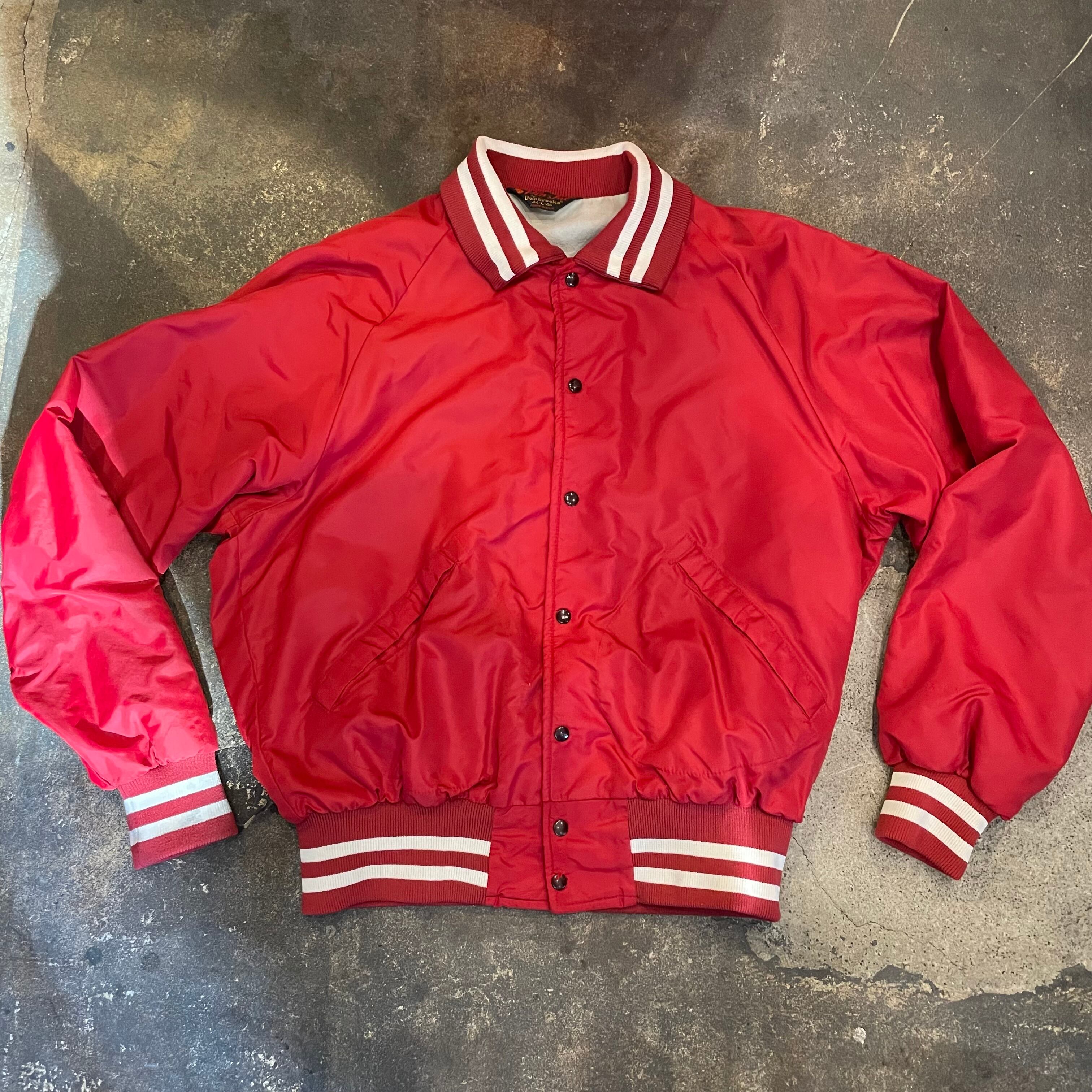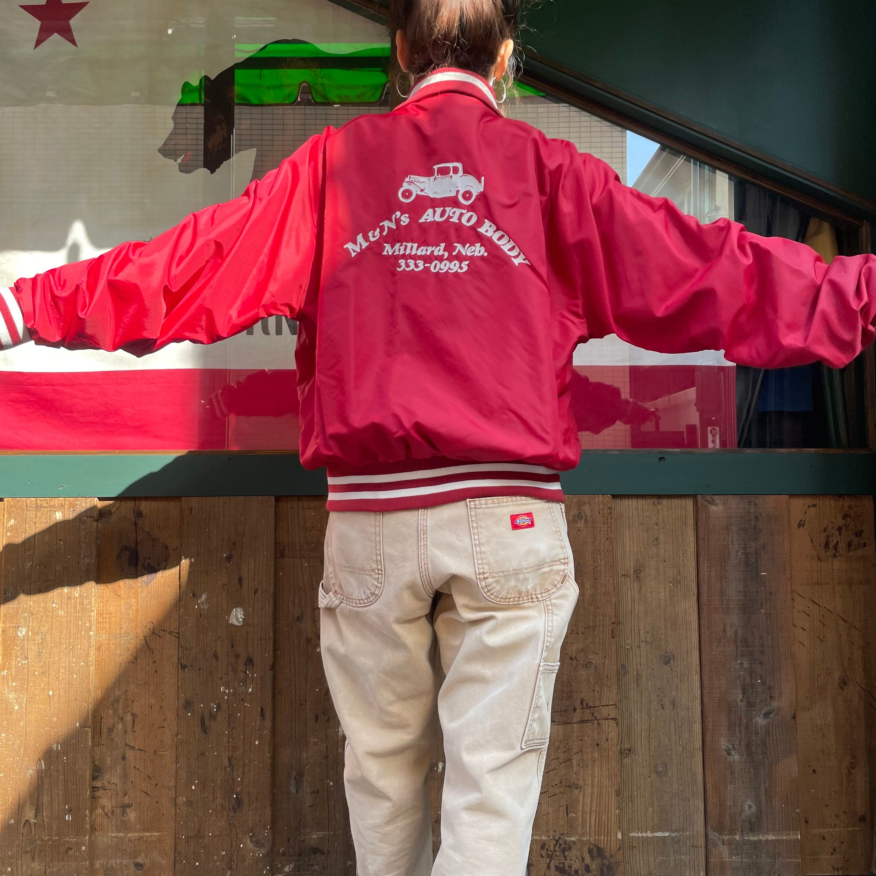 背中のプリントがかっこいいナイロンスタジアムジャケットです。