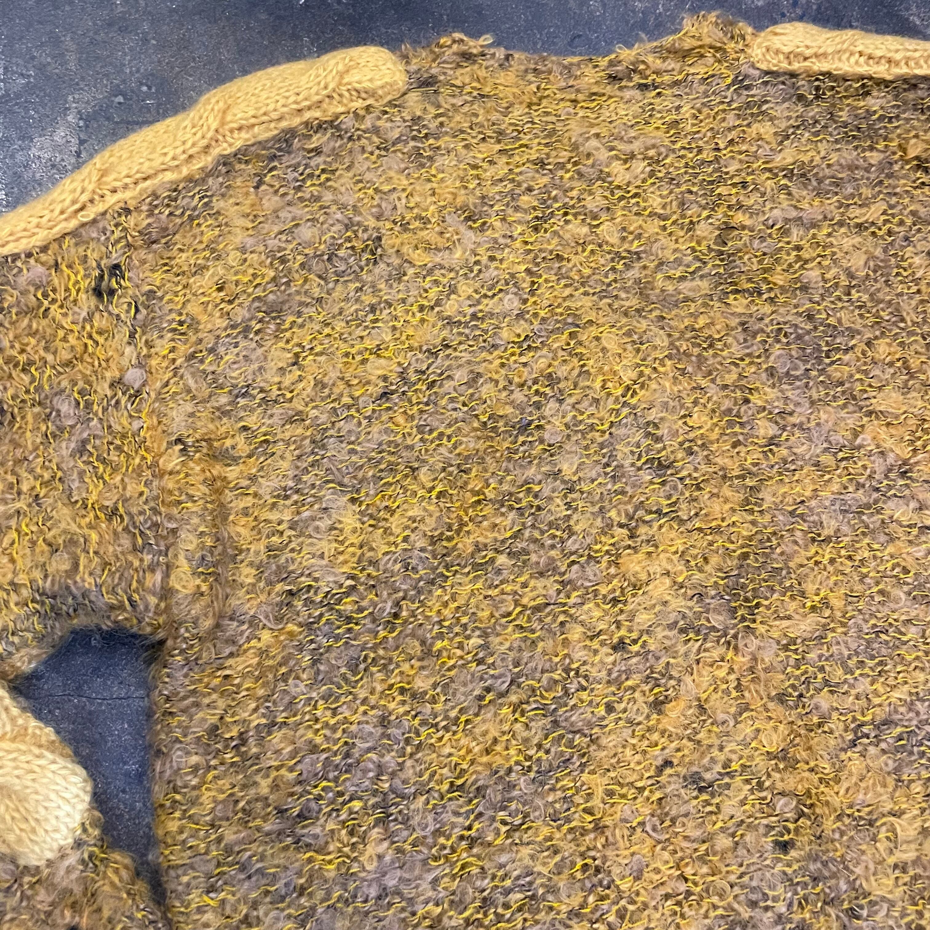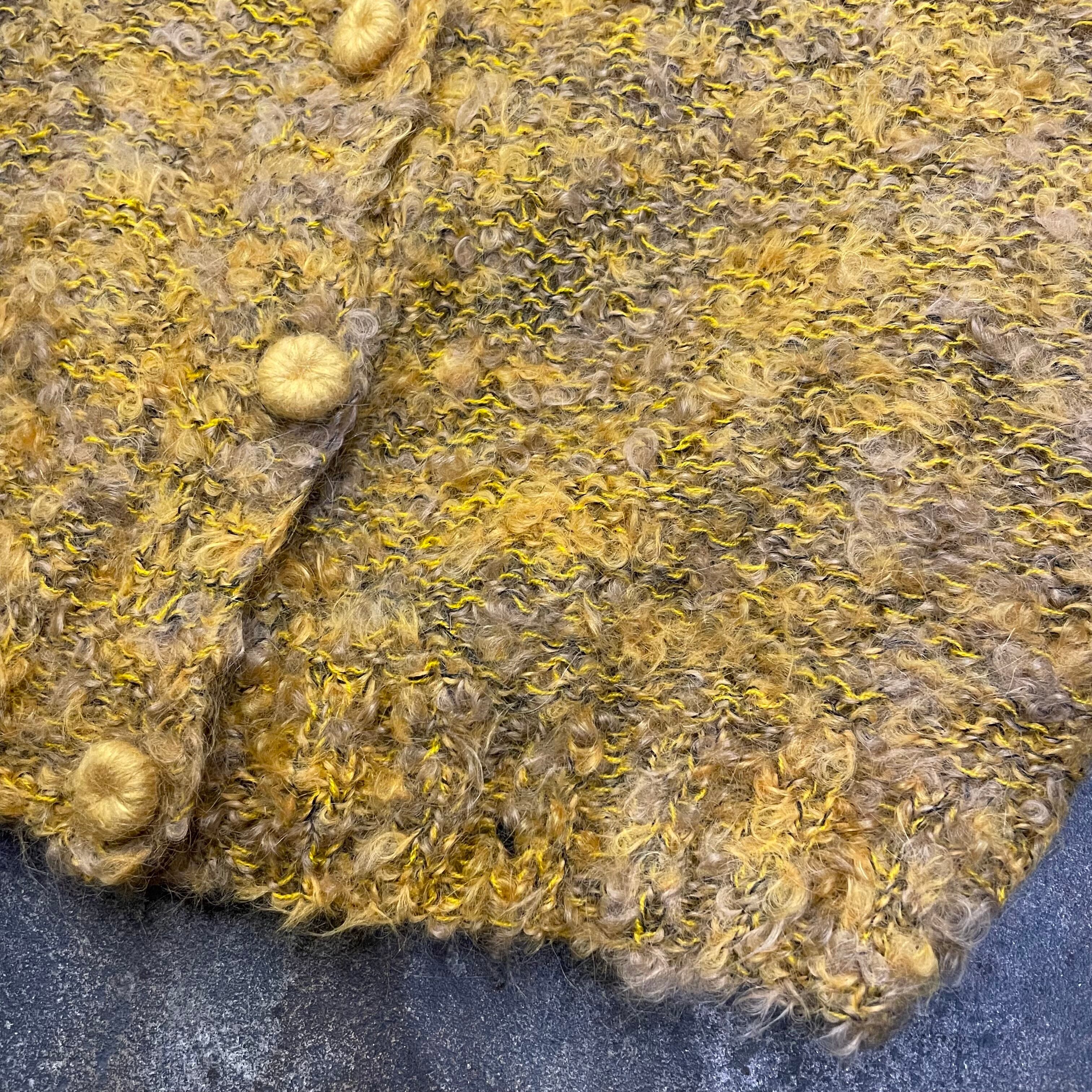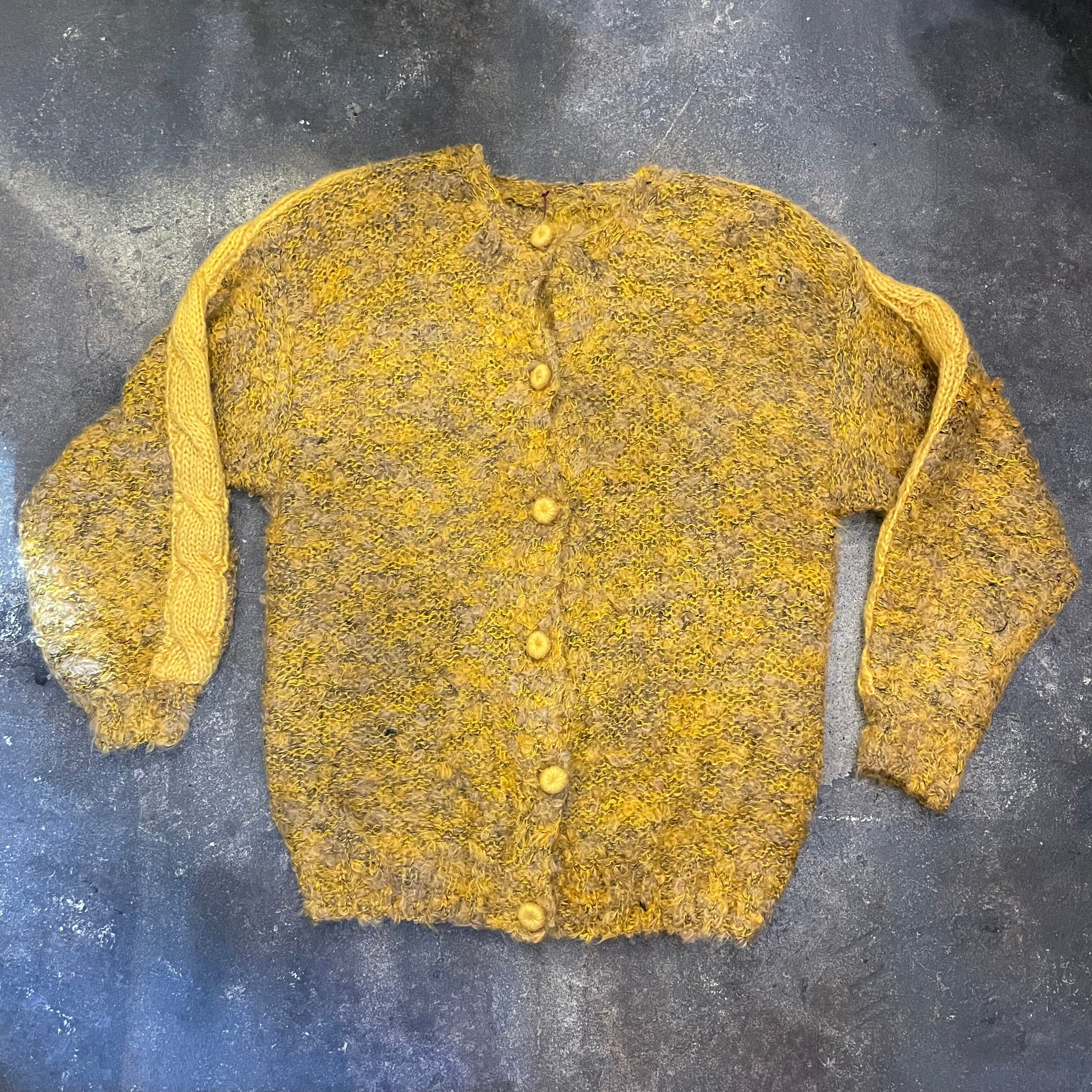 黄色と黒のミックスカラーで派手すぎない色味が良い雰囲気のカーディガンてす。