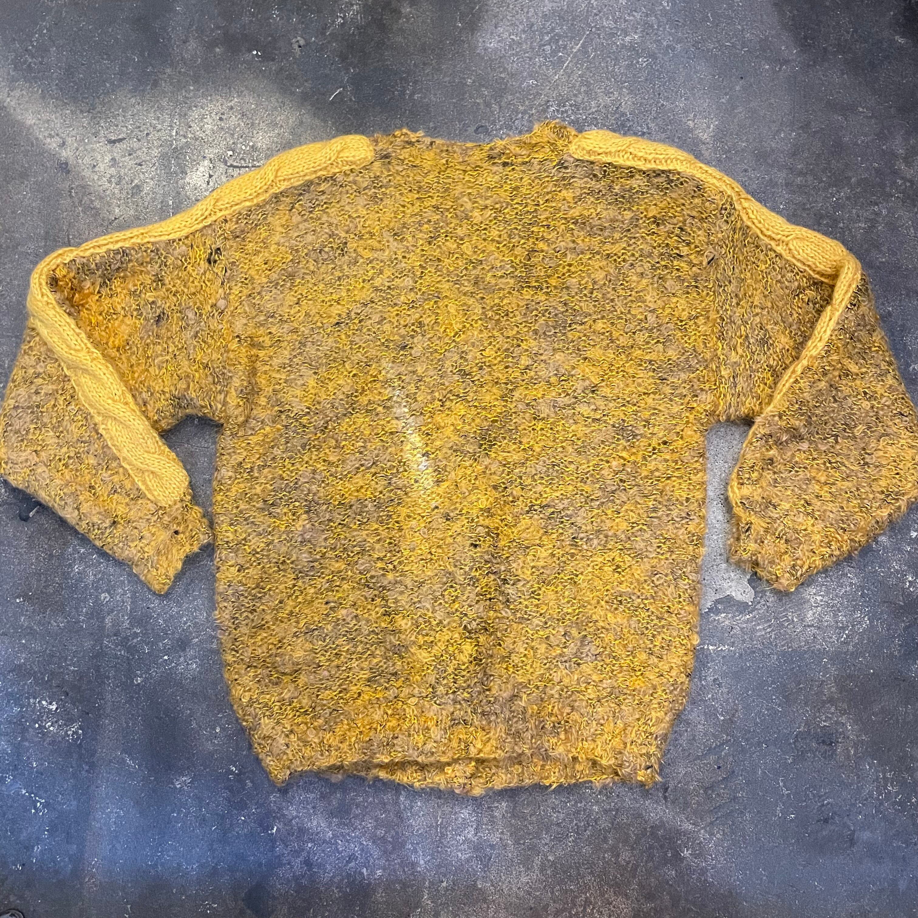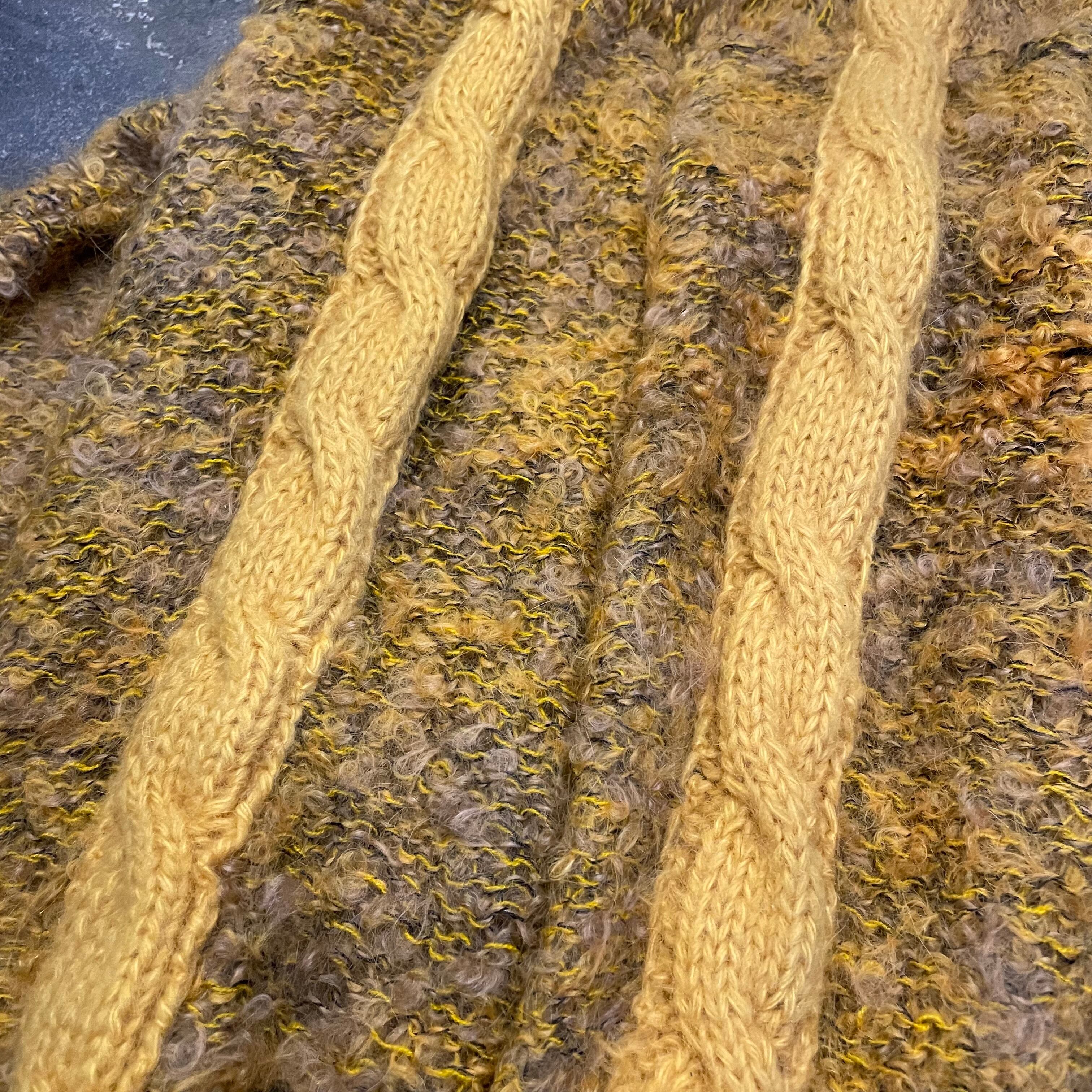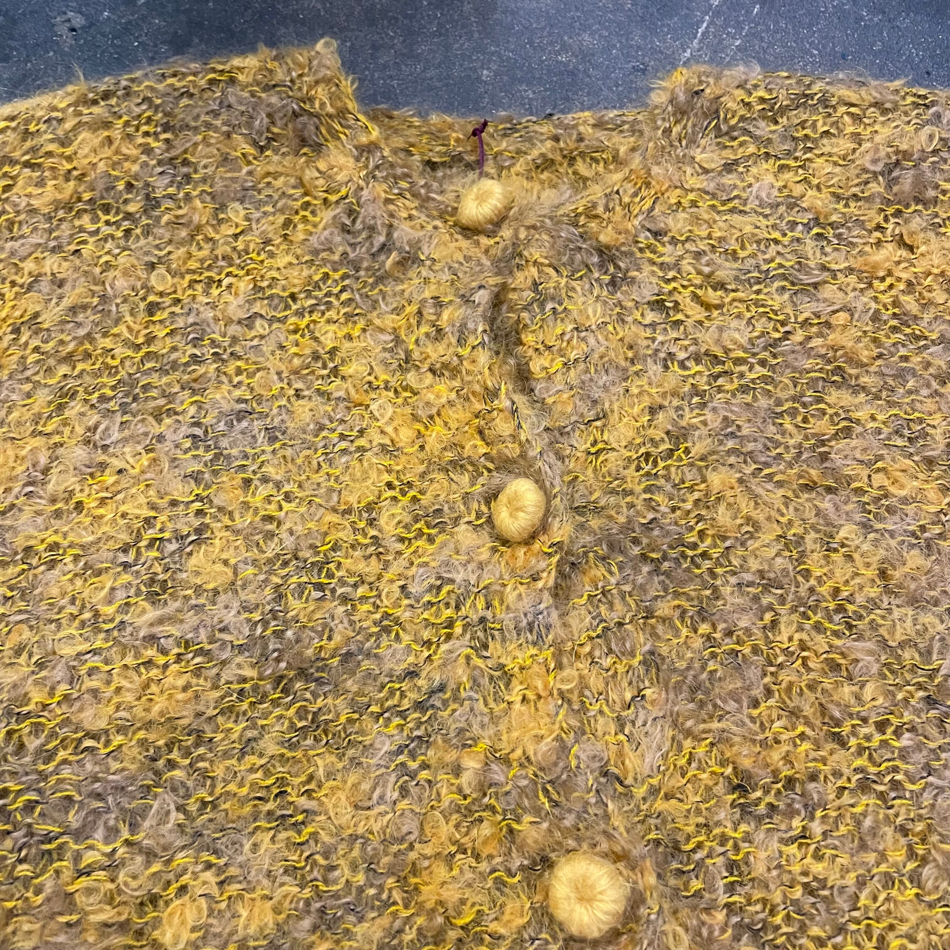 黄色と黒のミックスカラーで派手すぎない色味が良い雰囲気のカーディガンてす。