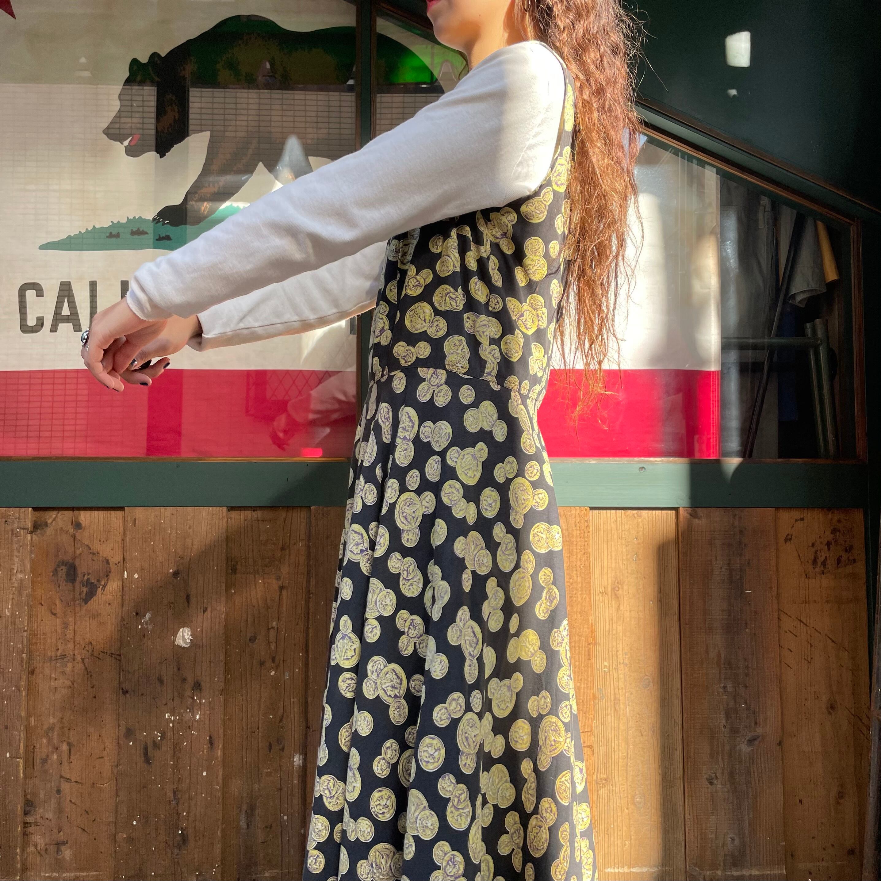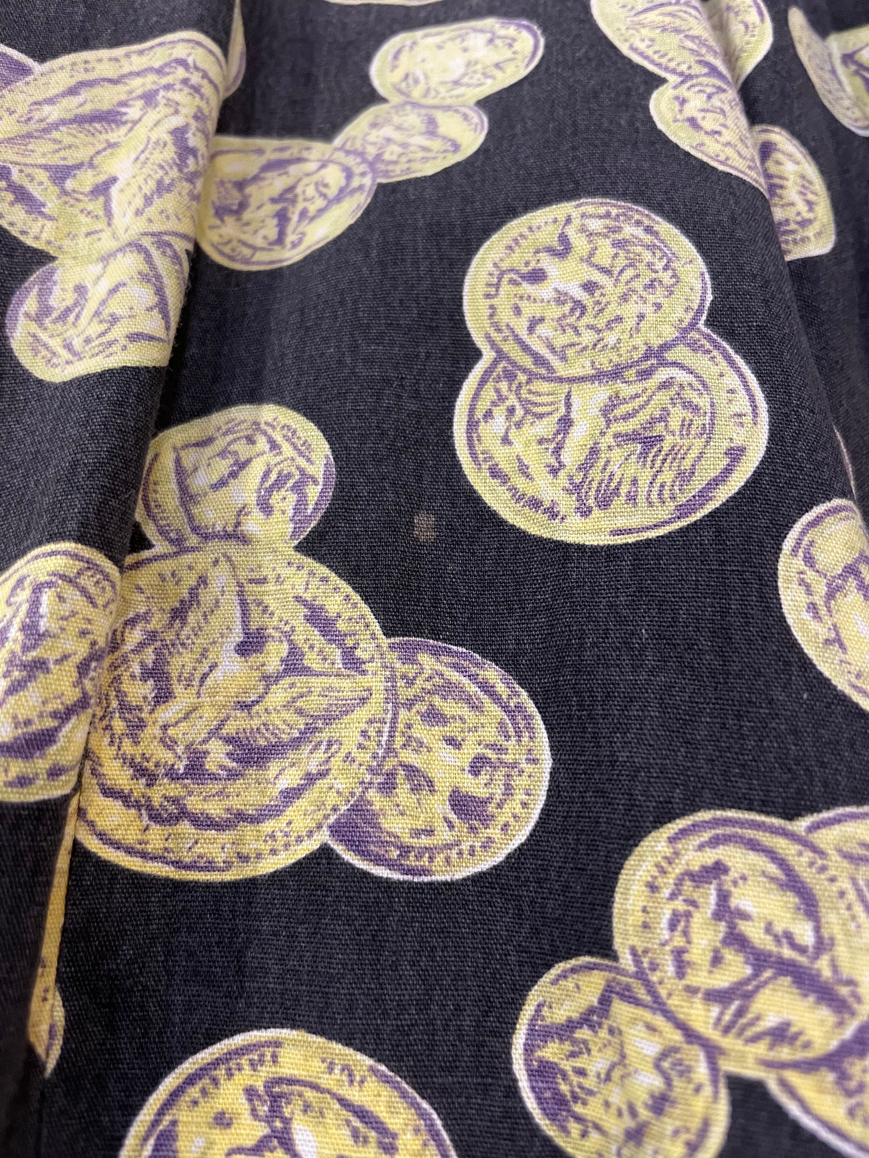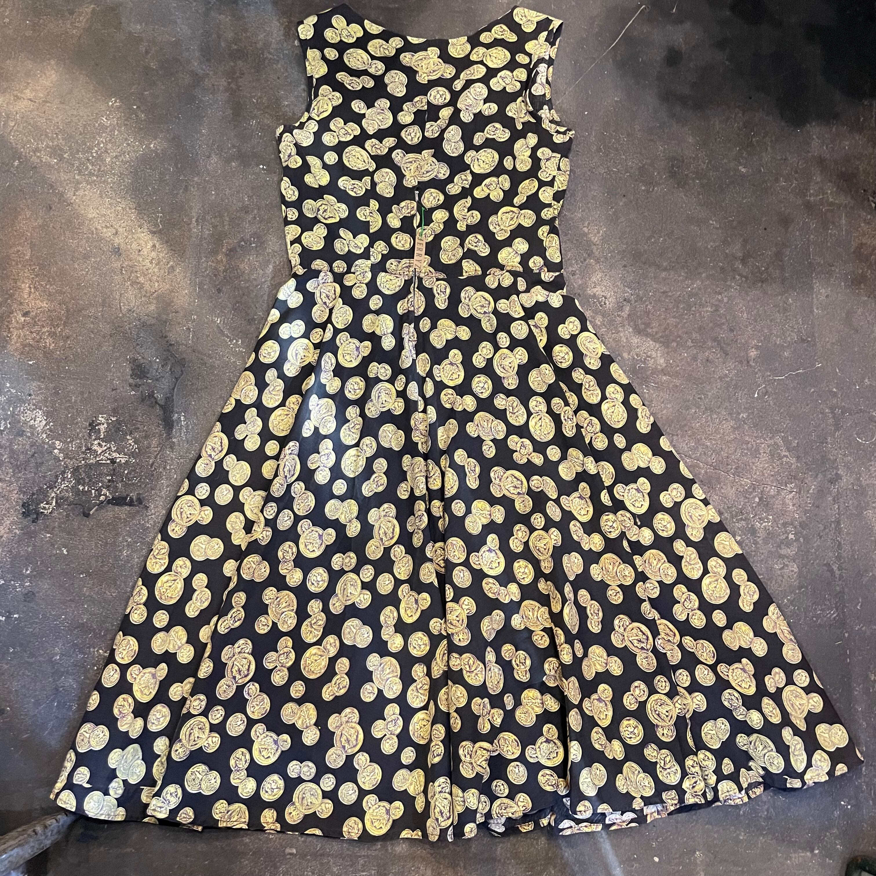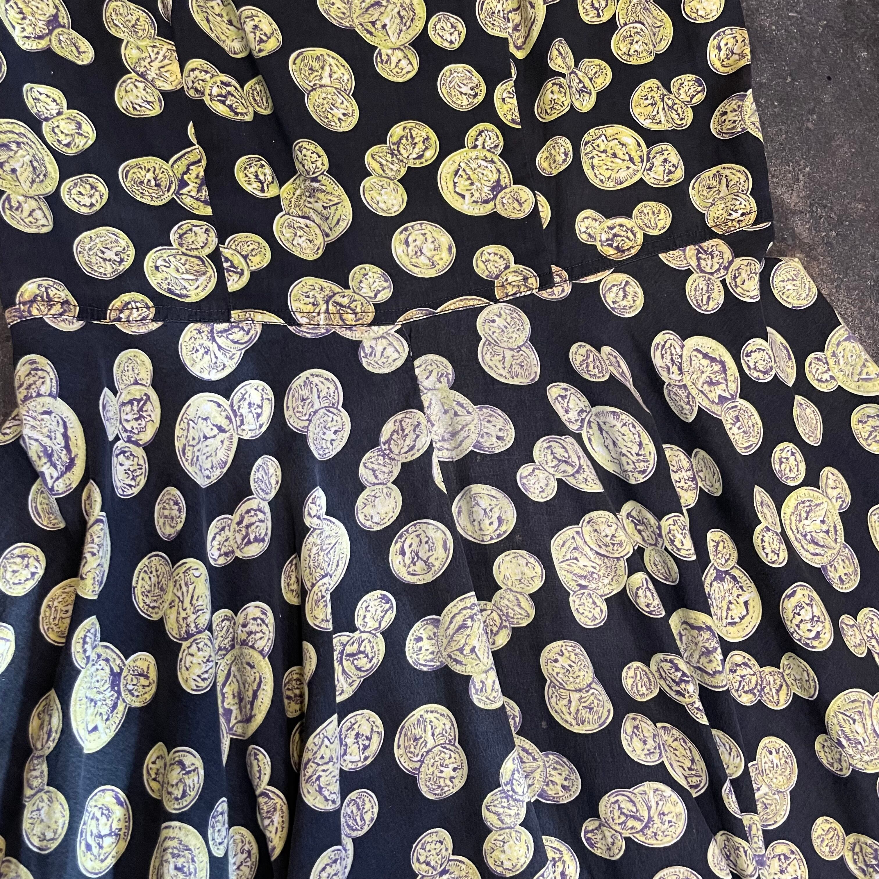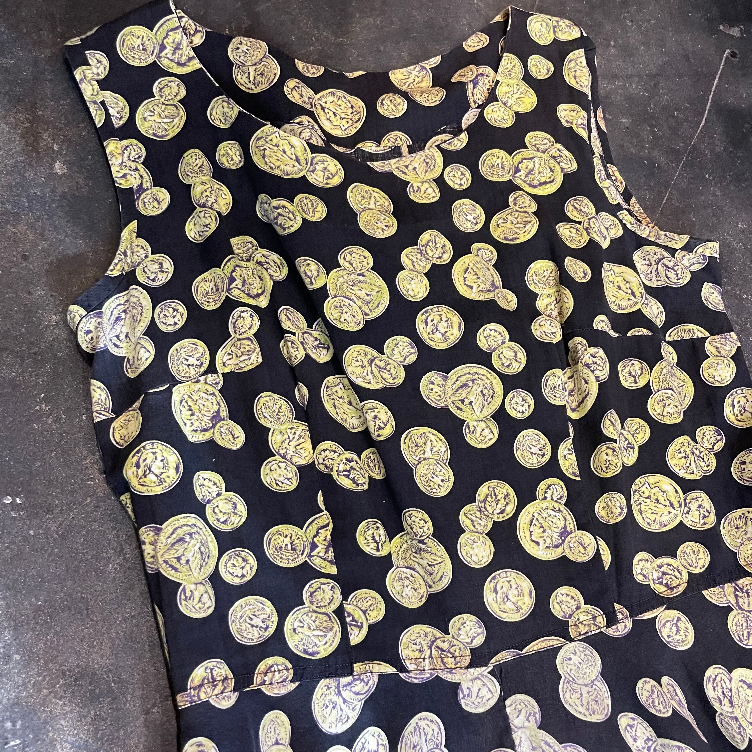 黒地にコインの硬貨柄がかわいいワンピースです。60年代頃のものと思われます。