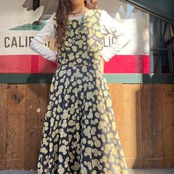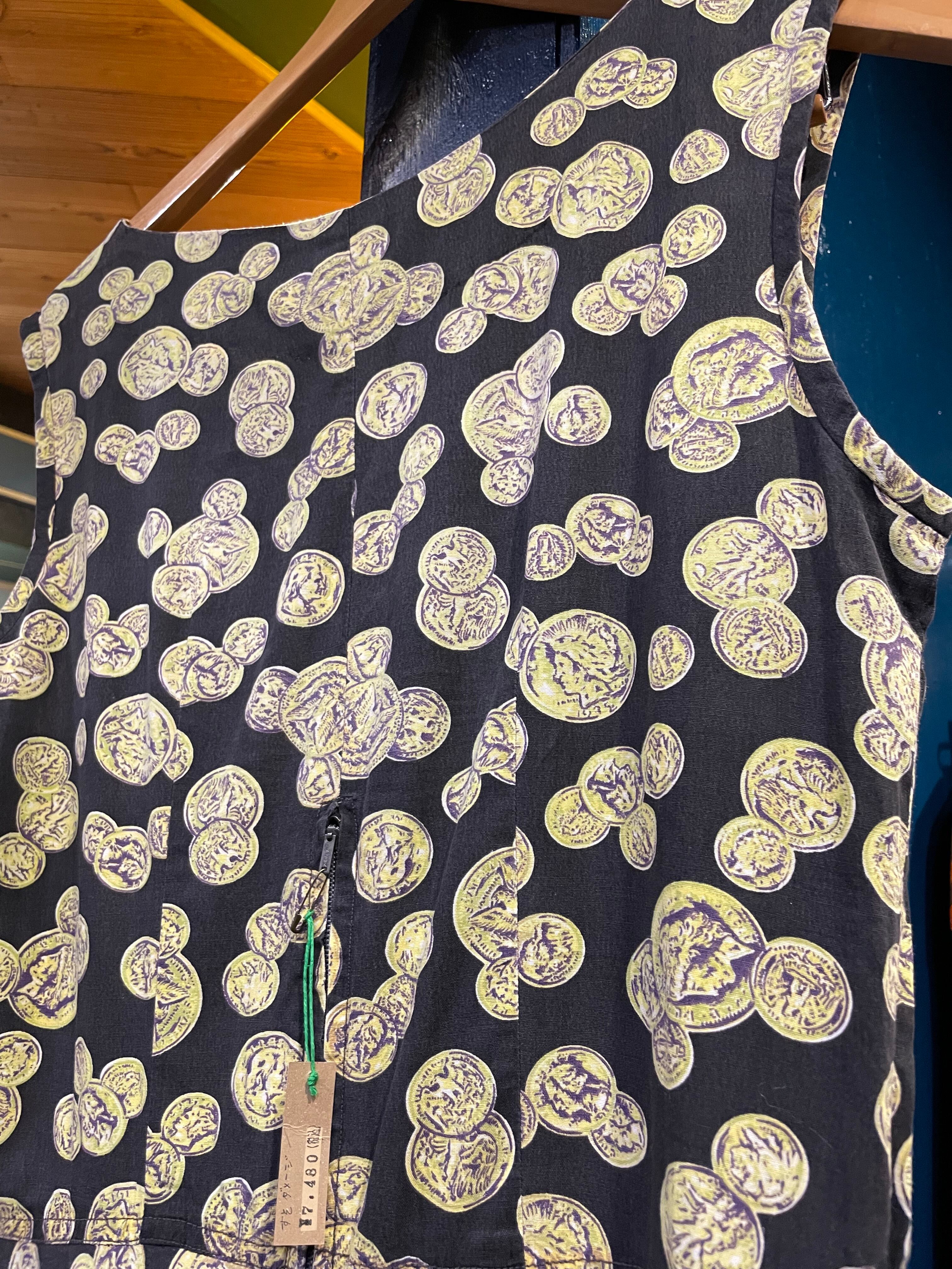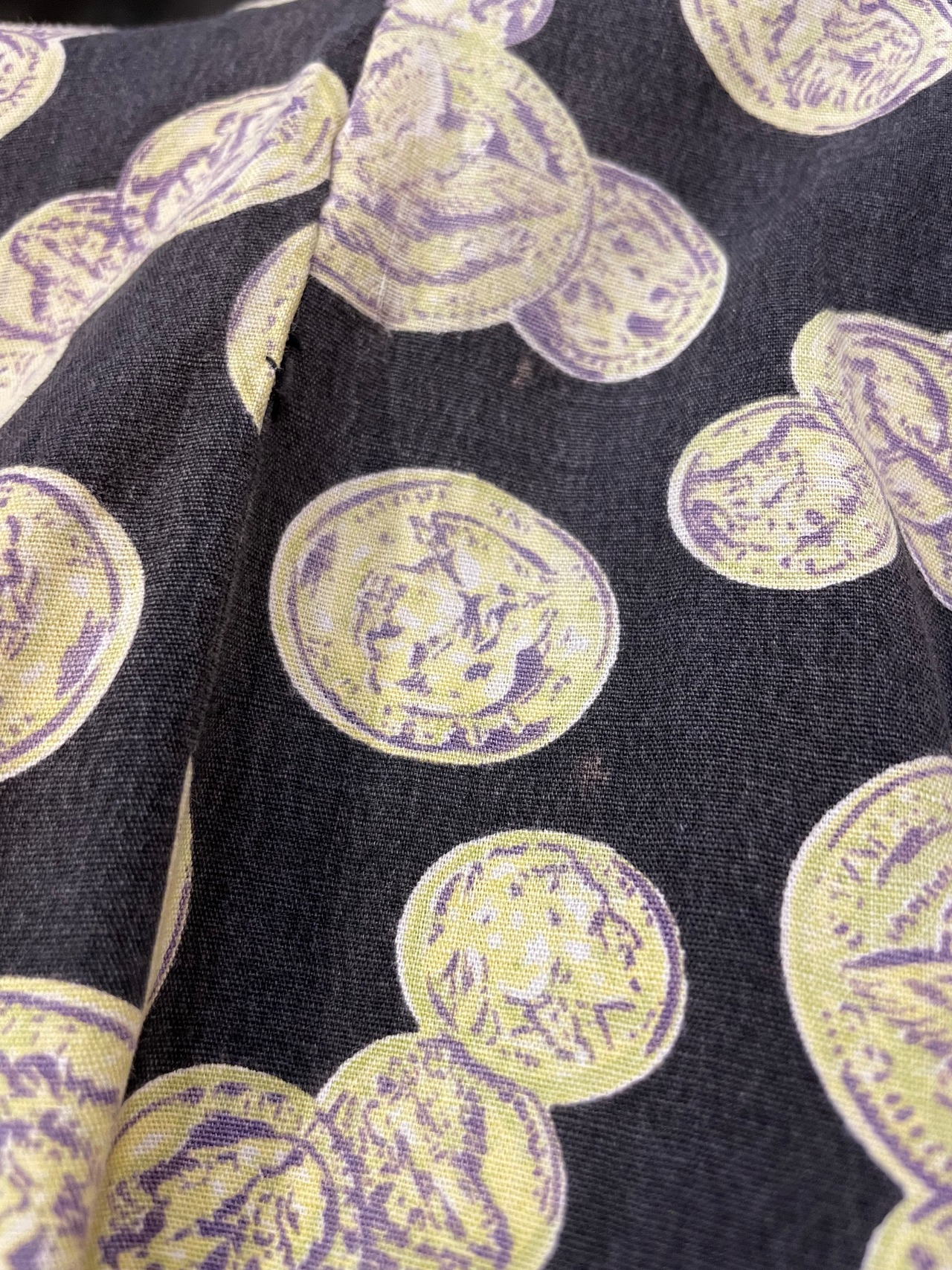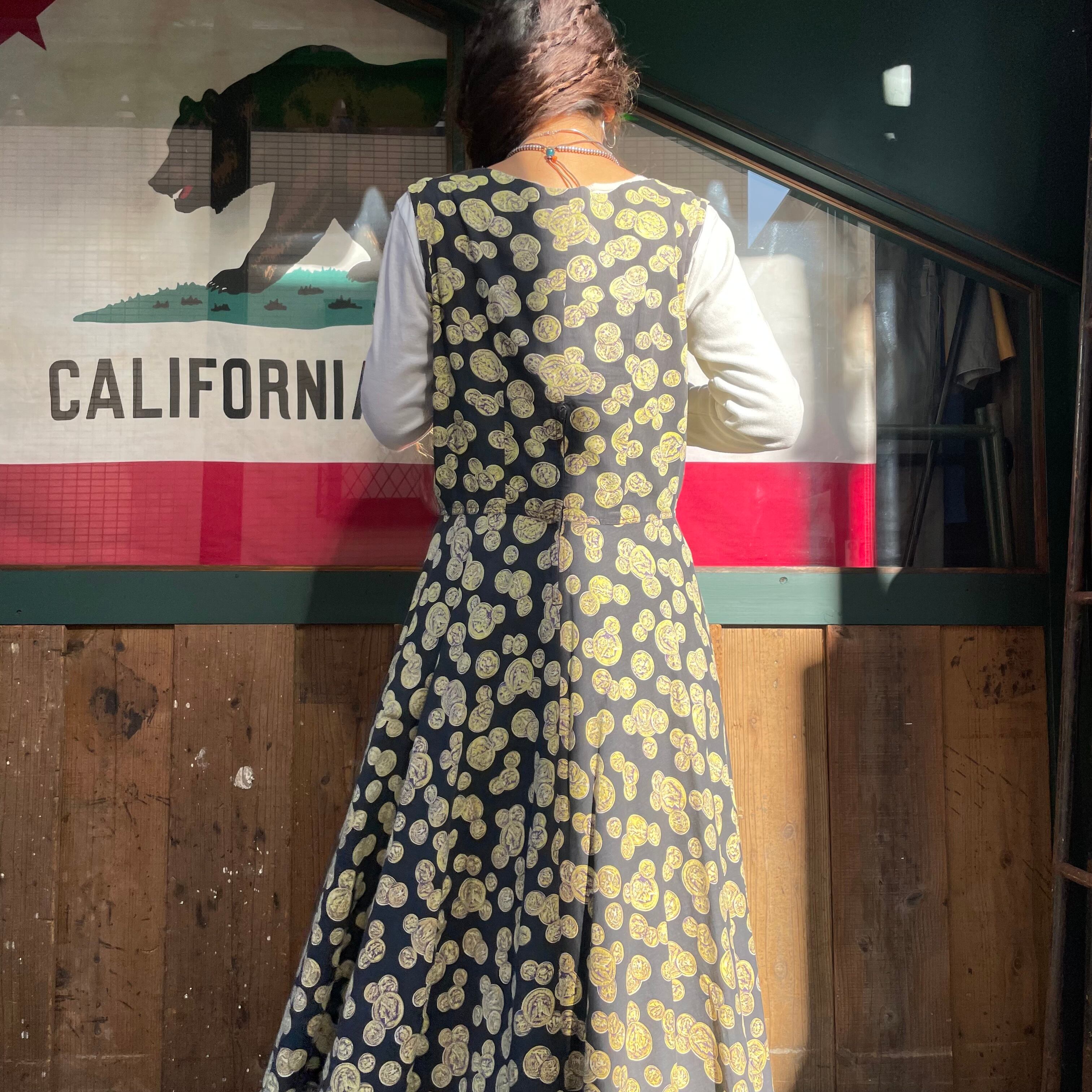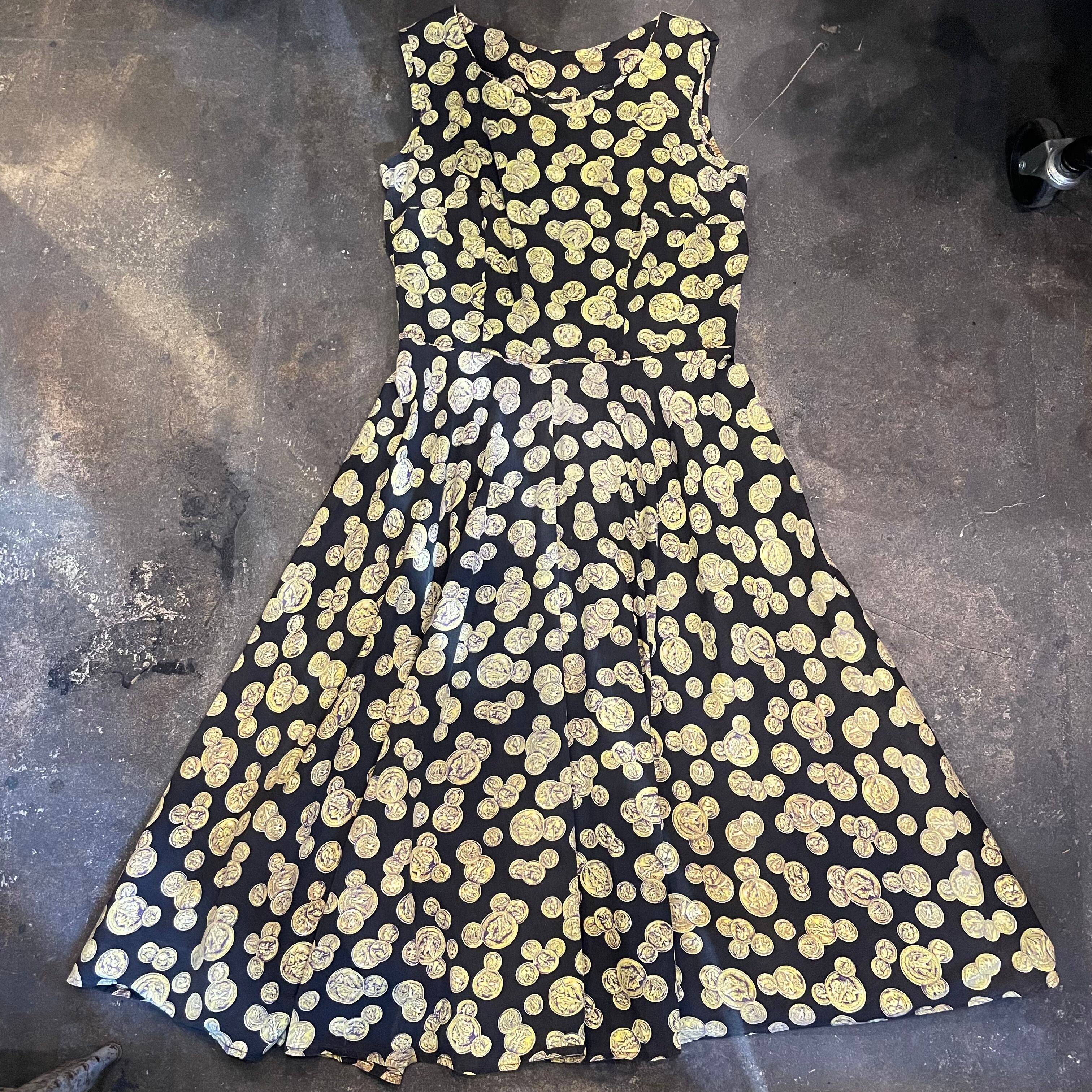 黒地にコインの硬貨柄がかわいいワンピースです。60年代頃のものと思われます。