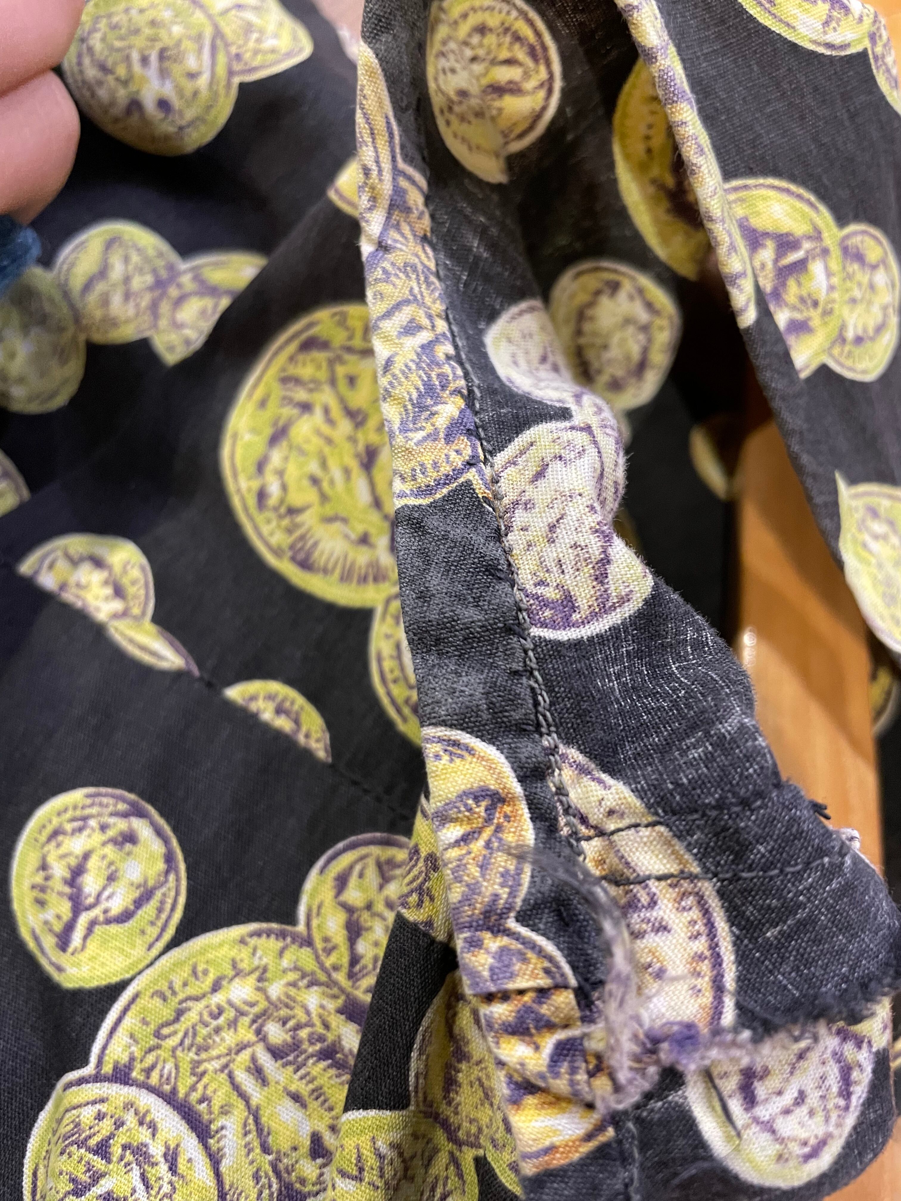 日焼け等のダメージはありますが、それも含めてとても雰囲気のある一着だと思います。黒ベースでカッコ良い柄で古着ならではですね。