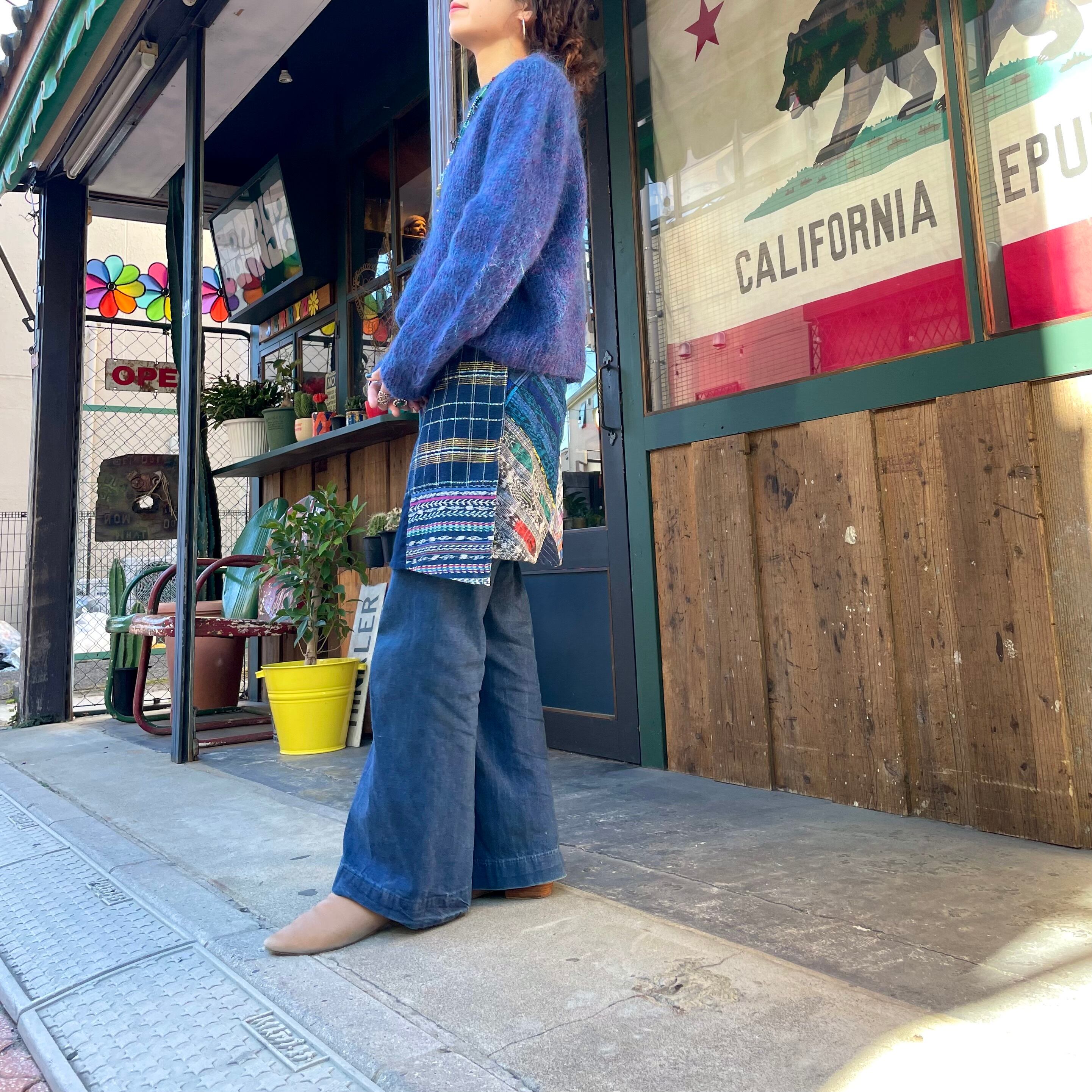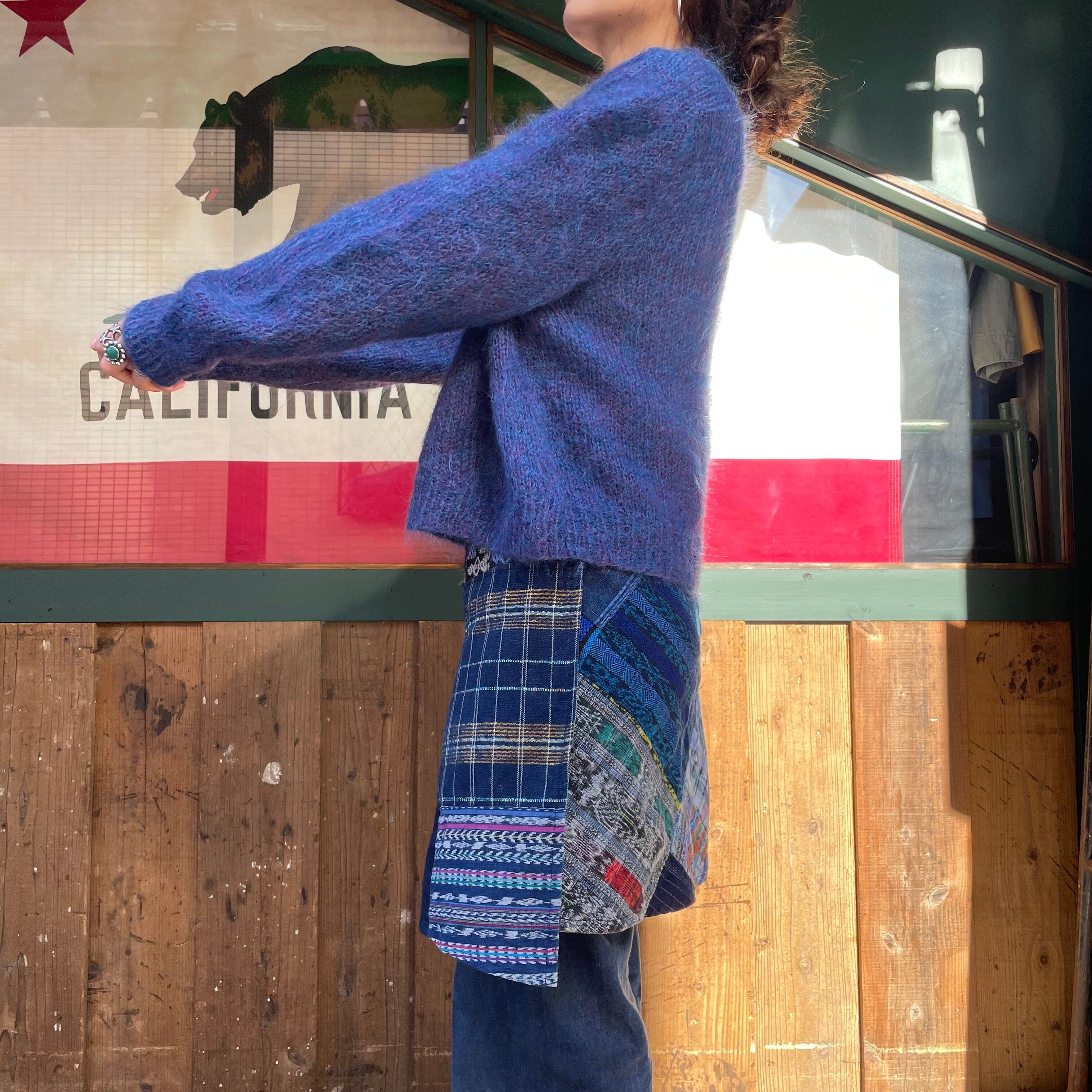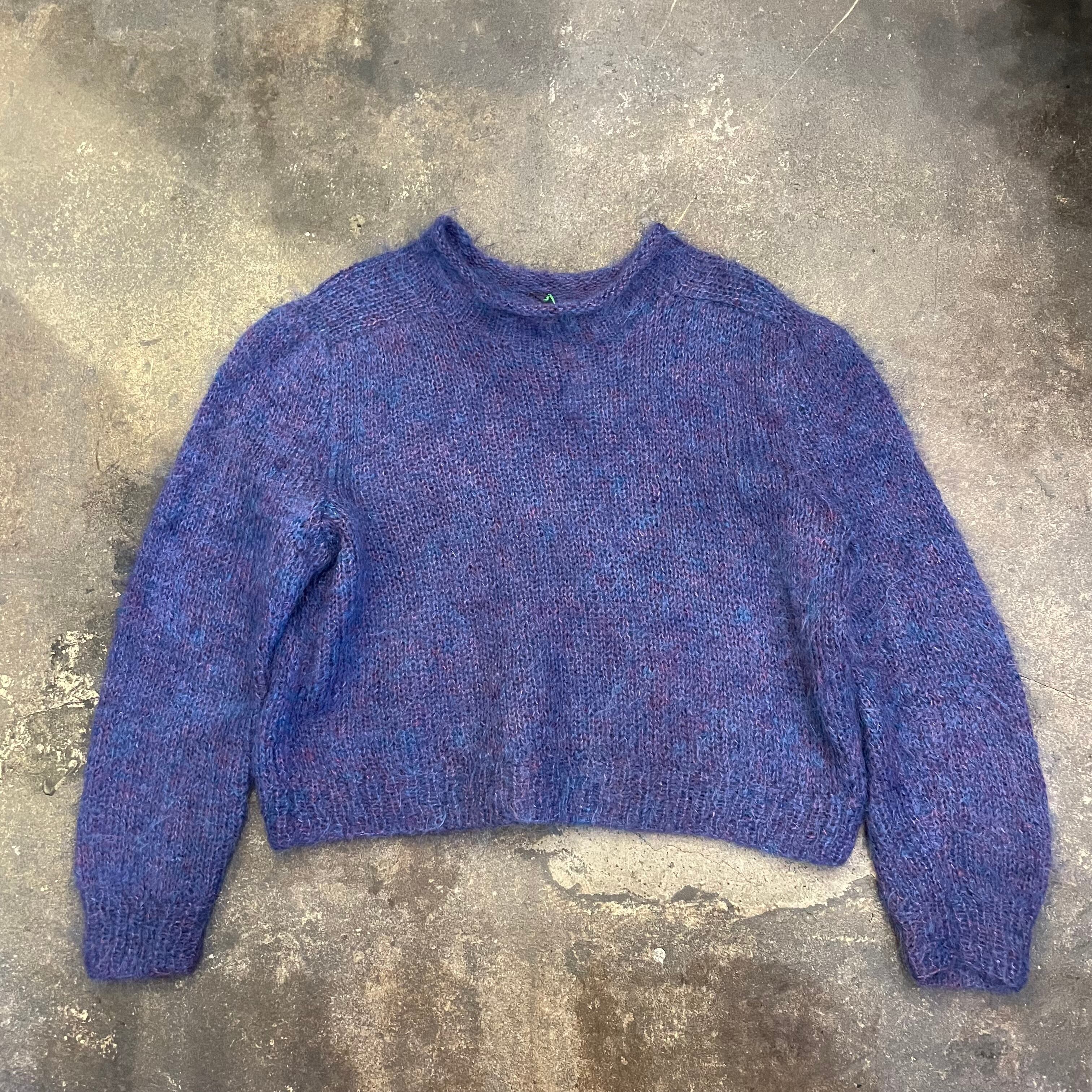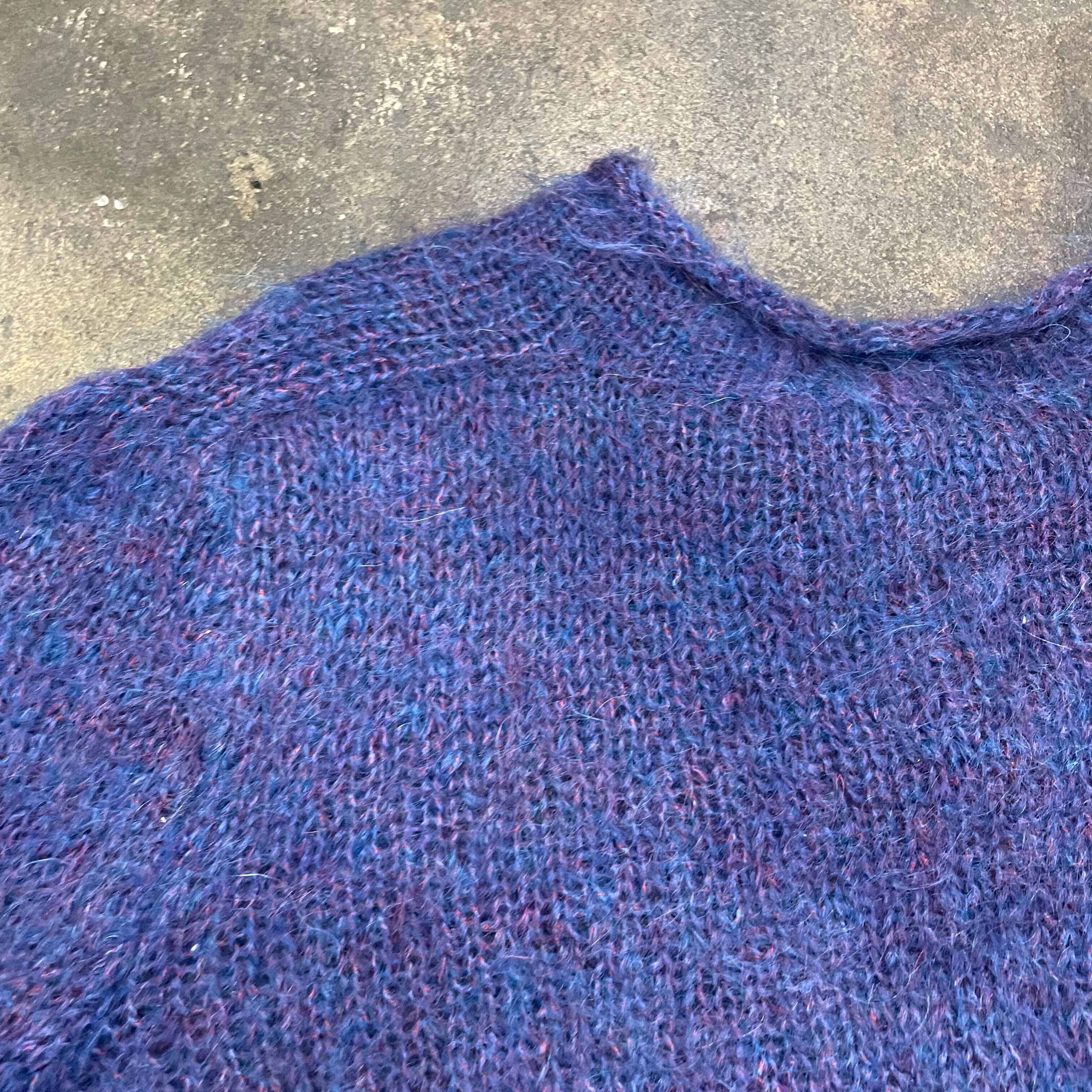 青紫のようなミックスカラーがオーロラのようでかわいいセーターです。