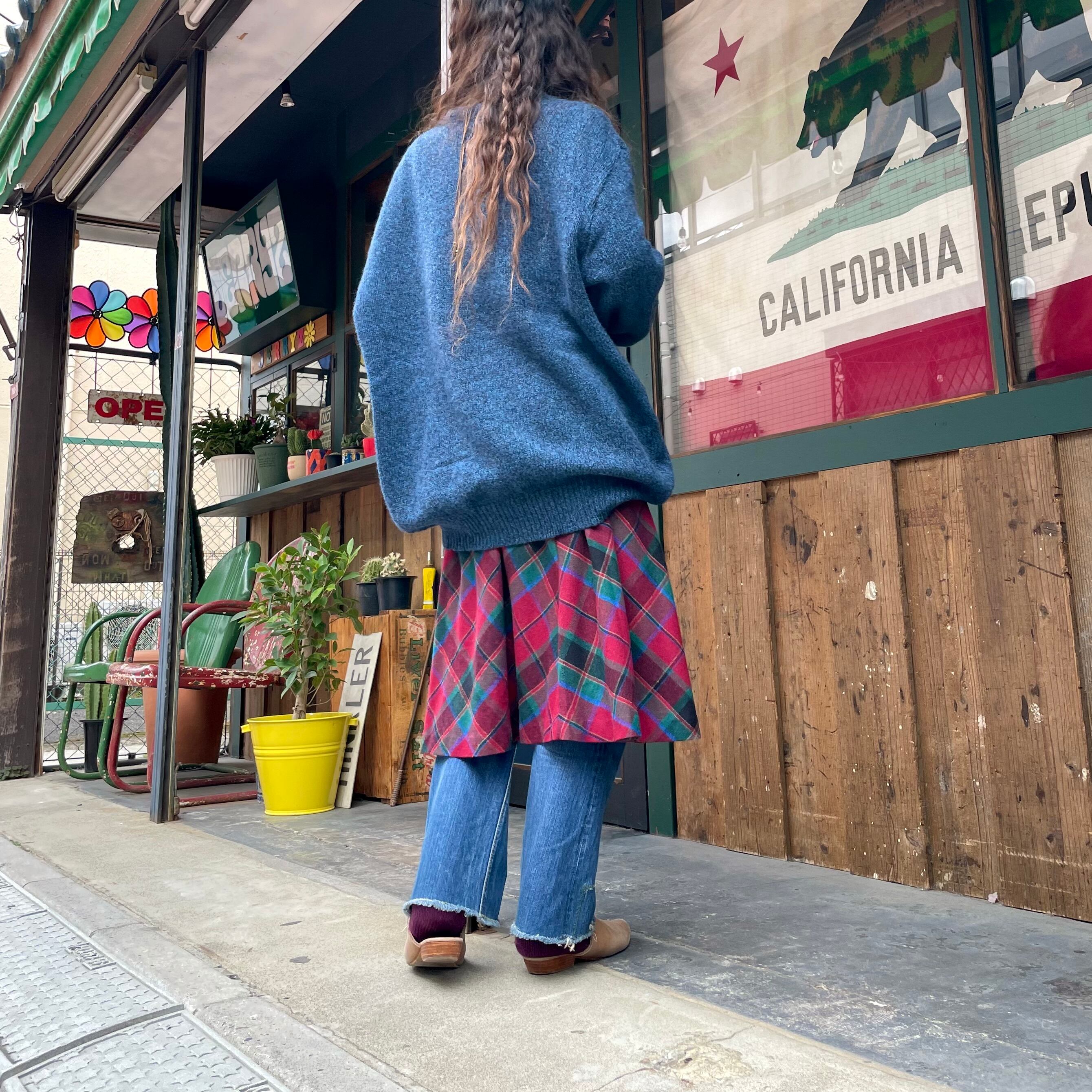 青×黒のミックスカラーが渋めでかわいい一枚です。かなりゆったり大きいサイズ感がゆるくてラフな雰囲気も良い感じですし、とても楽ちんだと思います。