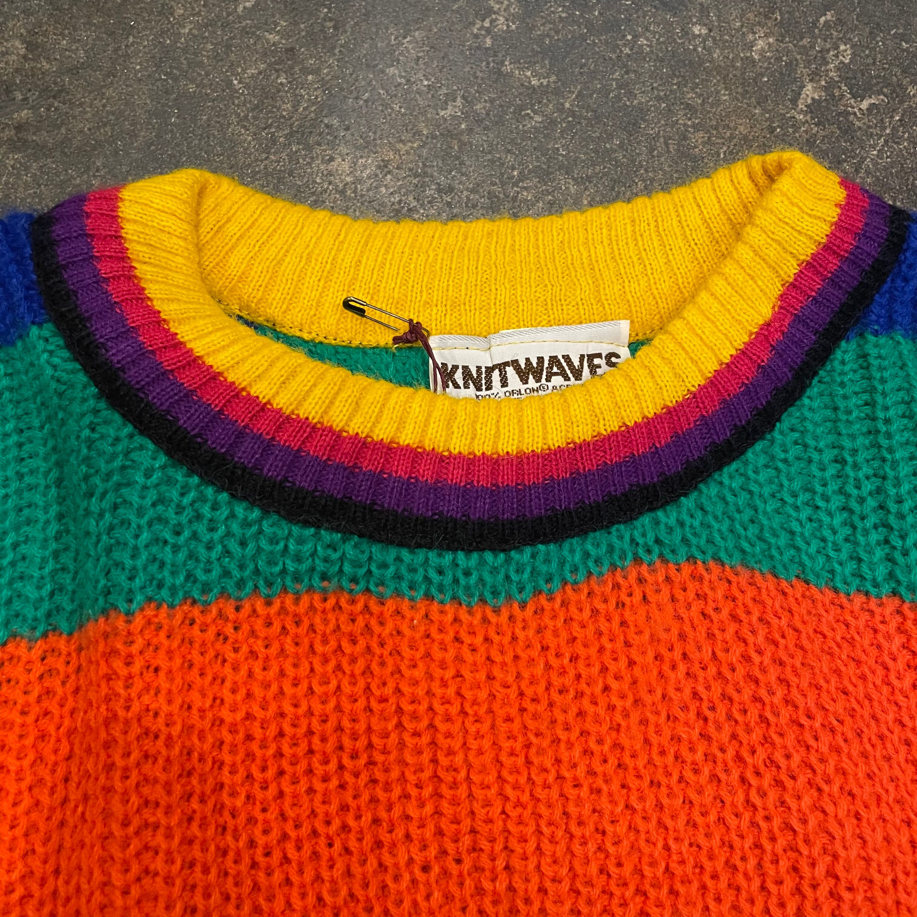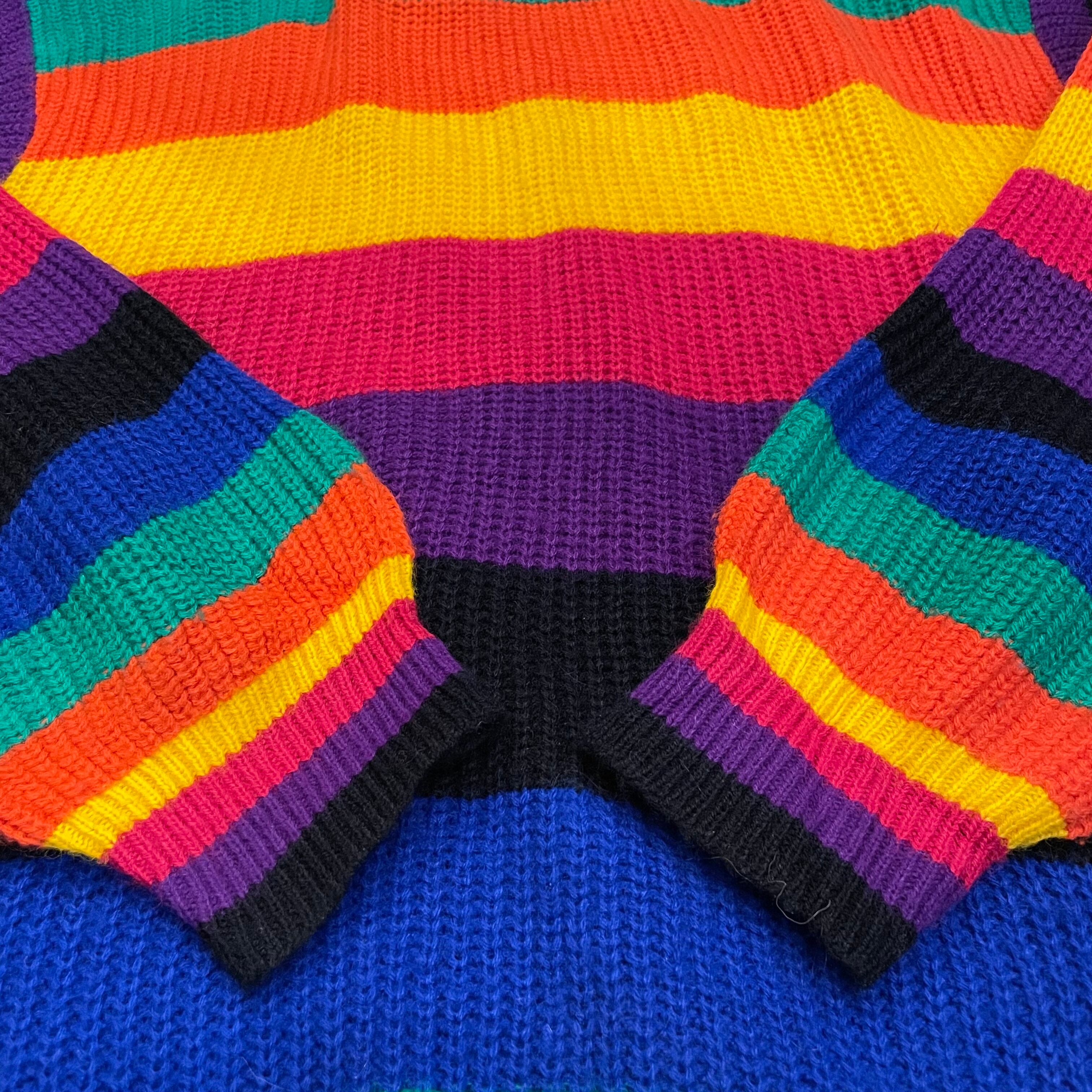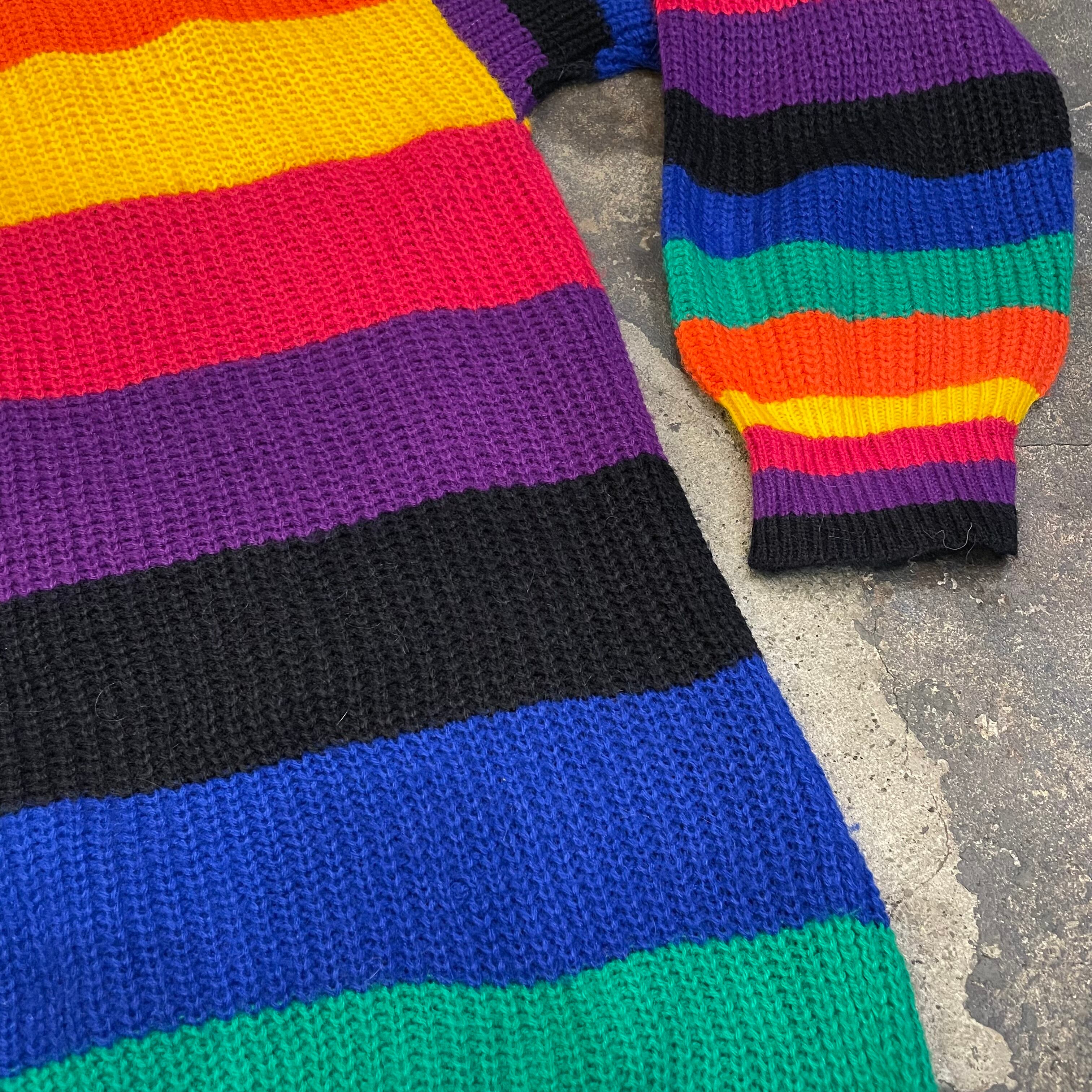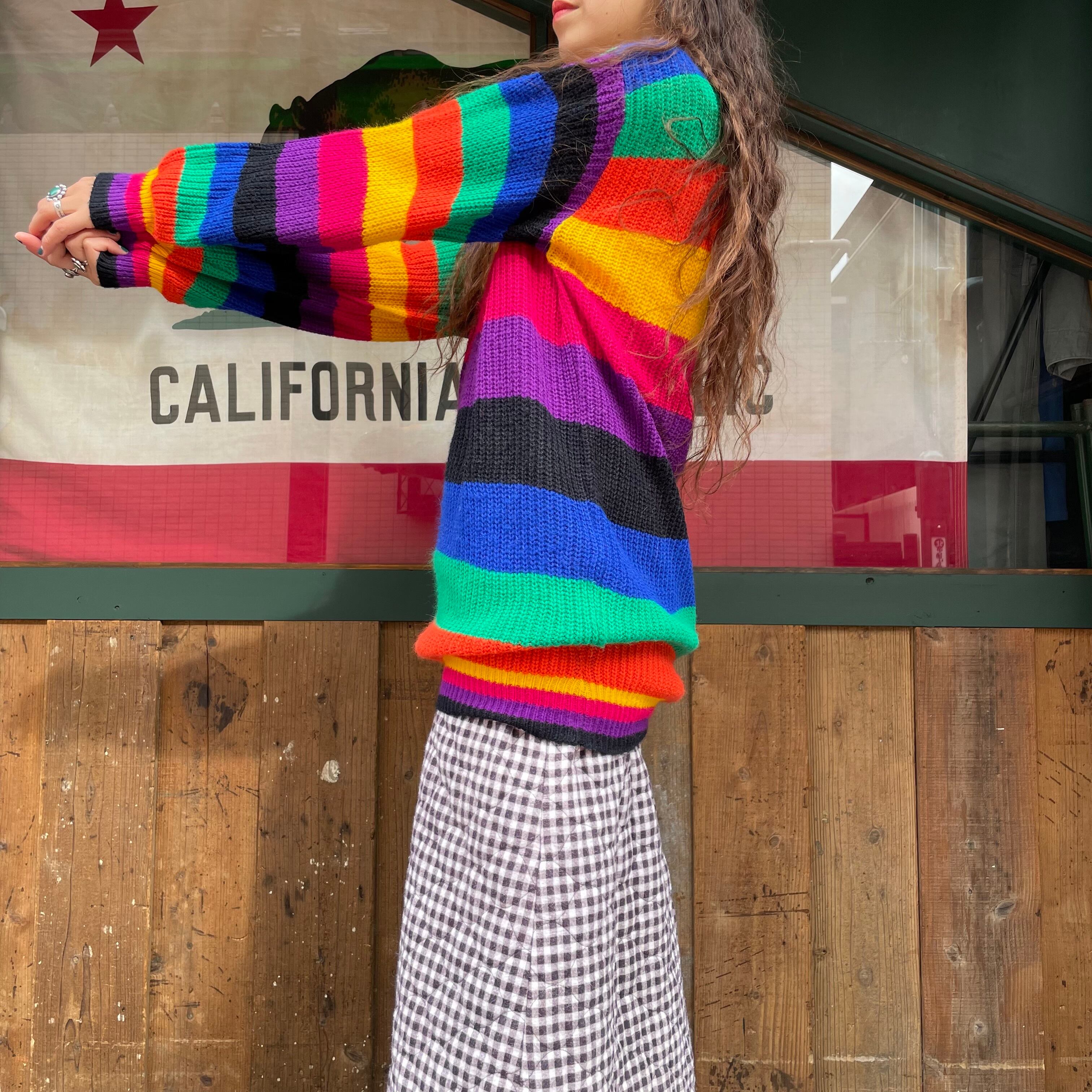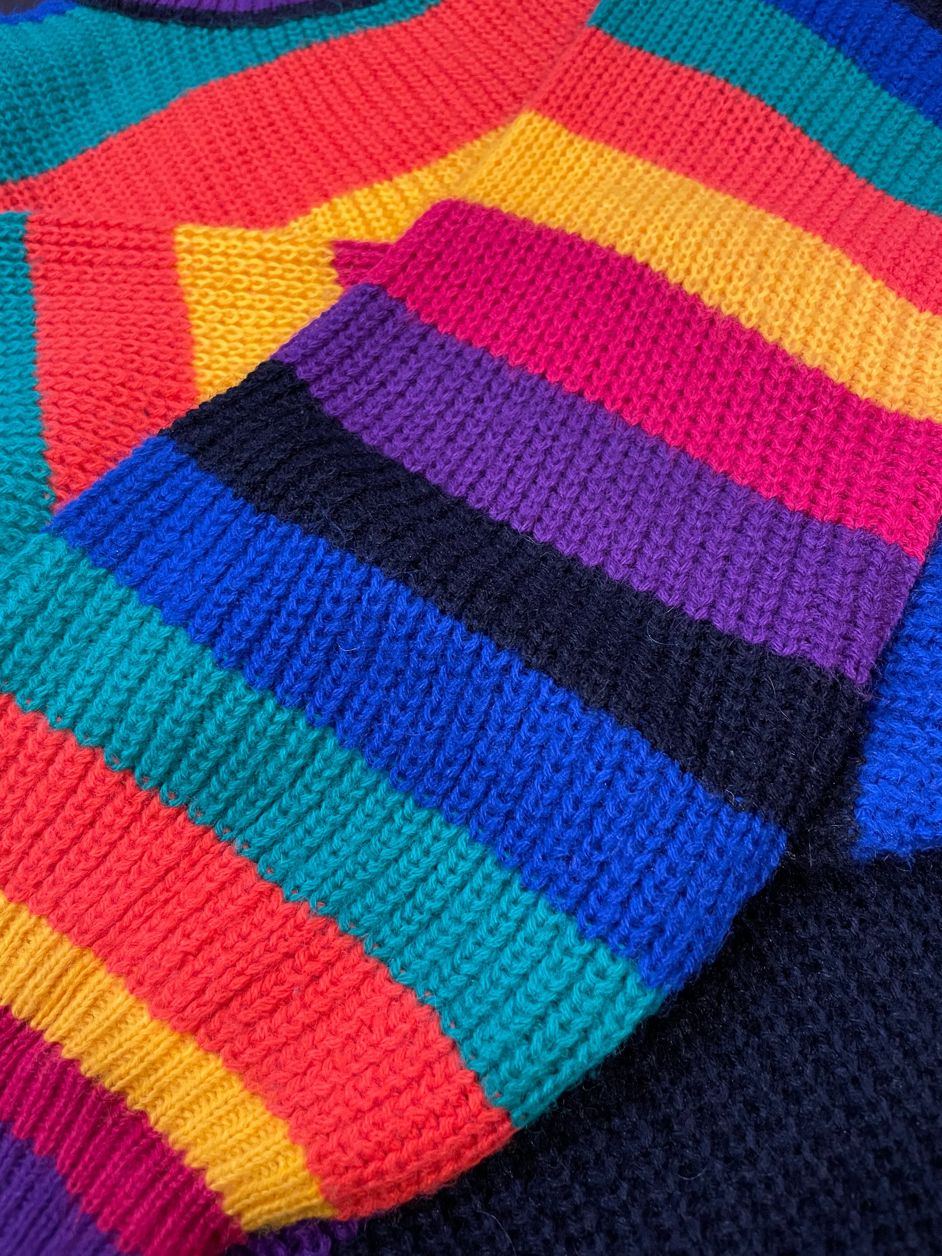 アクリル素材で割と薄手なので気軽に着て頂けそうな一枚です。着丈がお尻が隠れるほど長いので伸ばして着るのも良いですし、リブがしっかりしているので折り曲げて着てもしっかり留まってくれて嵩張らないのでいろんな着方が楽しめると思います。