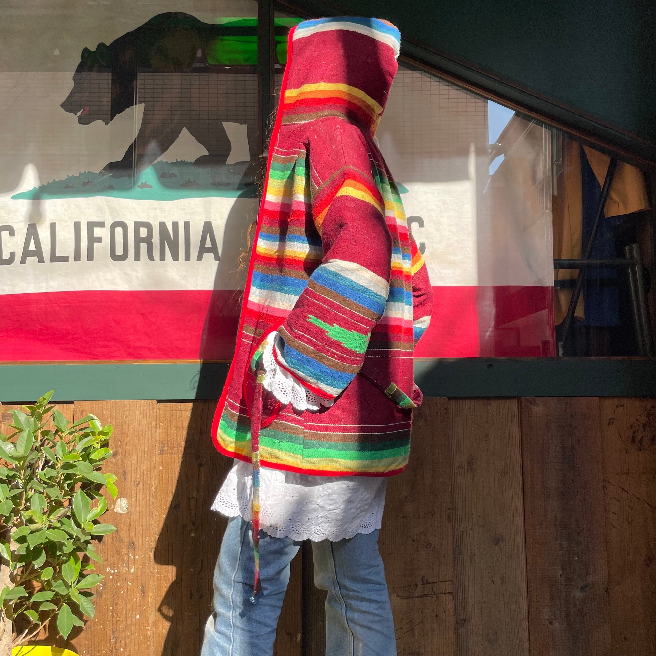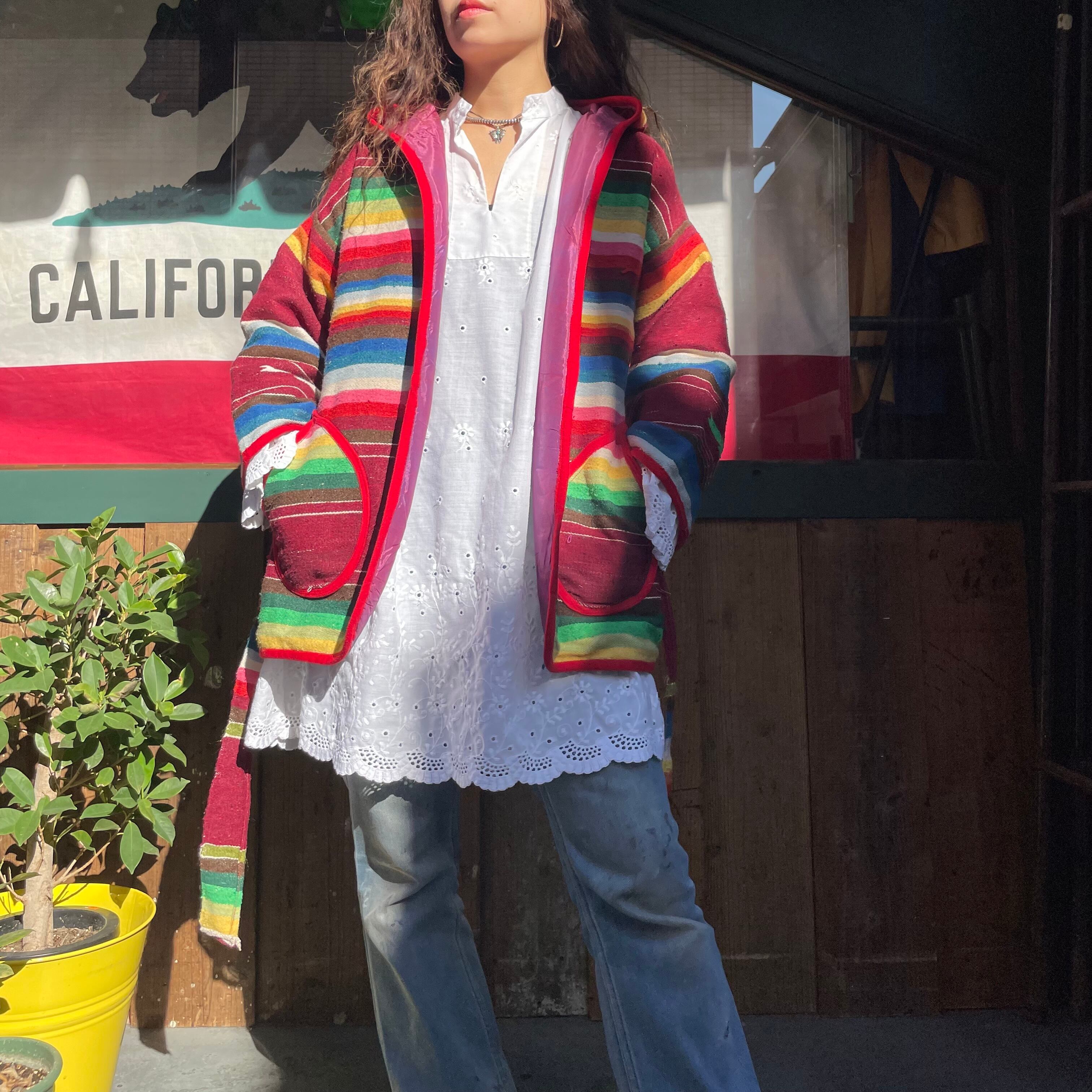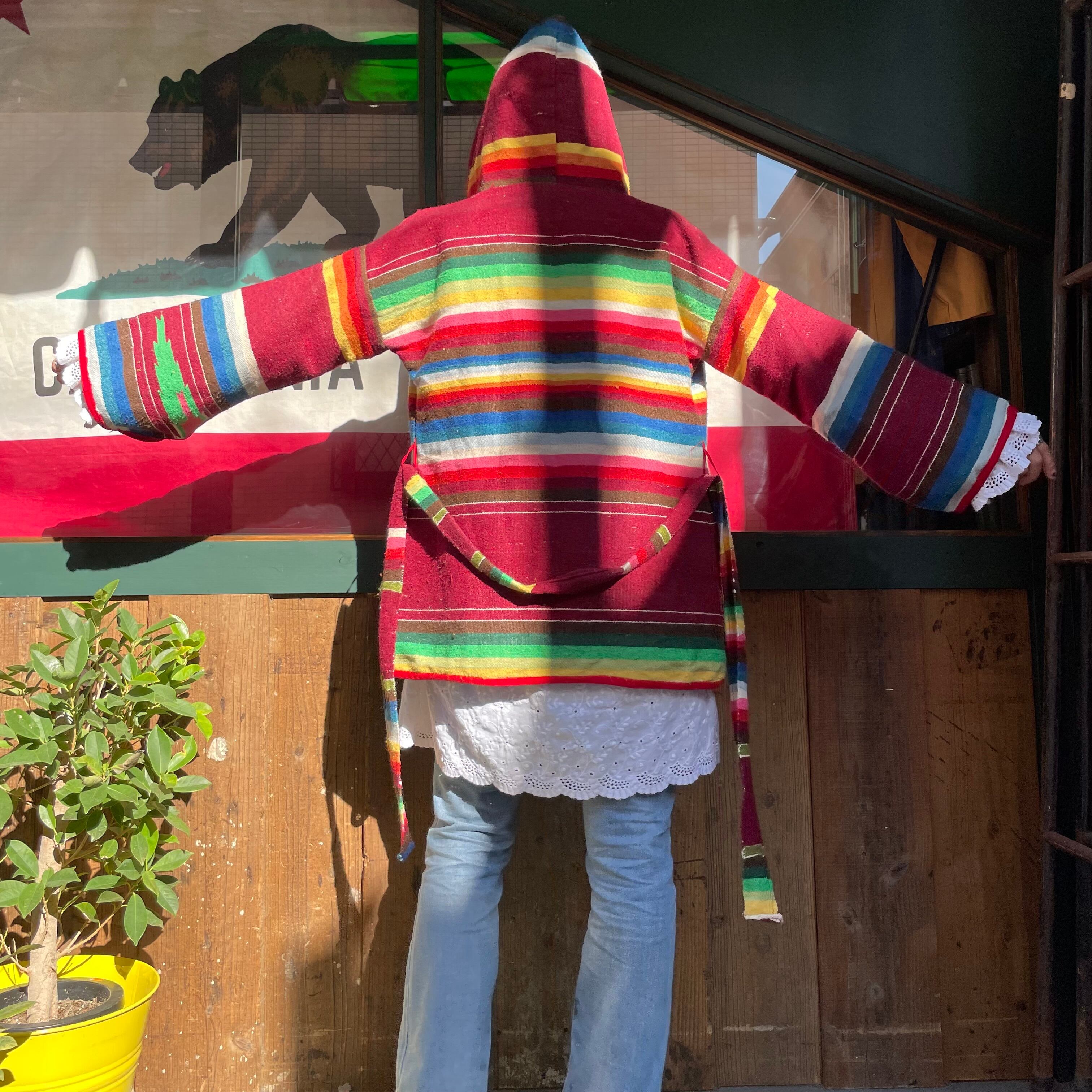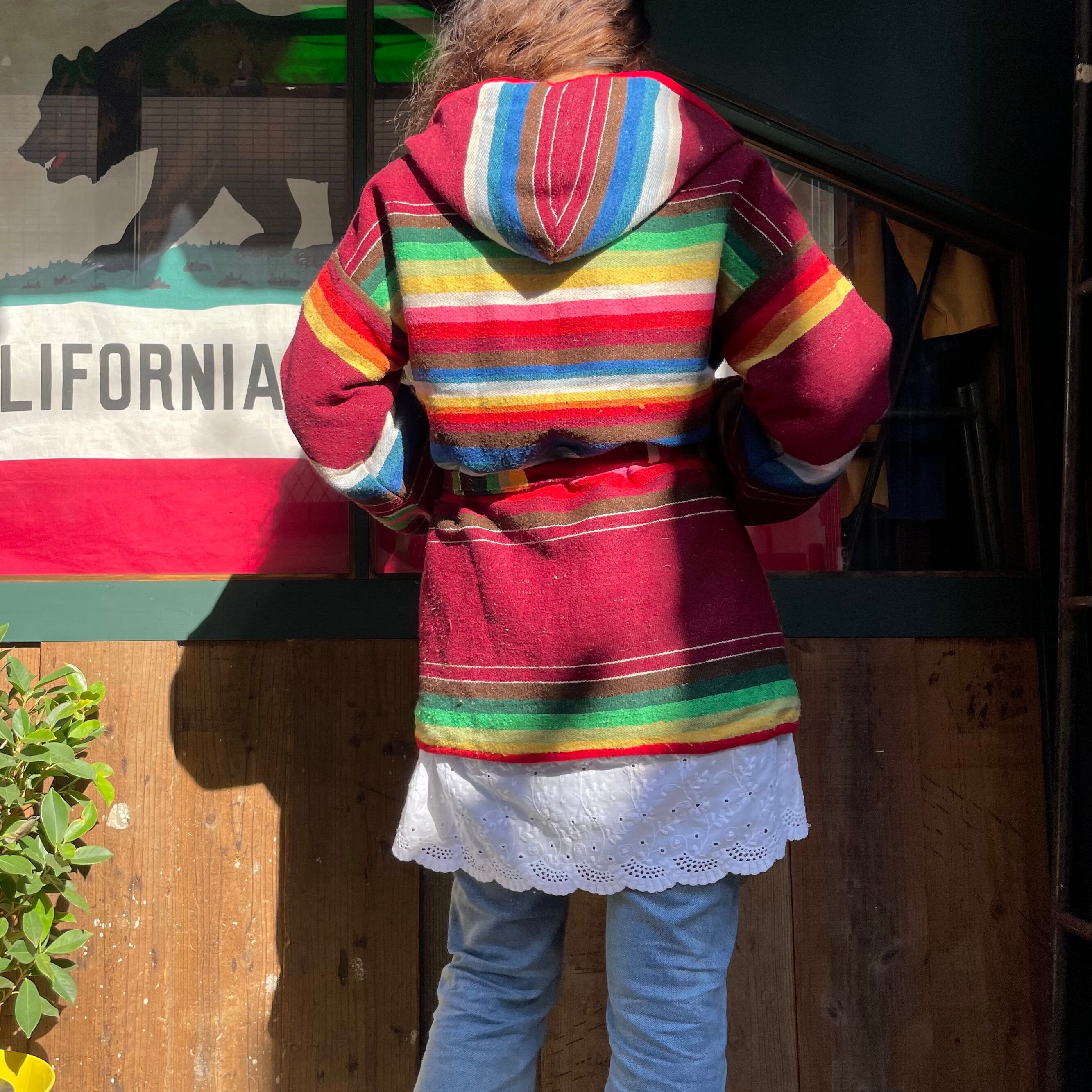 メキシカンラグランののような、ネイティブ柄のような雰囲気がとてもかわいいフード付きのガウンです。