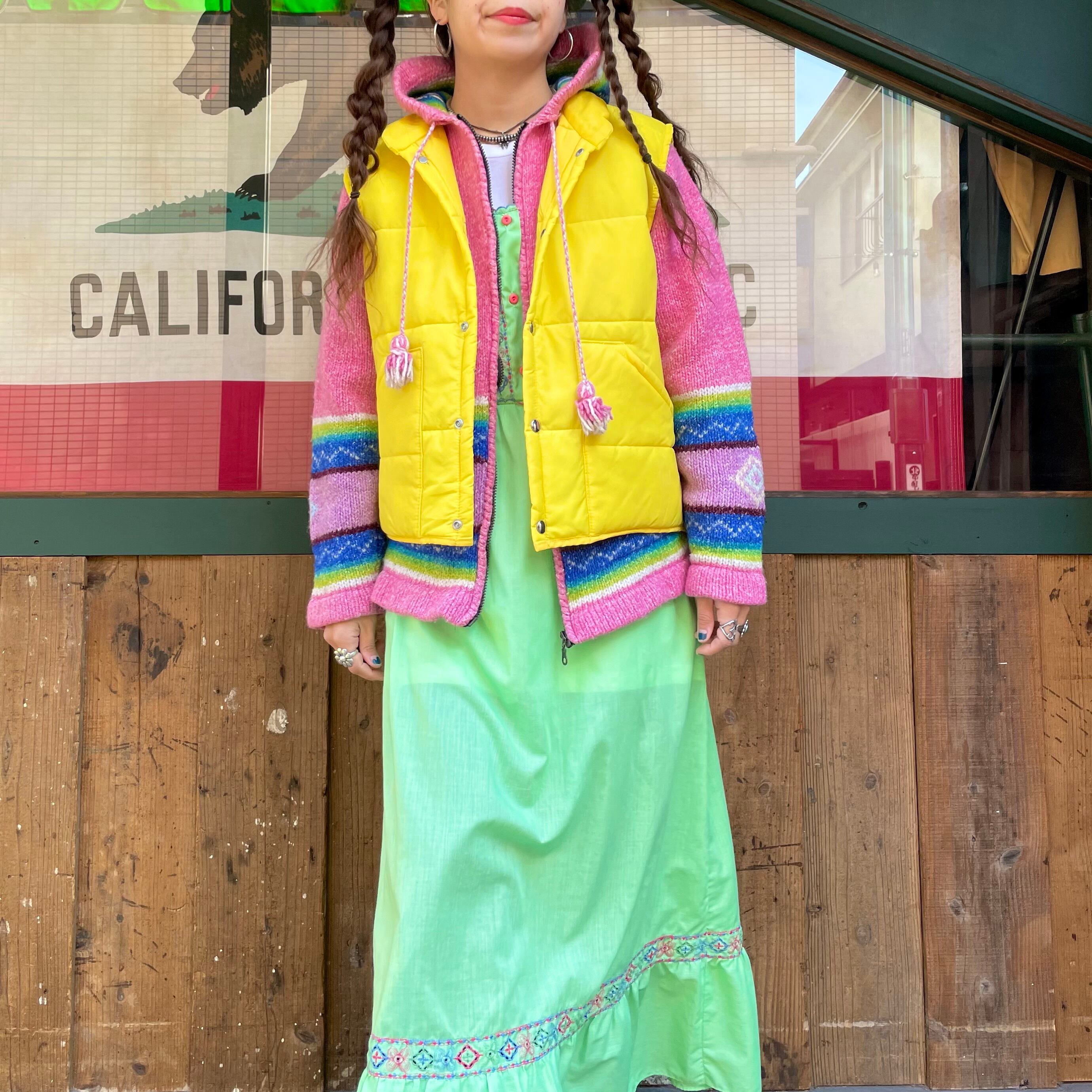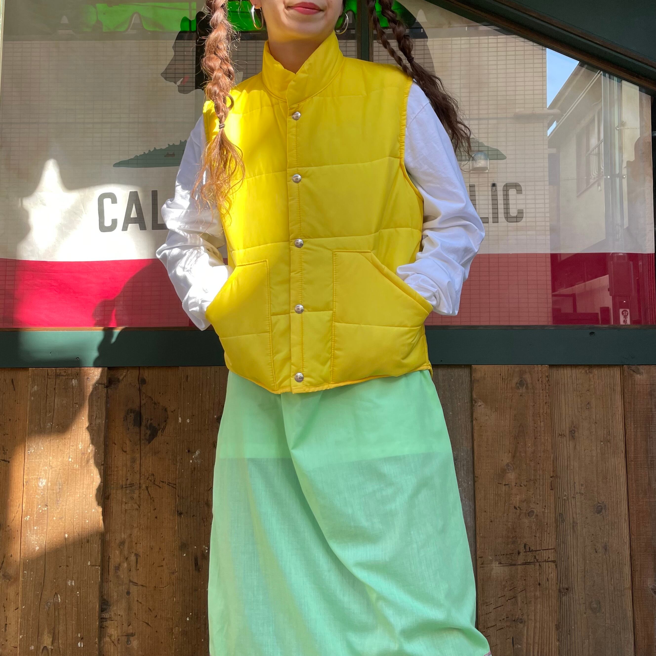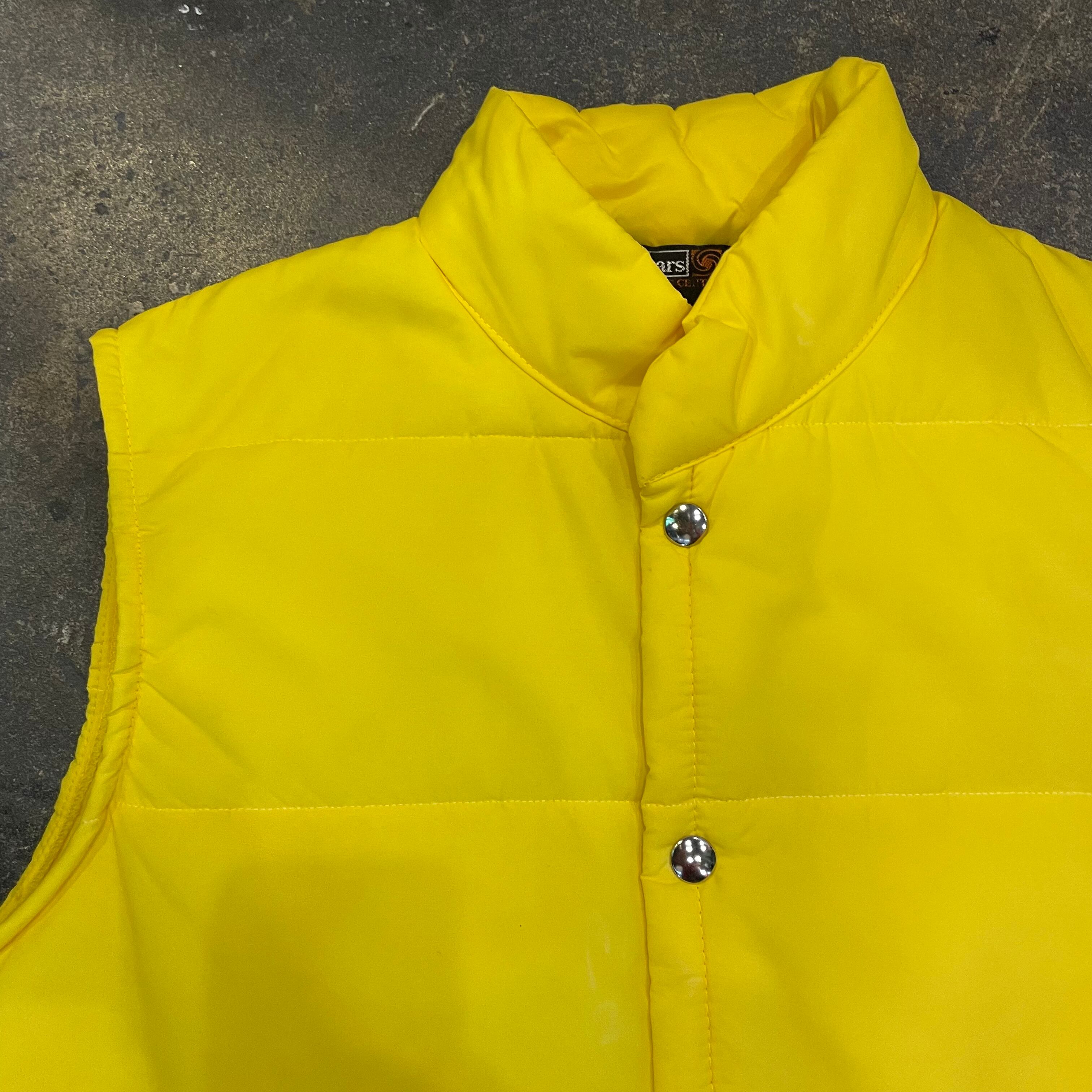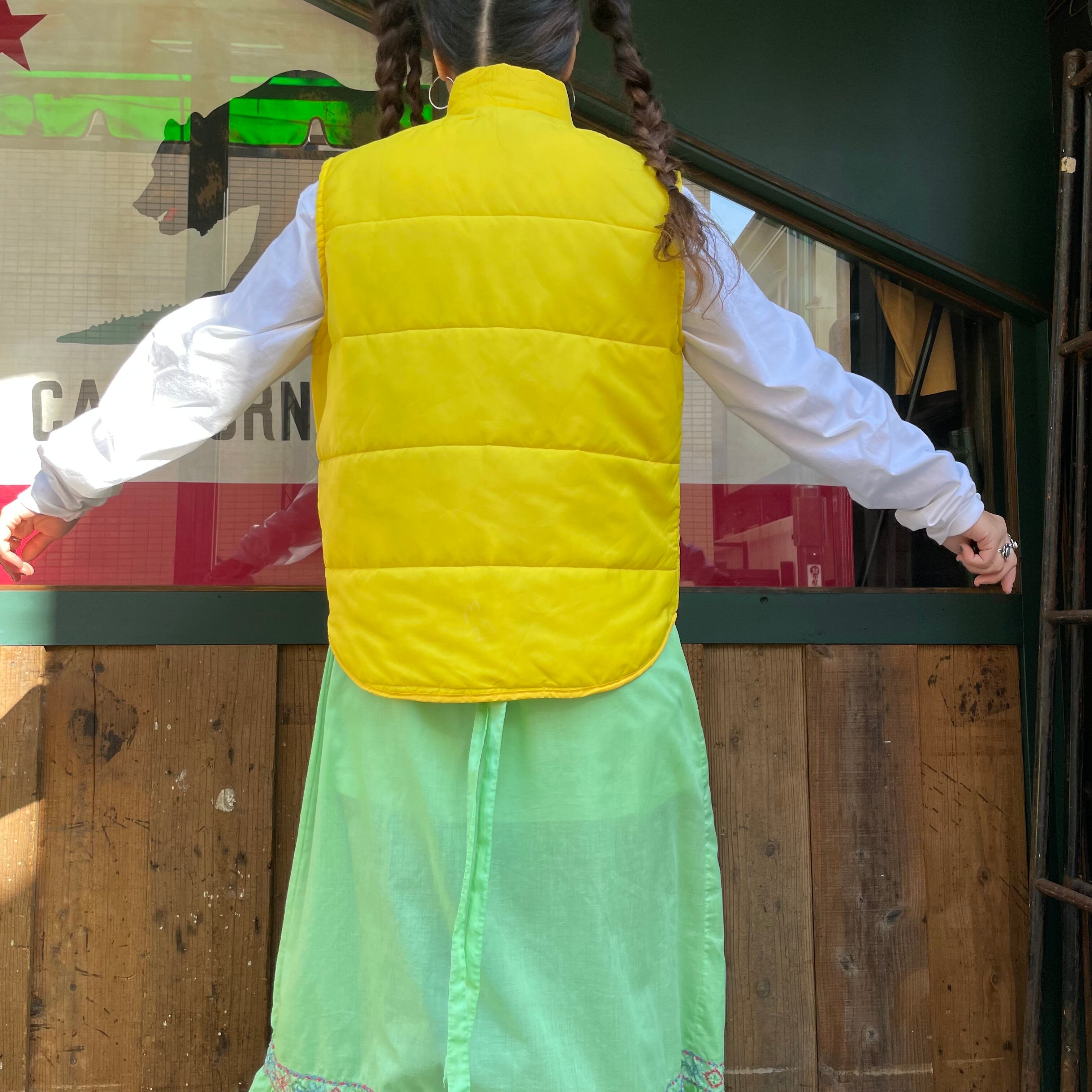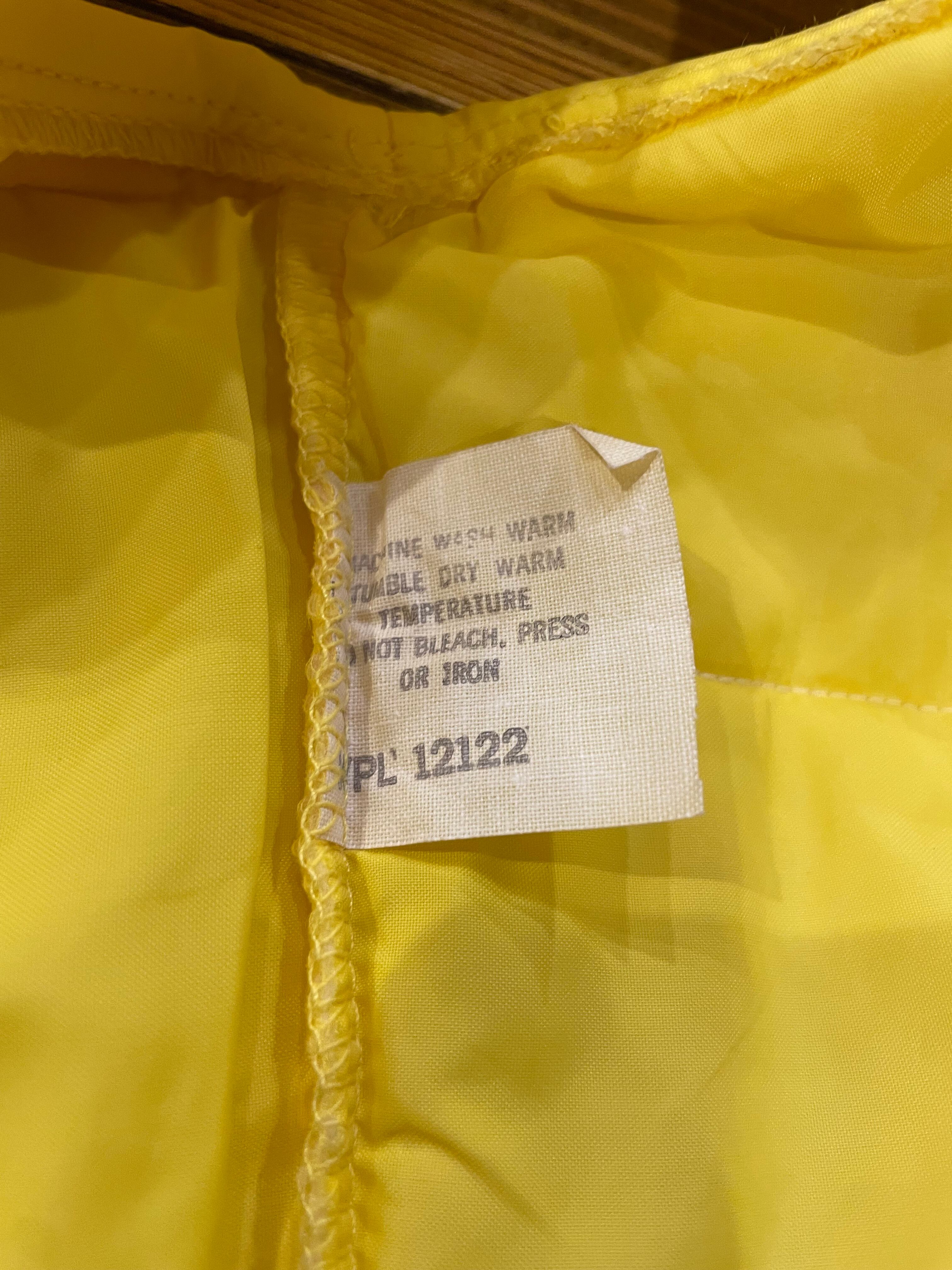 明るい元気の出る黄色がかわいい70年代頃のSearsナイロンベストです。