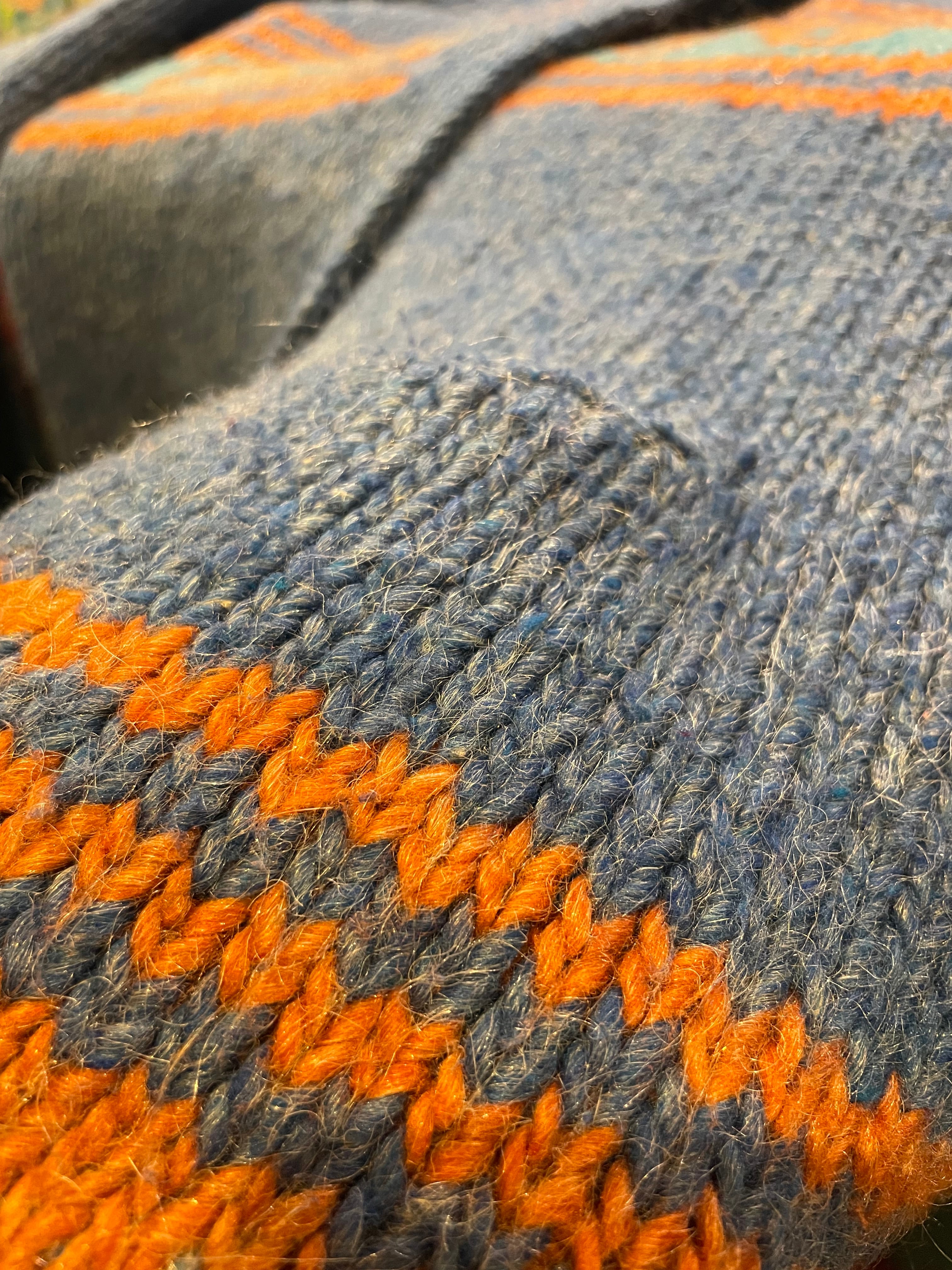 青×オレンジがかわいいしっかり厚手のニットガウンです。