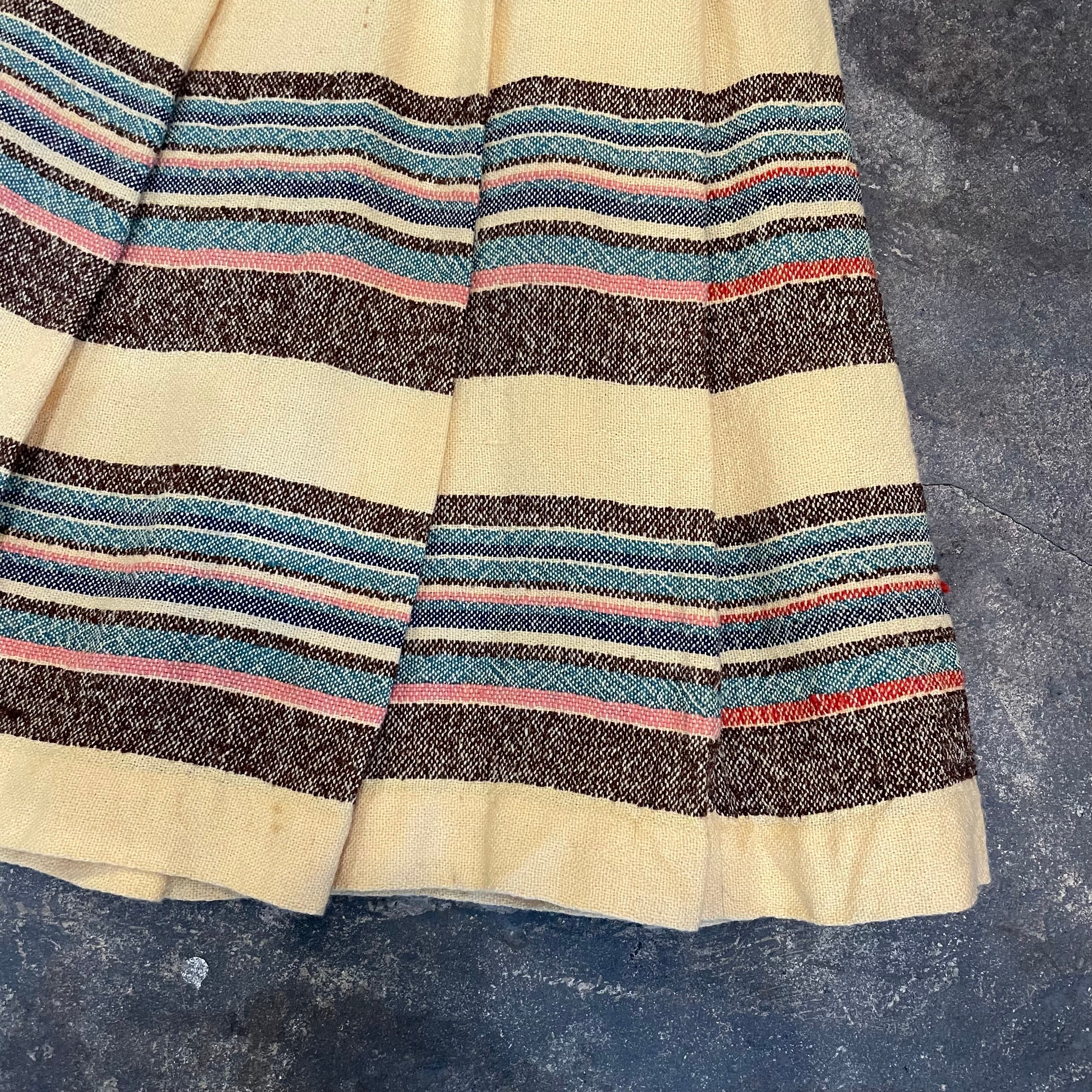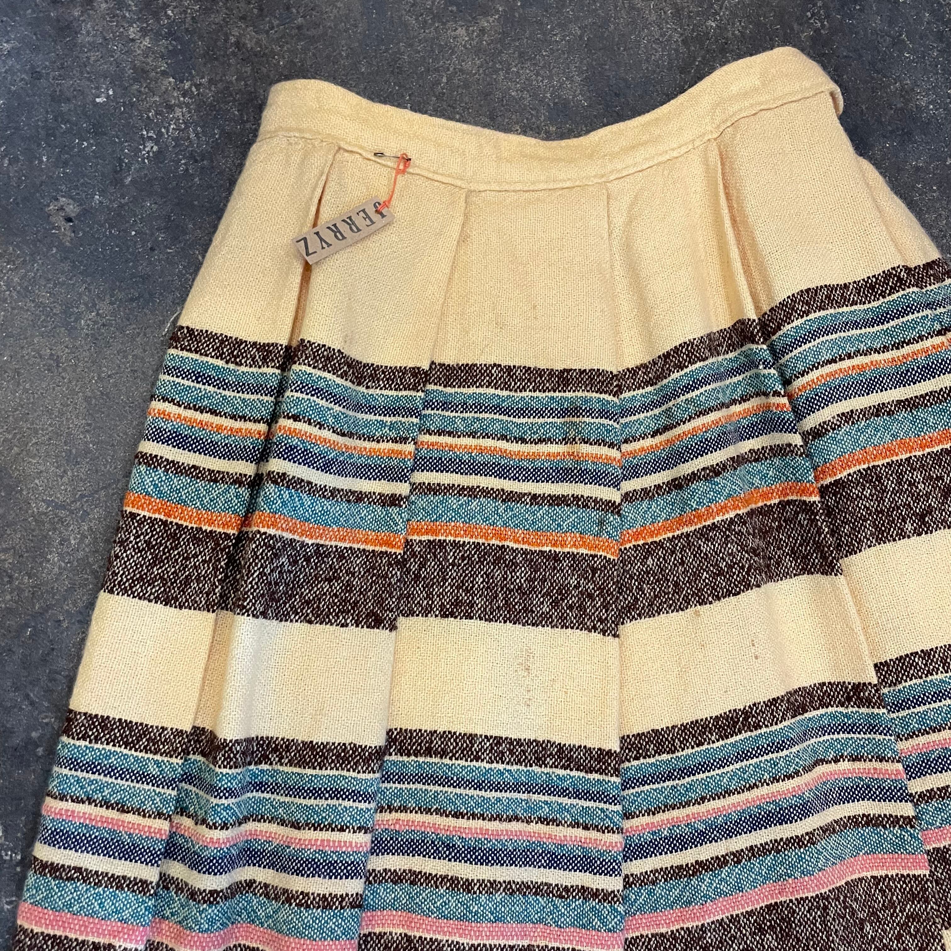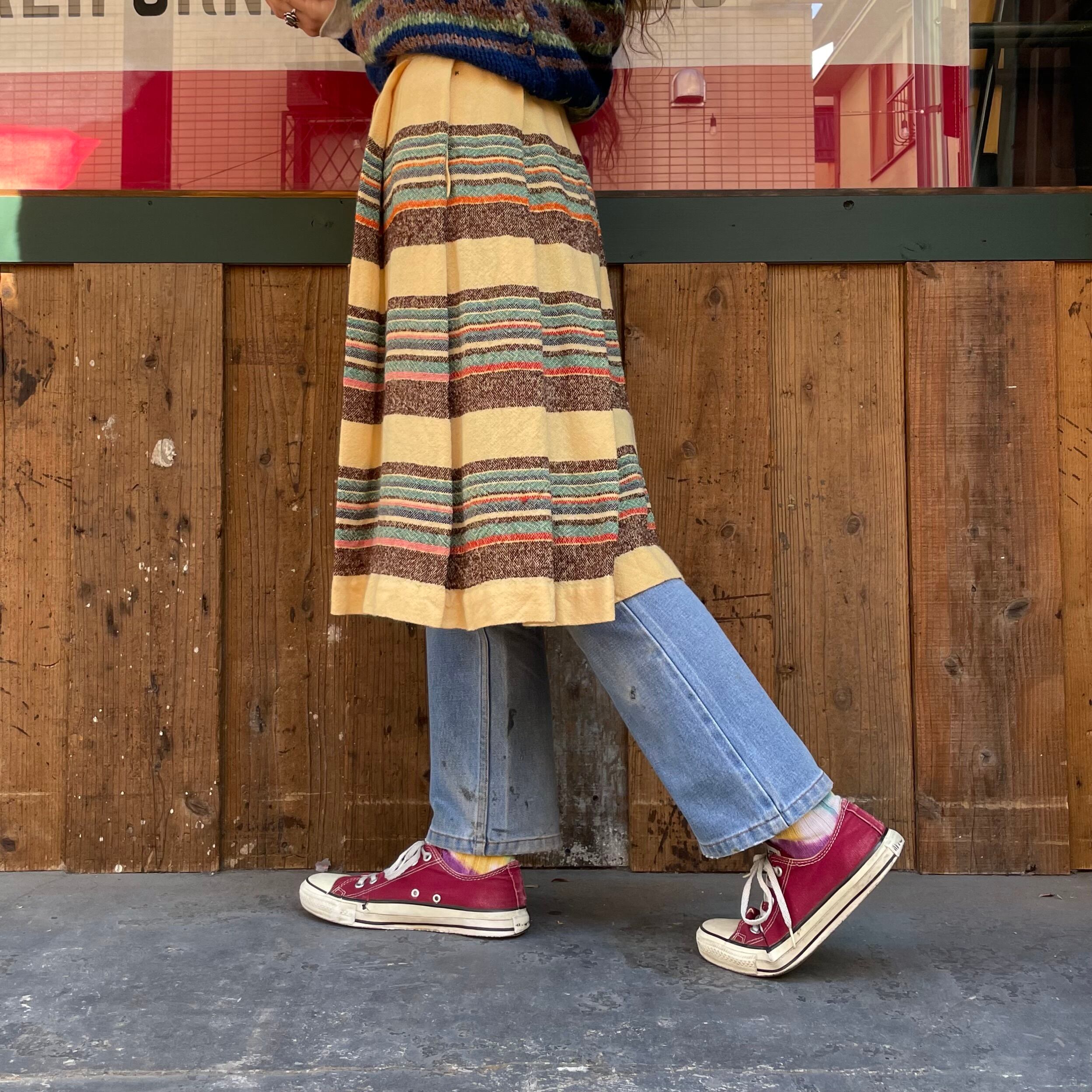 ボーダーの色味がかわいい、プリーツスカートです。プリーツの幅も太くて良いですね。