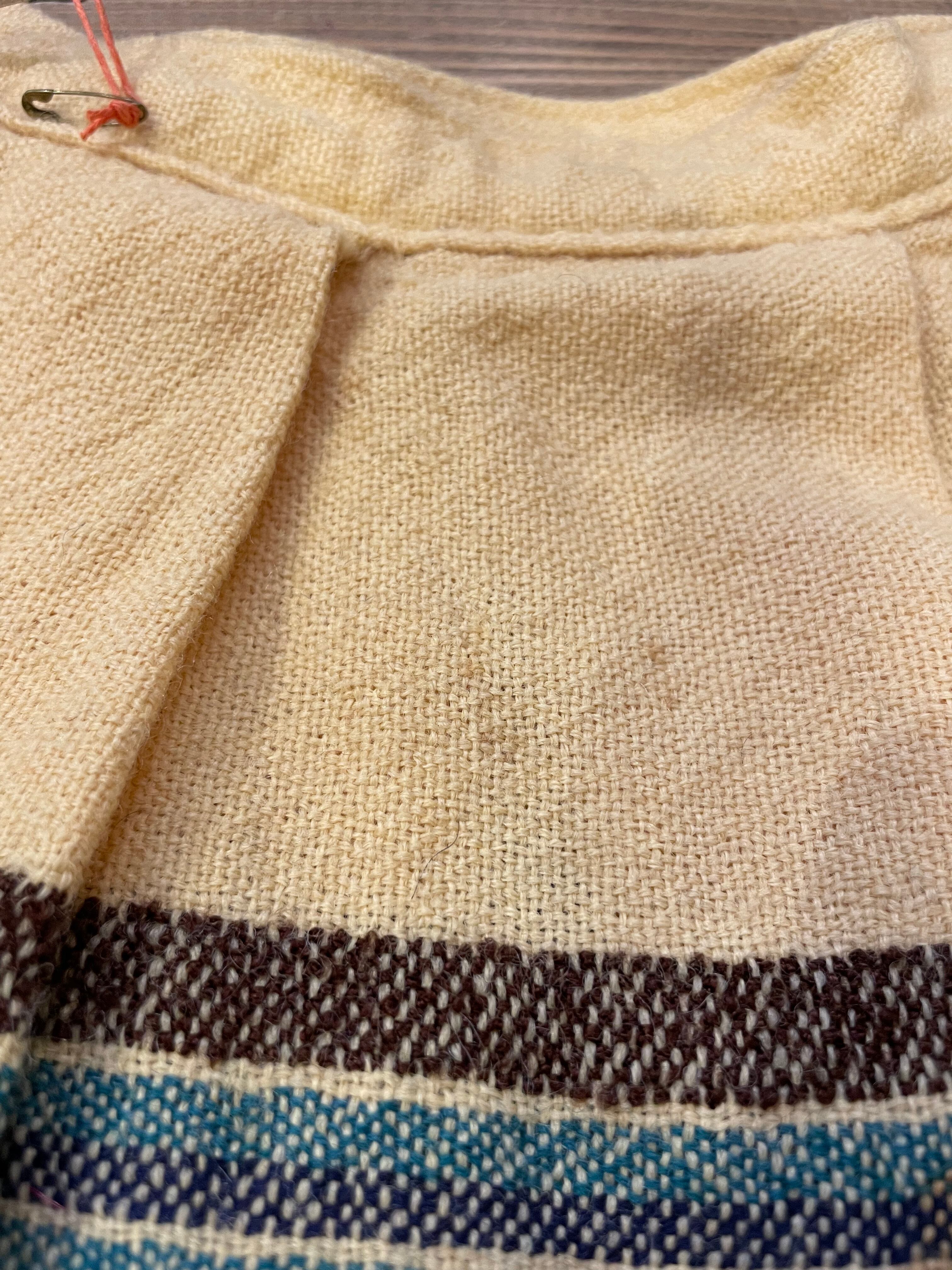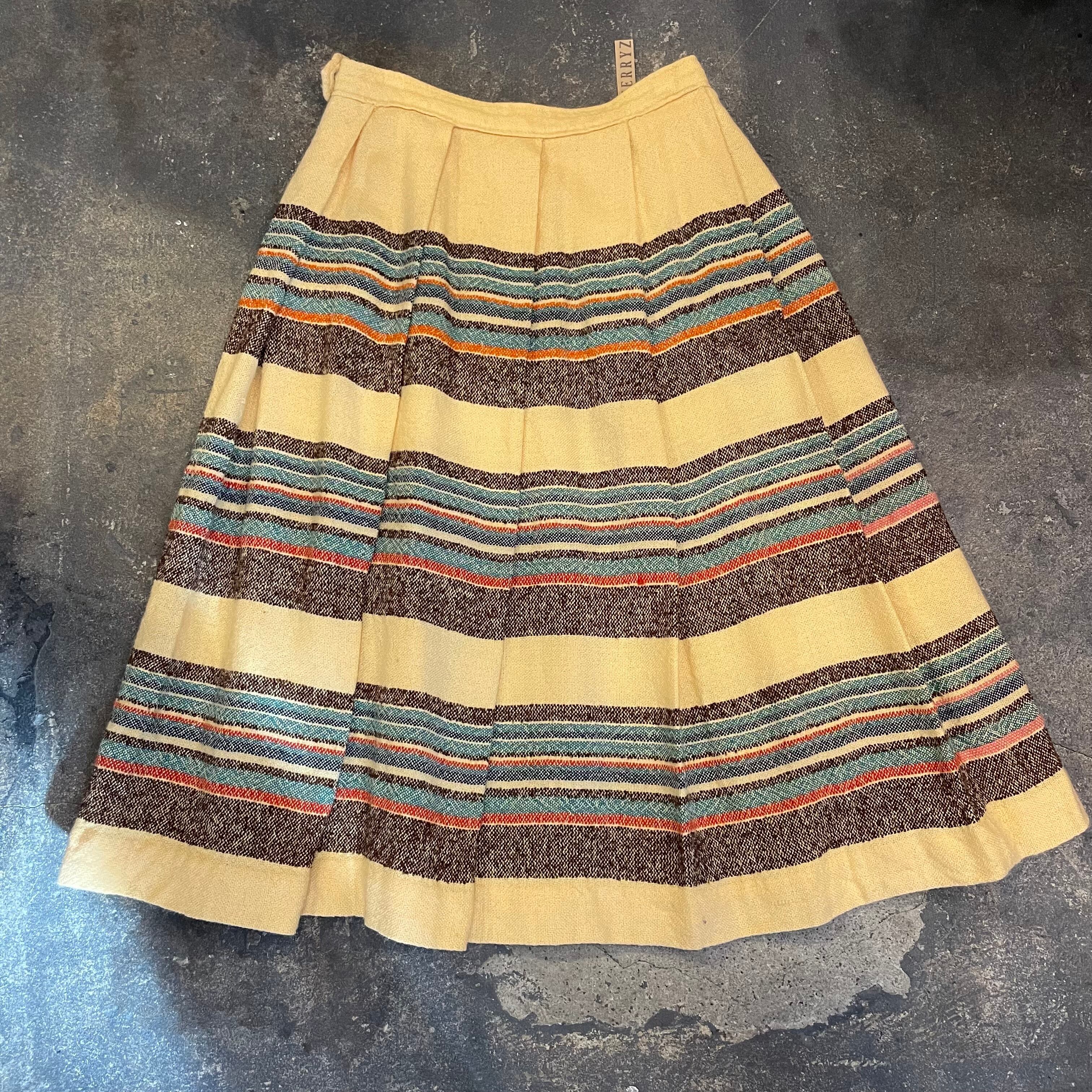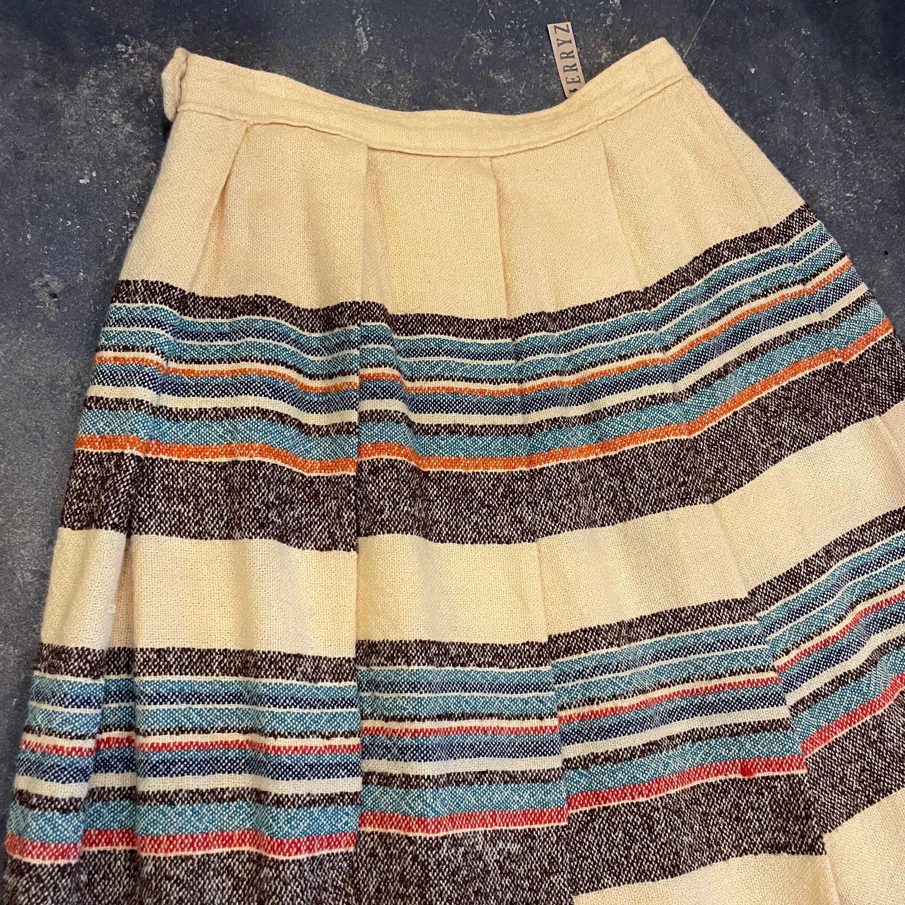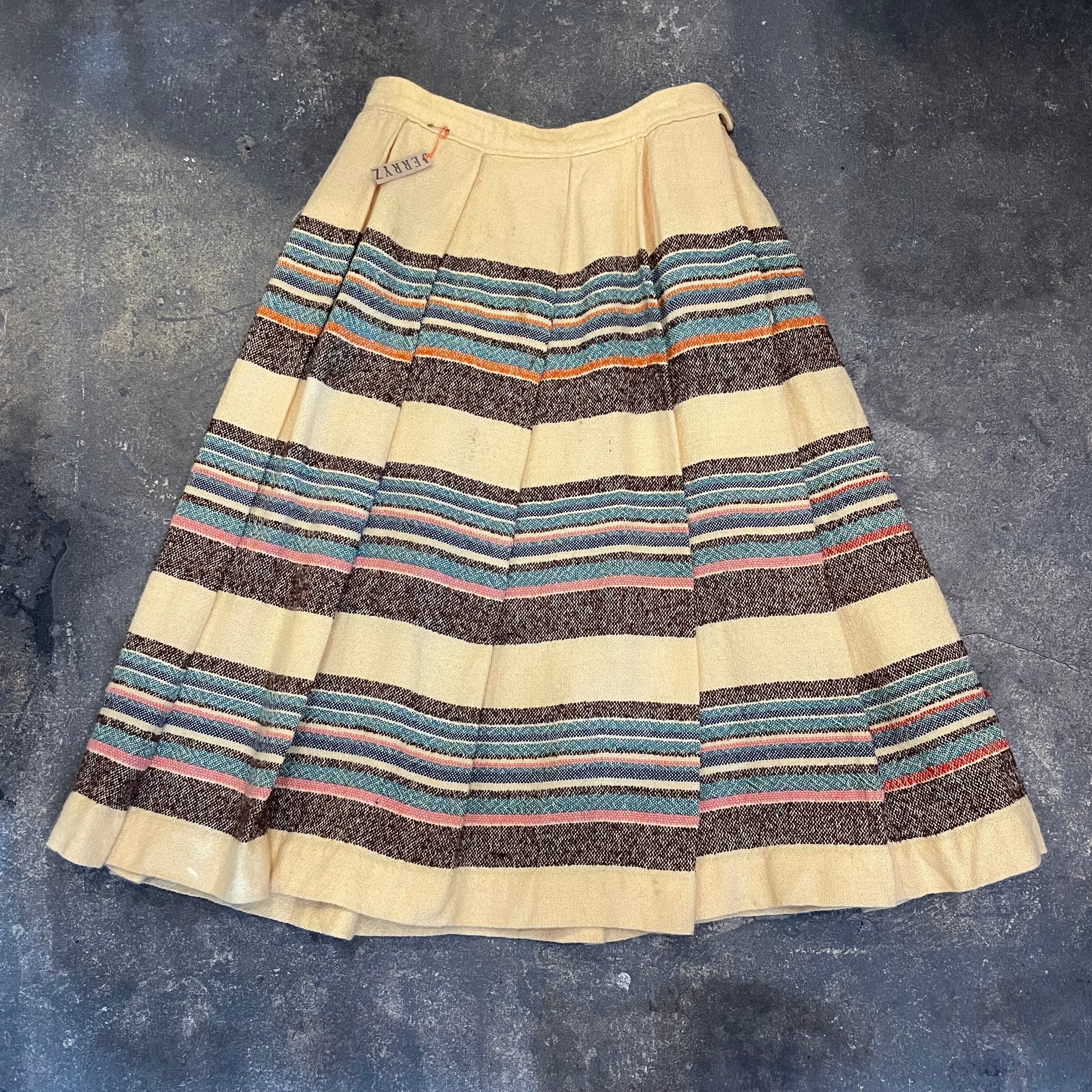 ボーダーの色味がかわいい、プリーツスカートです。プリーツの幅も太くて良いですね。