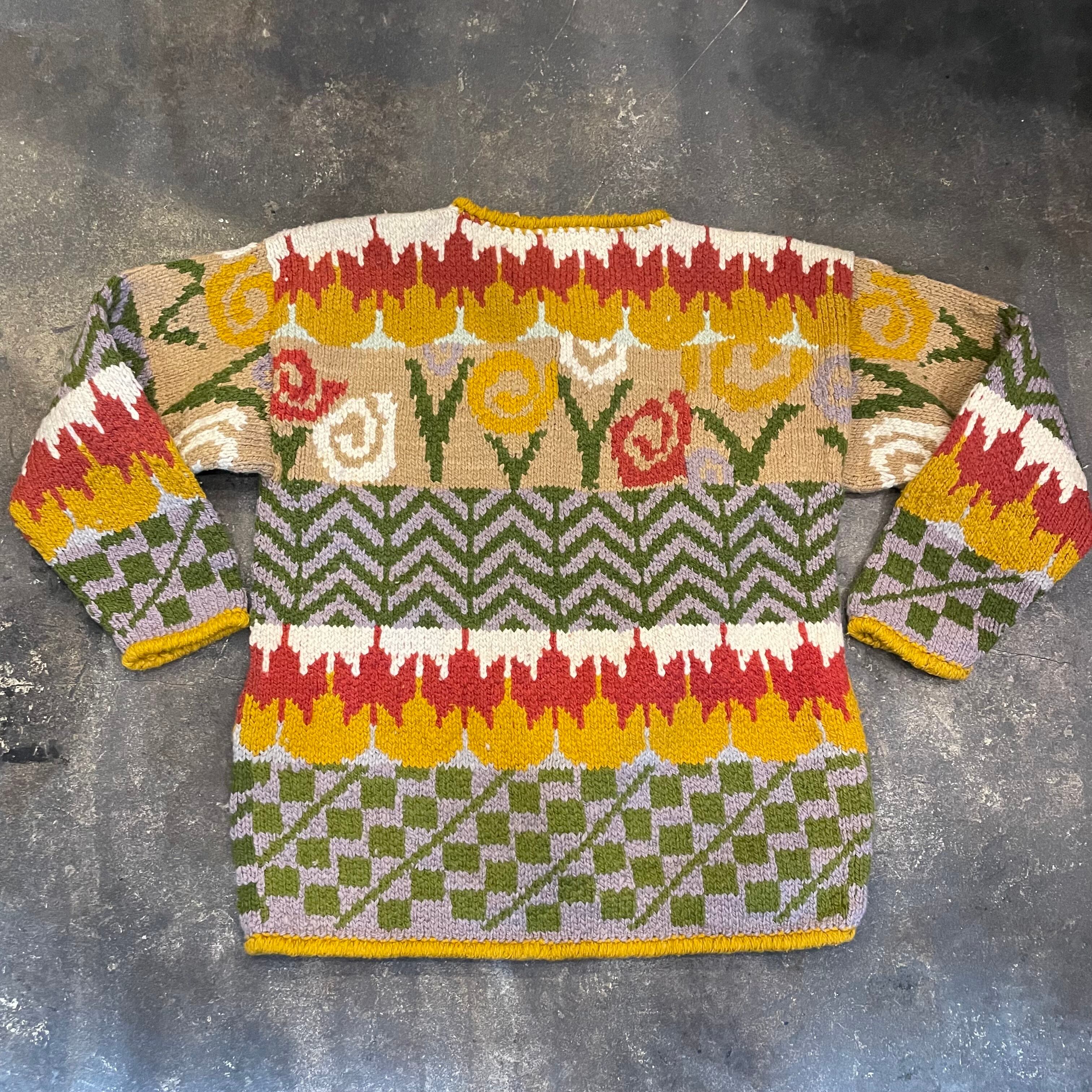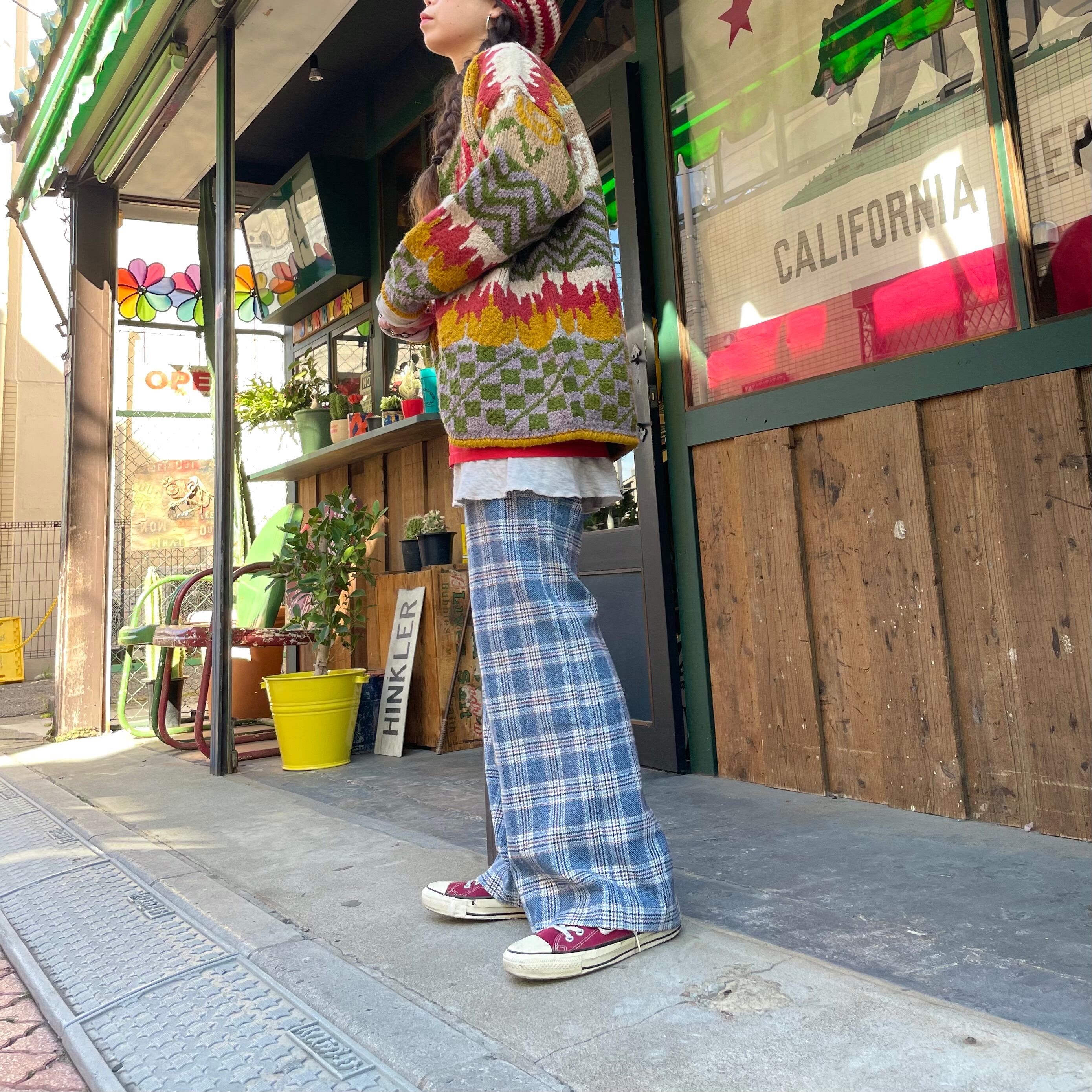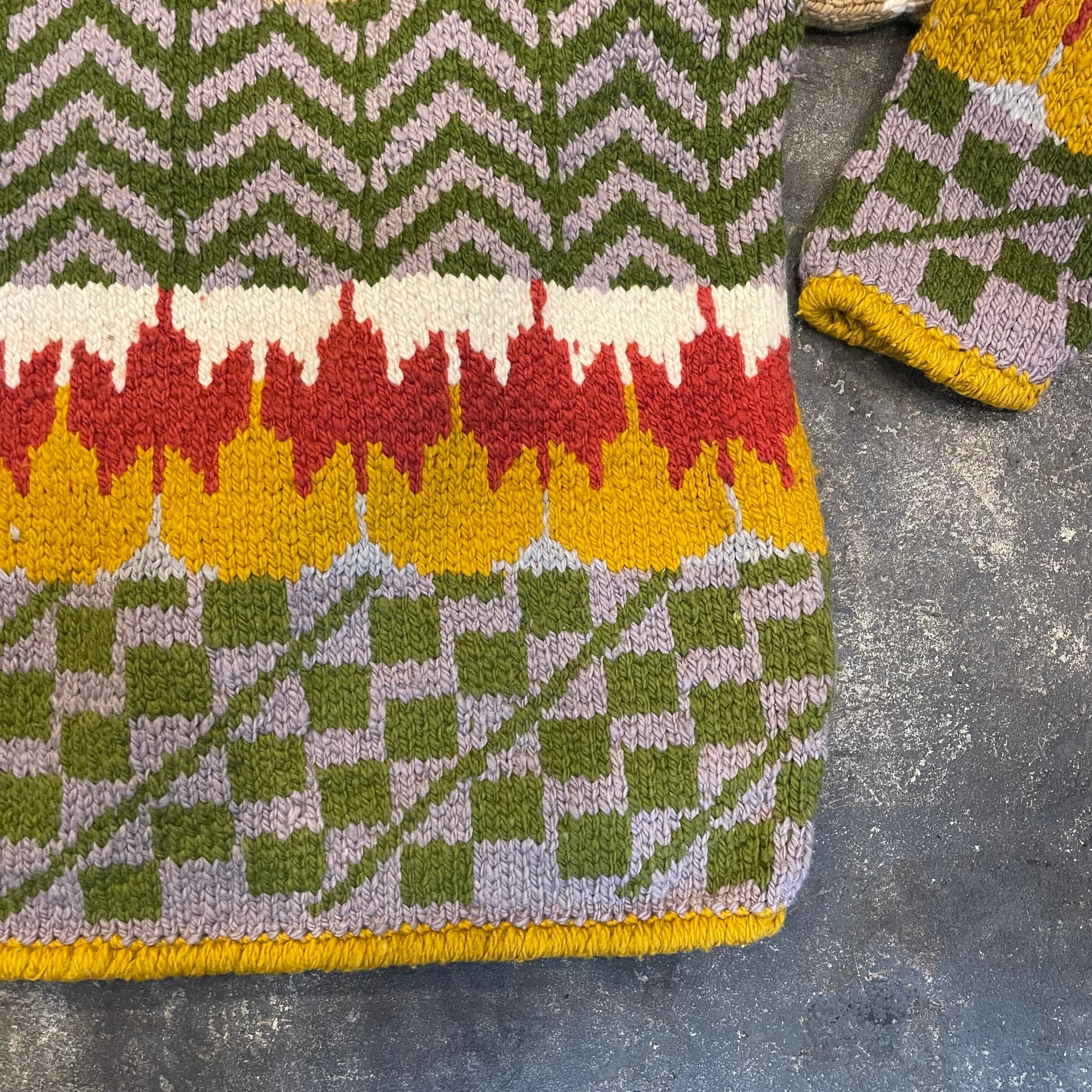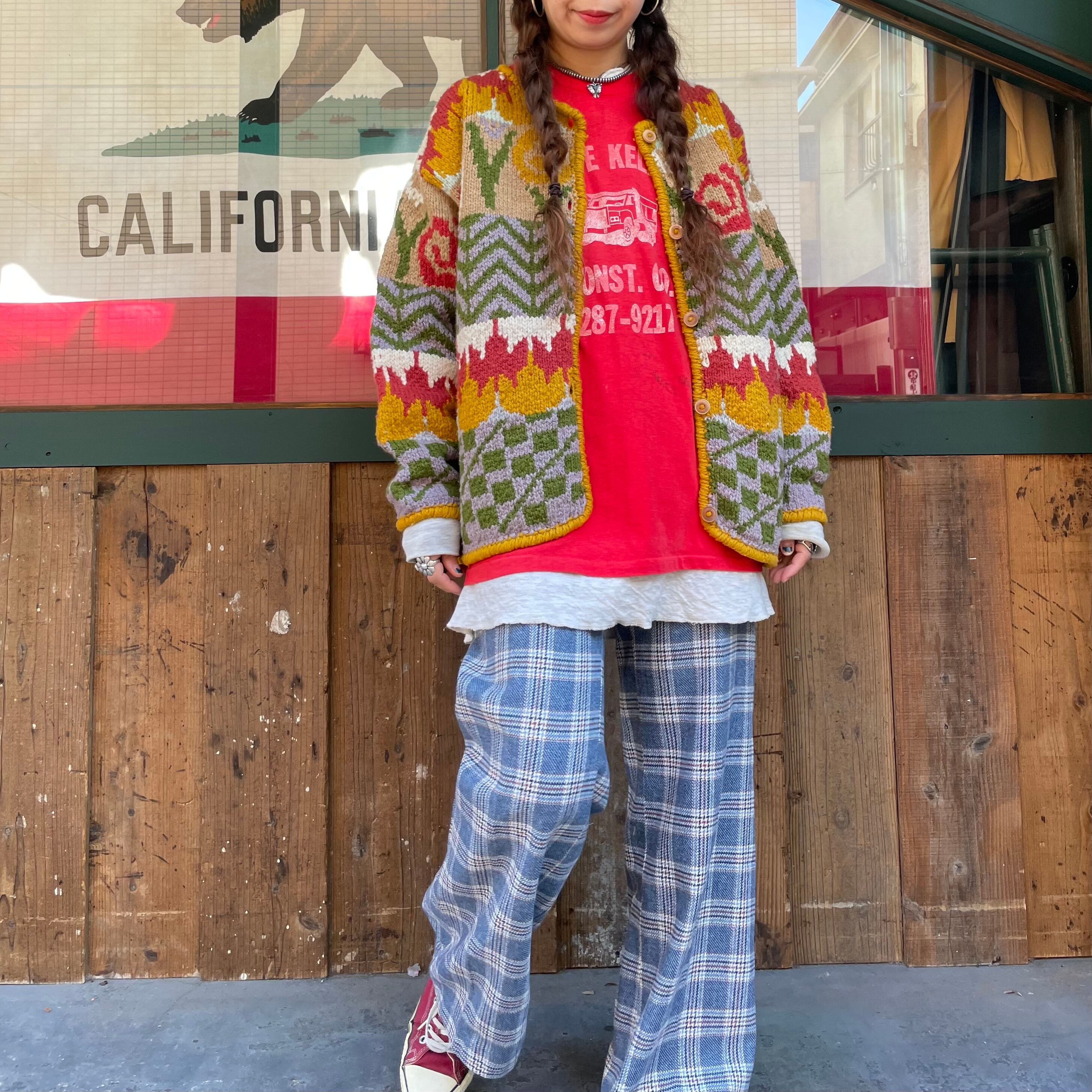 落ち着いた色のトーンですが柄は激しめでかわいいカーディガンです。