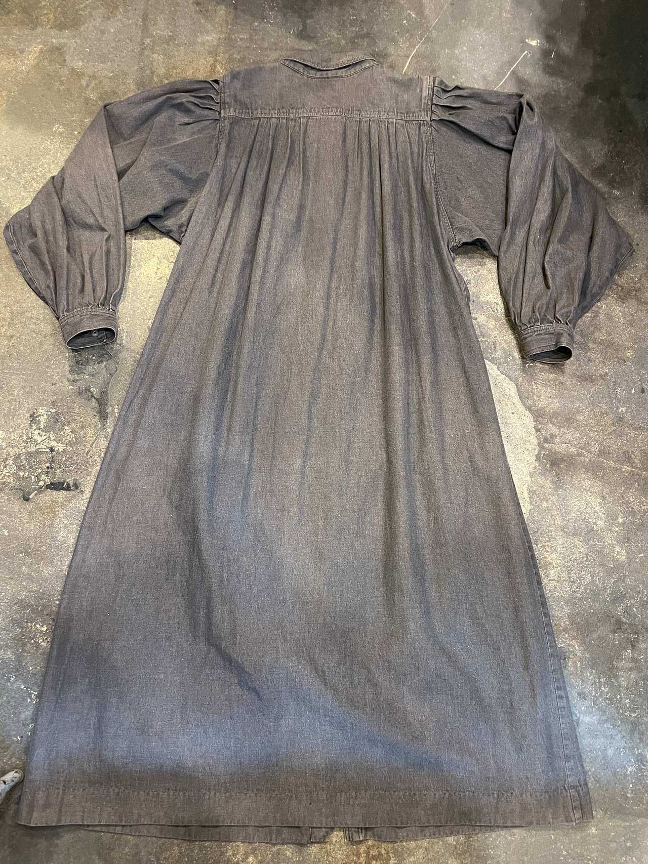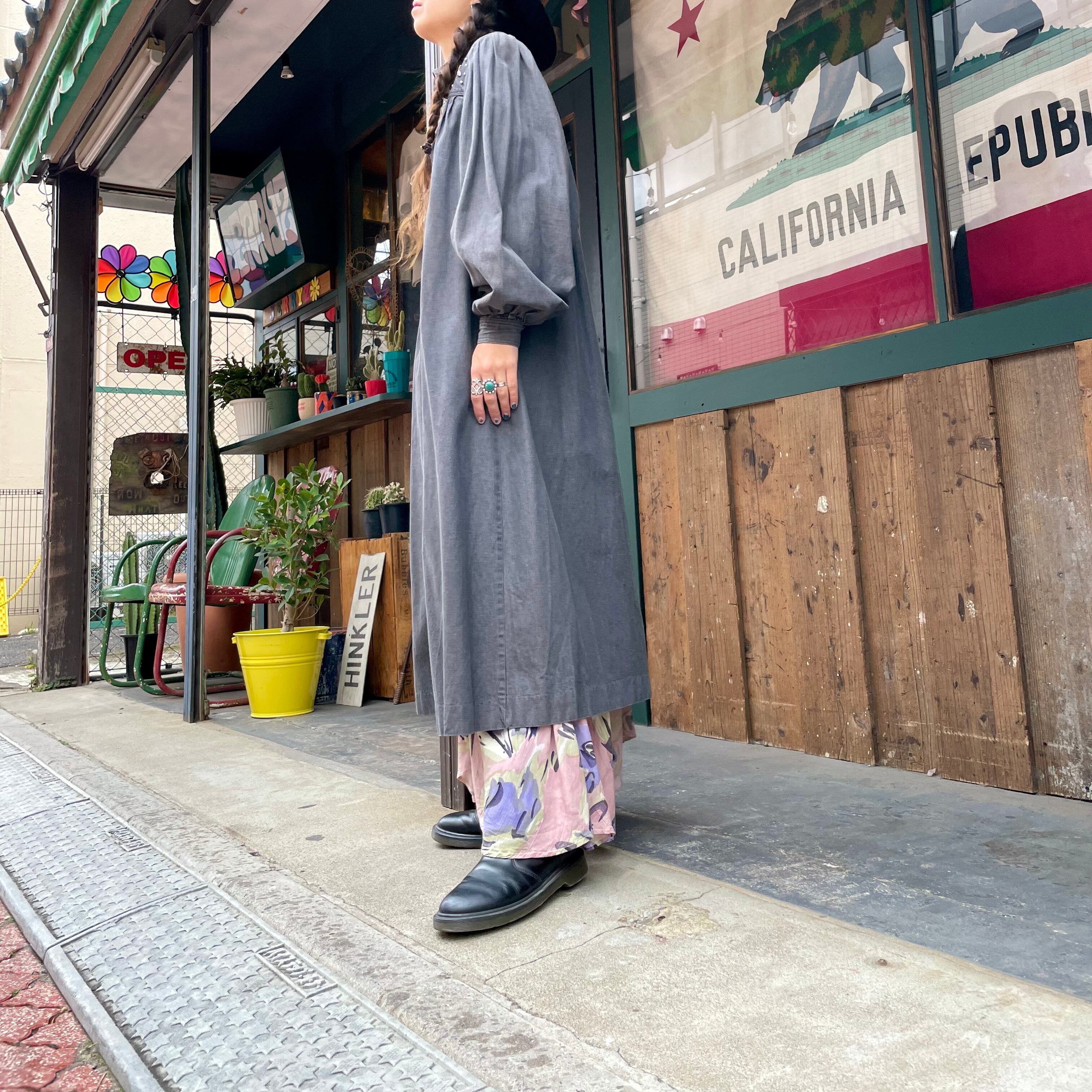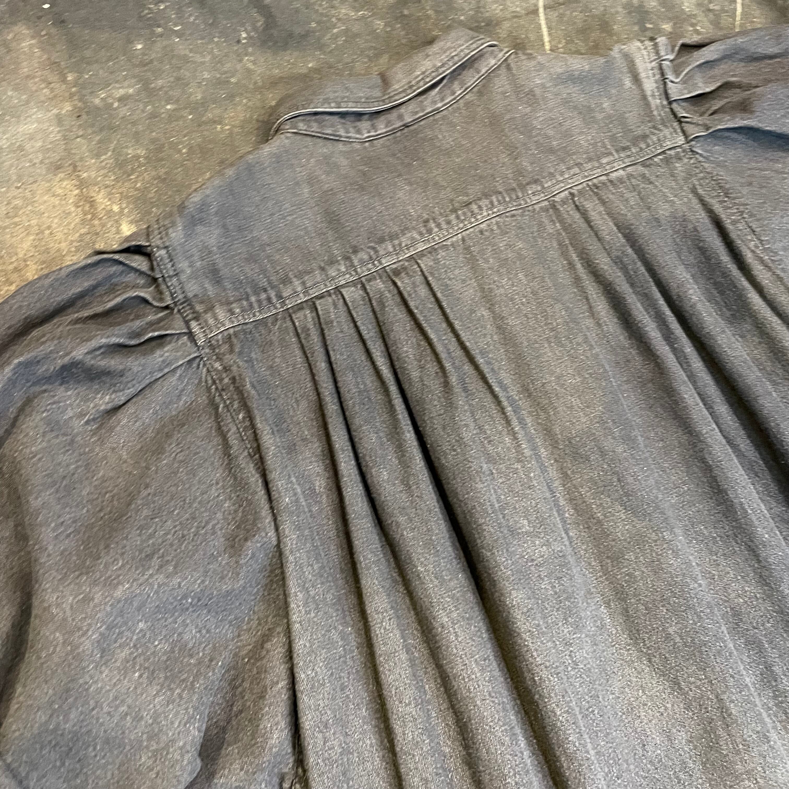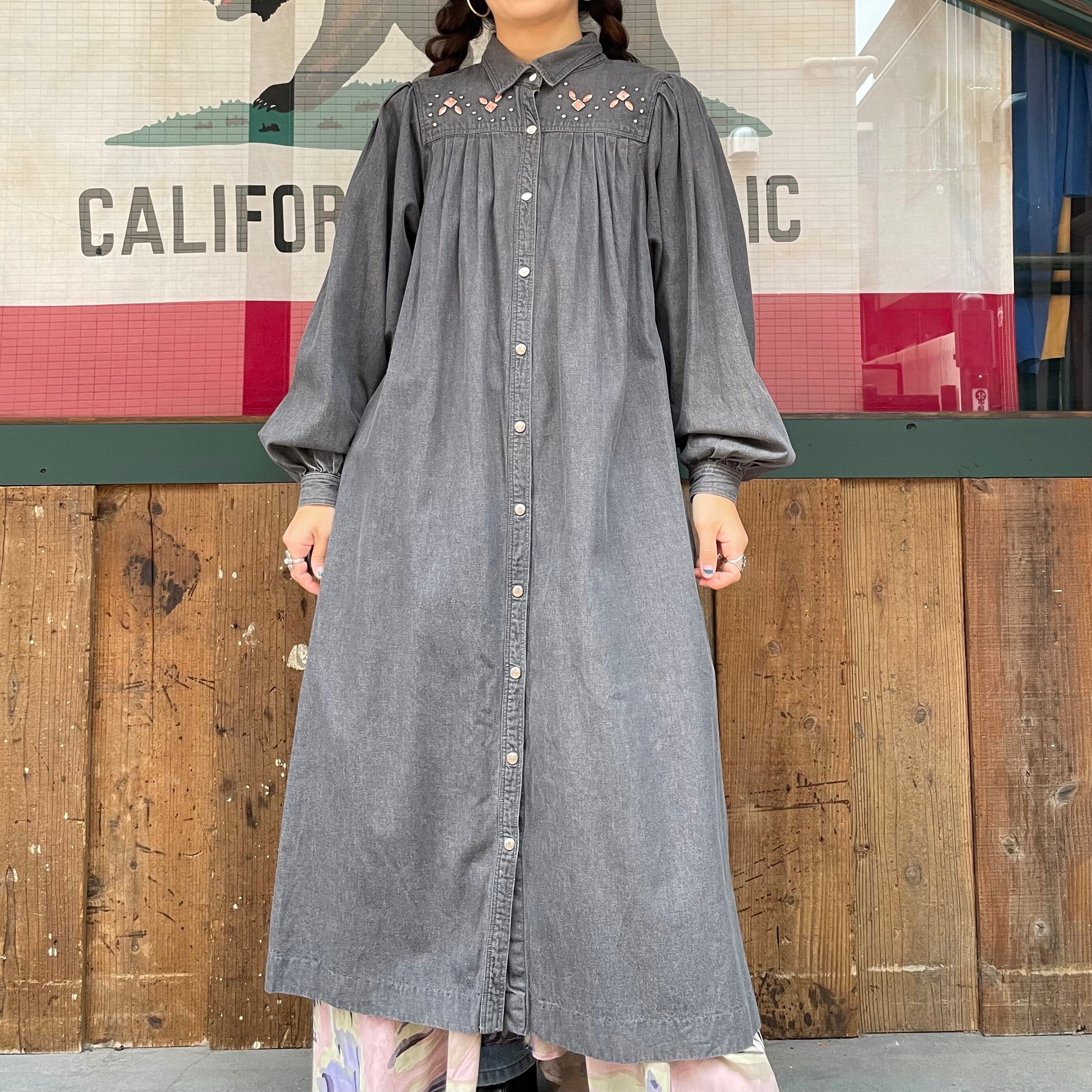 色褪せたブラックデニムのような雰囲気の素材がかっこいいワンピースです。