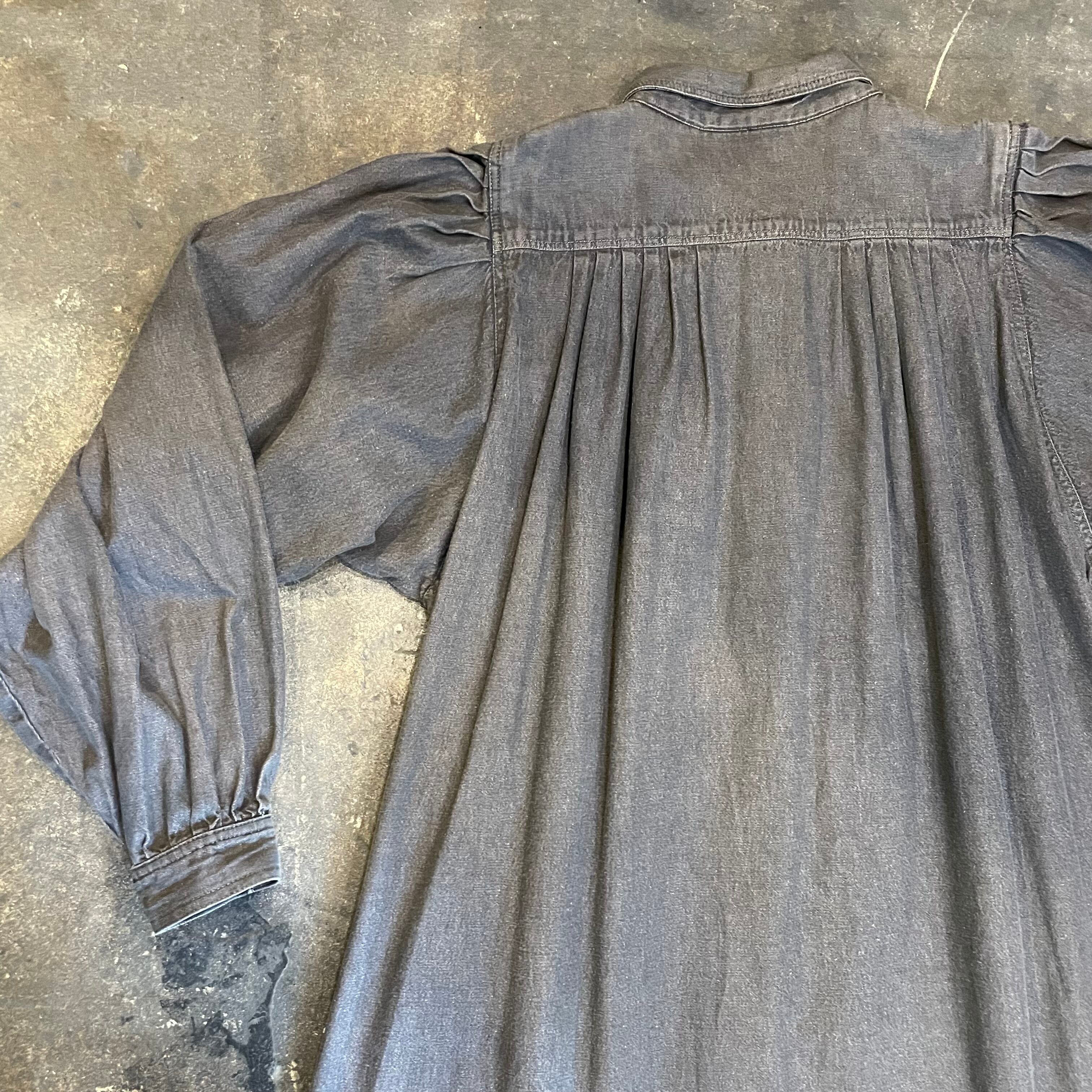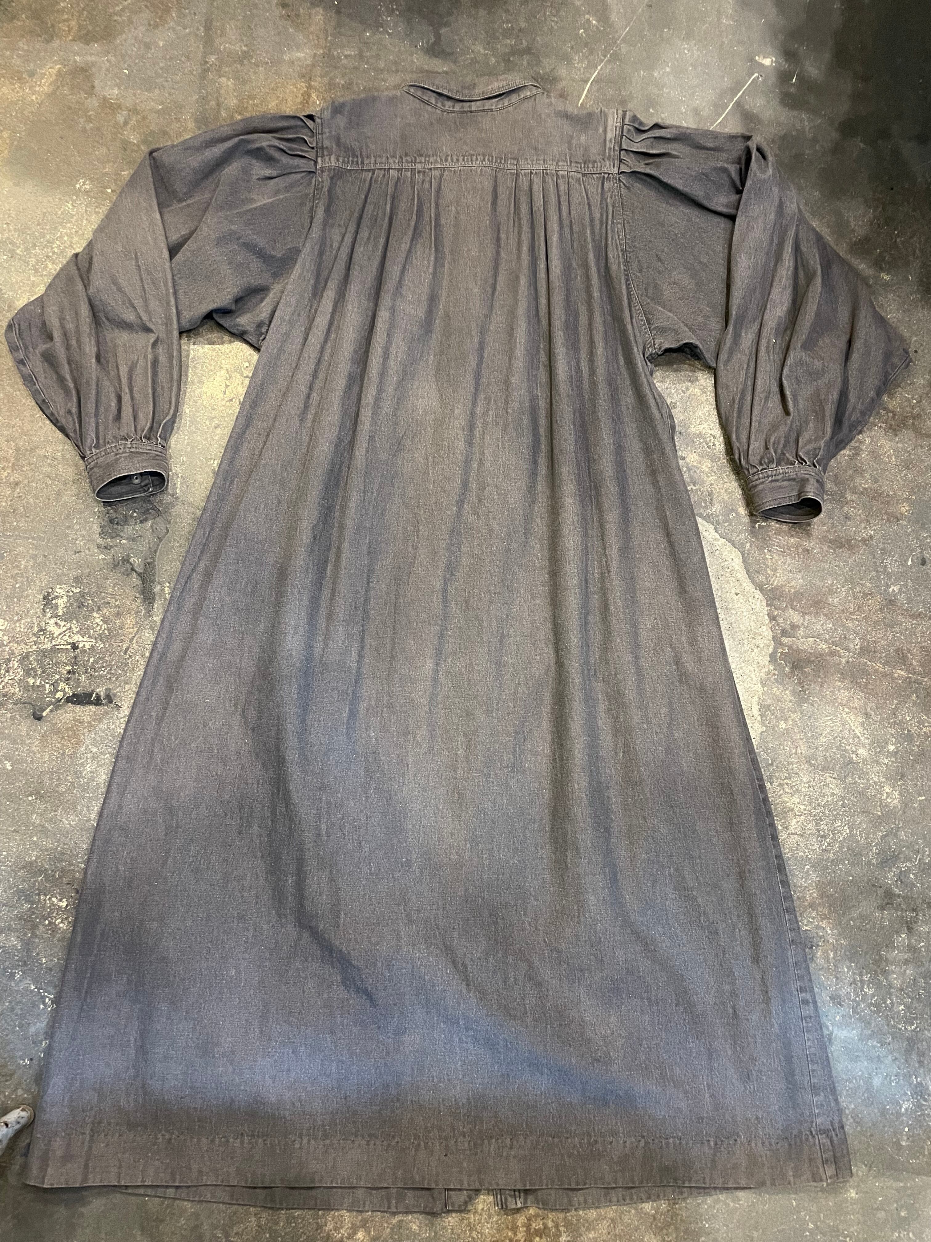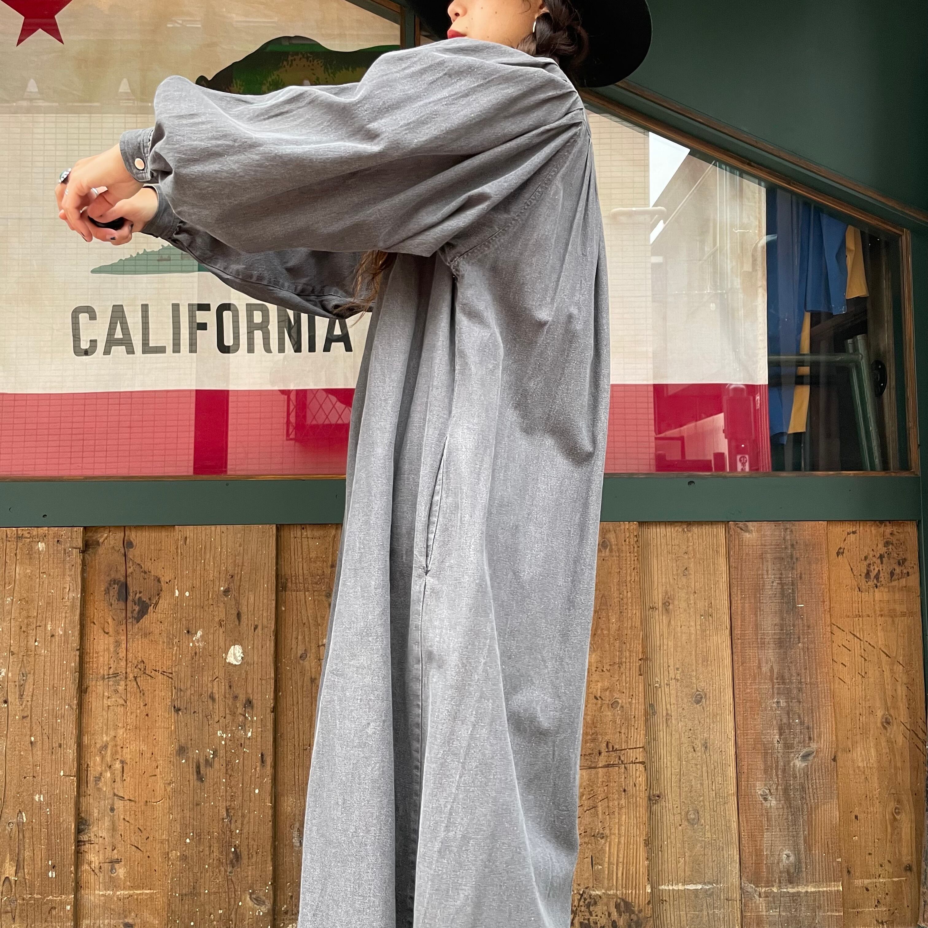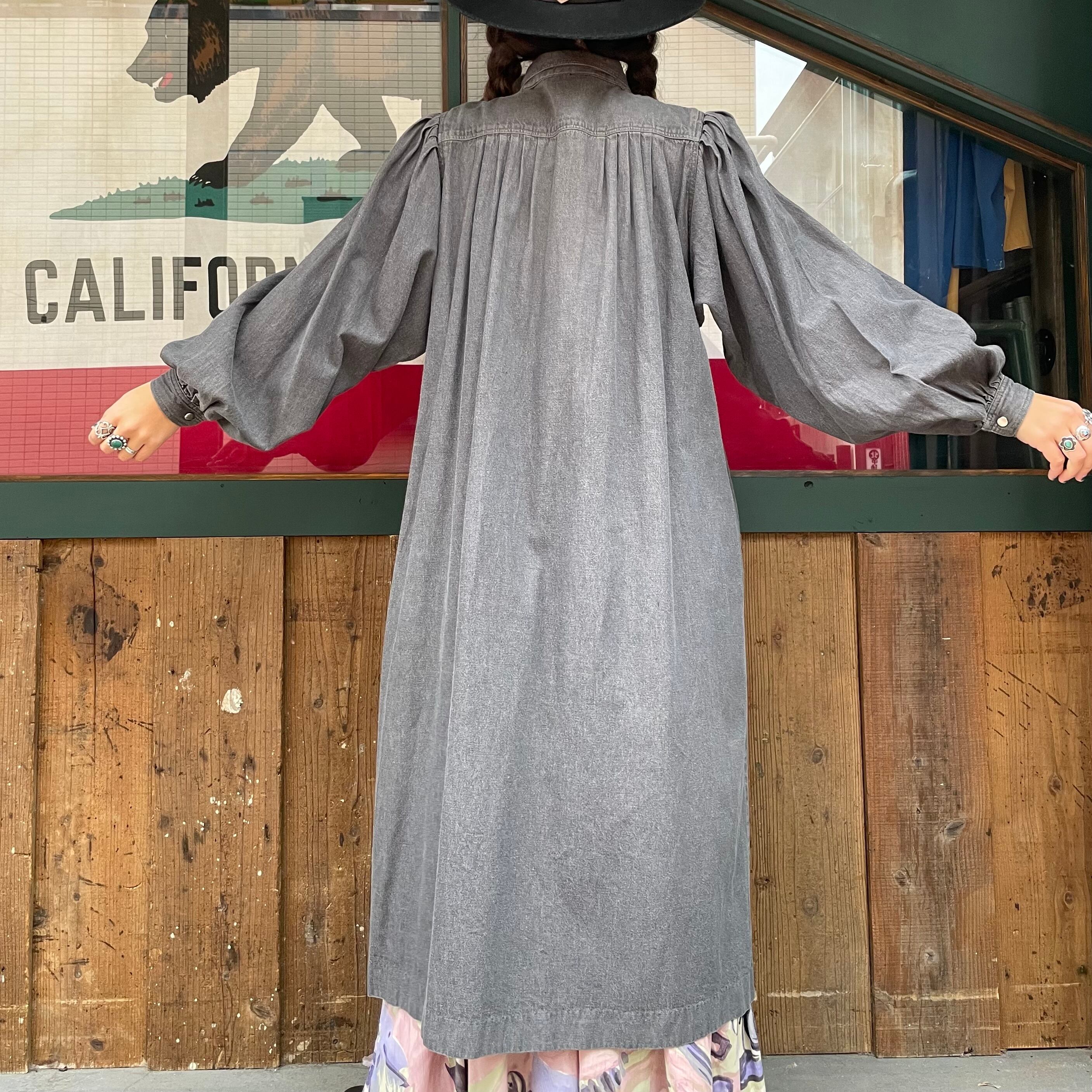 色褪せたブラックデニムのような雰囲気の素材がかっこいいワンピースです。