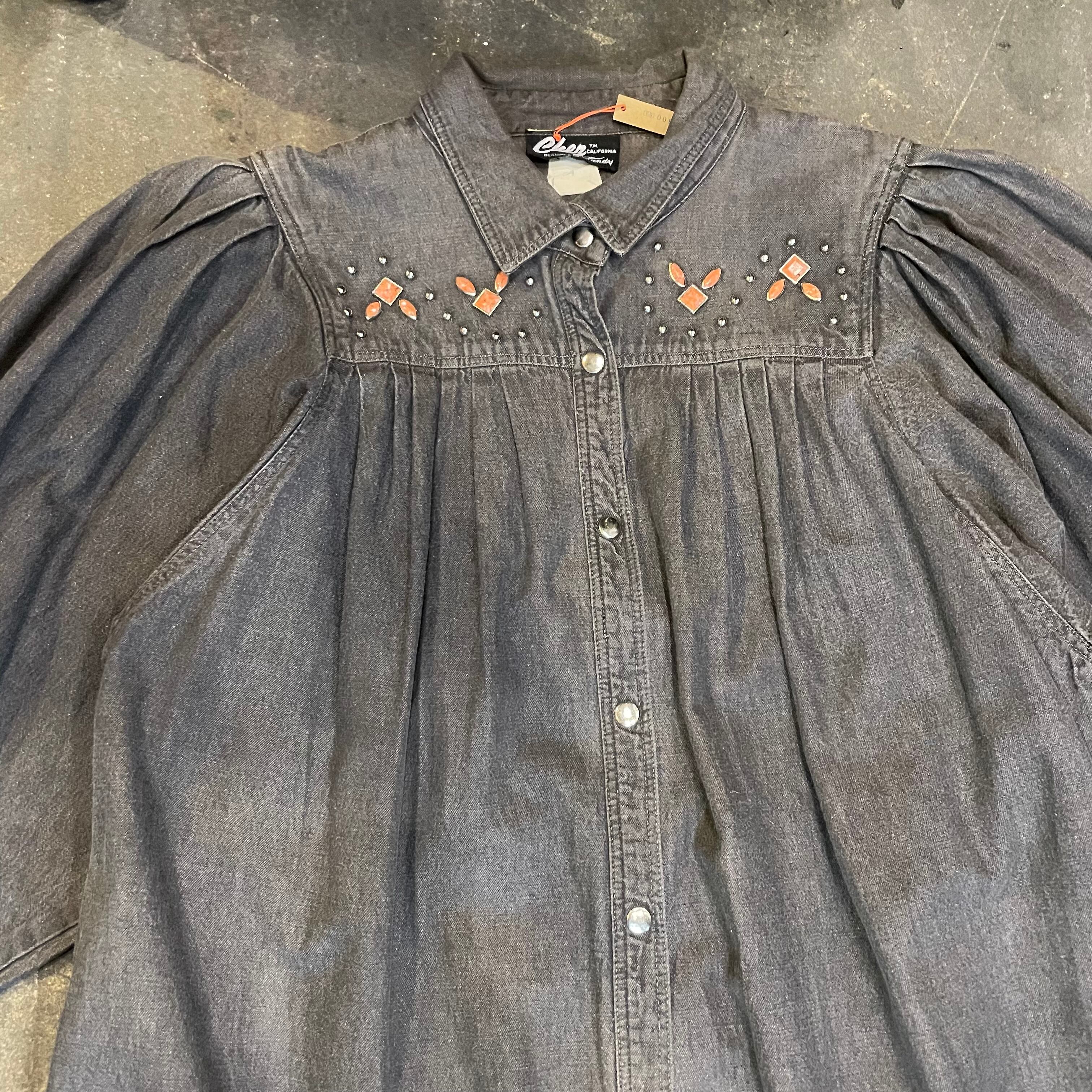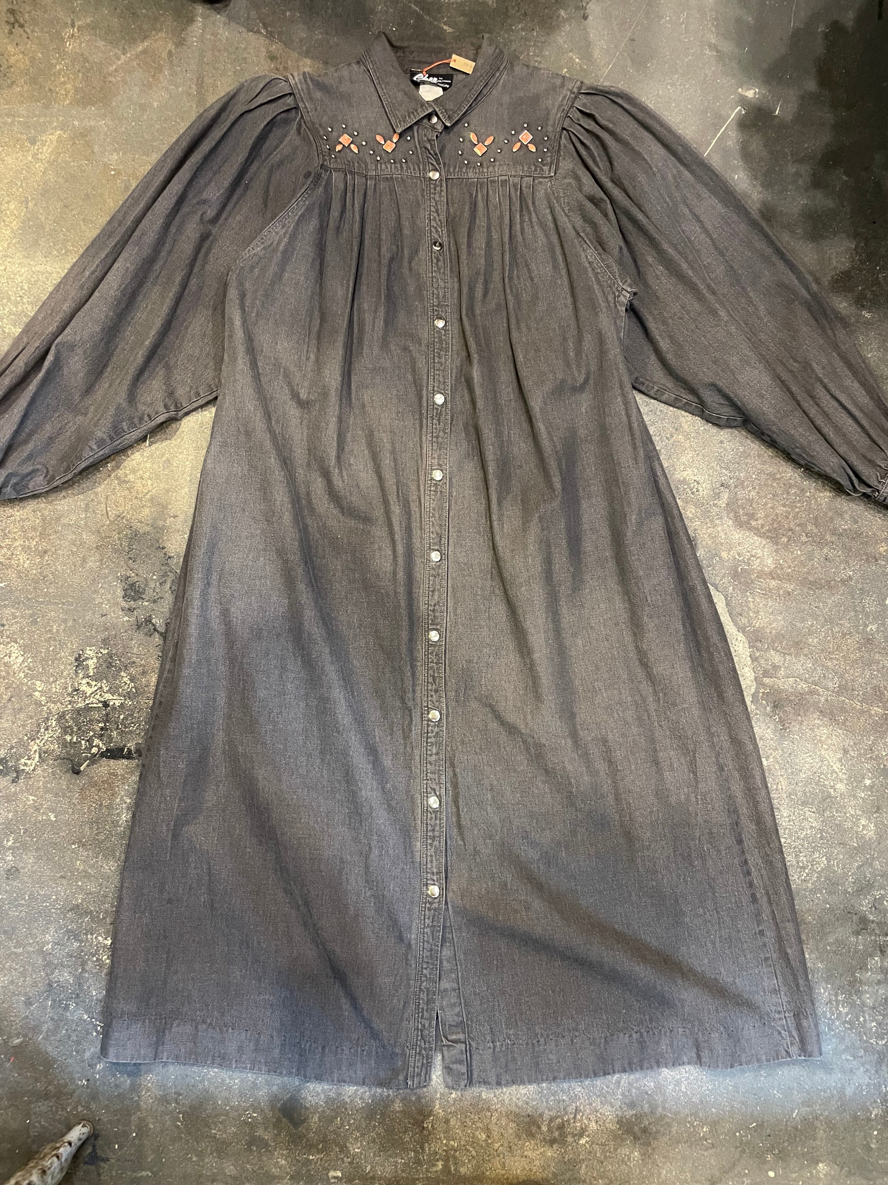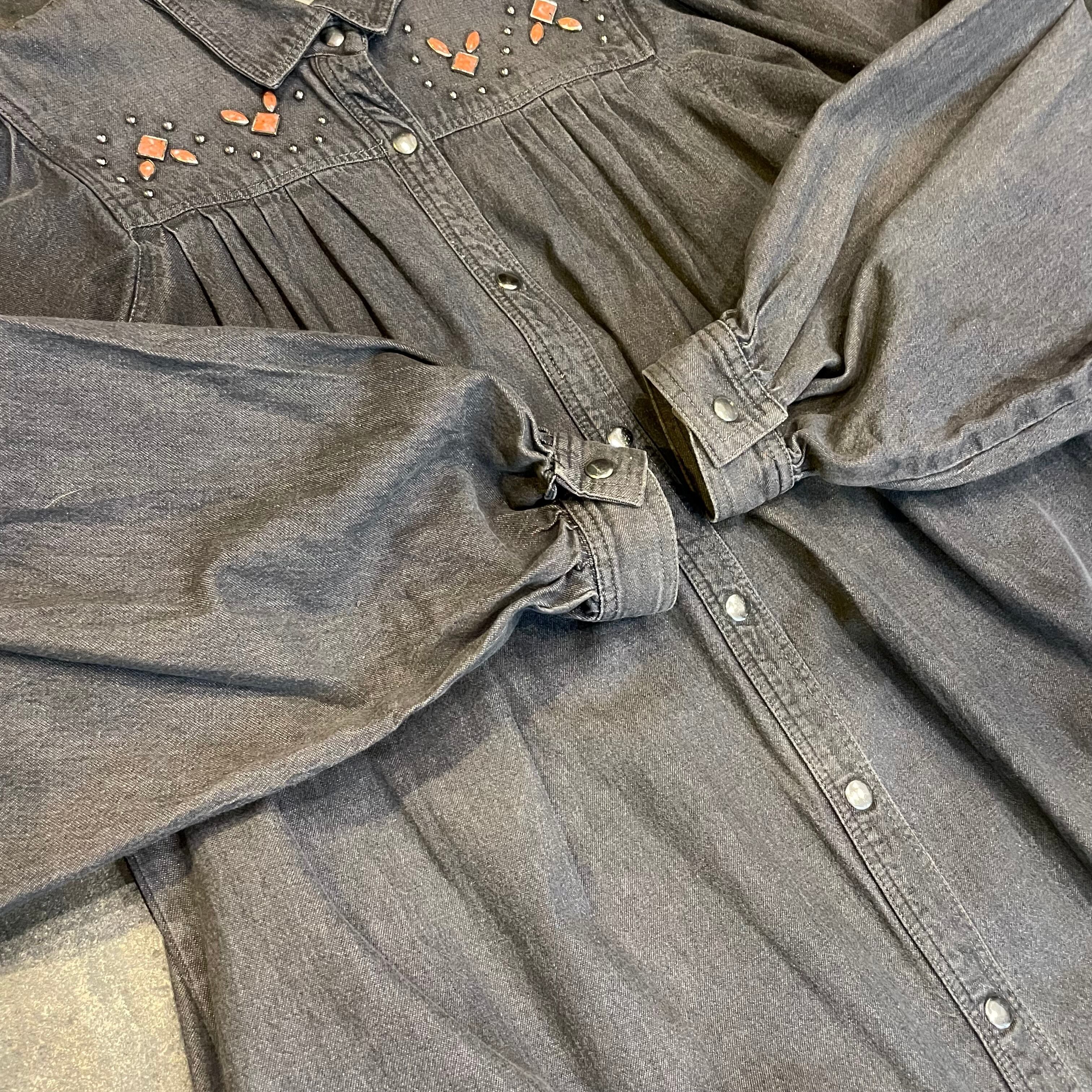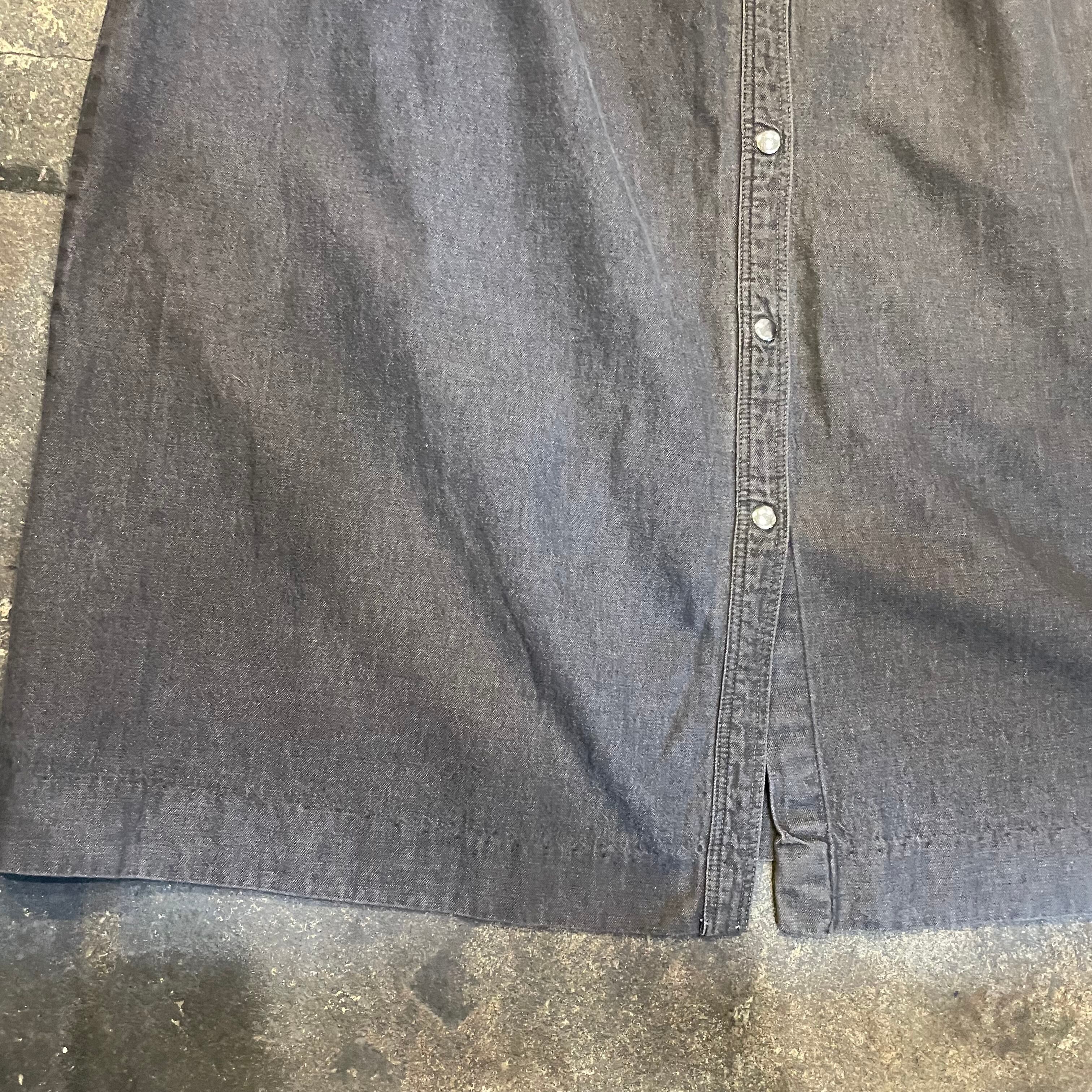 色褪せたブラックデニムのような雰囲気の素材がかっこいいワンピースです。