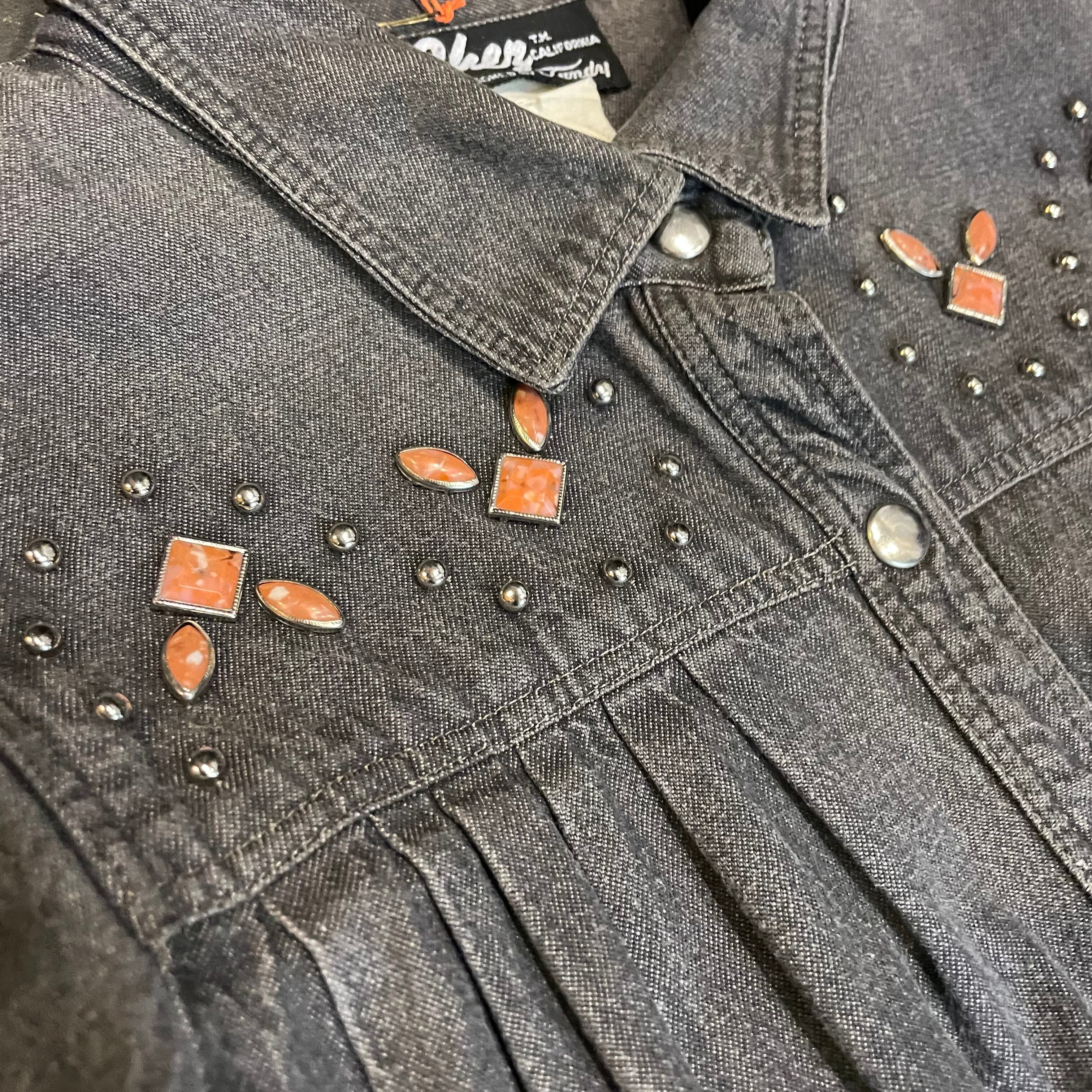 胸元にスタッズが付いていてさらにかっこいいですし、袖はぽわっとかなりボリュームがあってかわいいとのバランスが良い感じです。