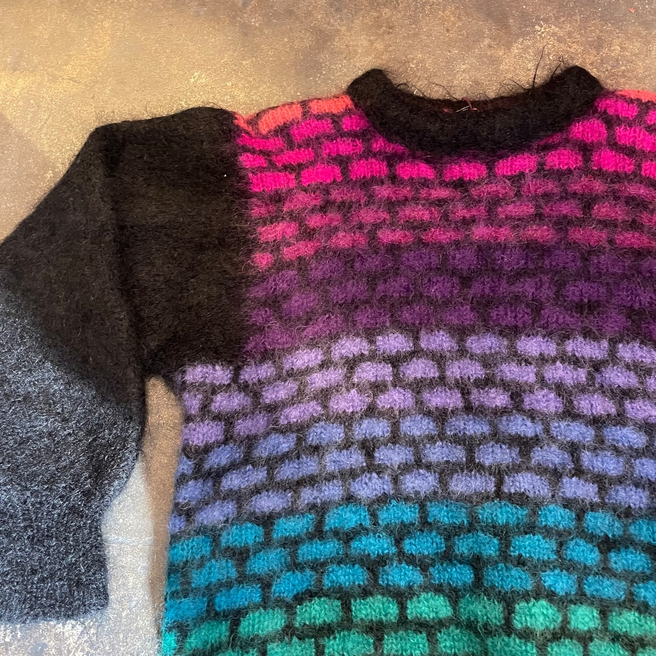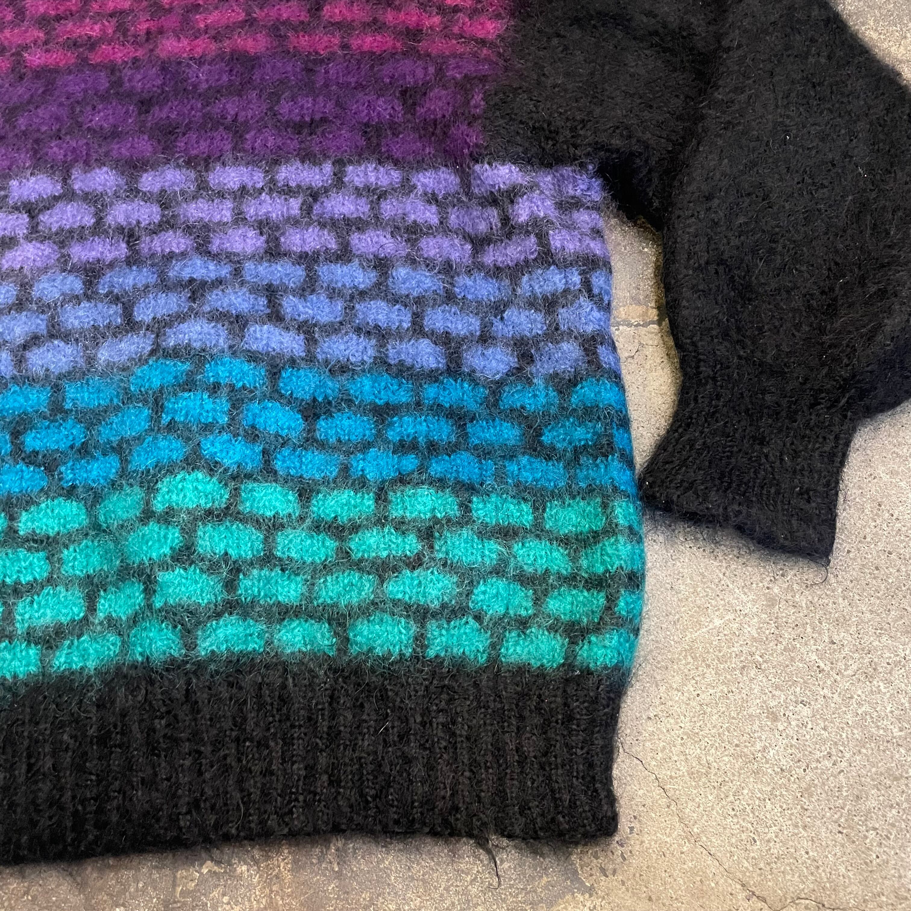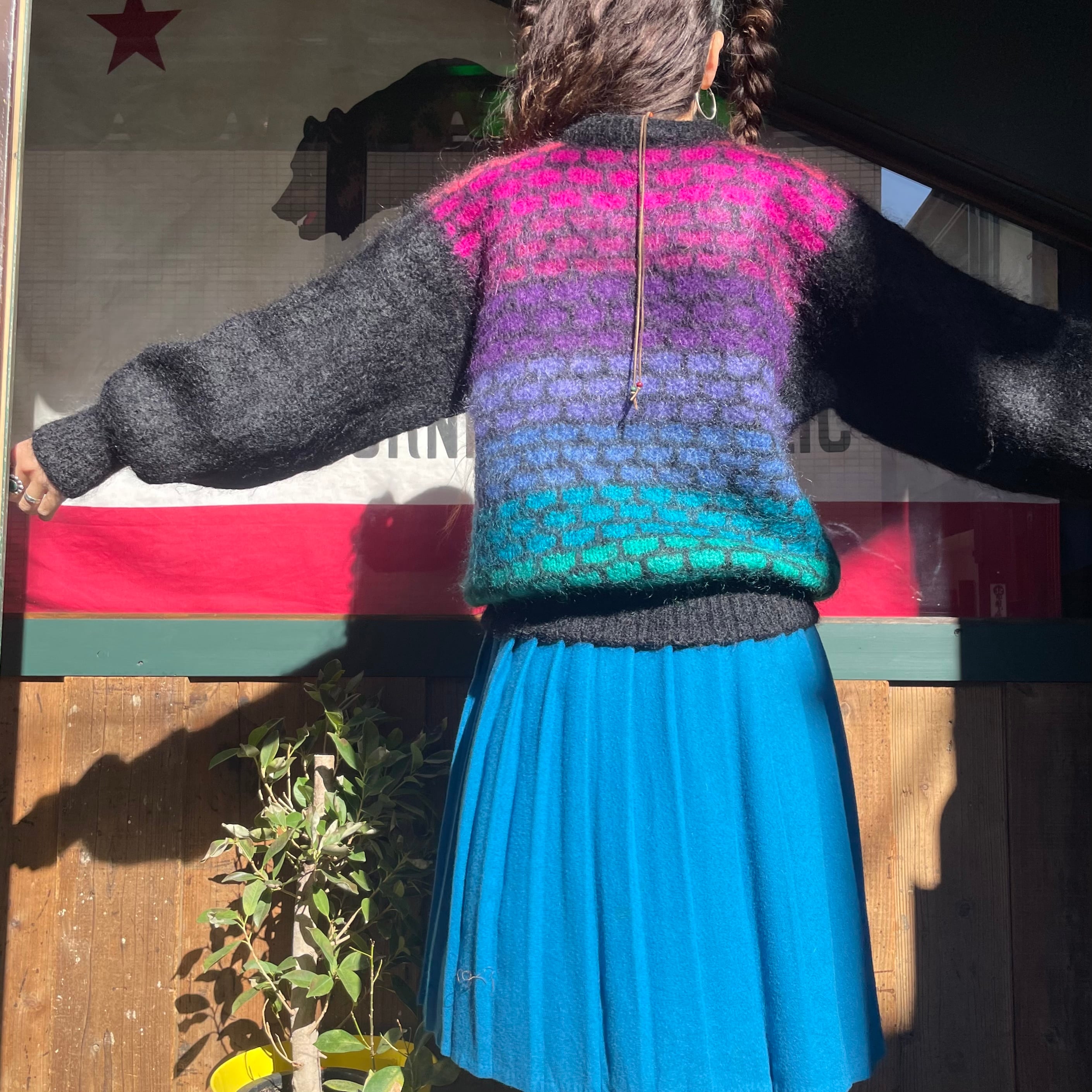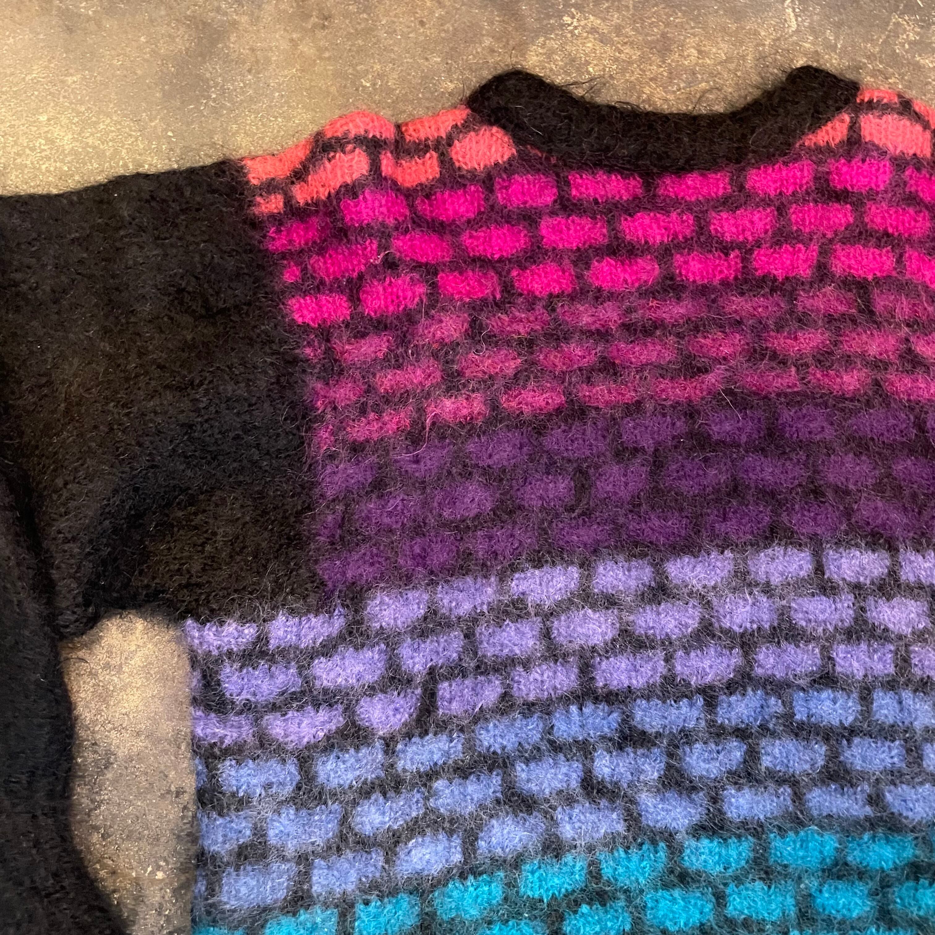 ピンクから緑のグラデーションの模様がとてもかわいいセーターです。