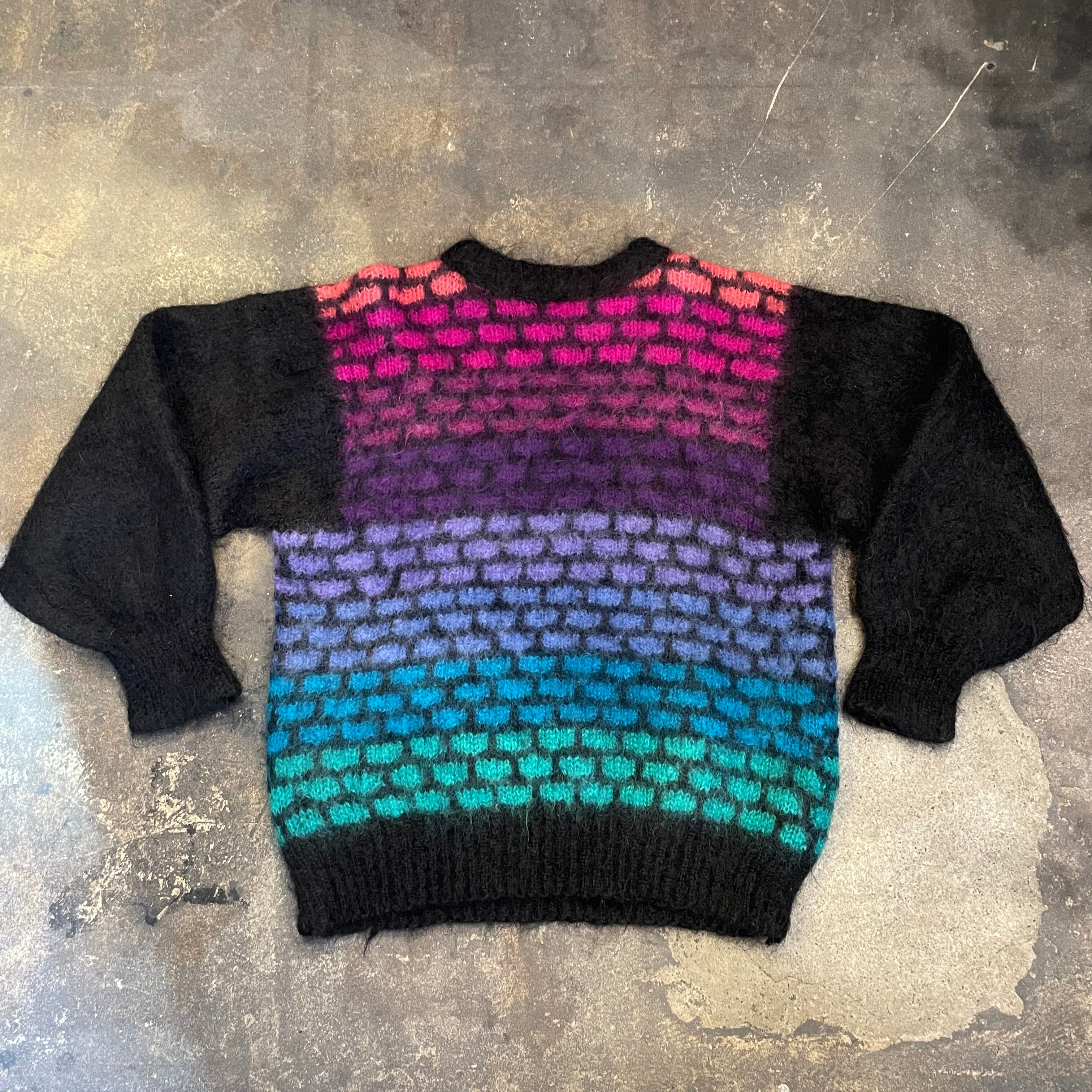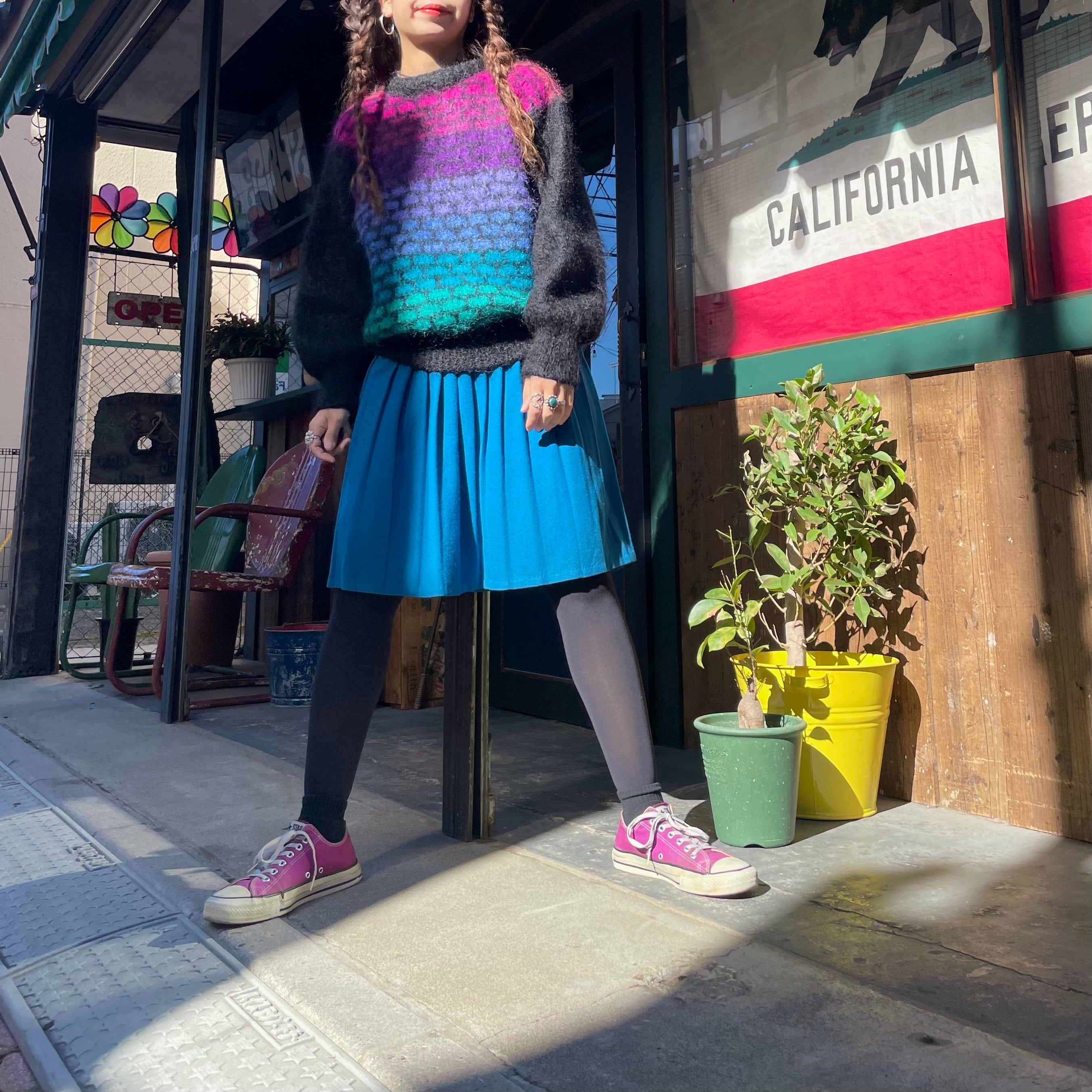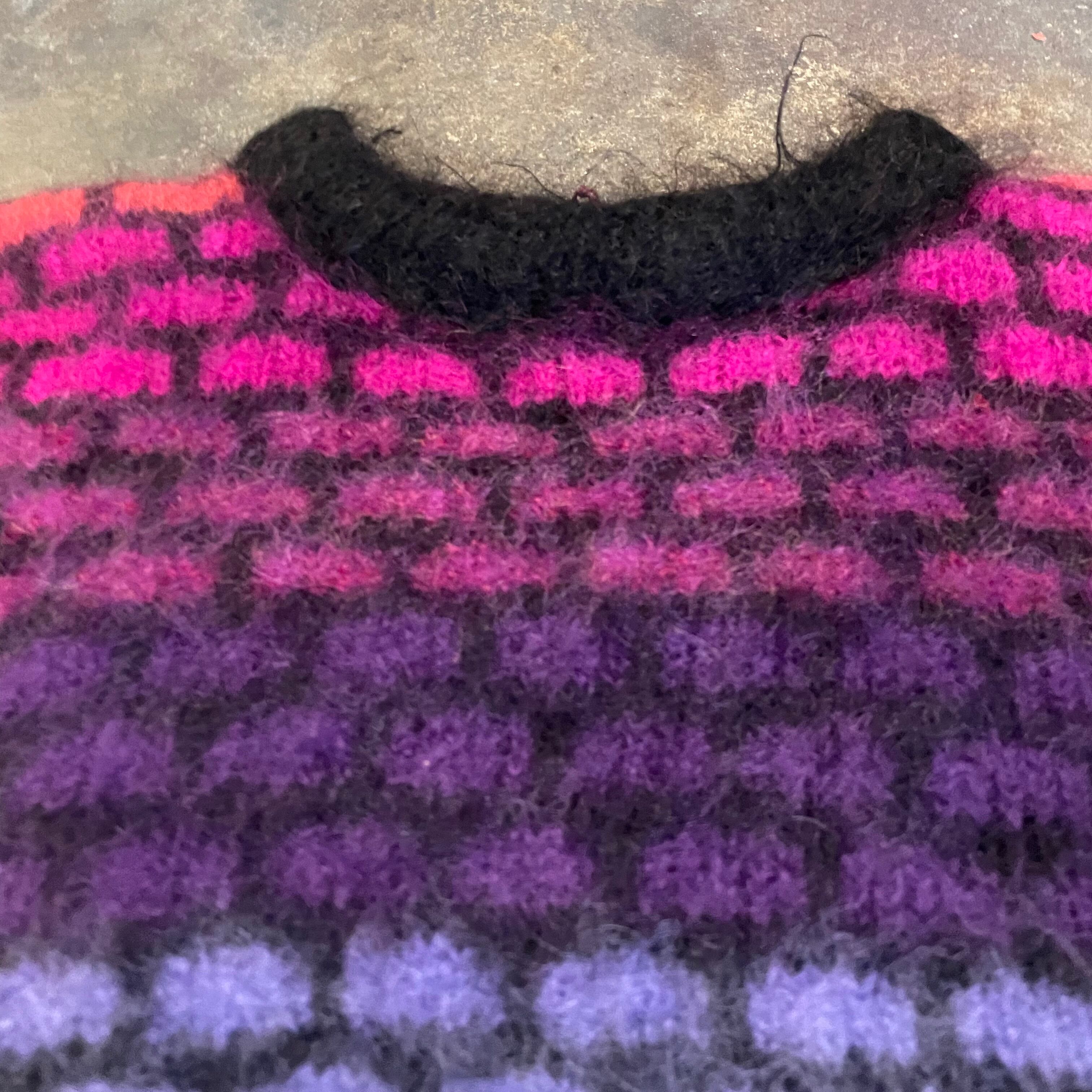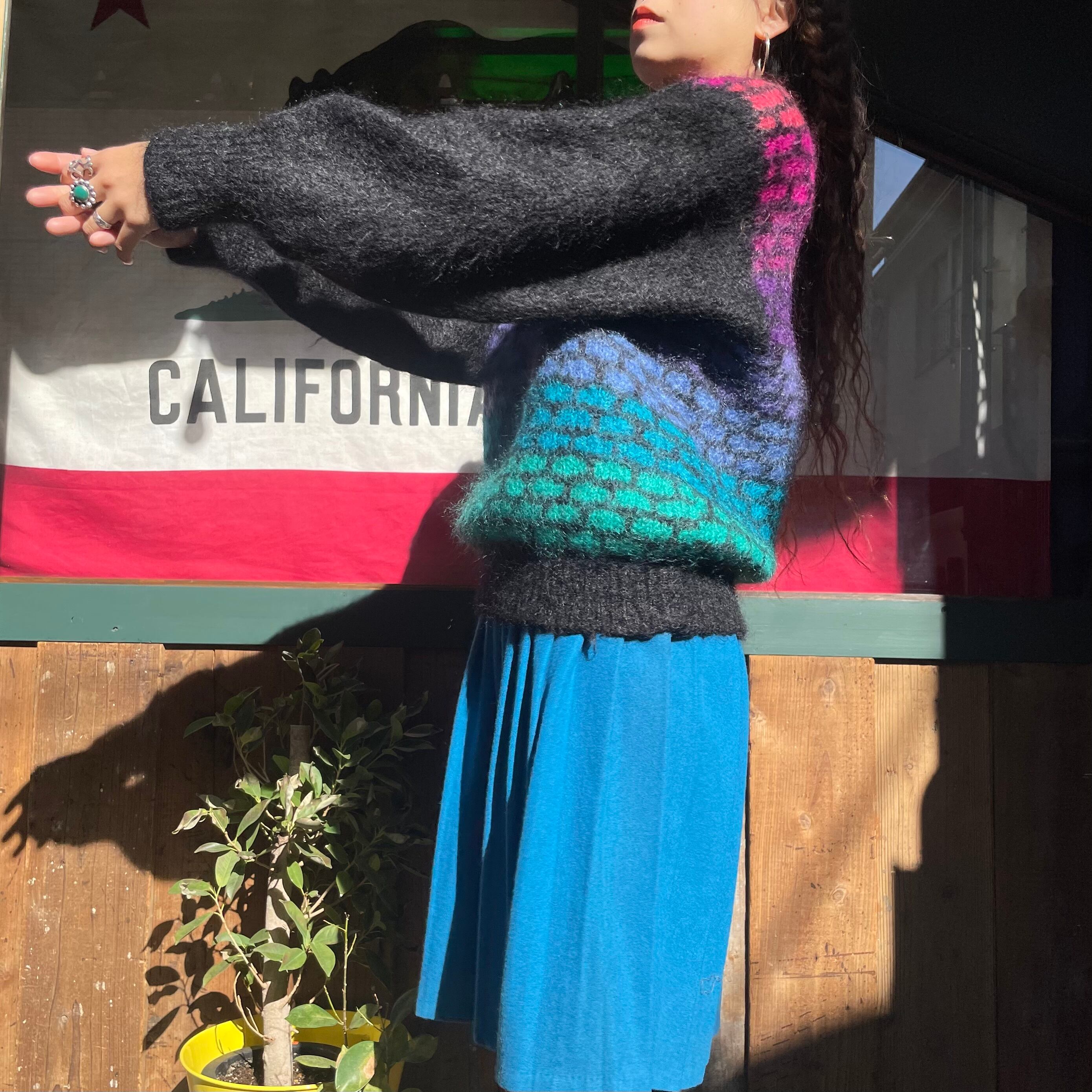ピンクから緑のグラデーションの模様がとてもかわいいセーターです。