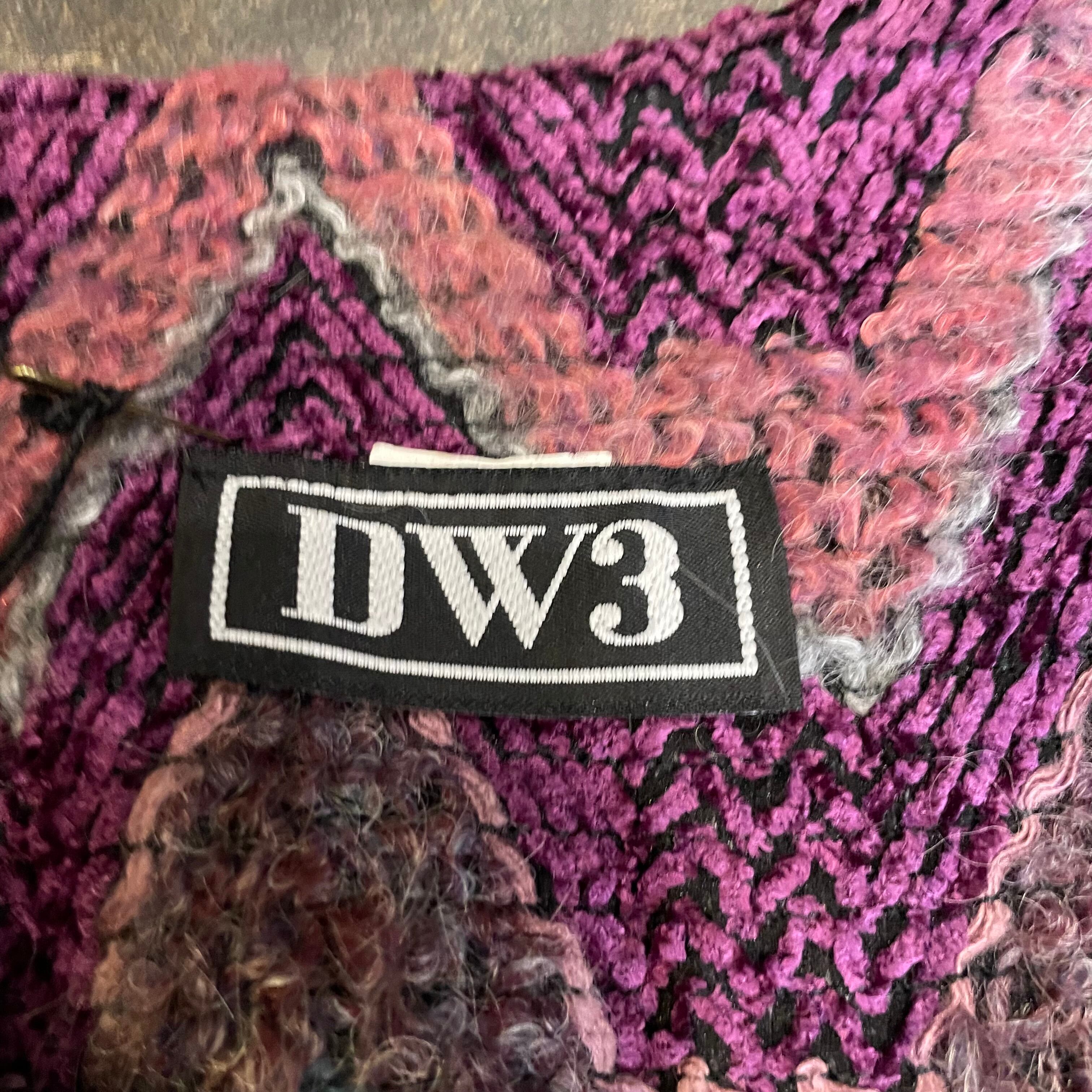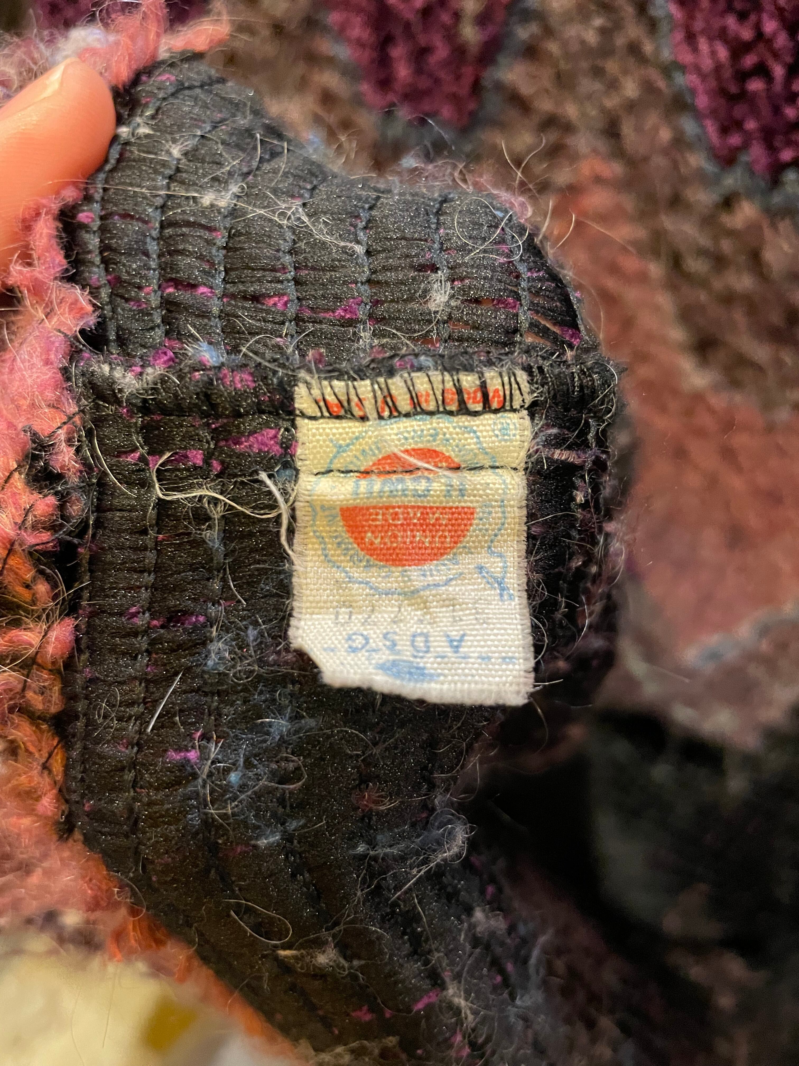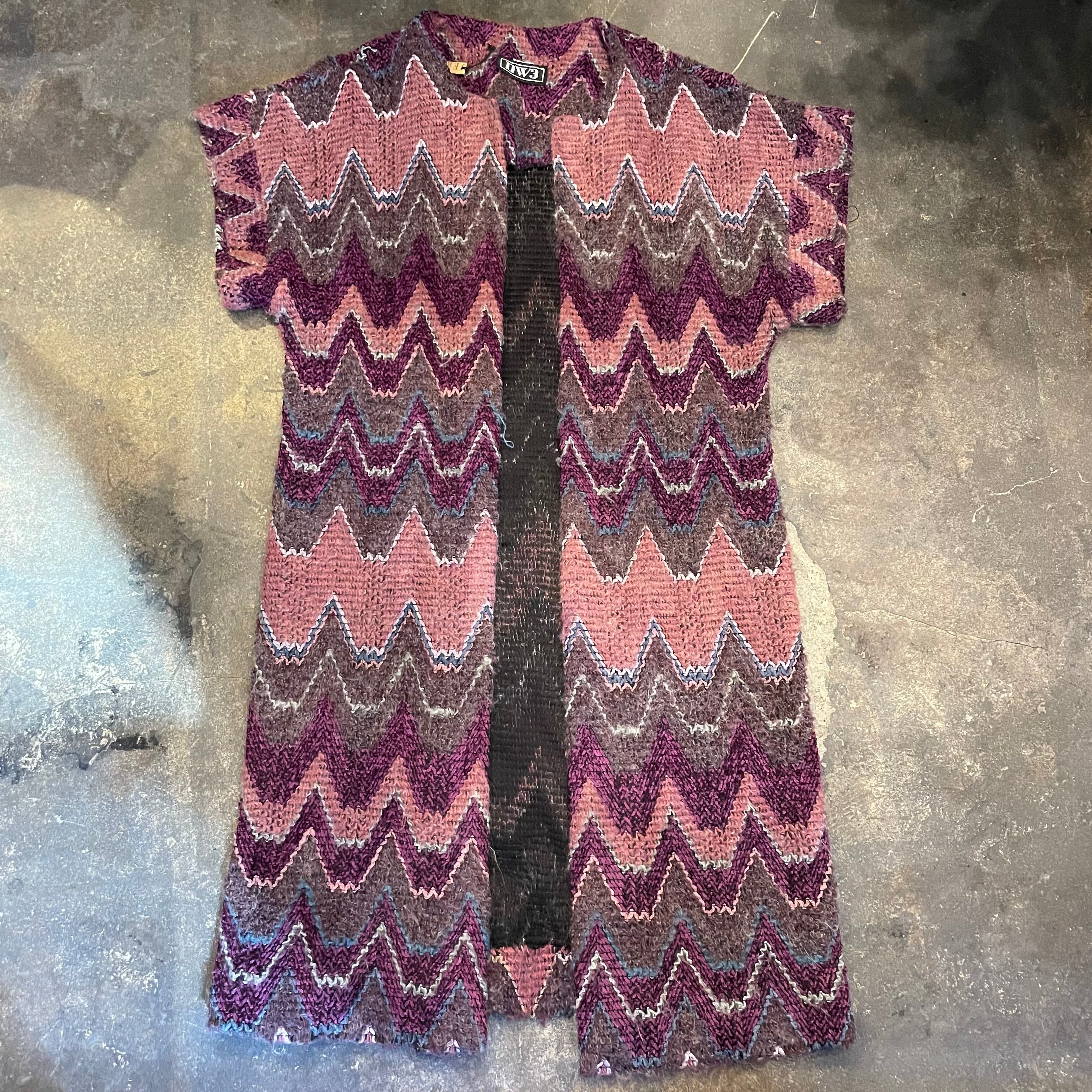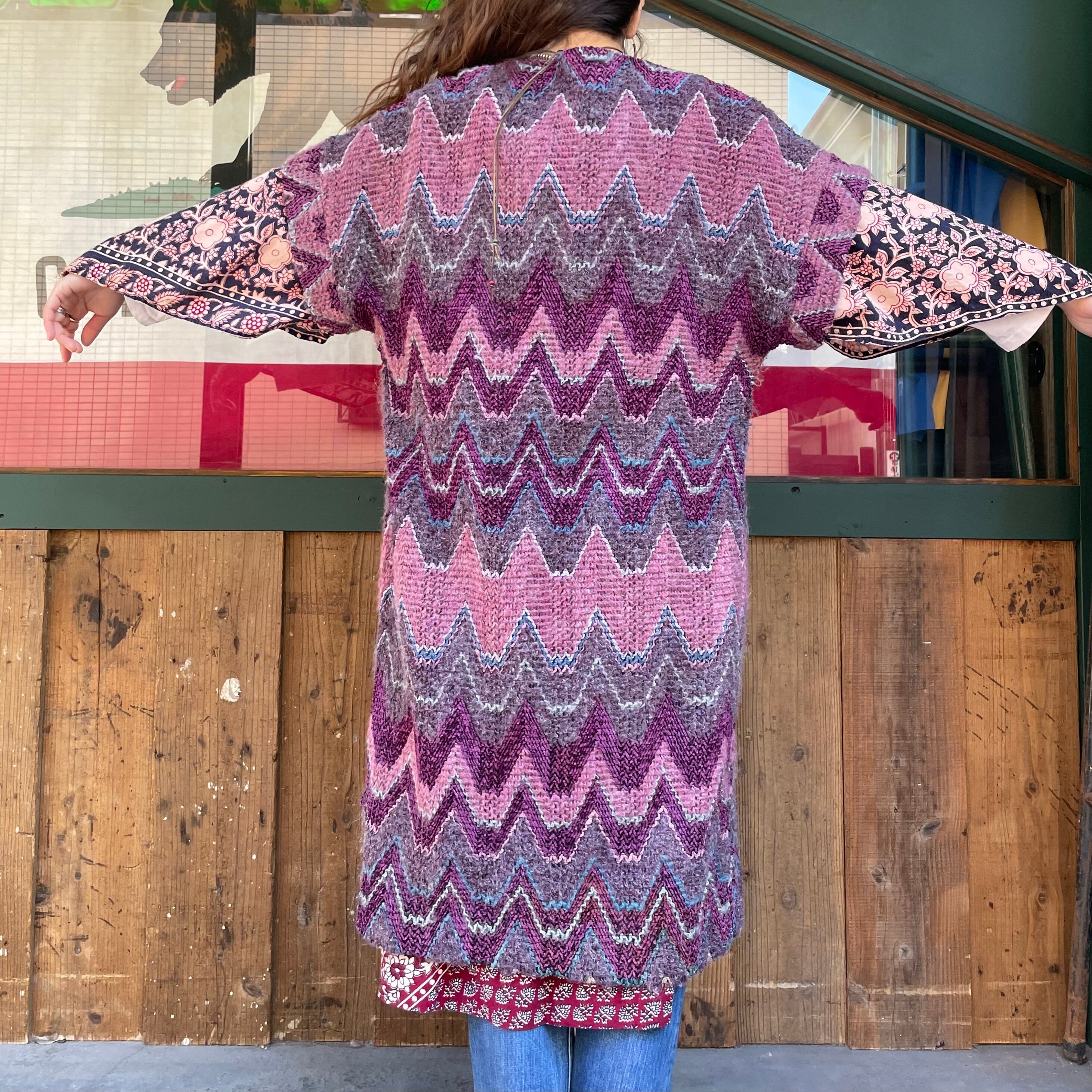 いろんな毛糸が使われていていろんな表情があり素敵な一枚です。長袖のワンピースと合わせるのはもちろん、ロンTやパーカーにジーパンなどラフなスタイルと合わせてもコーディネートをガラッと変えてくれそうですし、オーバーオールなどに合わせてもかわいいと思います。編んであるわけではなく、織り?のような感じですので伸縮性は無く、軽いです。