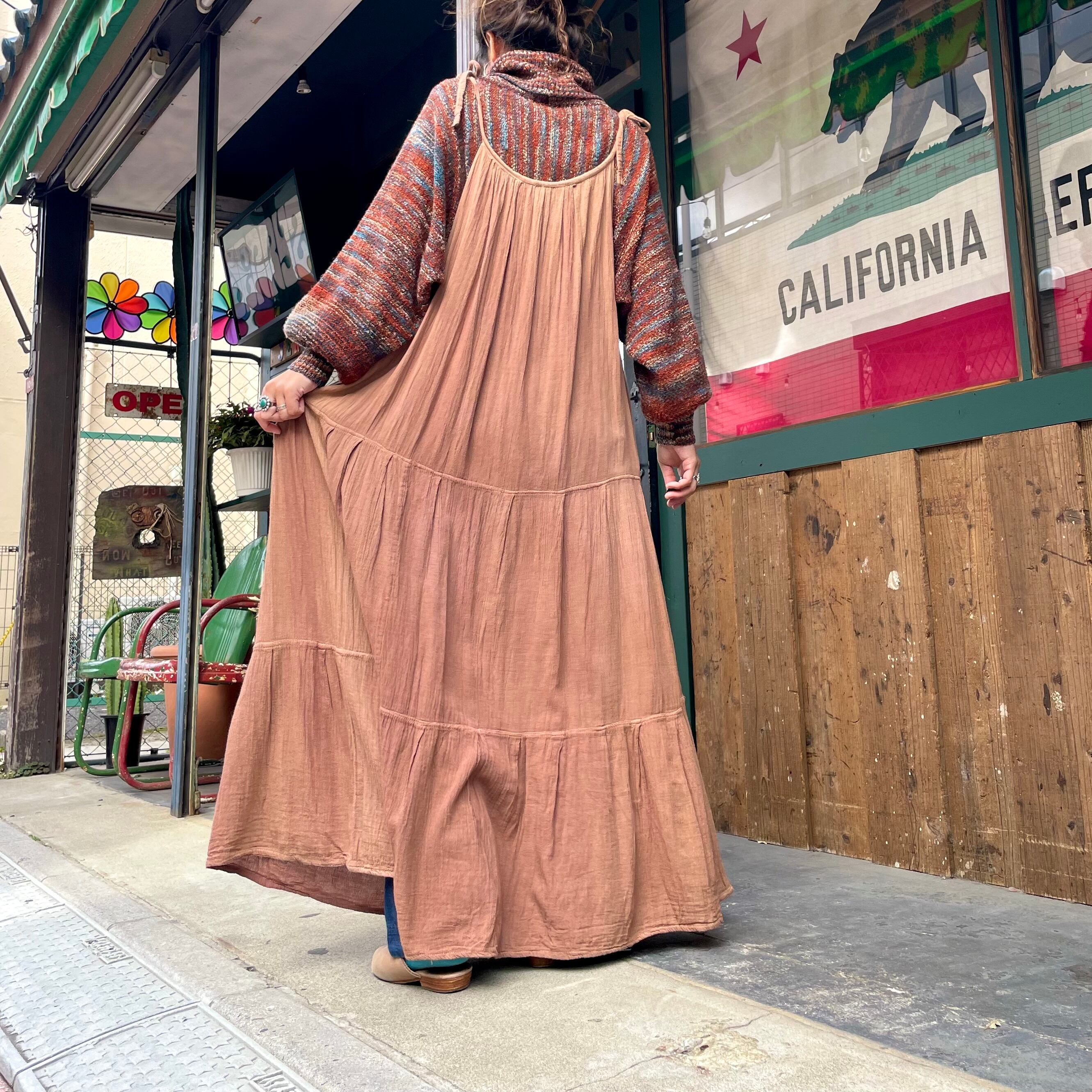 肩紐を調節して緩くスウェットやニットとの重ね着も、上にざっくりゆったりカーディガンを羽織ったり、夏は一枚で着ても最高にかわいいと思います。