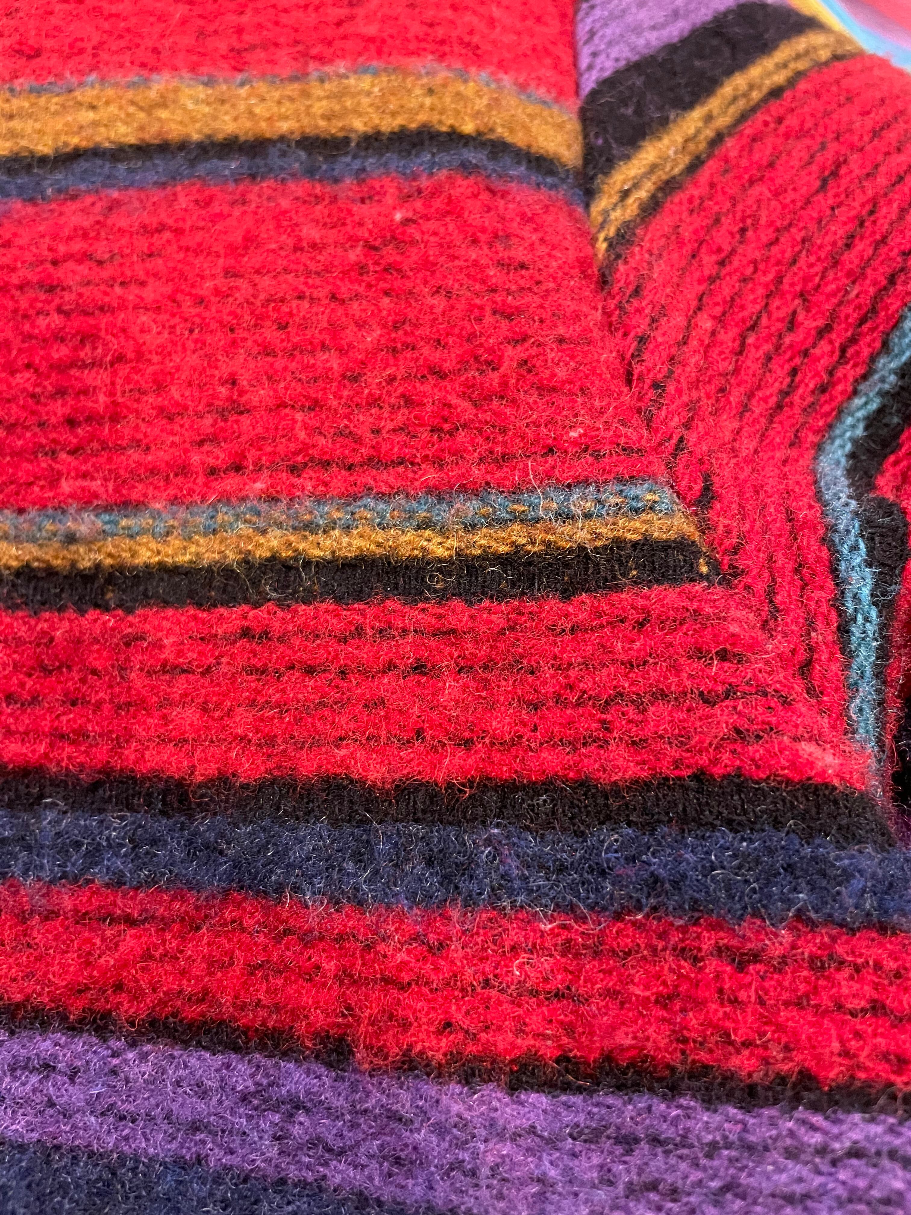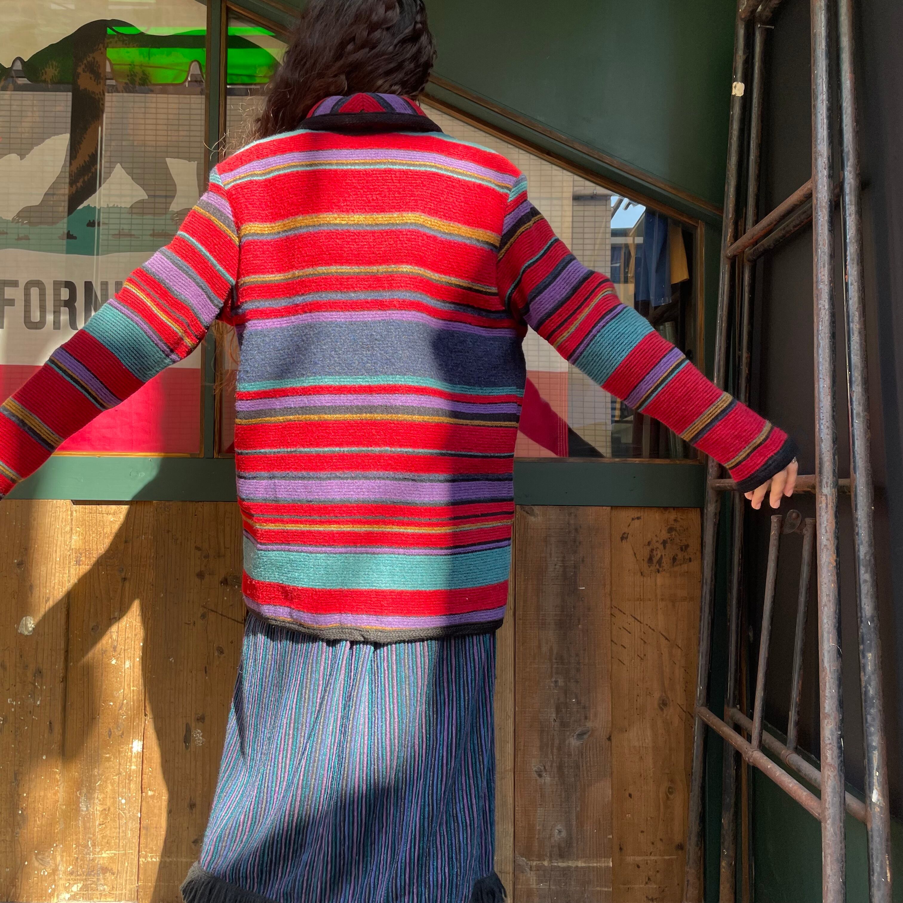 ネイティブな雰囲気たっぷりな色合わせとボーダーな感じがかわいいジャケットです。