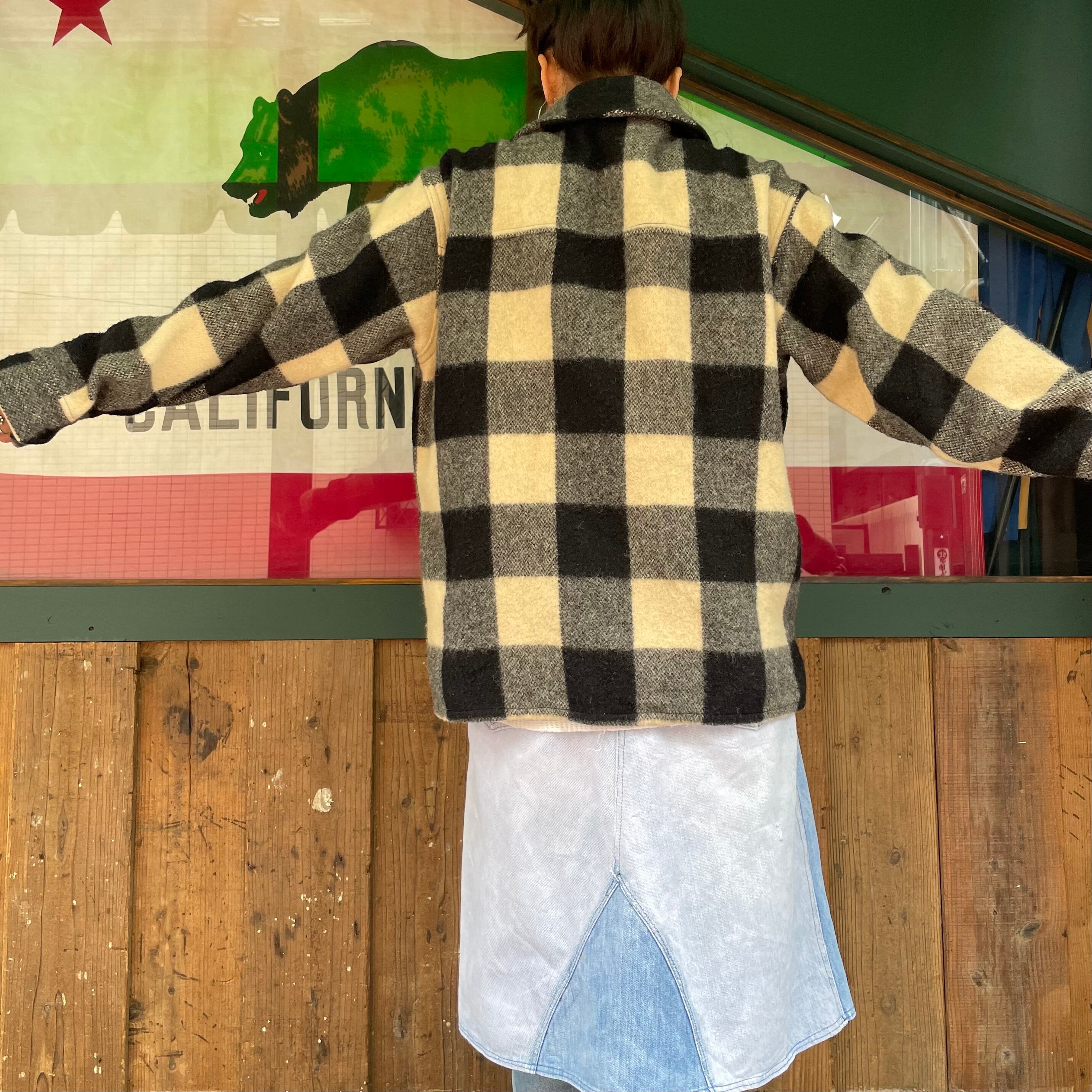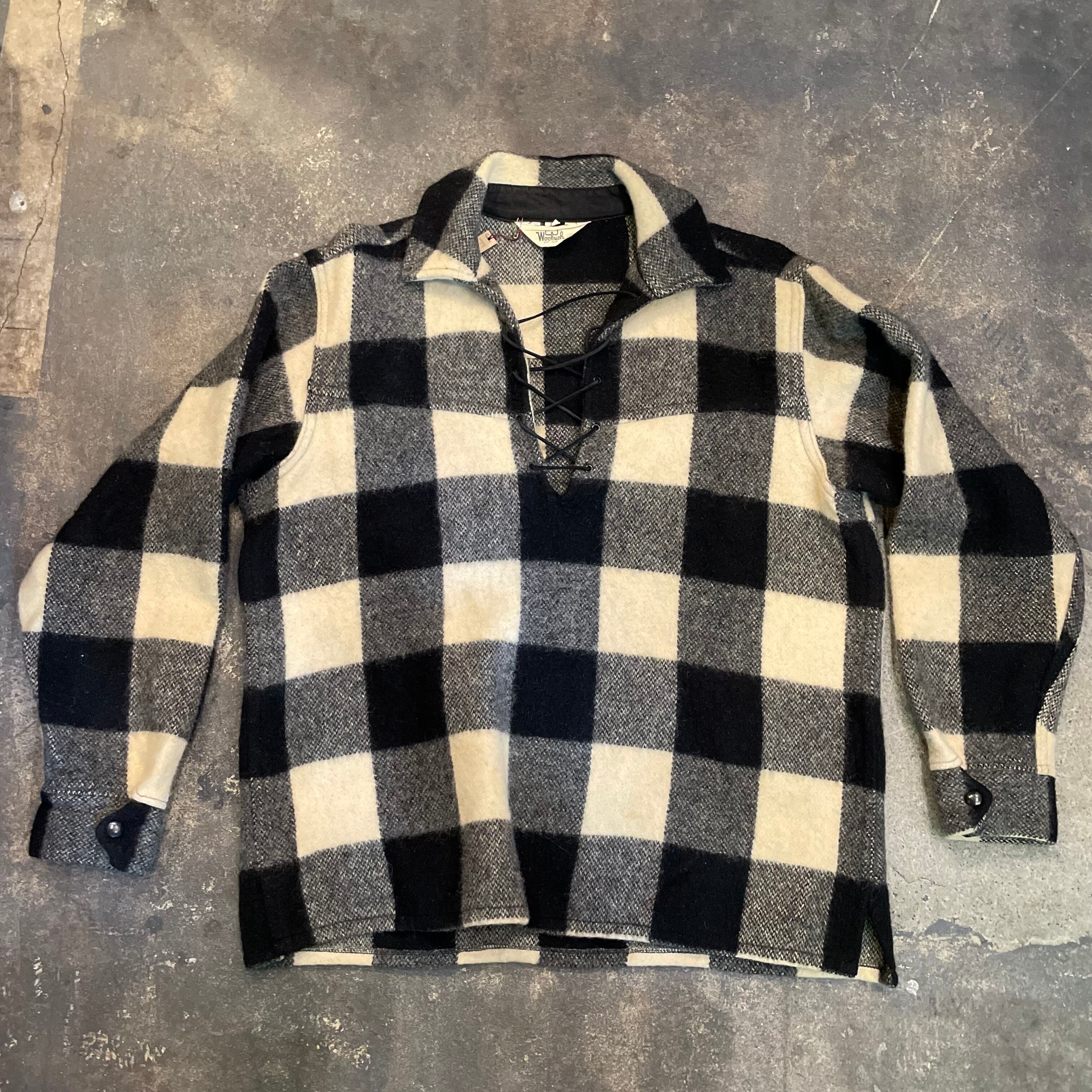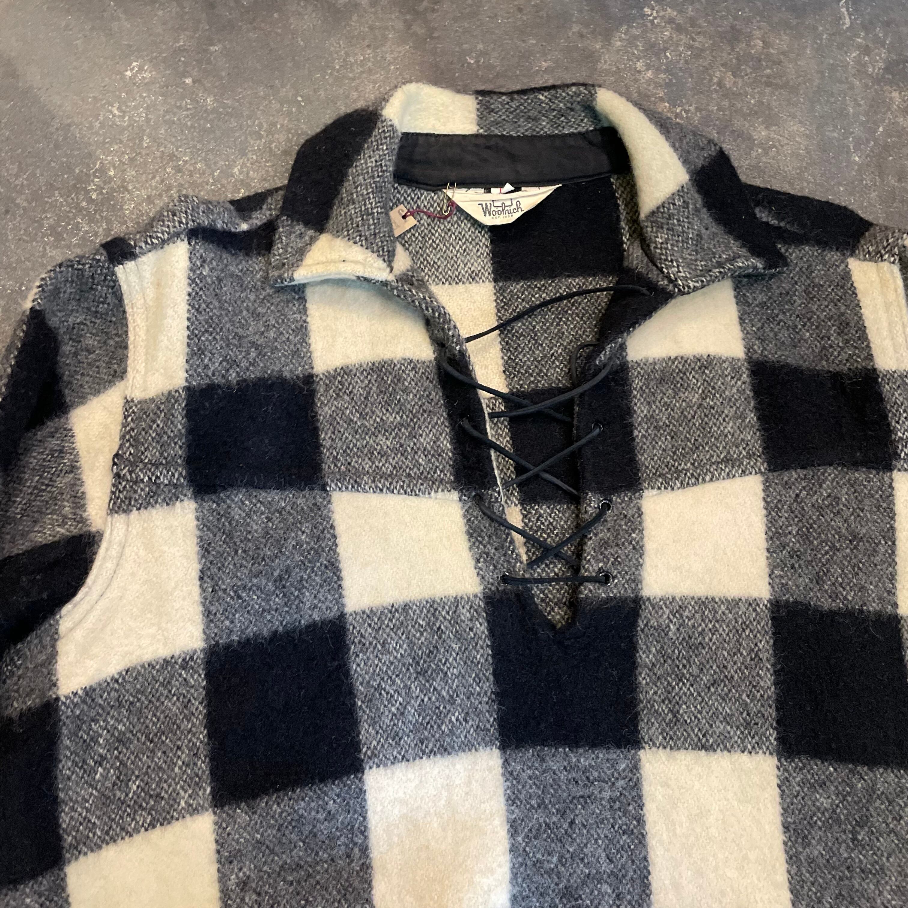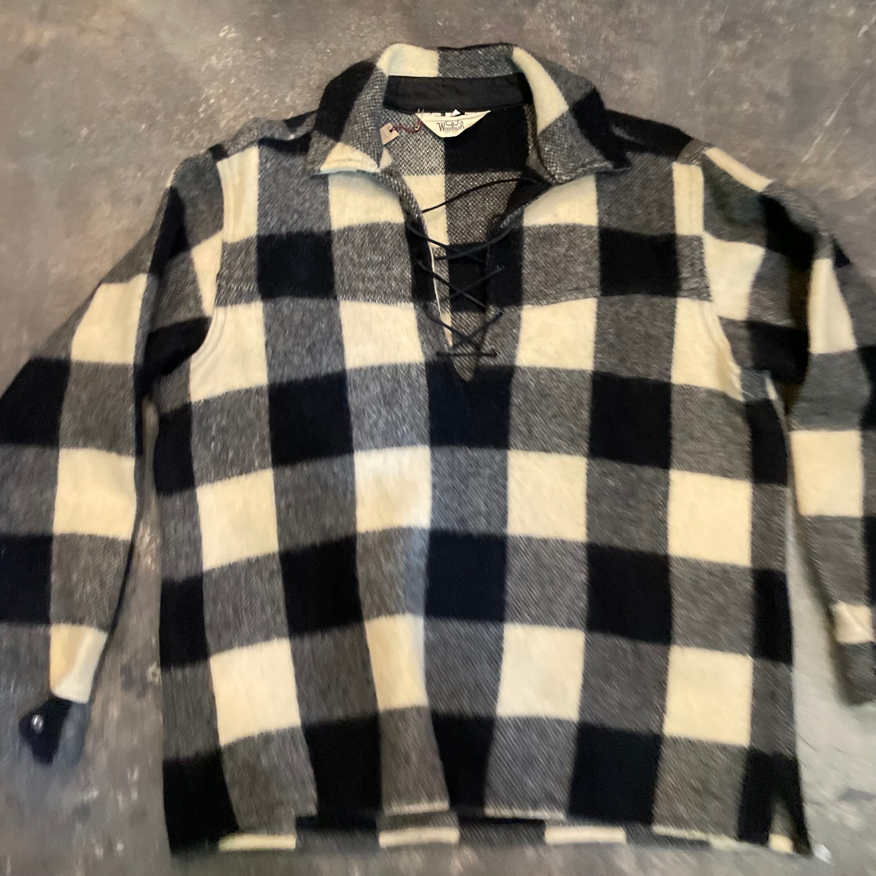 黒白のバッファローチェック柄がかっこいい、70年代頃のウールリッチのプルオーバーシャツです。