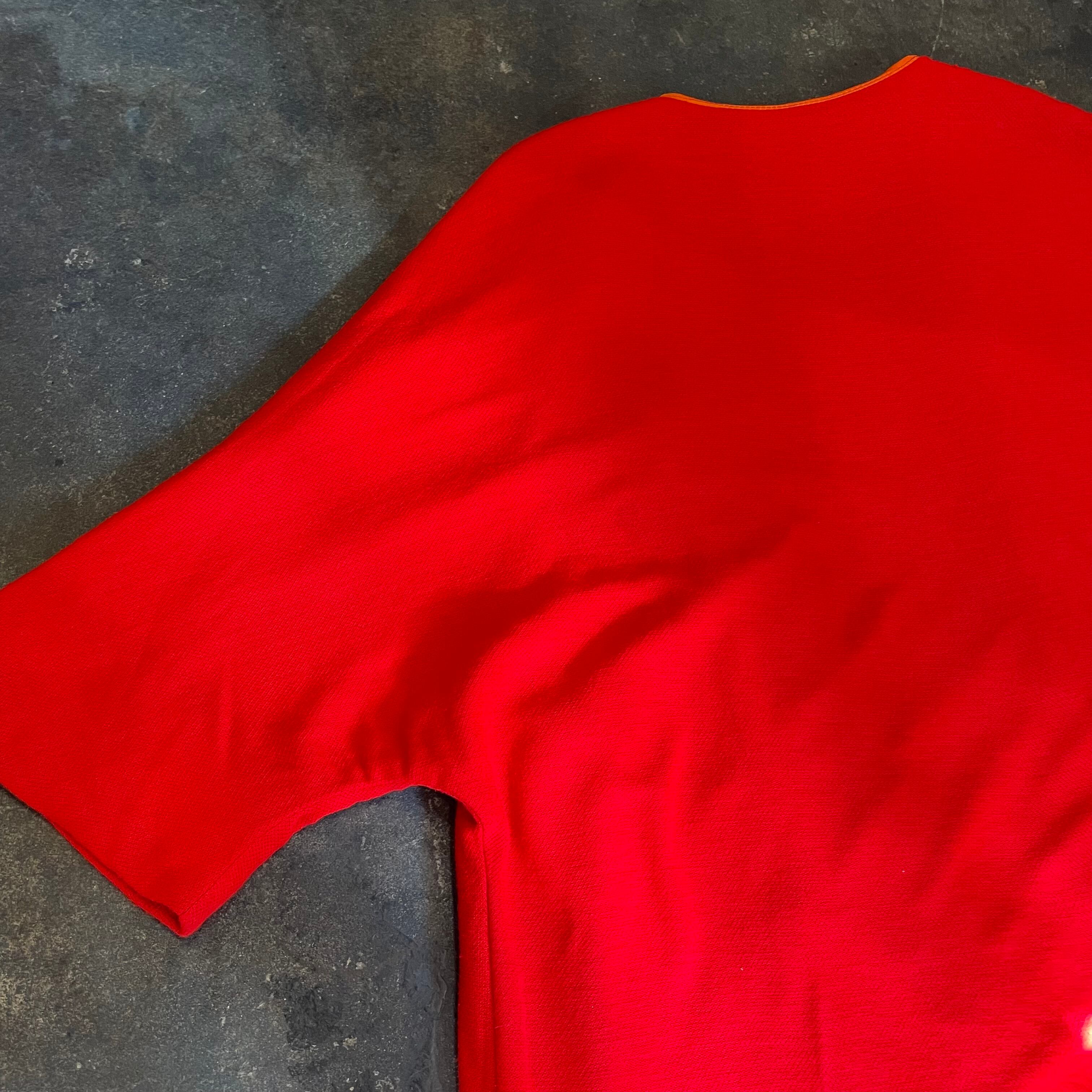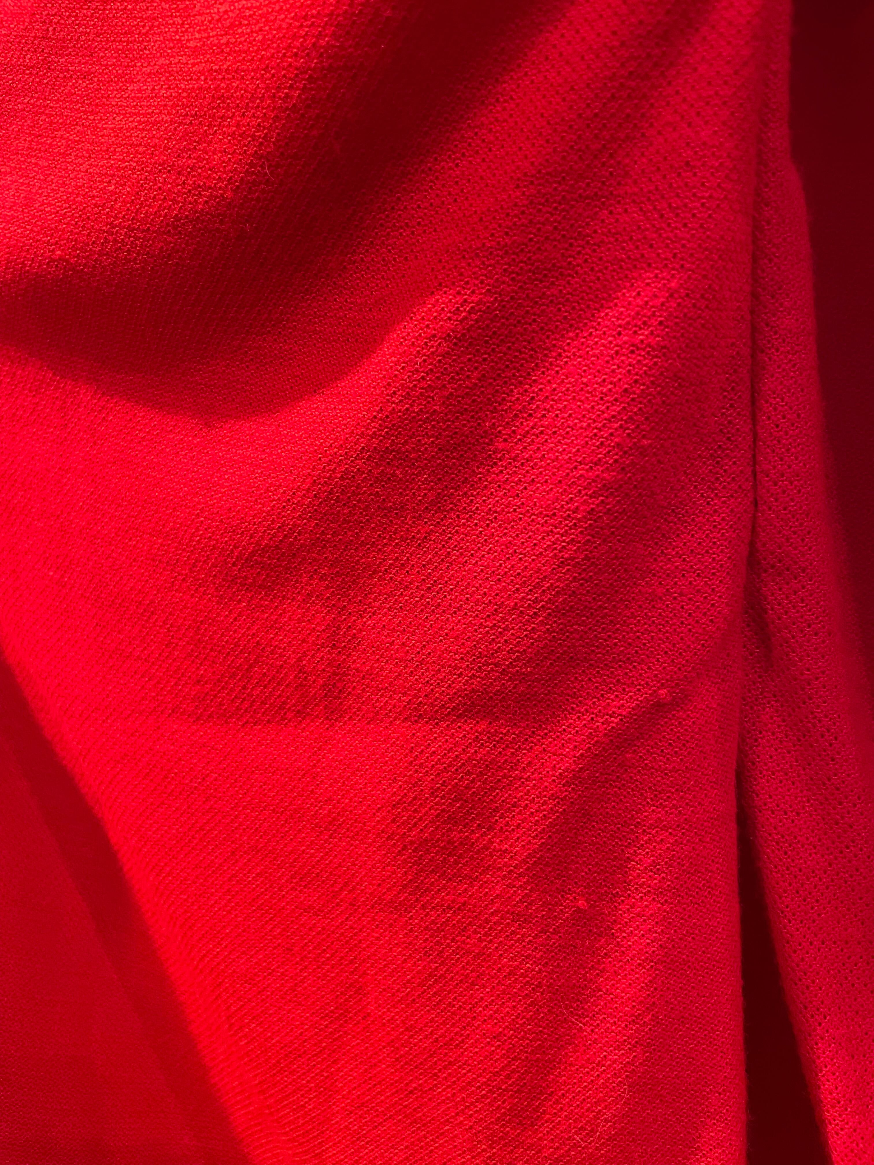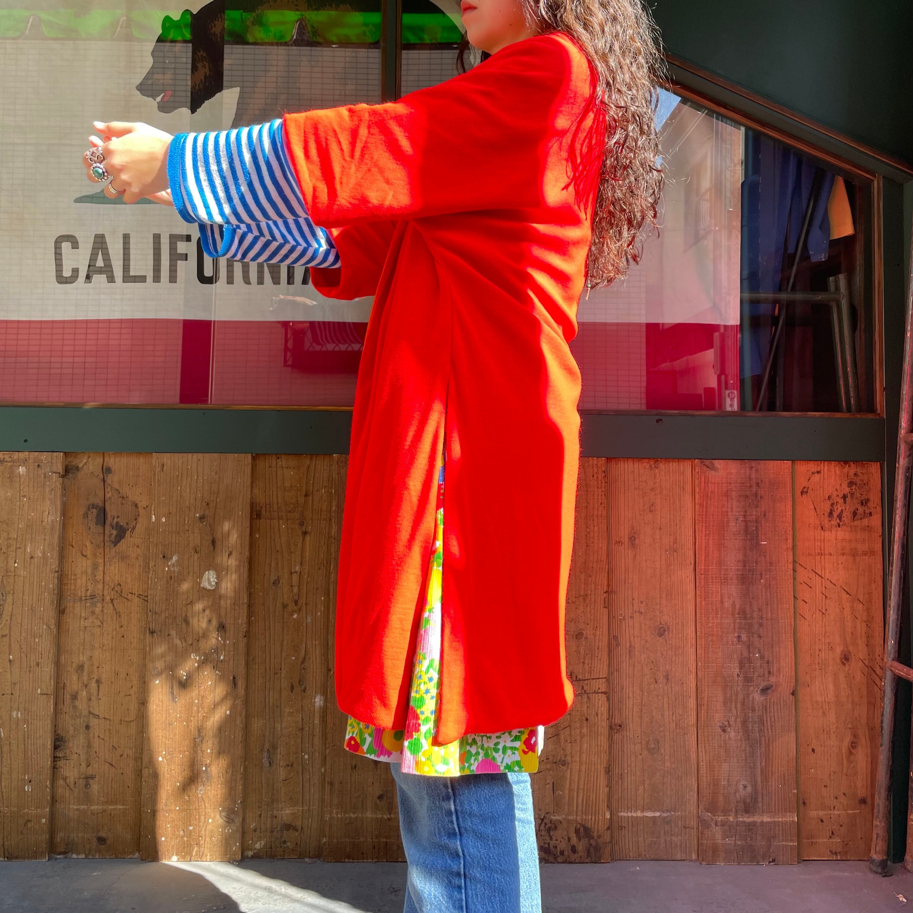 赤でもなくオレンジでもない色味がかわいいガウンです。