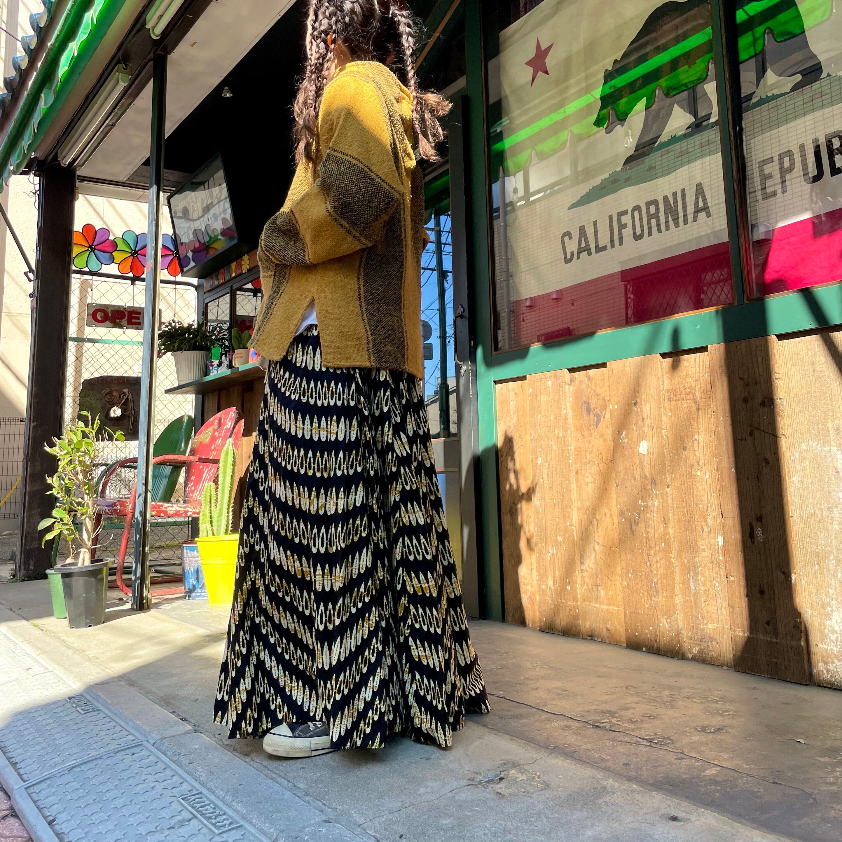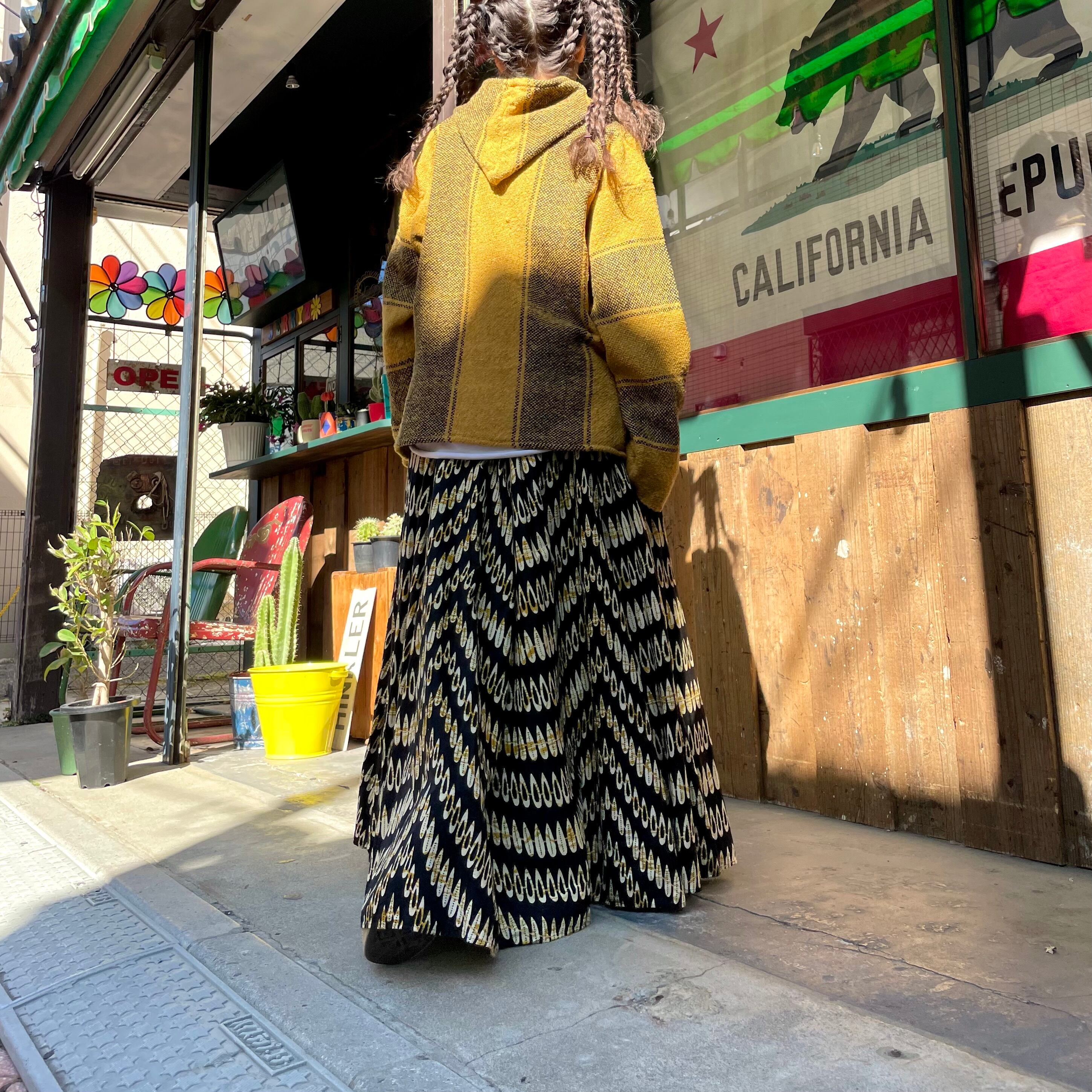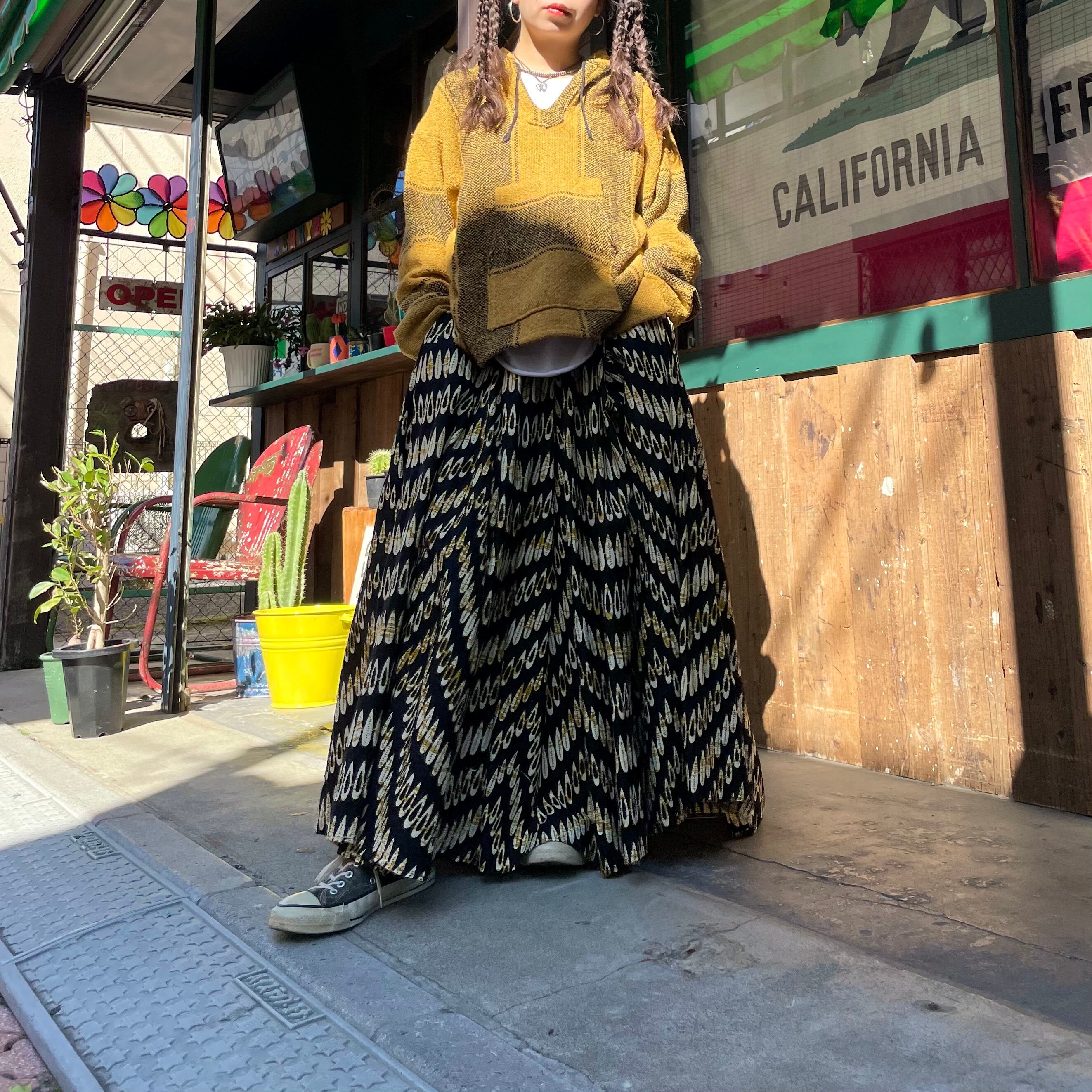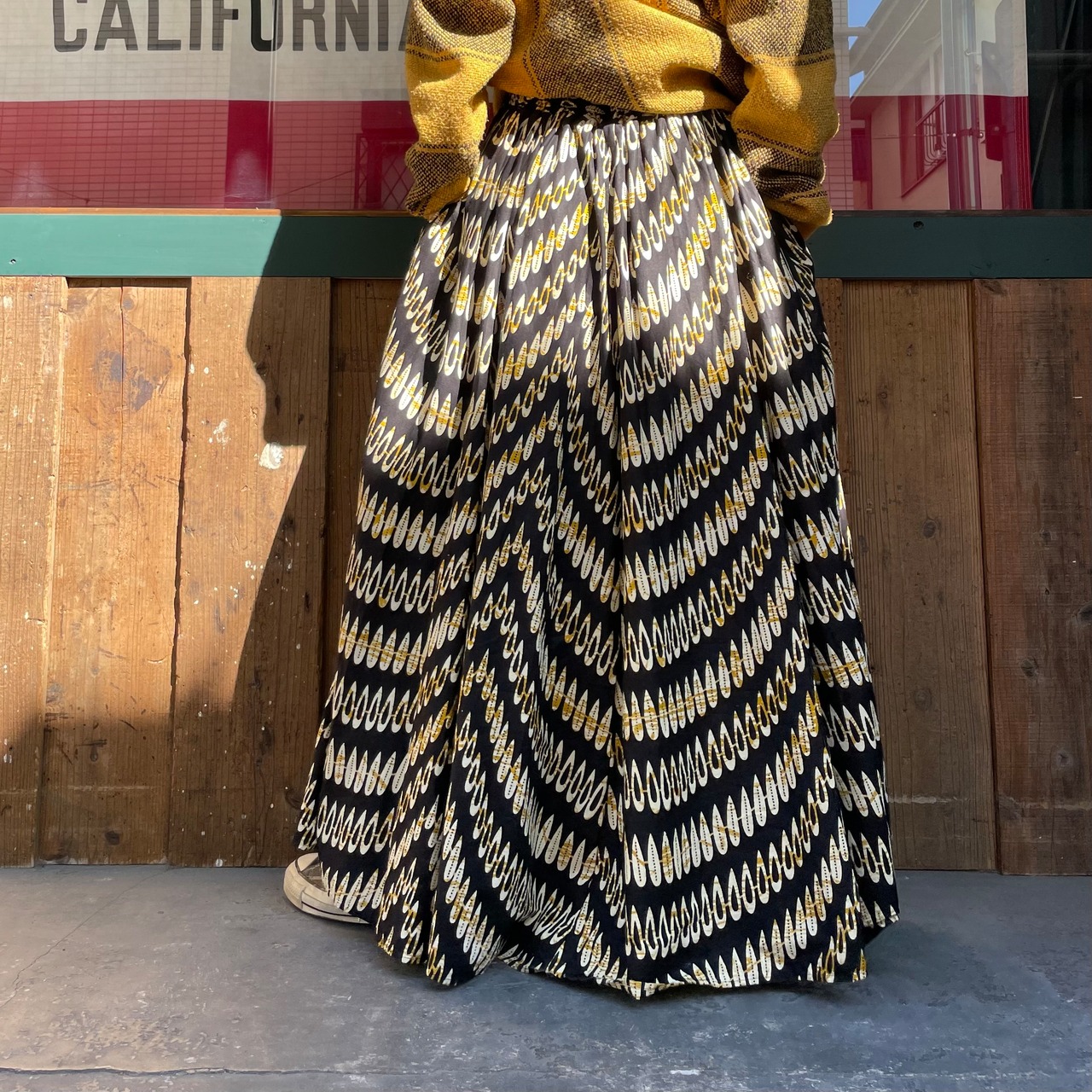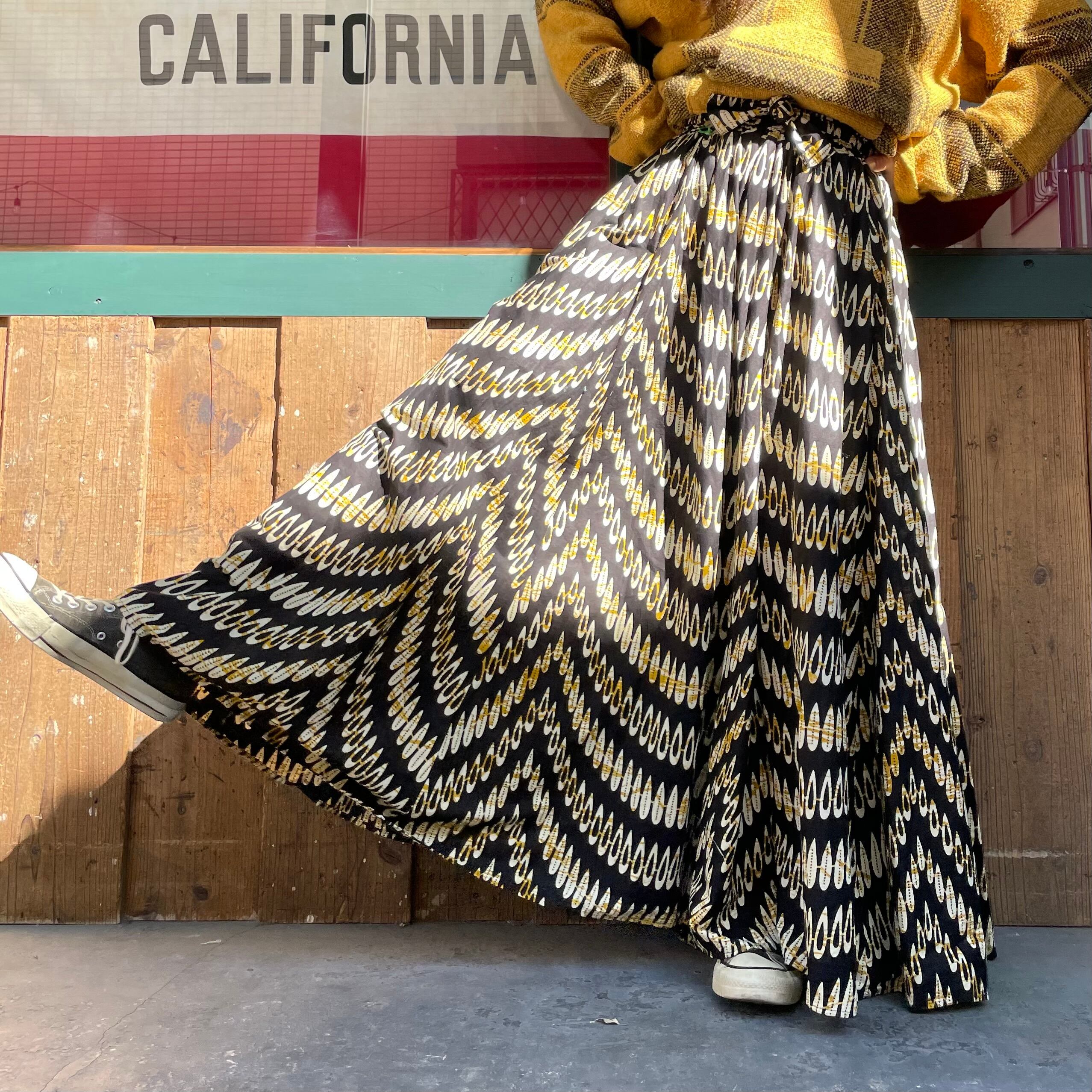 バティックのようなシズク柄?の連なりがかわいいロングスカートです。