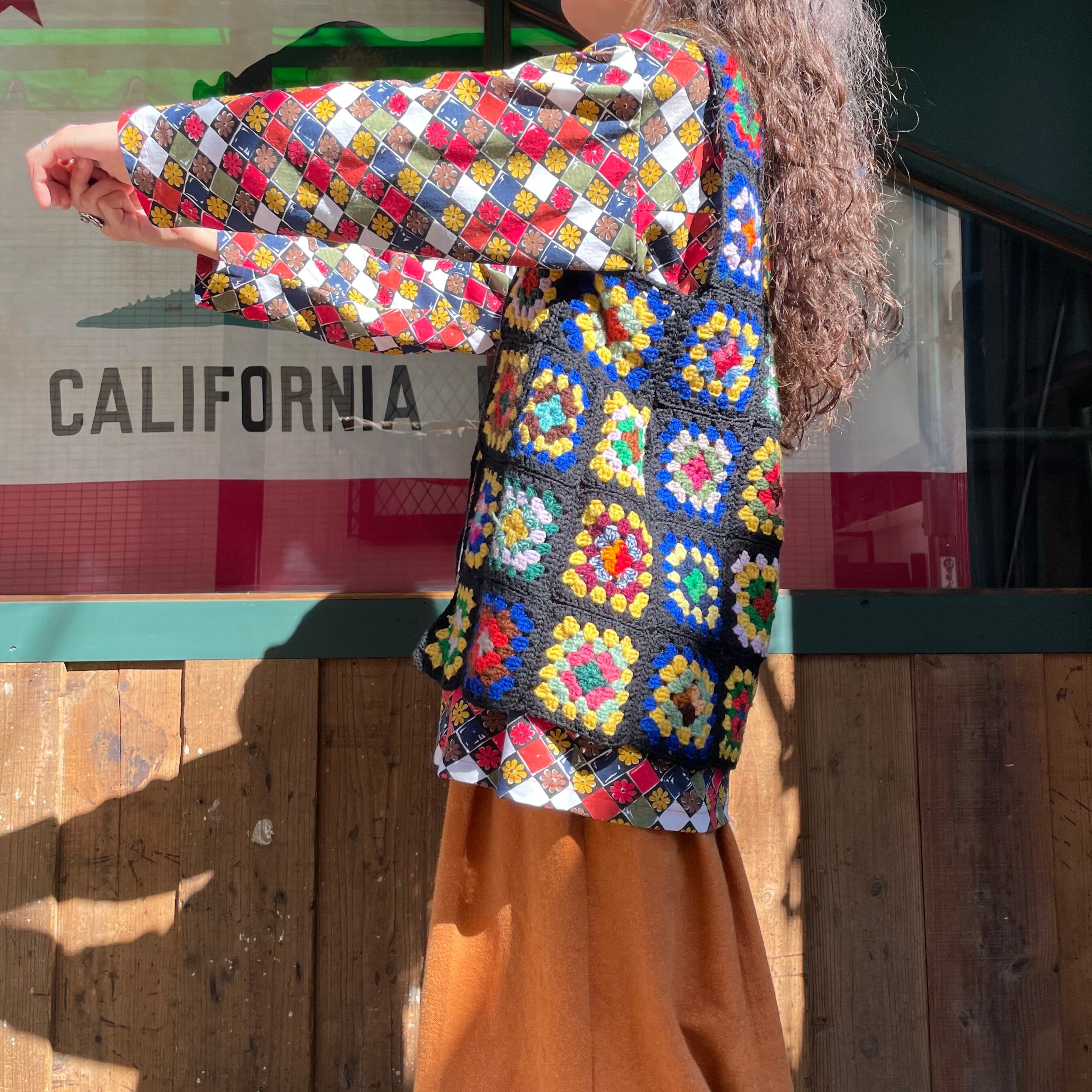 いろんな色合わせのグラニースクエアモチーフがかわいい手編みのベストです。