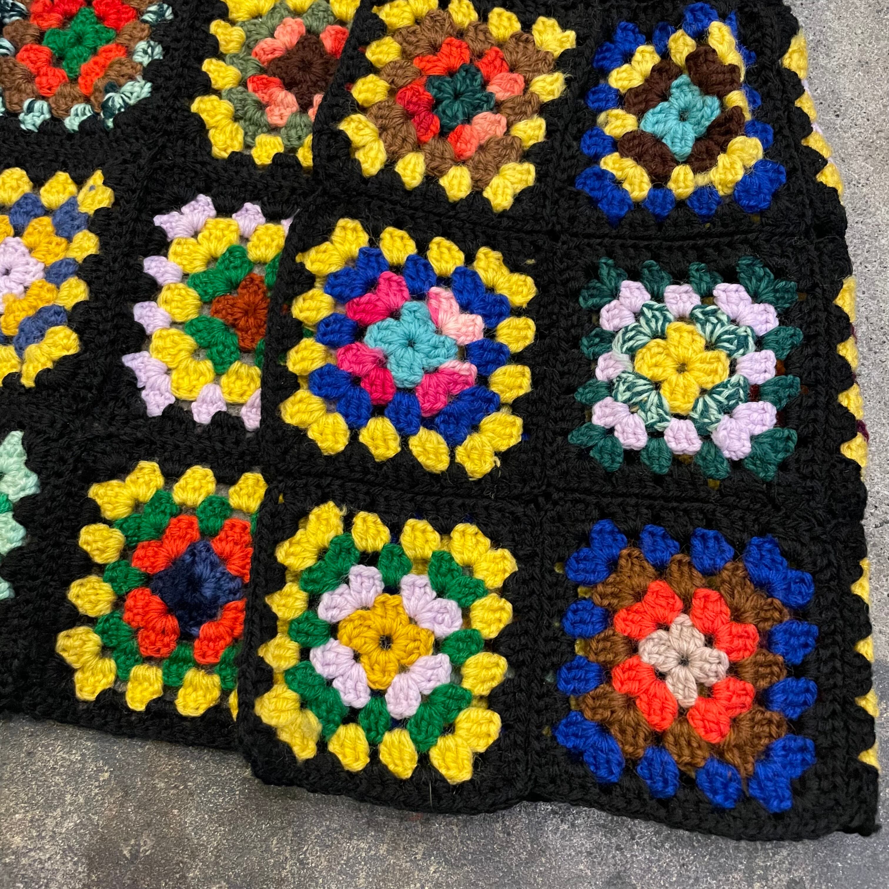 よく見るとグラデーションやミックスカラーが毛糸が使われていたり、ひとつひとつのモチーフ編みの色使いなどがとても可愛いです。