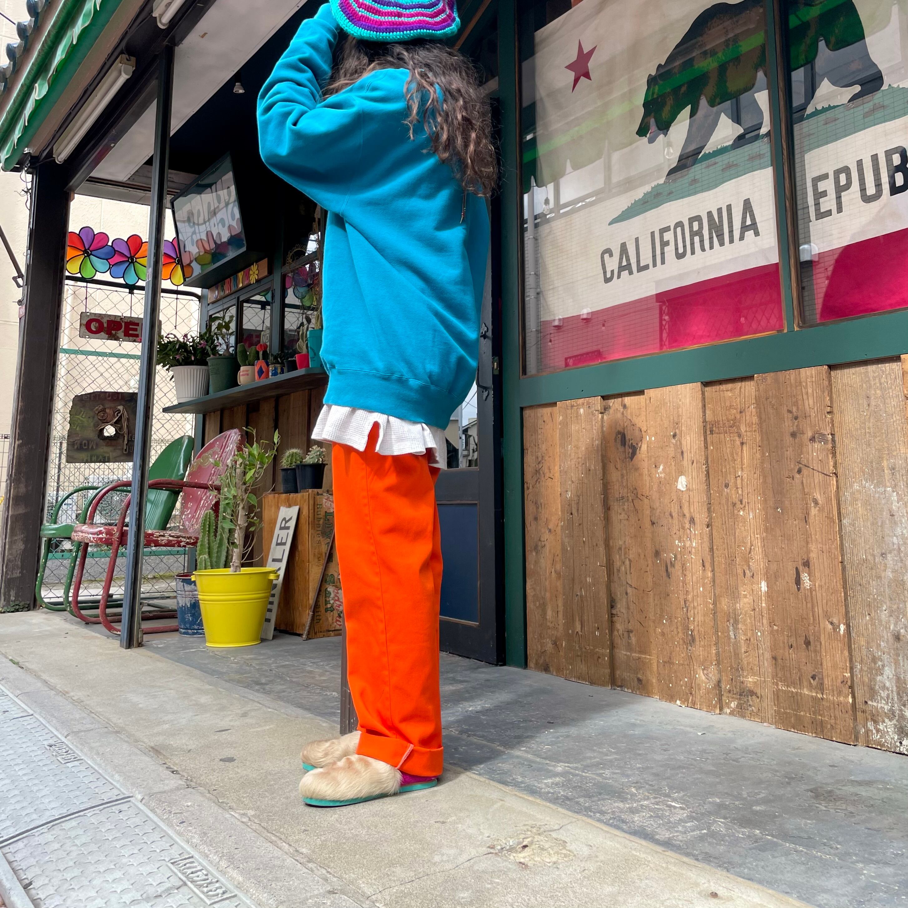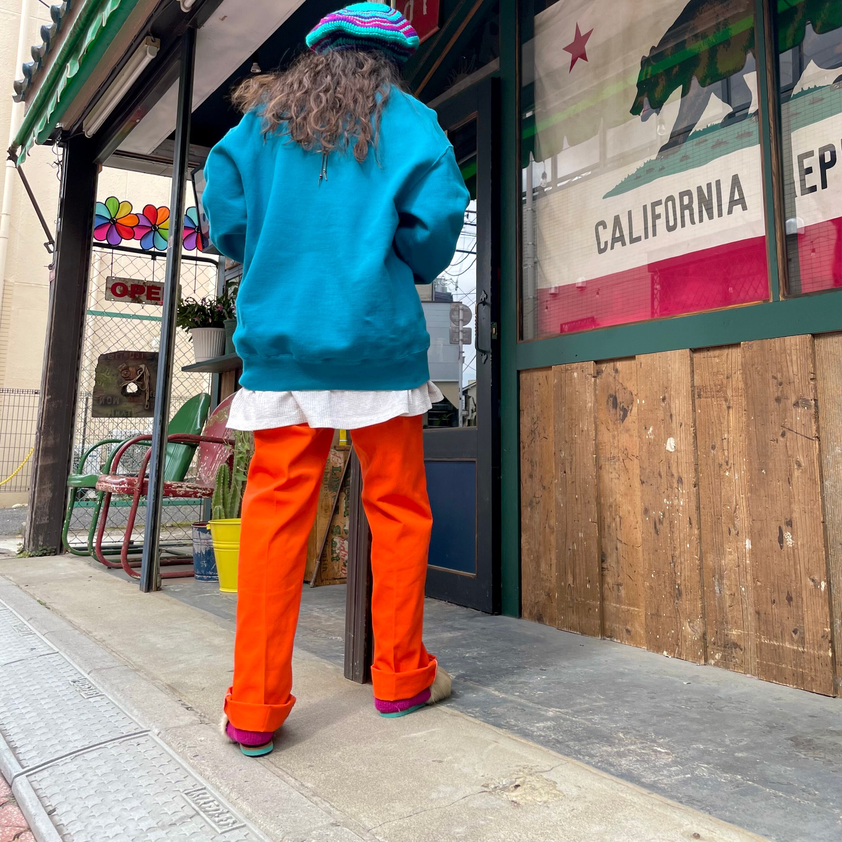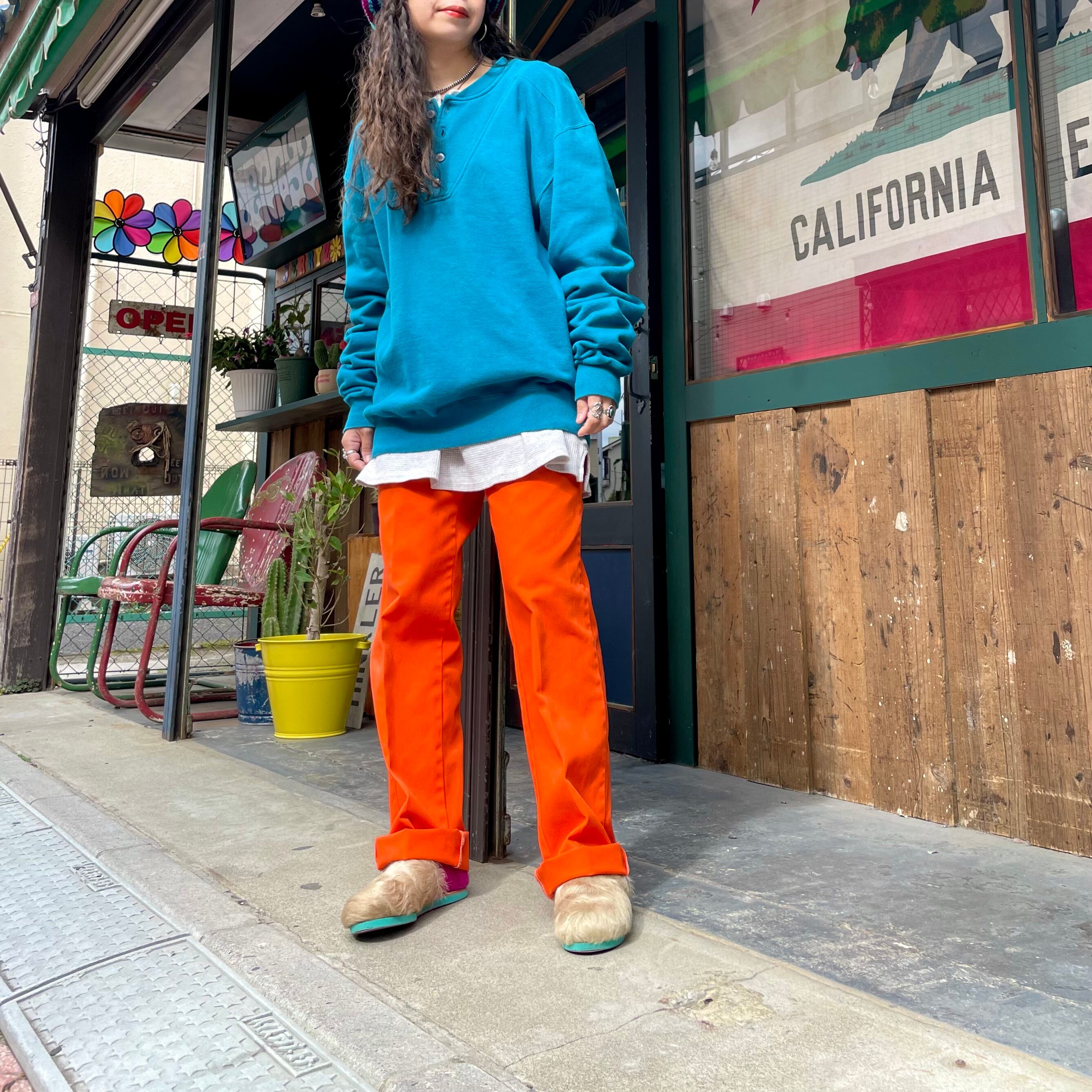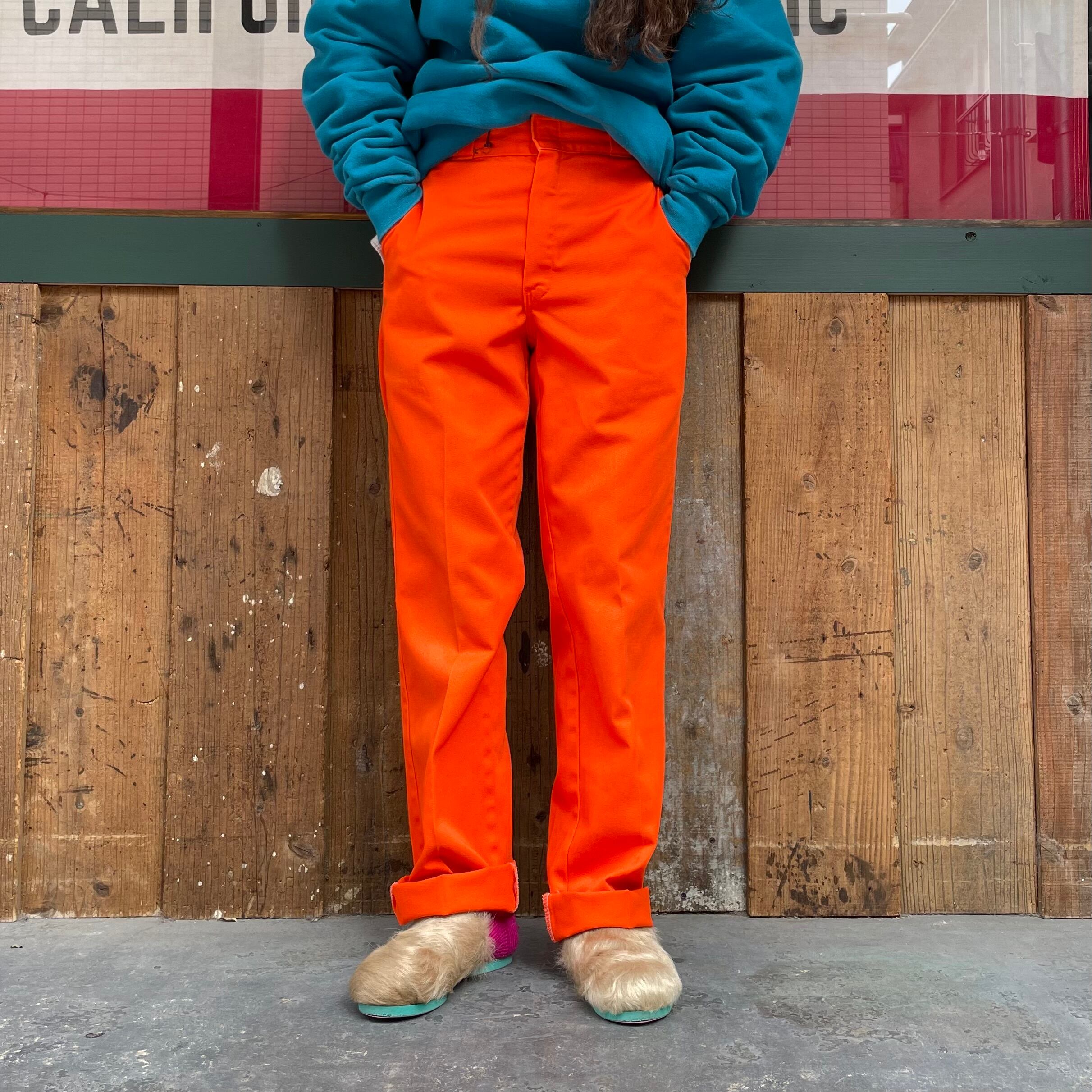 鮮やかなオレンジ色がかわいい90年代USA製ディッキーズのパンツです。