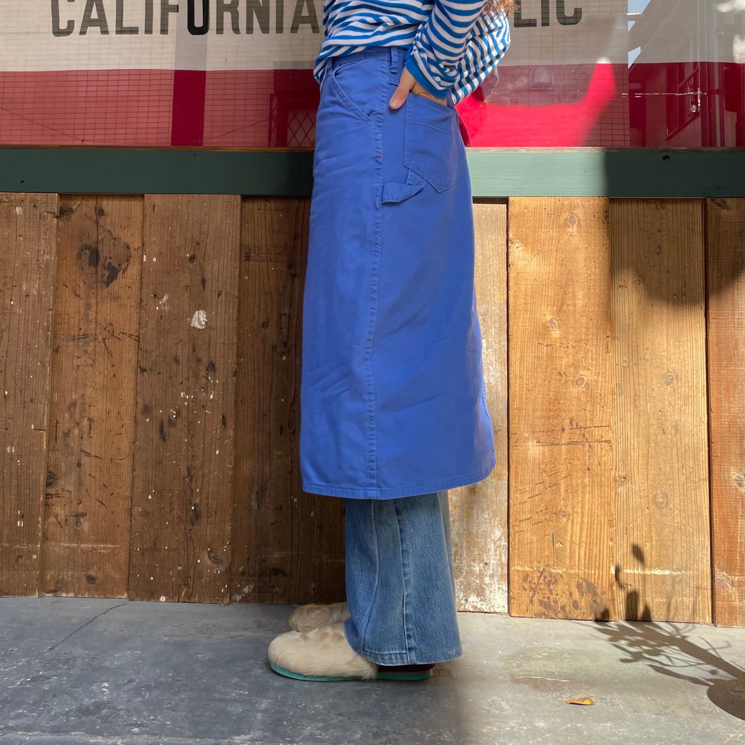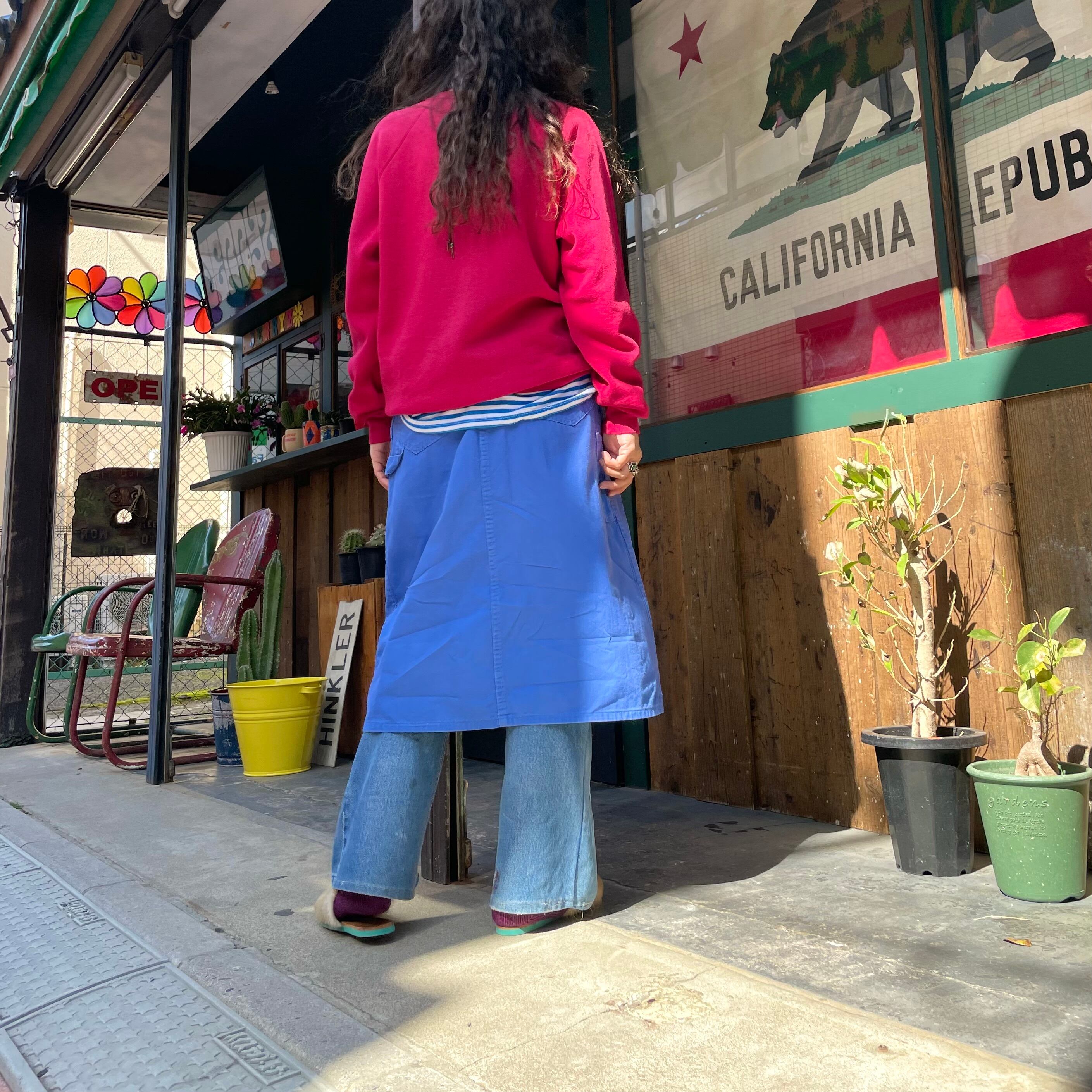 太いパンツに重ねたり、靴下スニーカーと合わせたり、メンズライクなテイストでまとめるのがおすすめのかっこいいスカートです。
