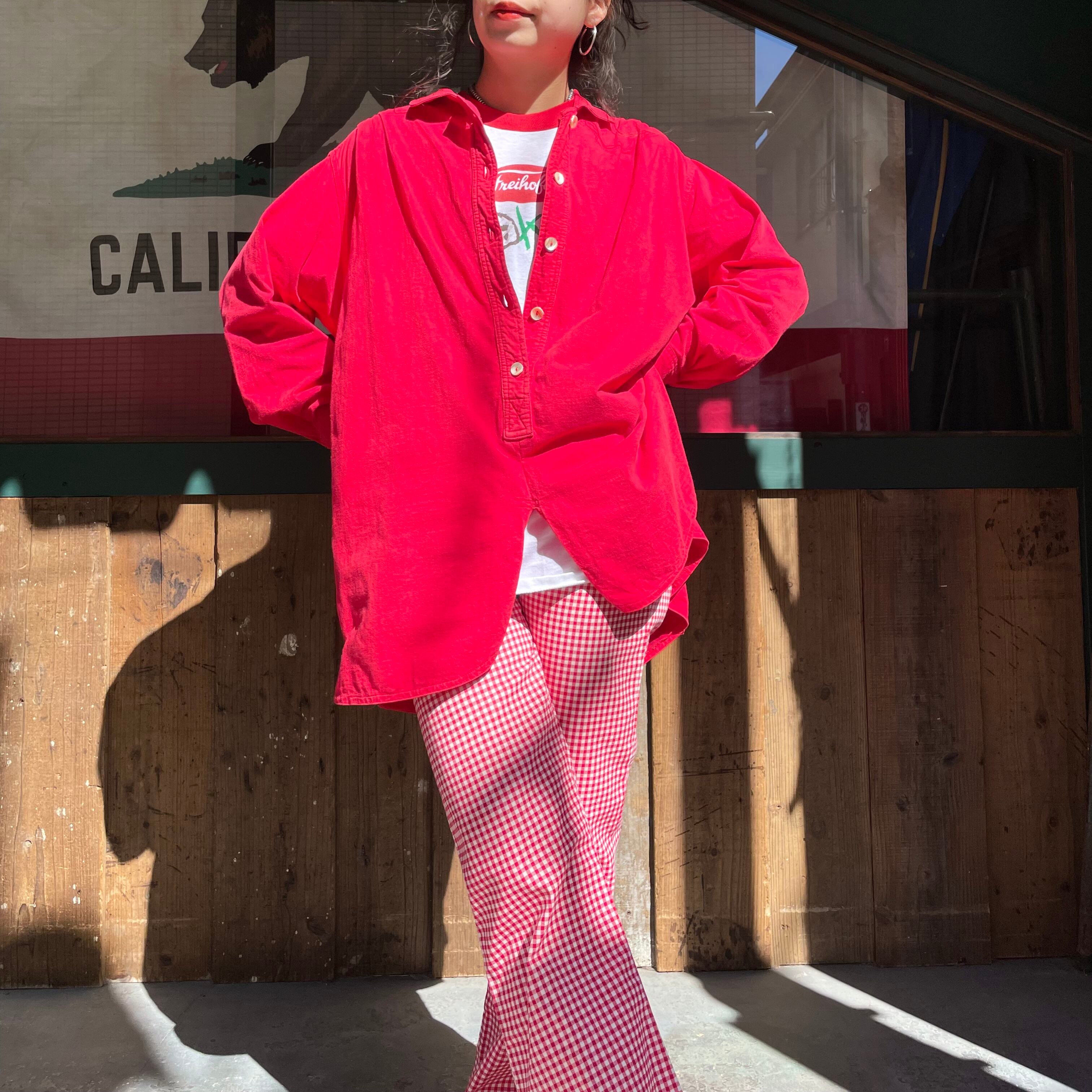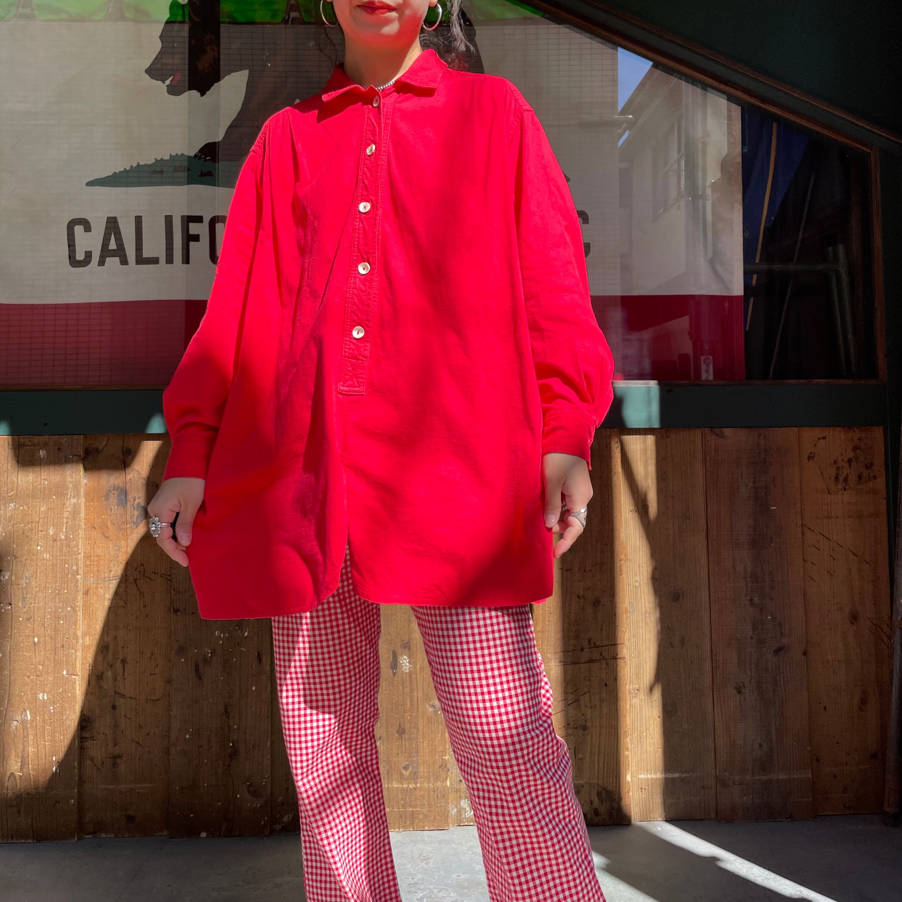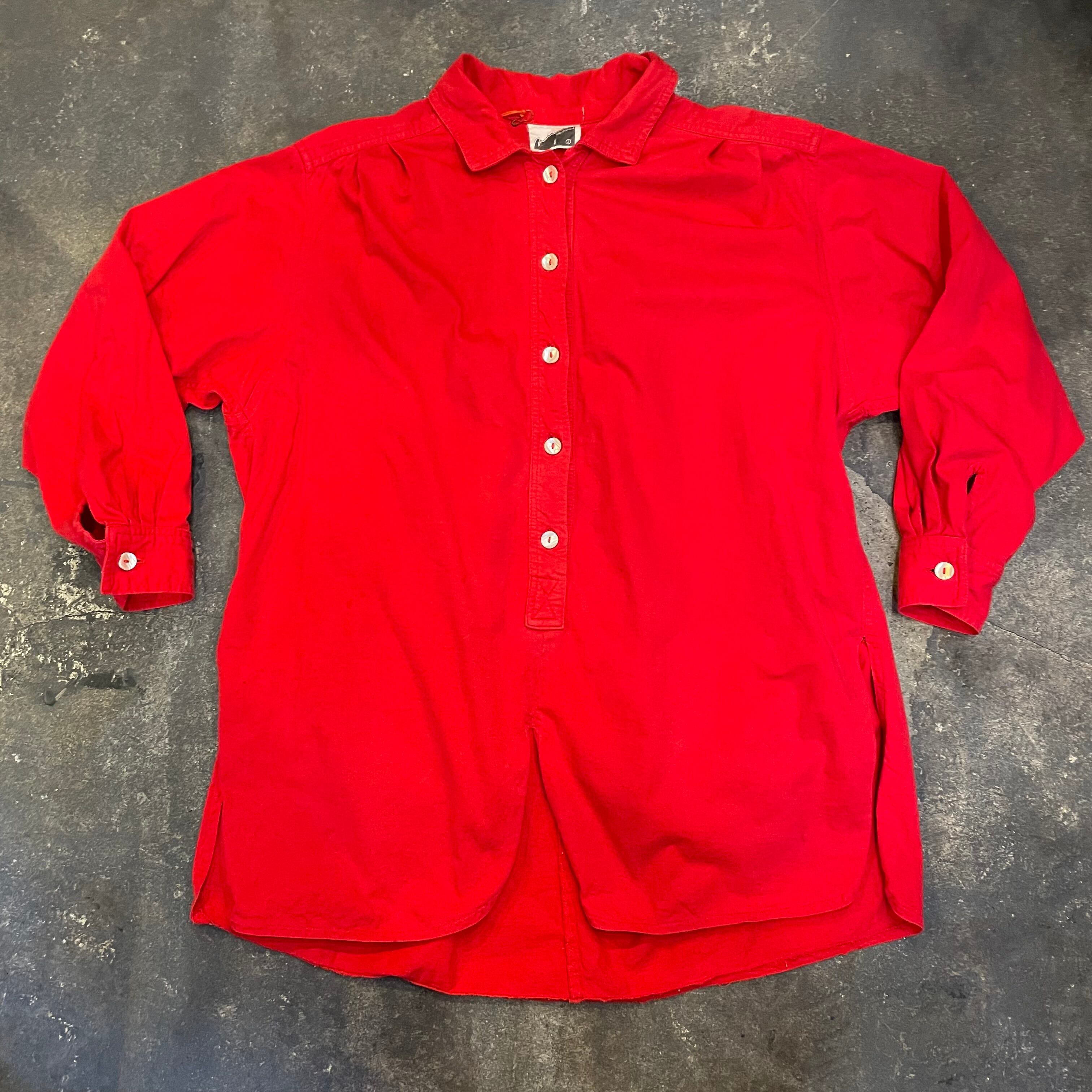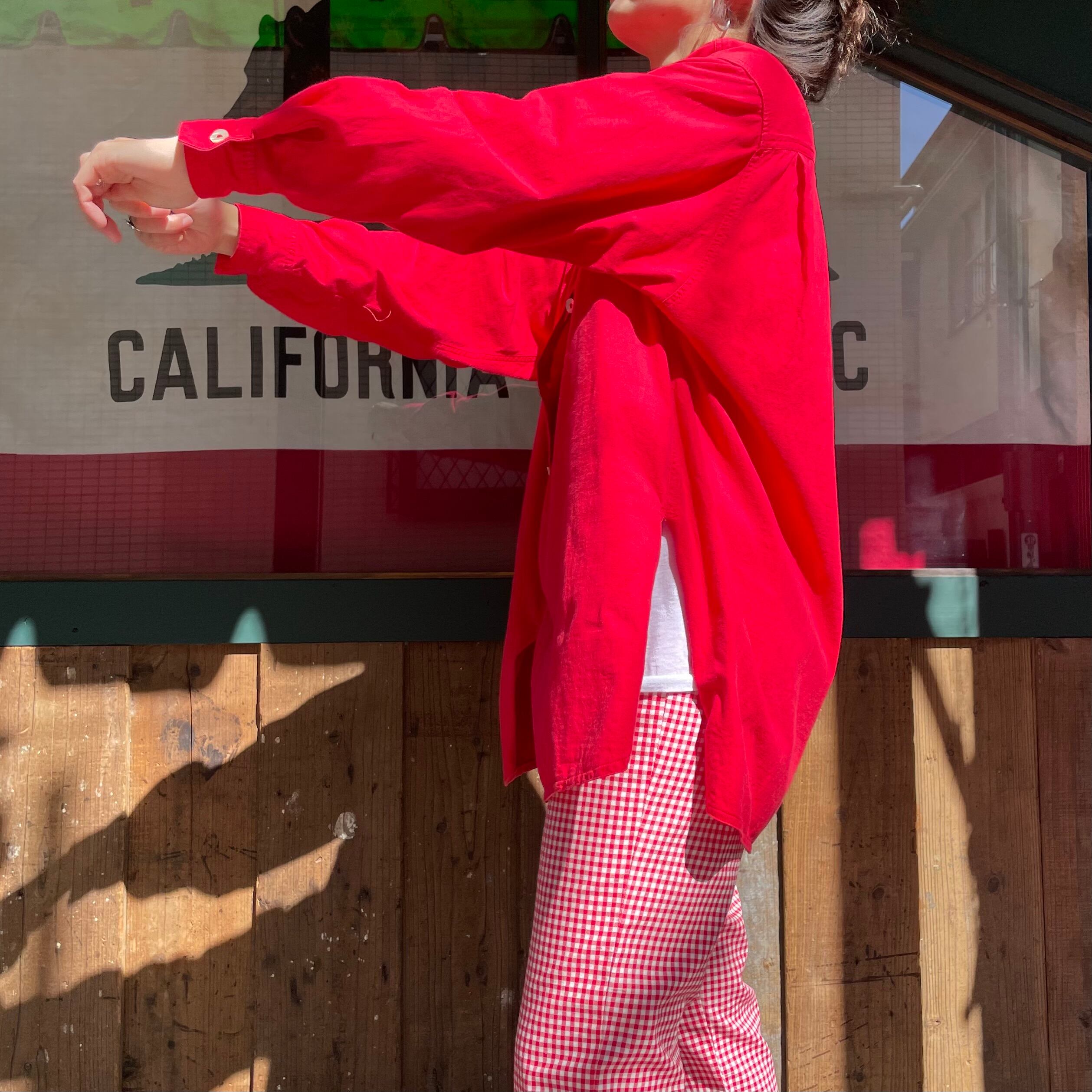 プルオーバーでお腹までボタンがあり、前中心裾と両サイドにスリットがある不思議だけど動きやすいデザインのシャツです。
