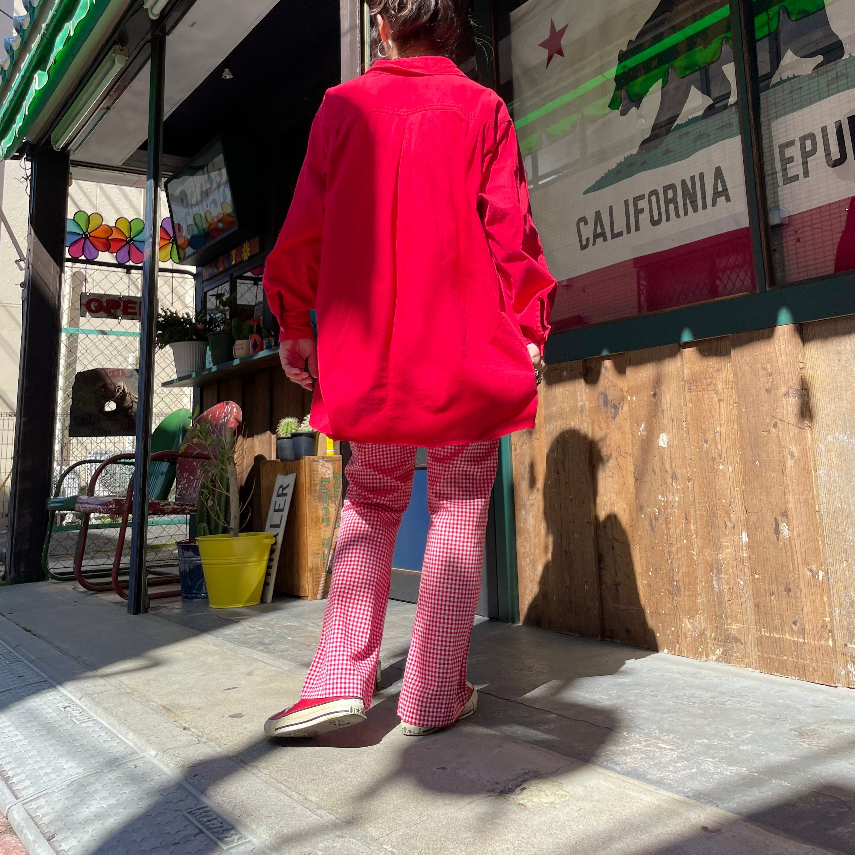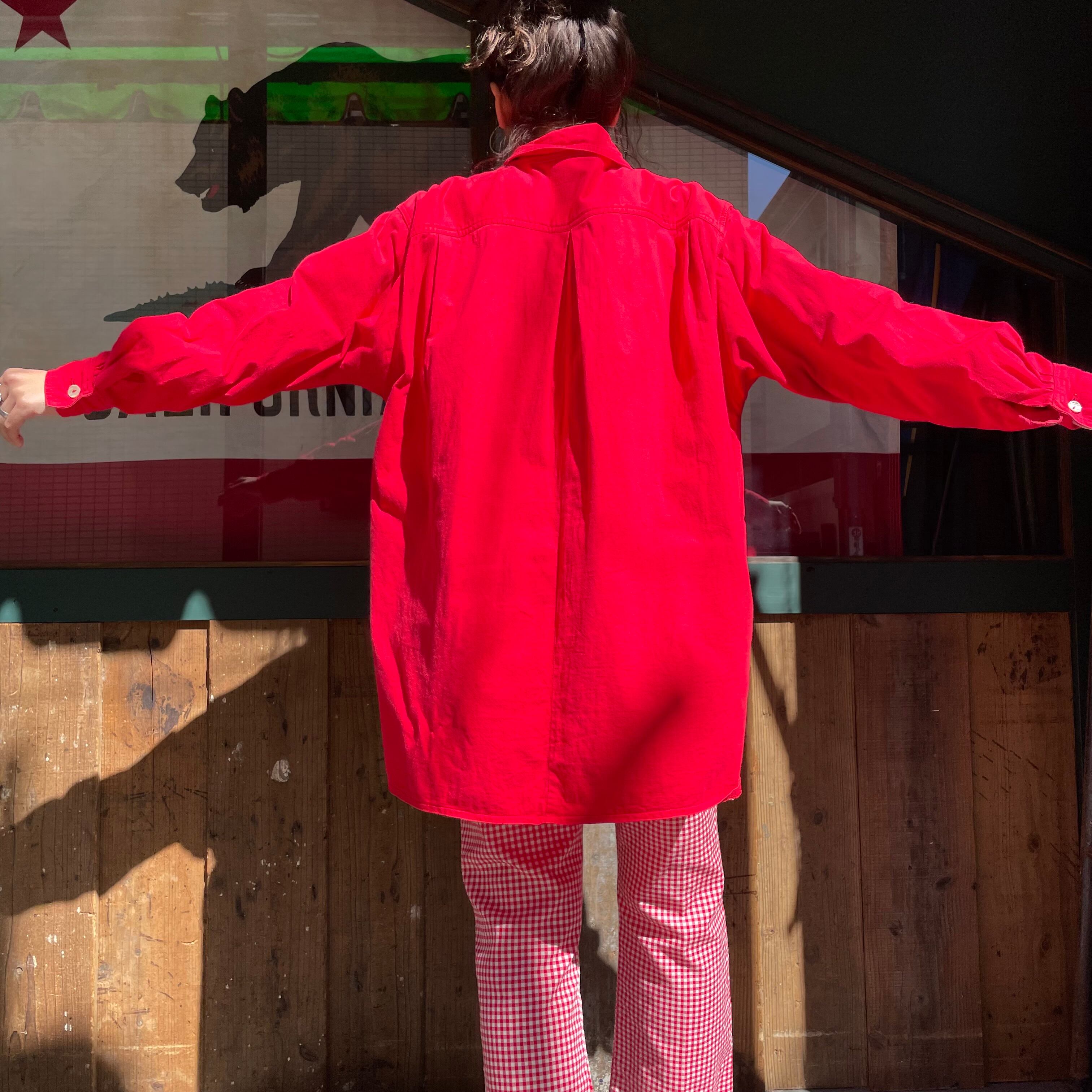 前を開けて中にプリントのTシャツを着たり、キャミソールワンピースやノースリーブワンピースの上に重ねたりすると、深めに開けた胸元やスリットから重ねたアイテムの柄や色が見えてかわいいと思います!
