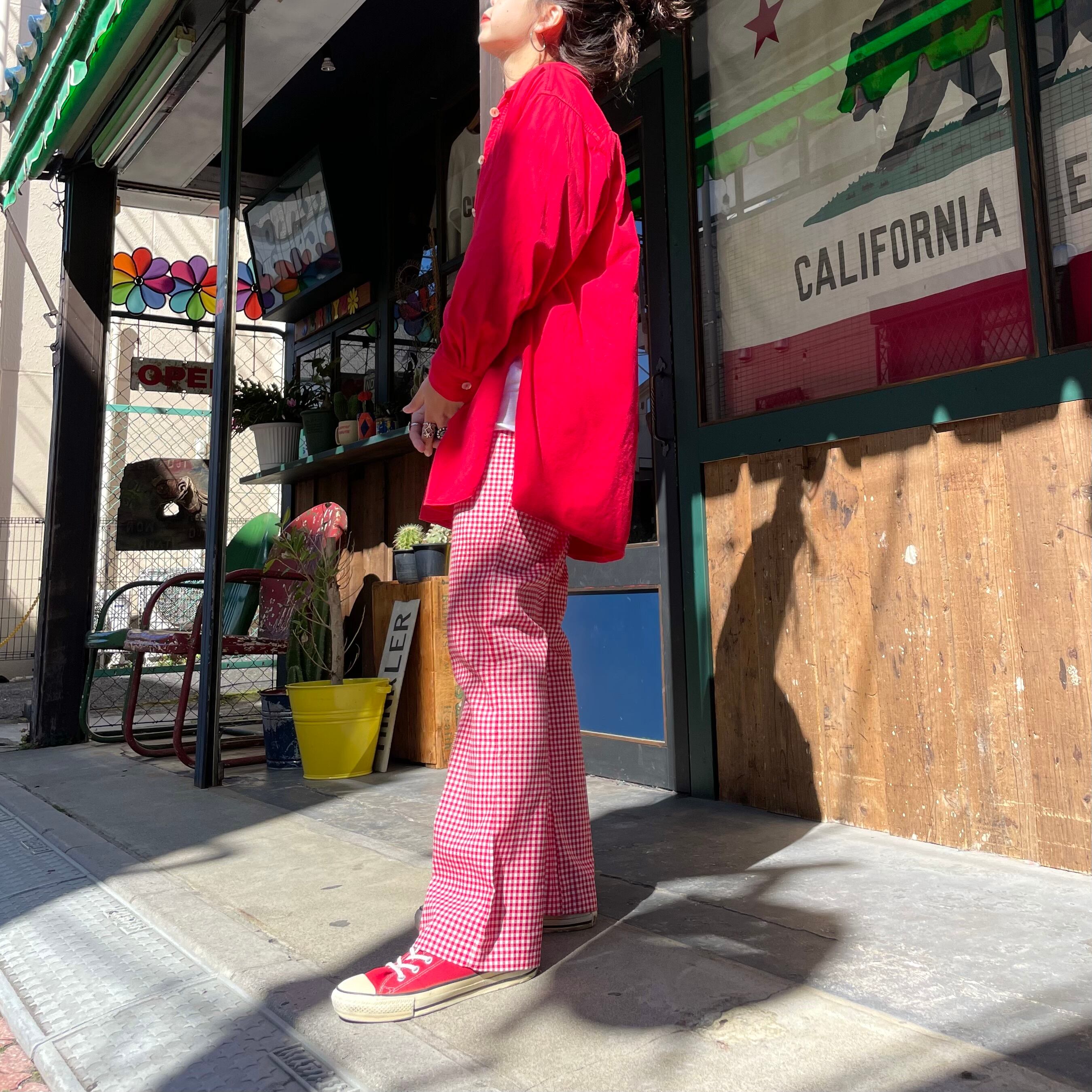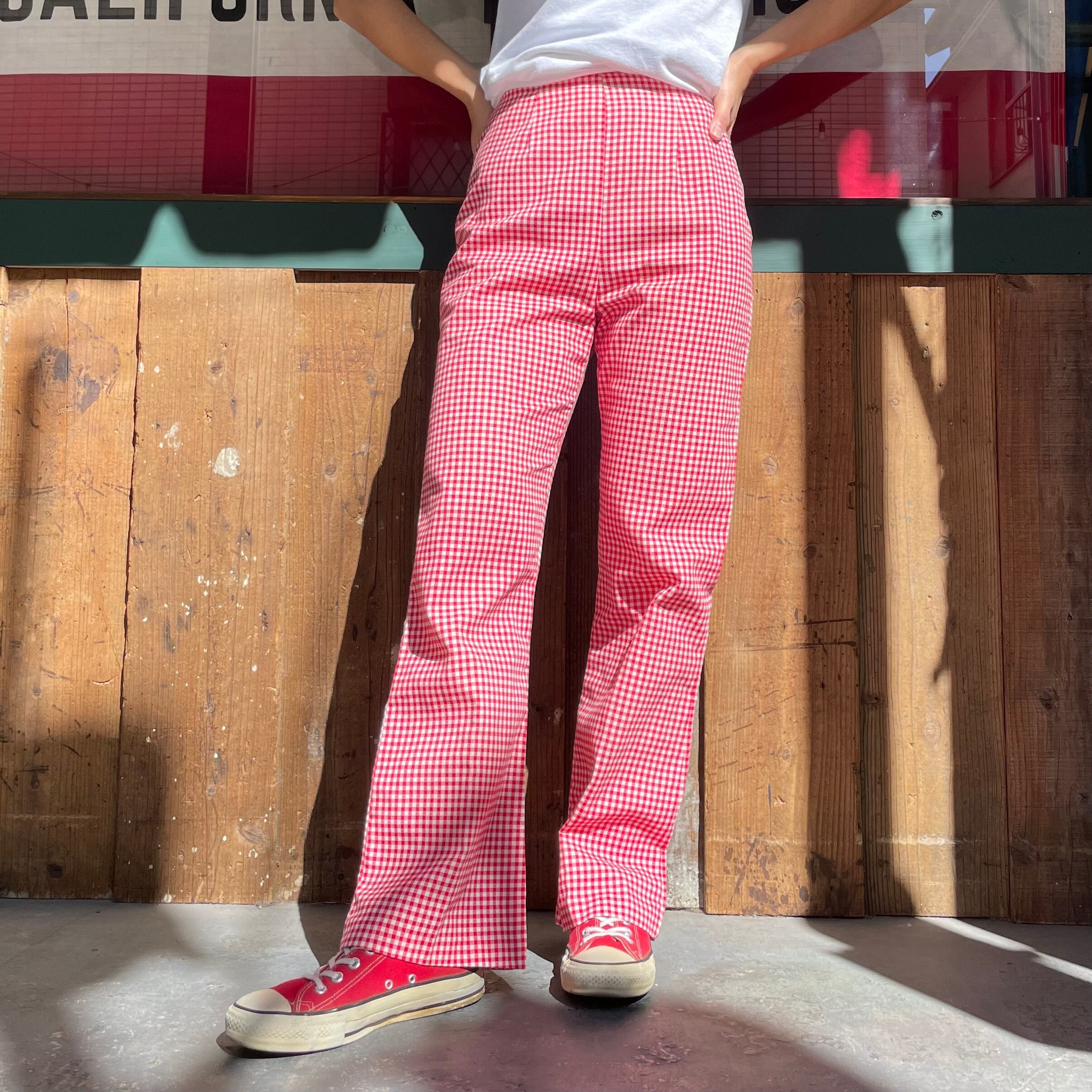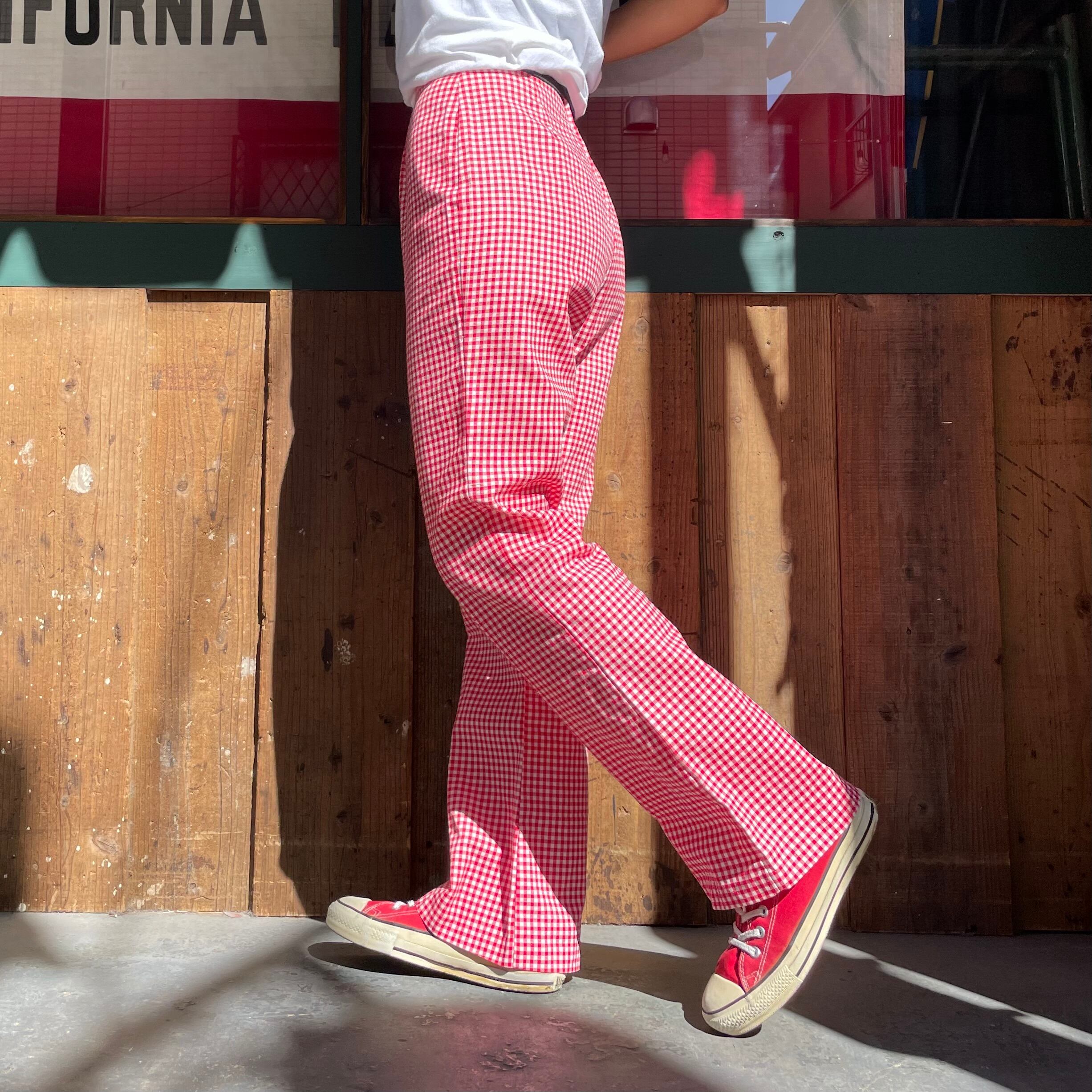 ギンガムチェック柄が春の雰囲気たっぷりでかわいいフレアシルエットのパンツです。