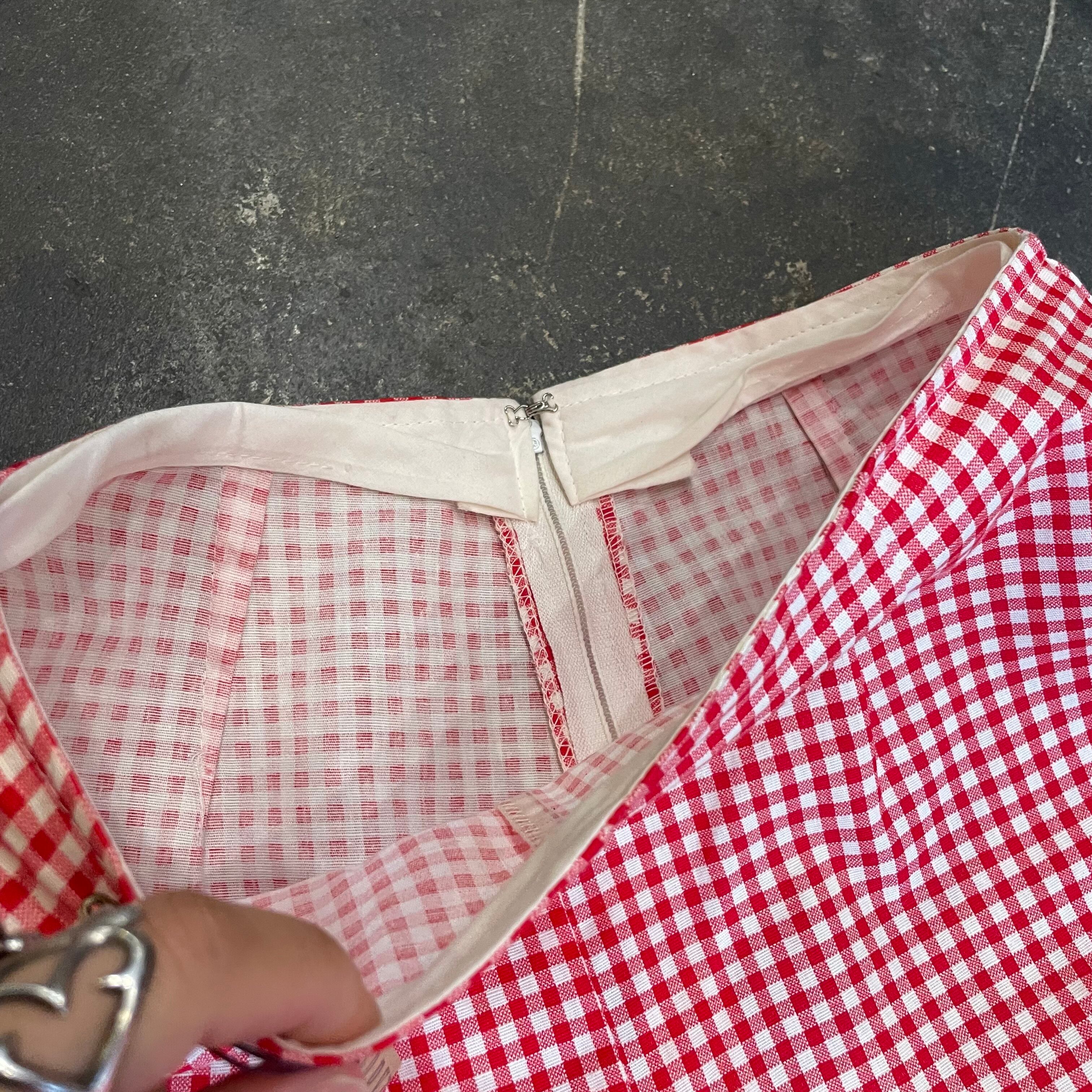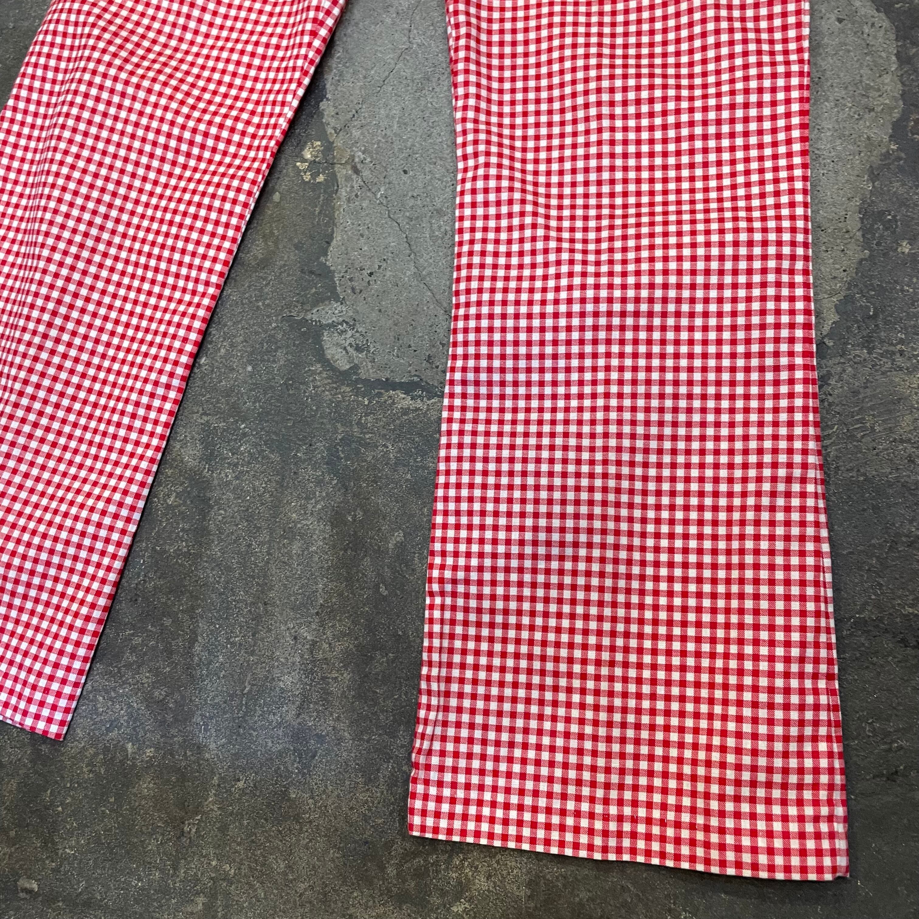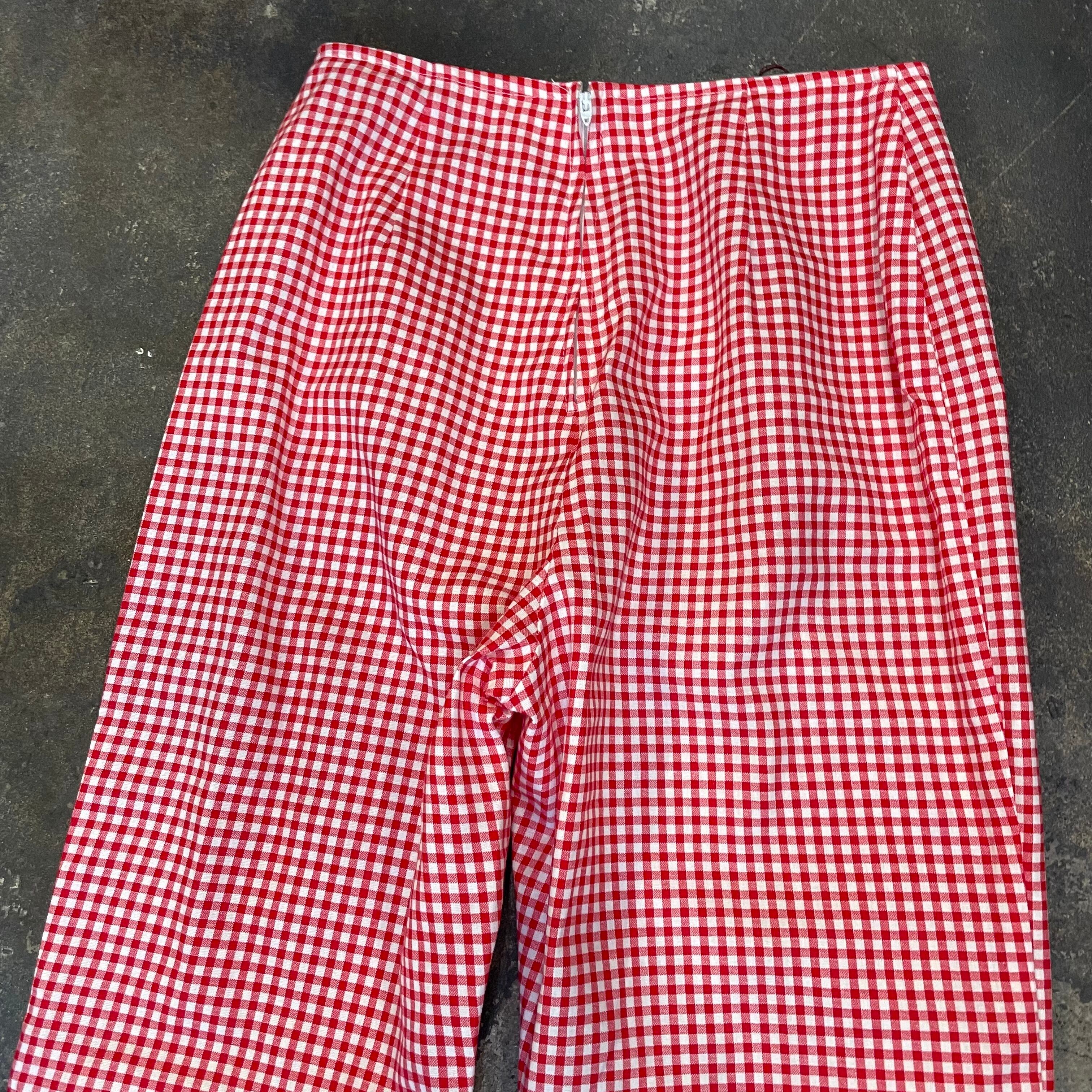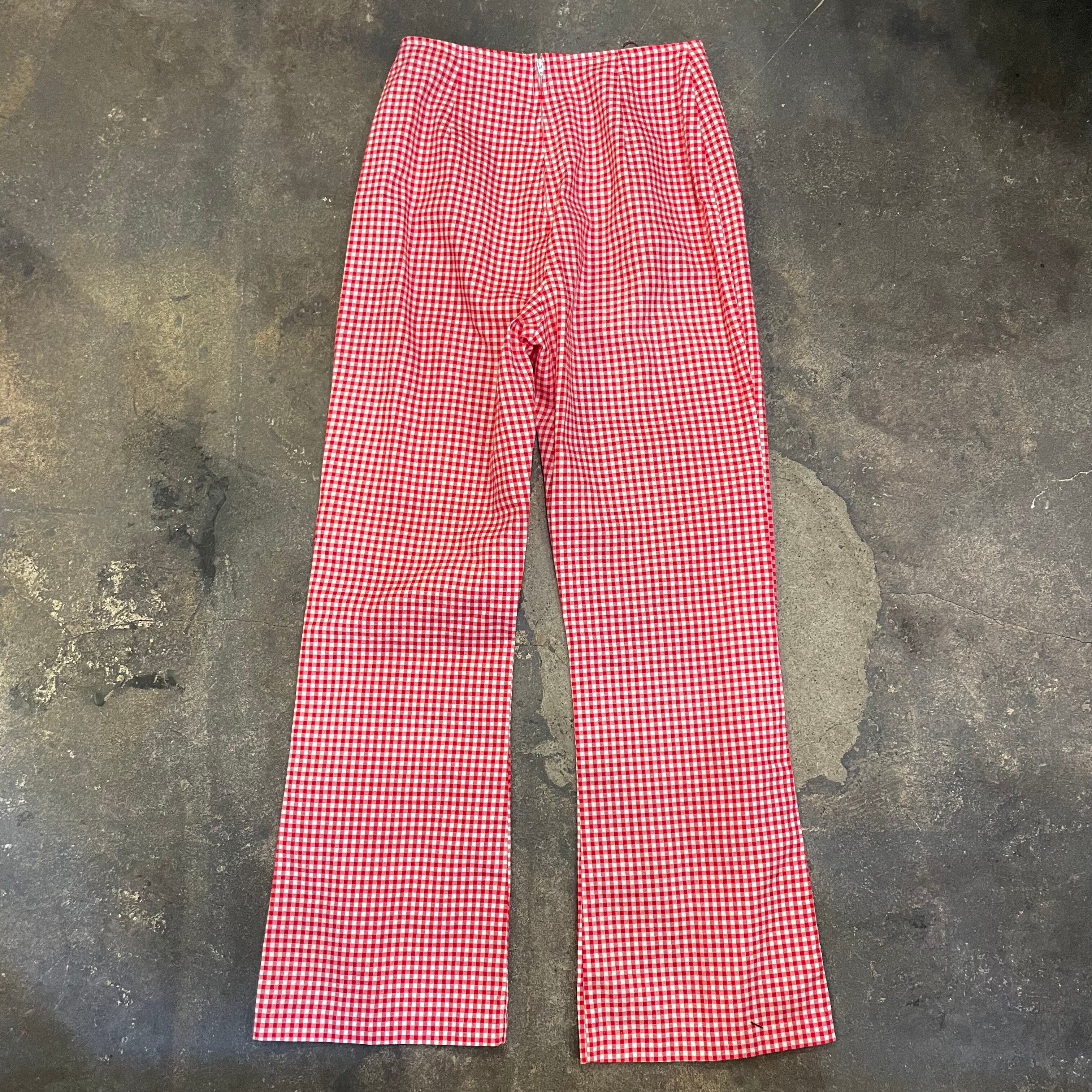 ギンガムチェック柄が春の雰囲気たっぷりでかわいいフレアシルエットのパンツです。