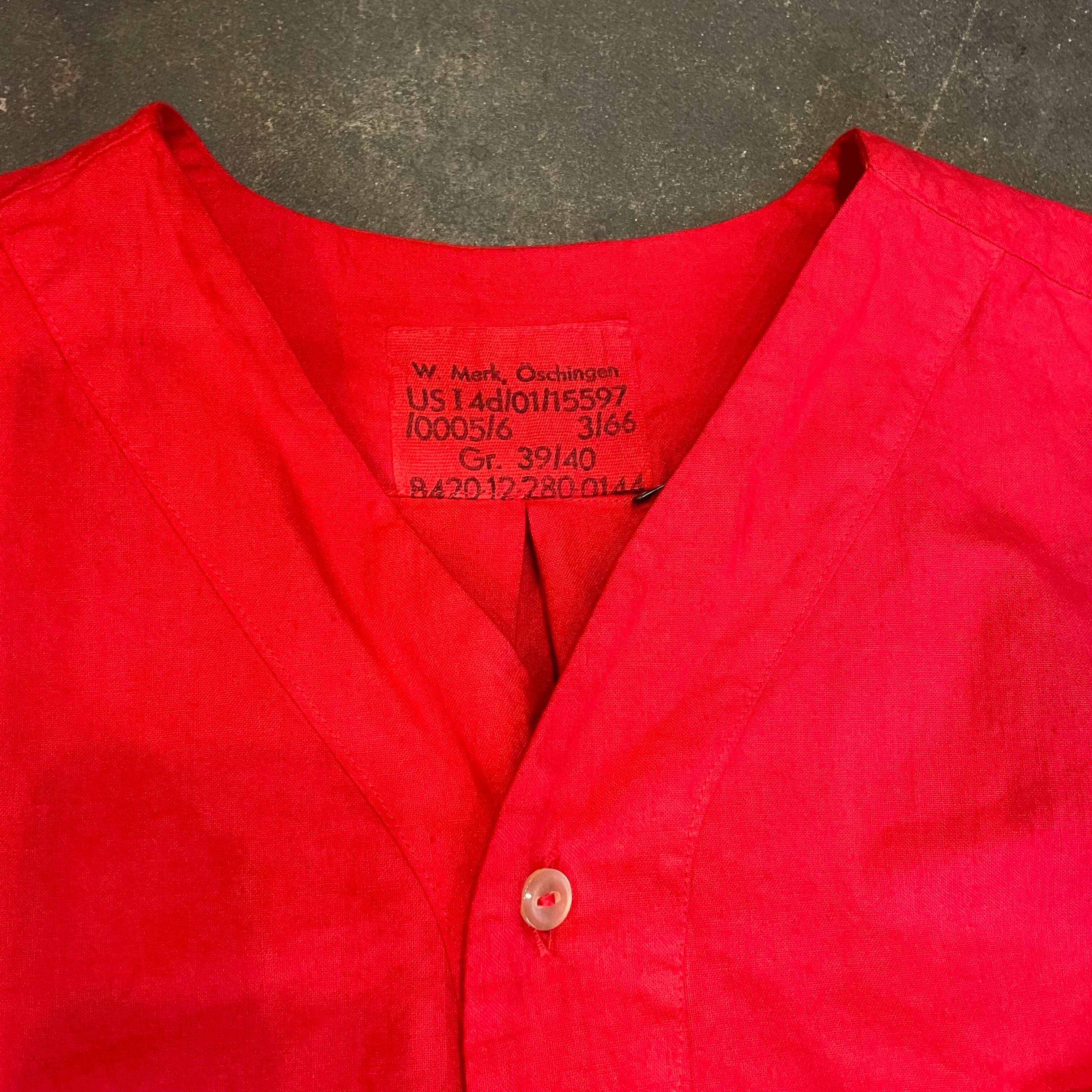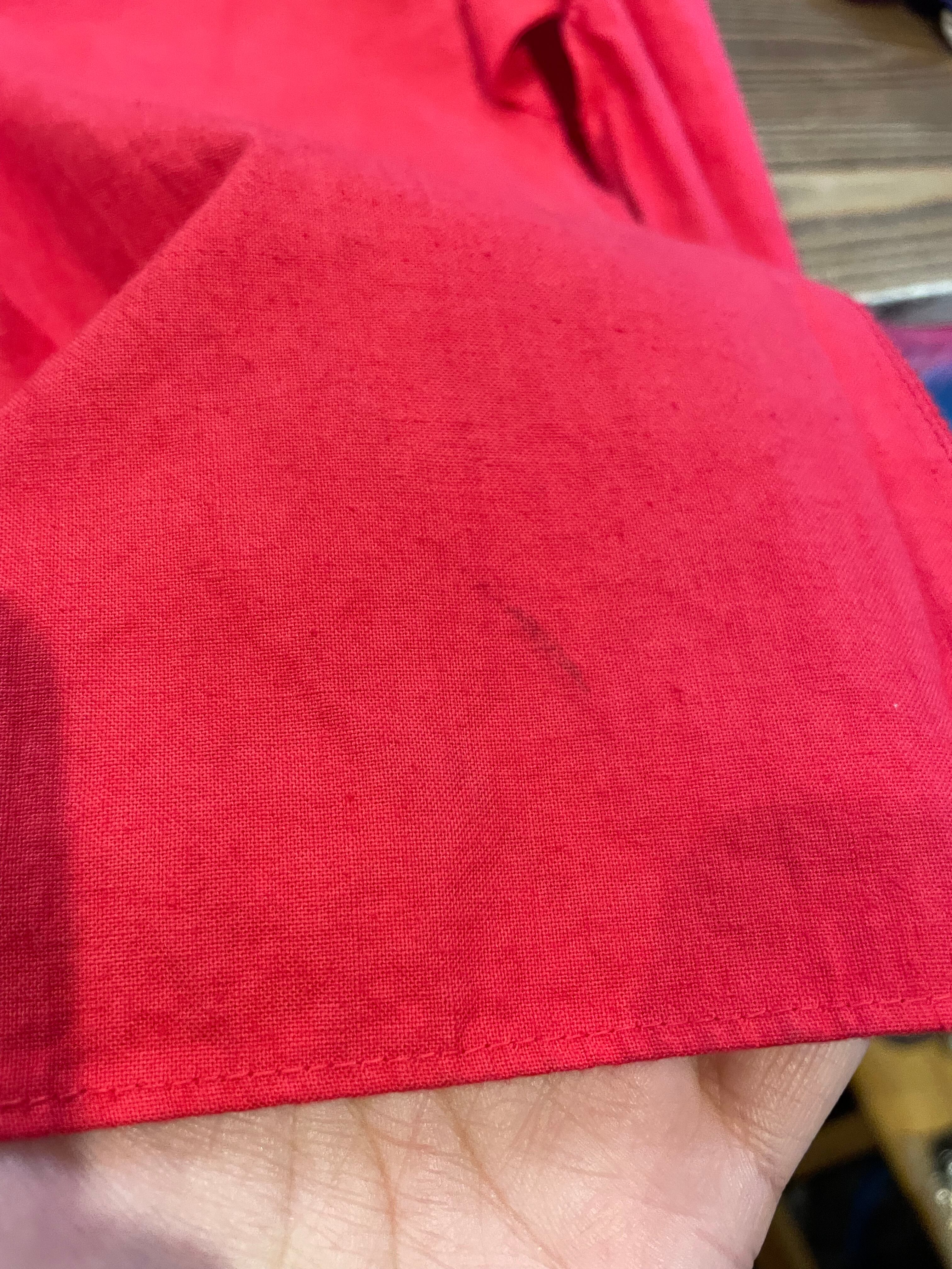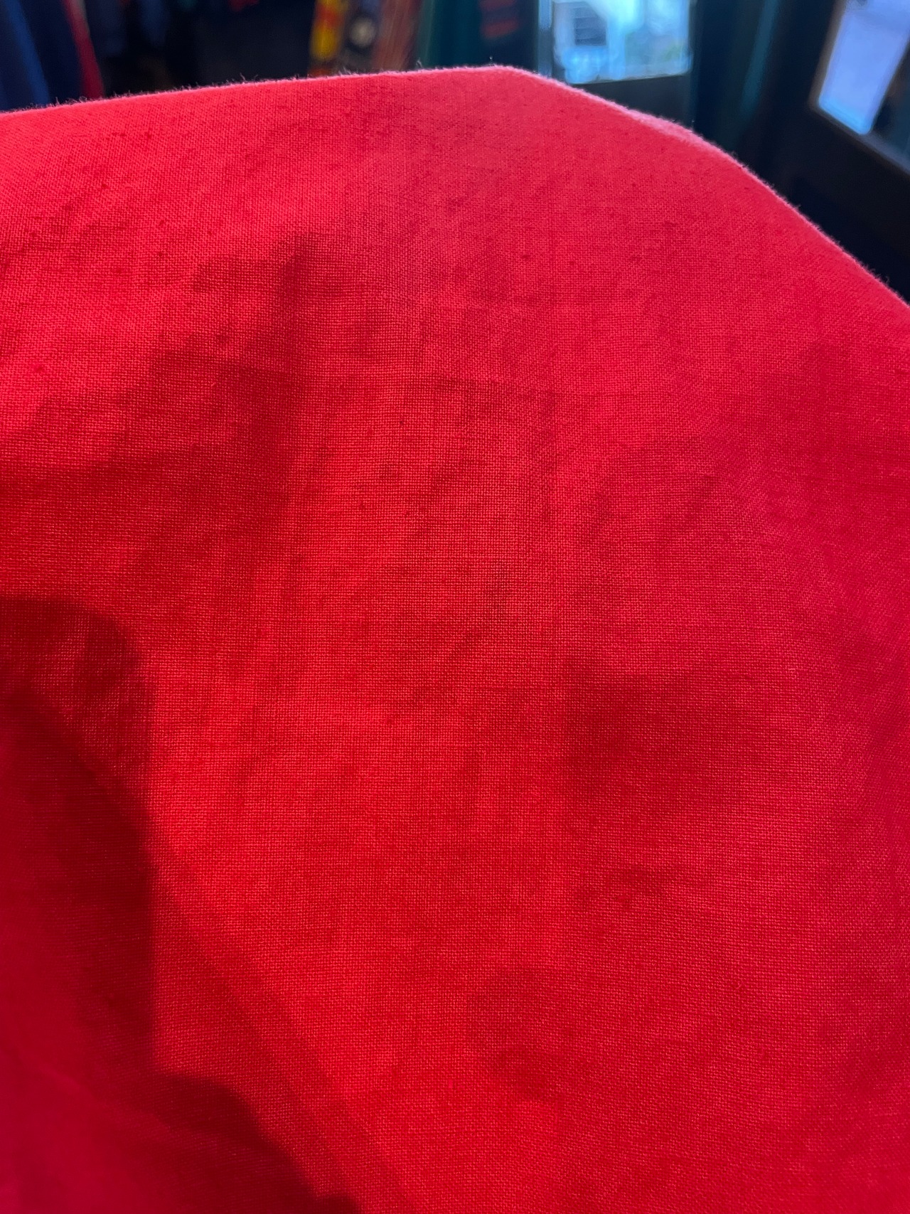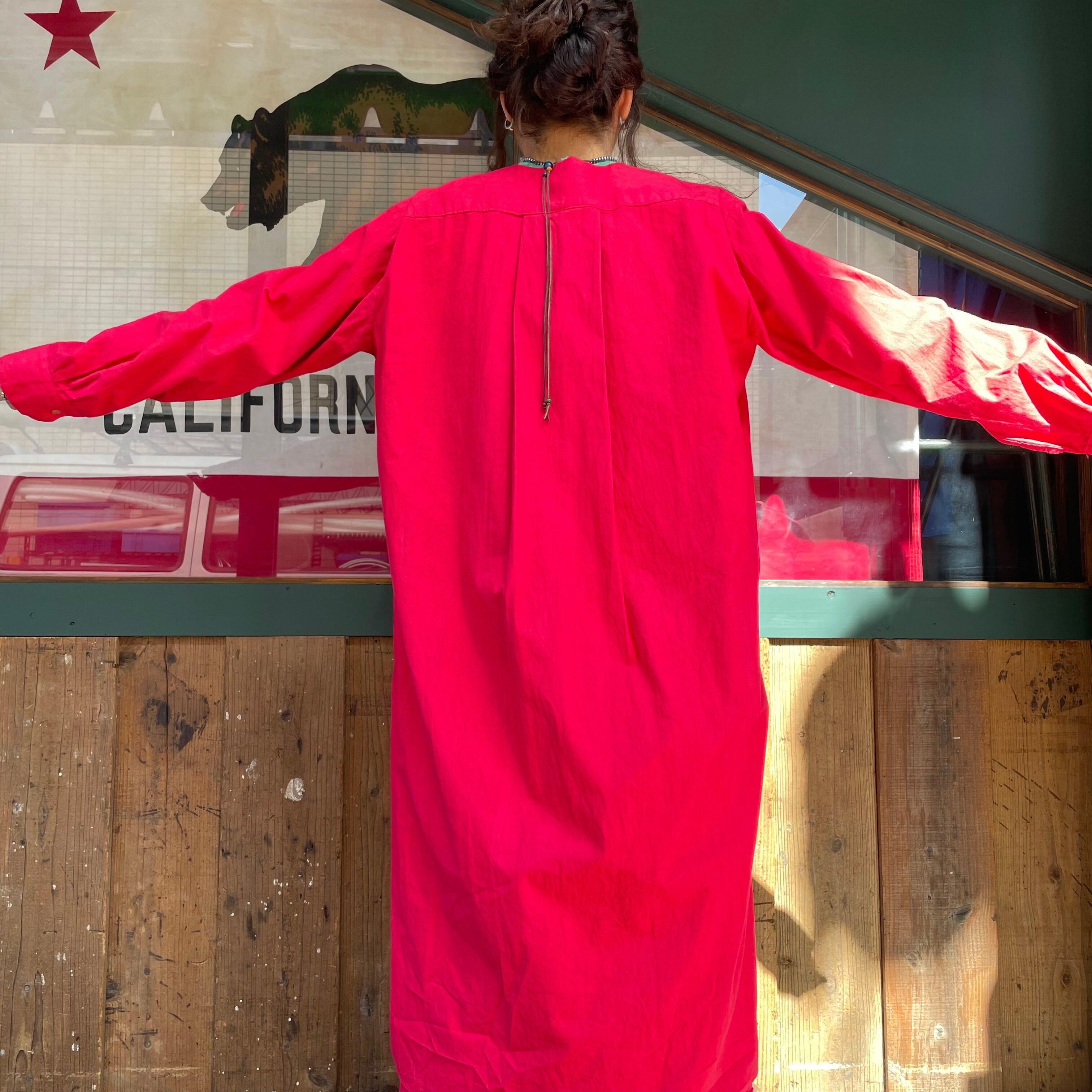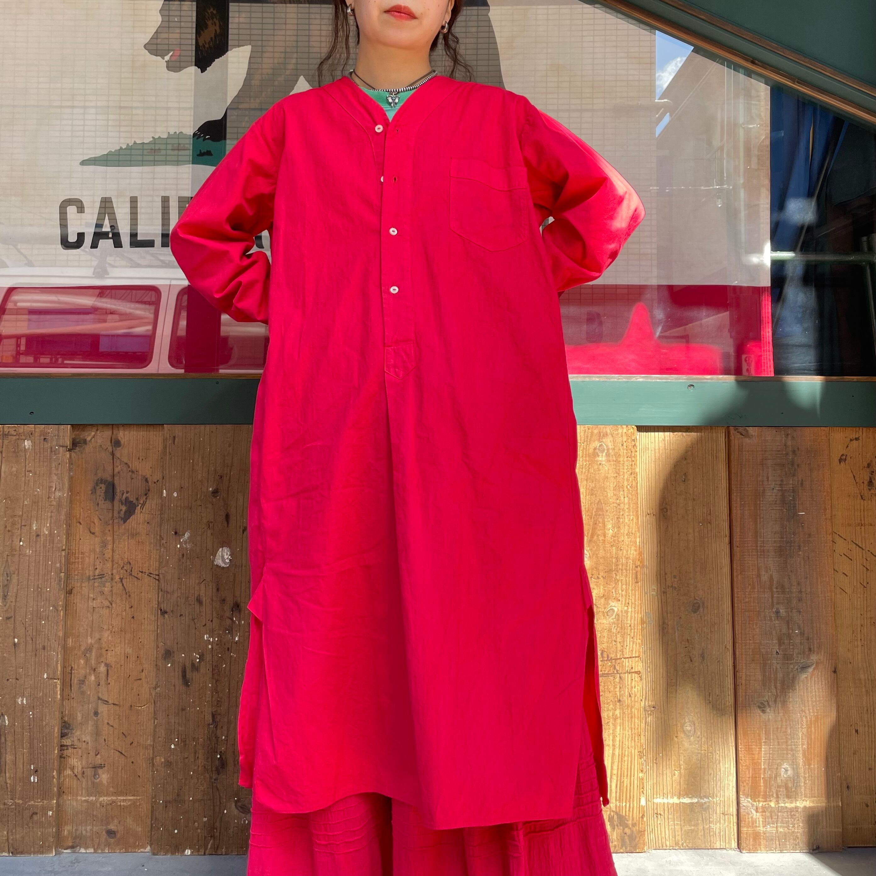チューリップのような春らしいピンク色がかわいい後染めのグランパシャツです。