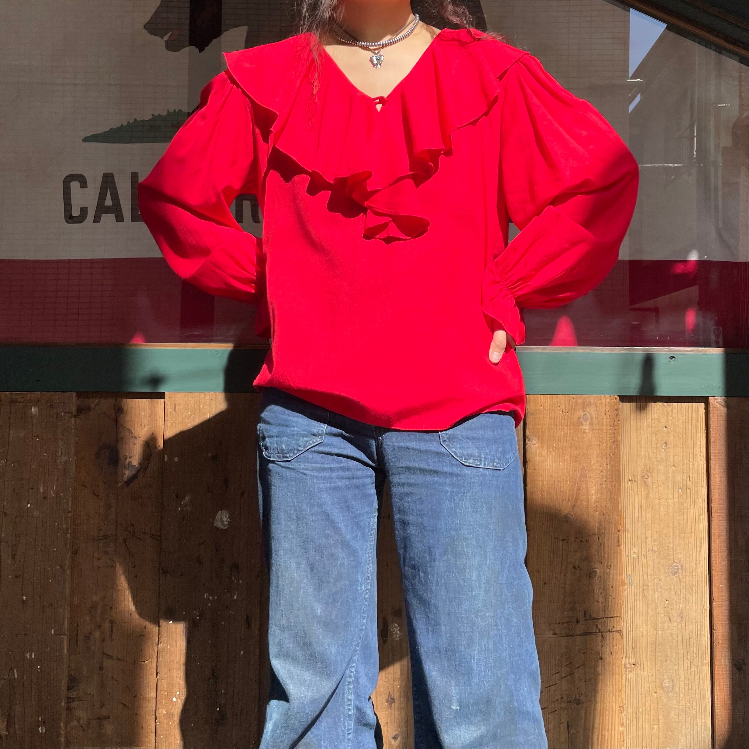 潔く真っ赤なところにときめきます。コーディネートの差し色にもかわいいですし、一枚でデニムパンツにインしたりしても良さそうです!