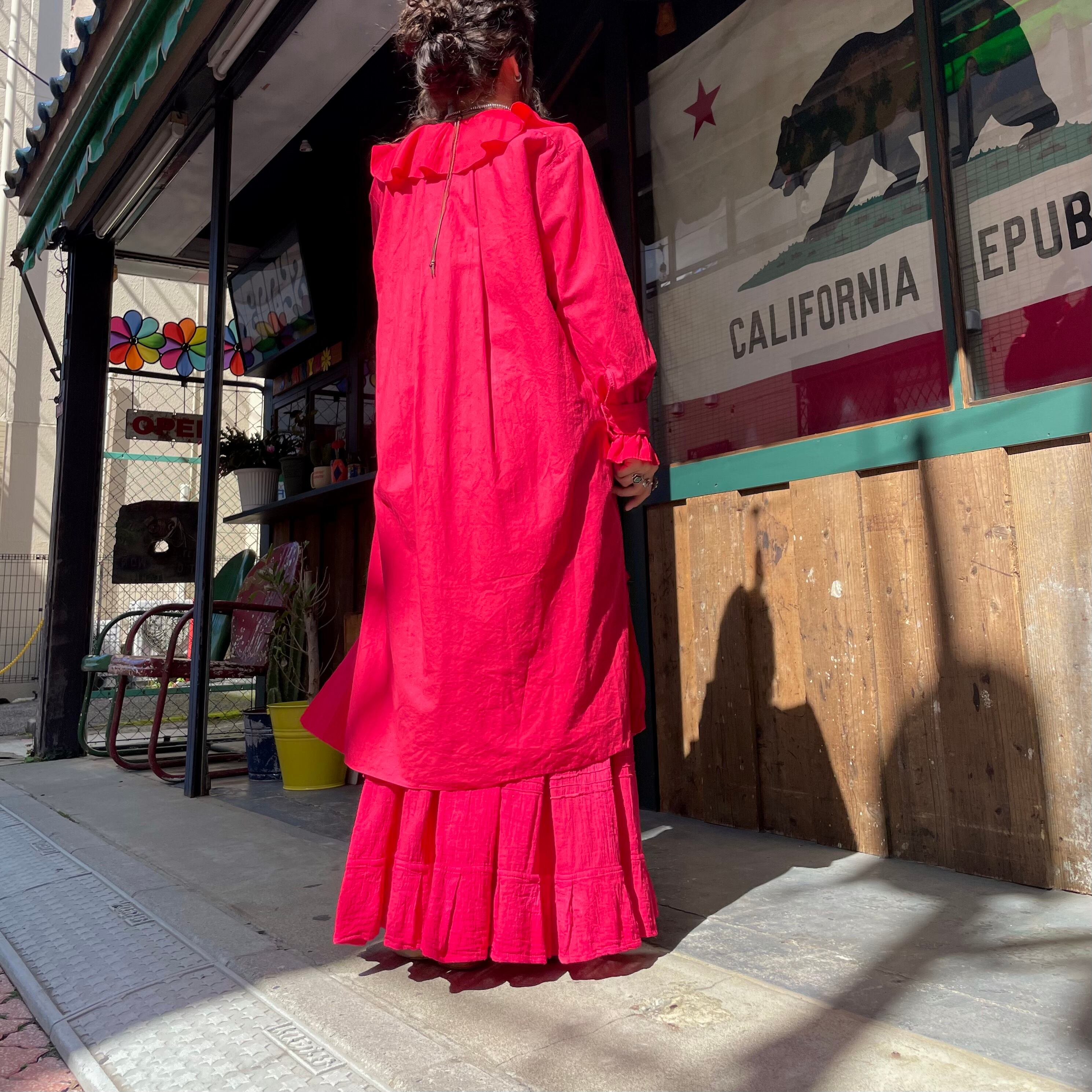 柔らかいけど強めな絶妙なピンク色がとてもかわいいですし、ティアードになっていたりタックやフリルが目立ちすぎずさりげなくポイントになっていてかわいいですね。