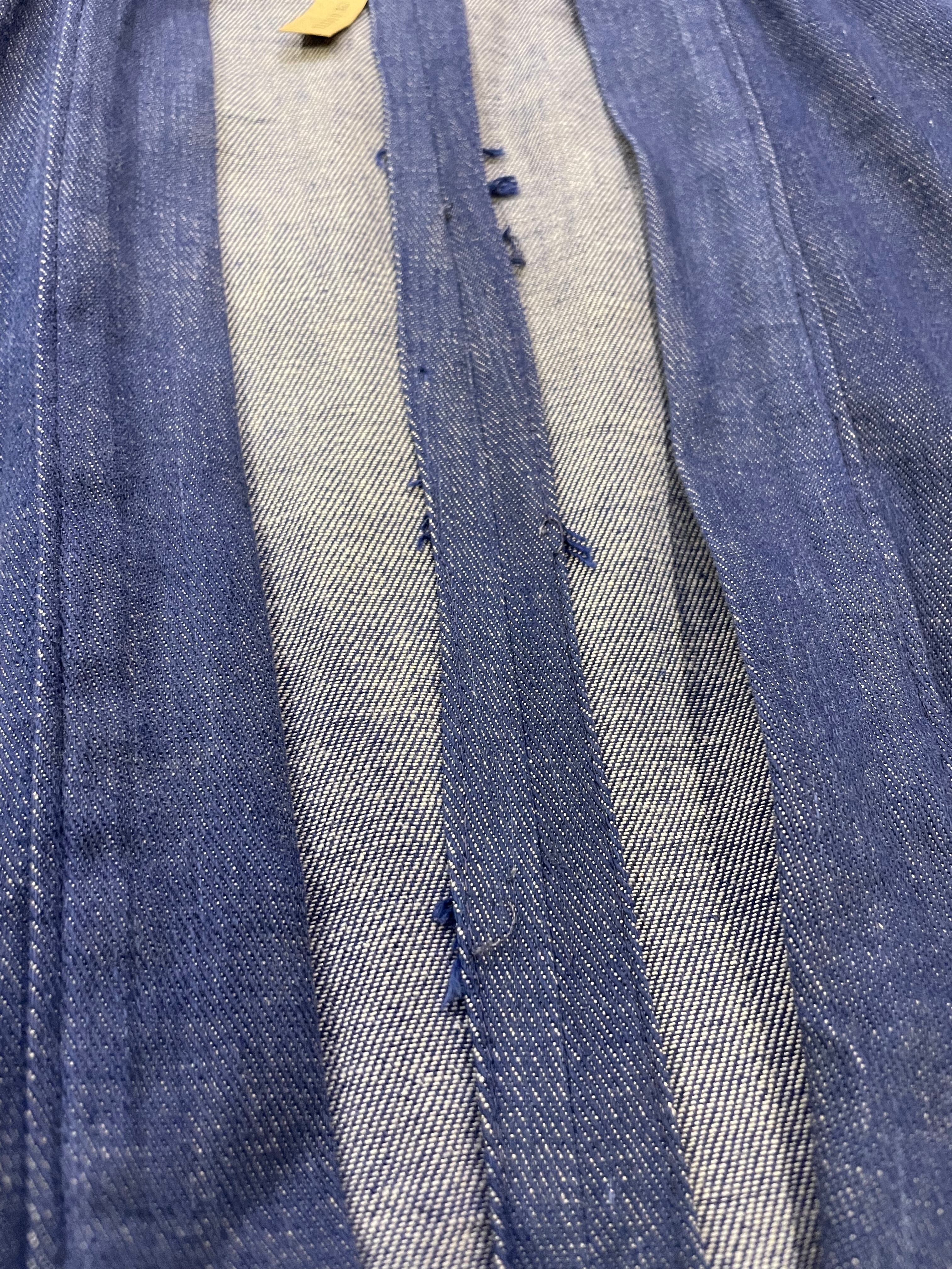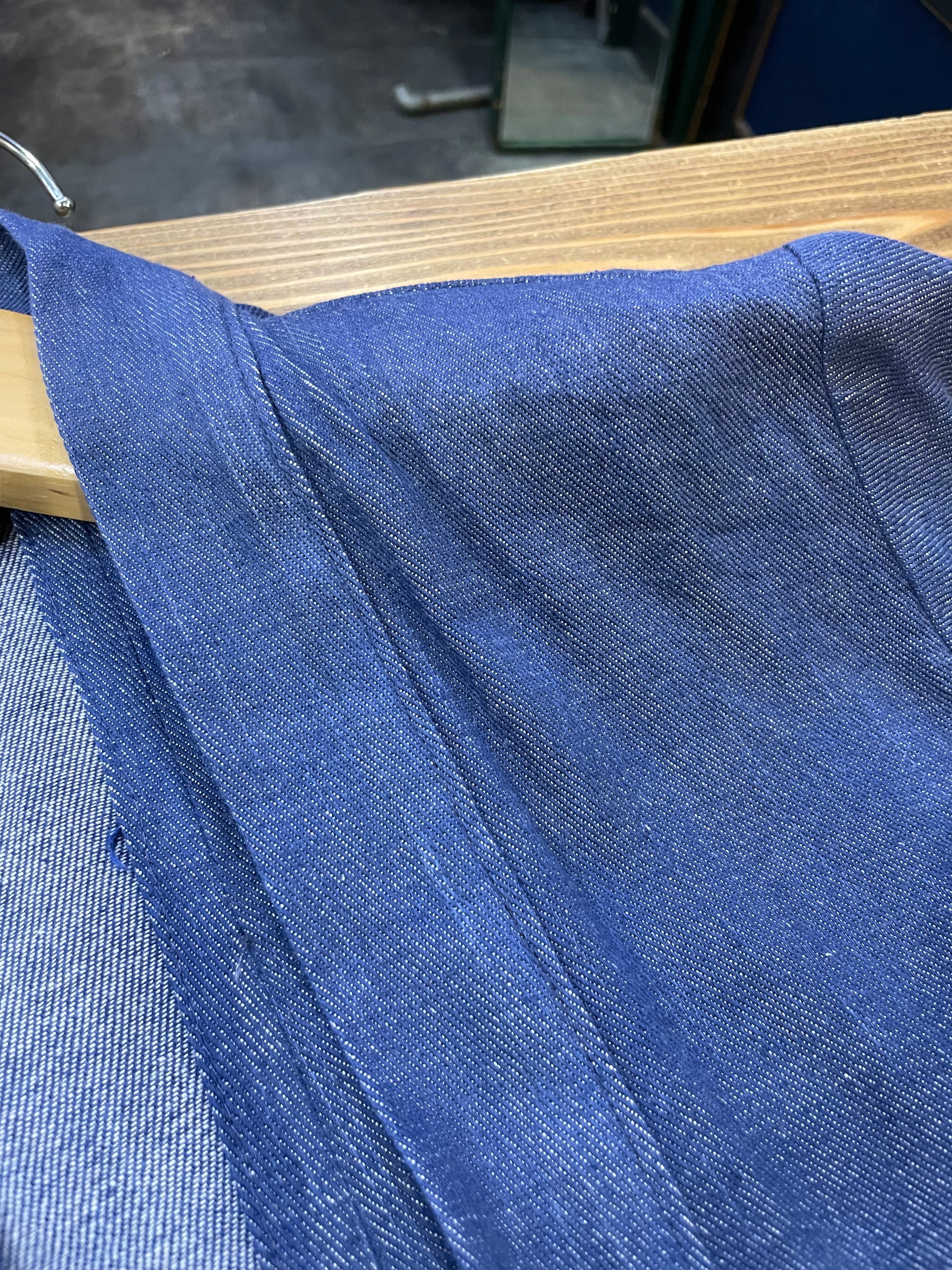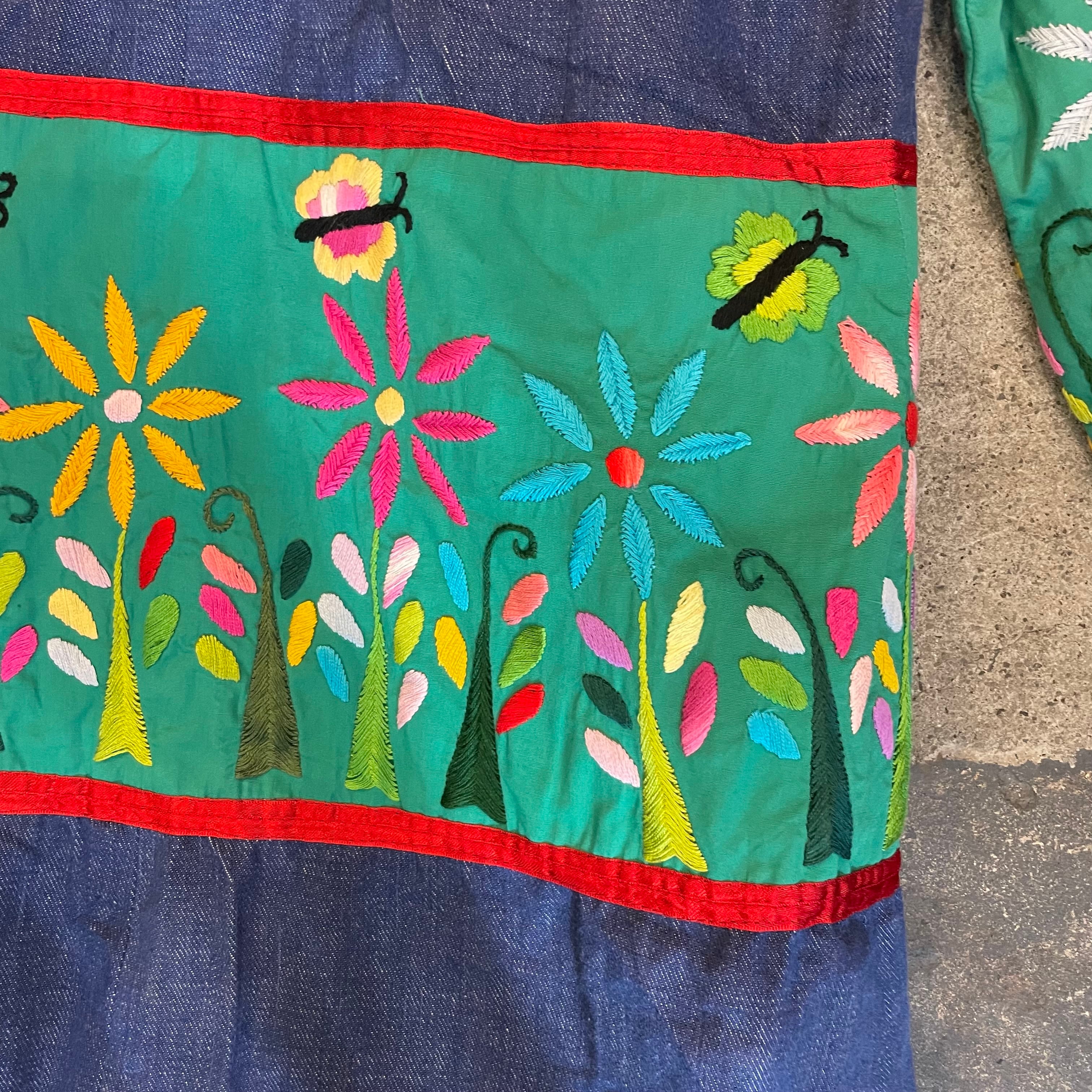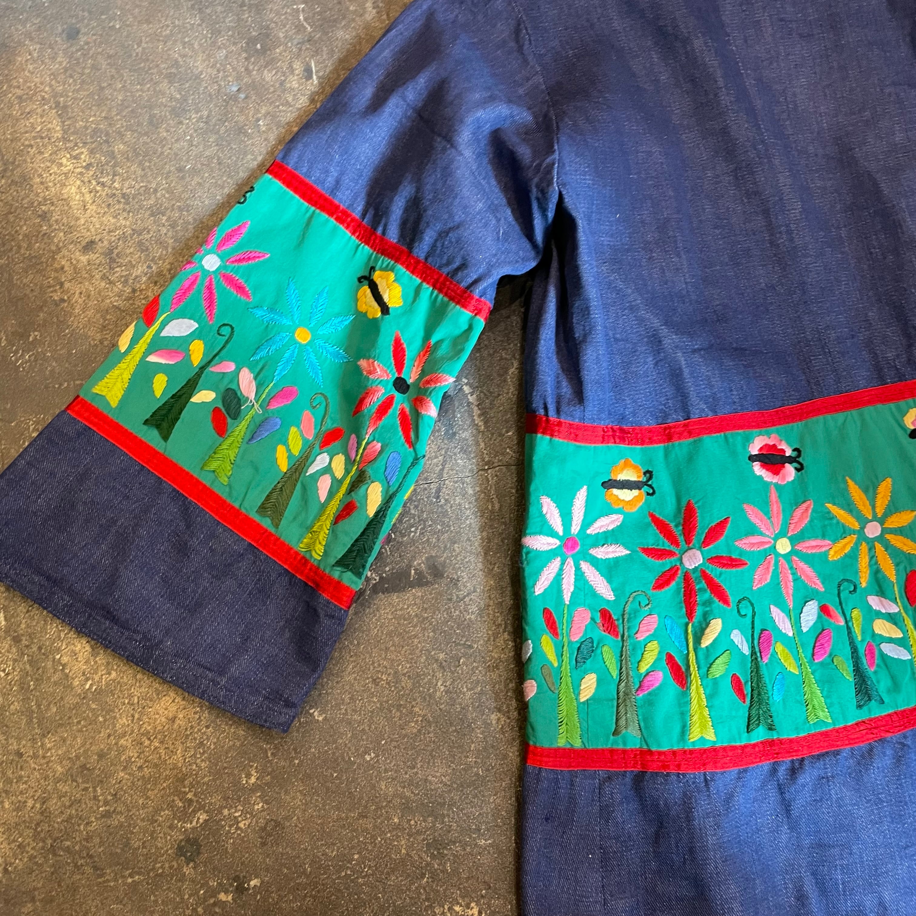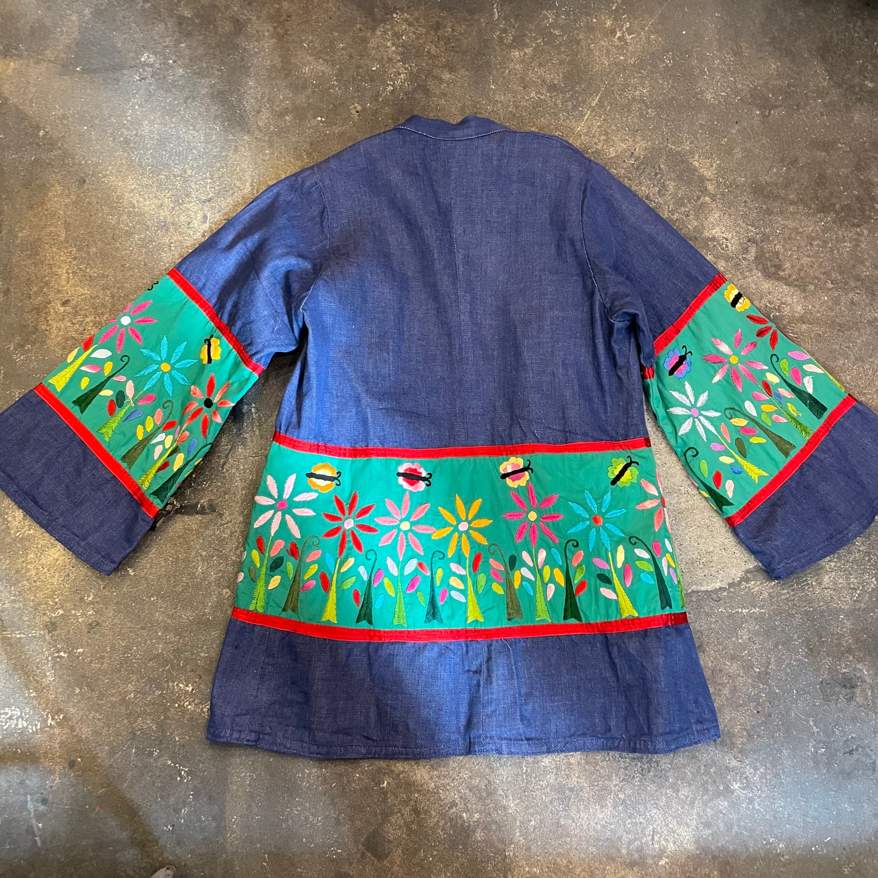 デニムの羽織に手刺繍の生地を切り替えで付けてある誰かの力作であろうジャケットです。