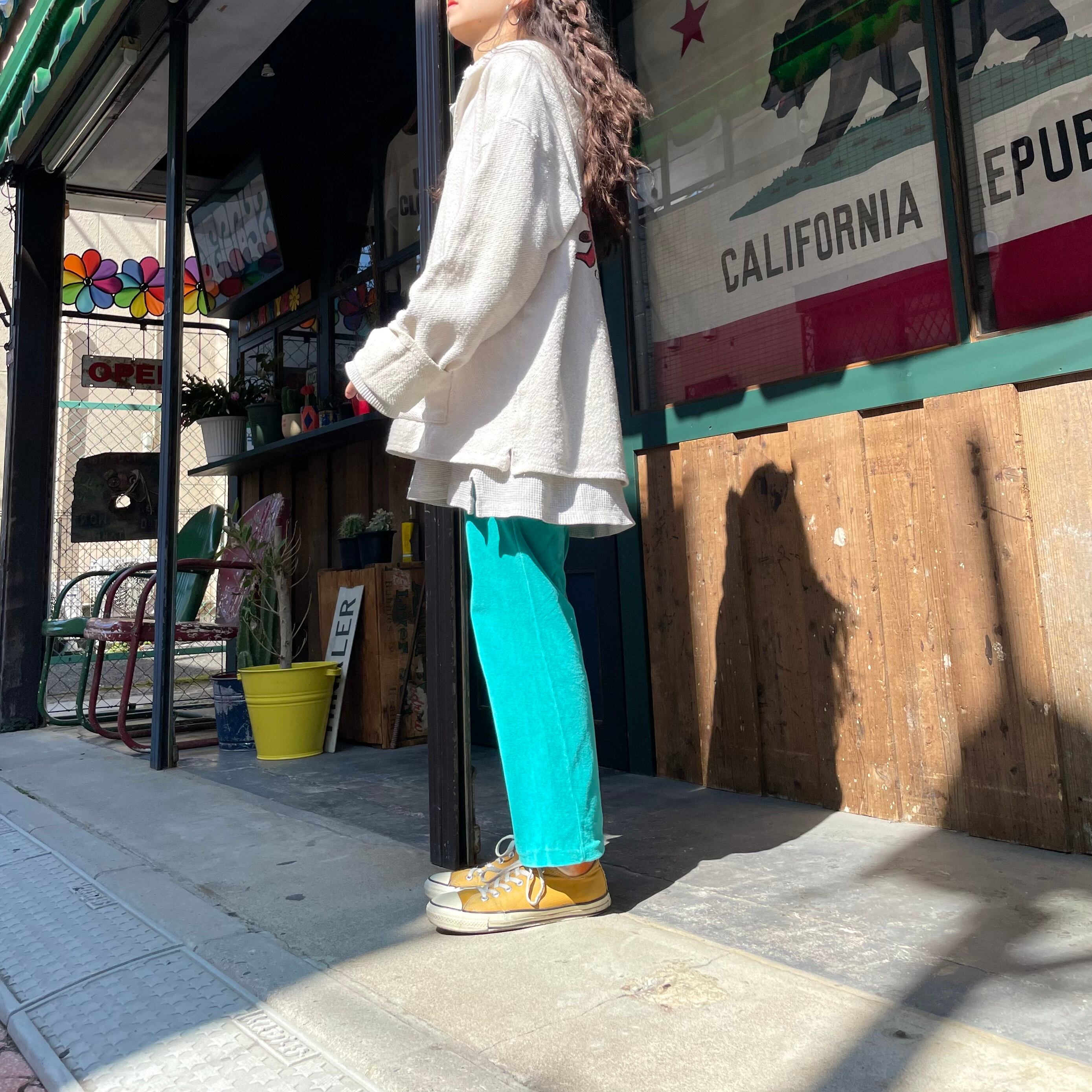 きれいなターコイズブルーがかわいいイージーパンツです。