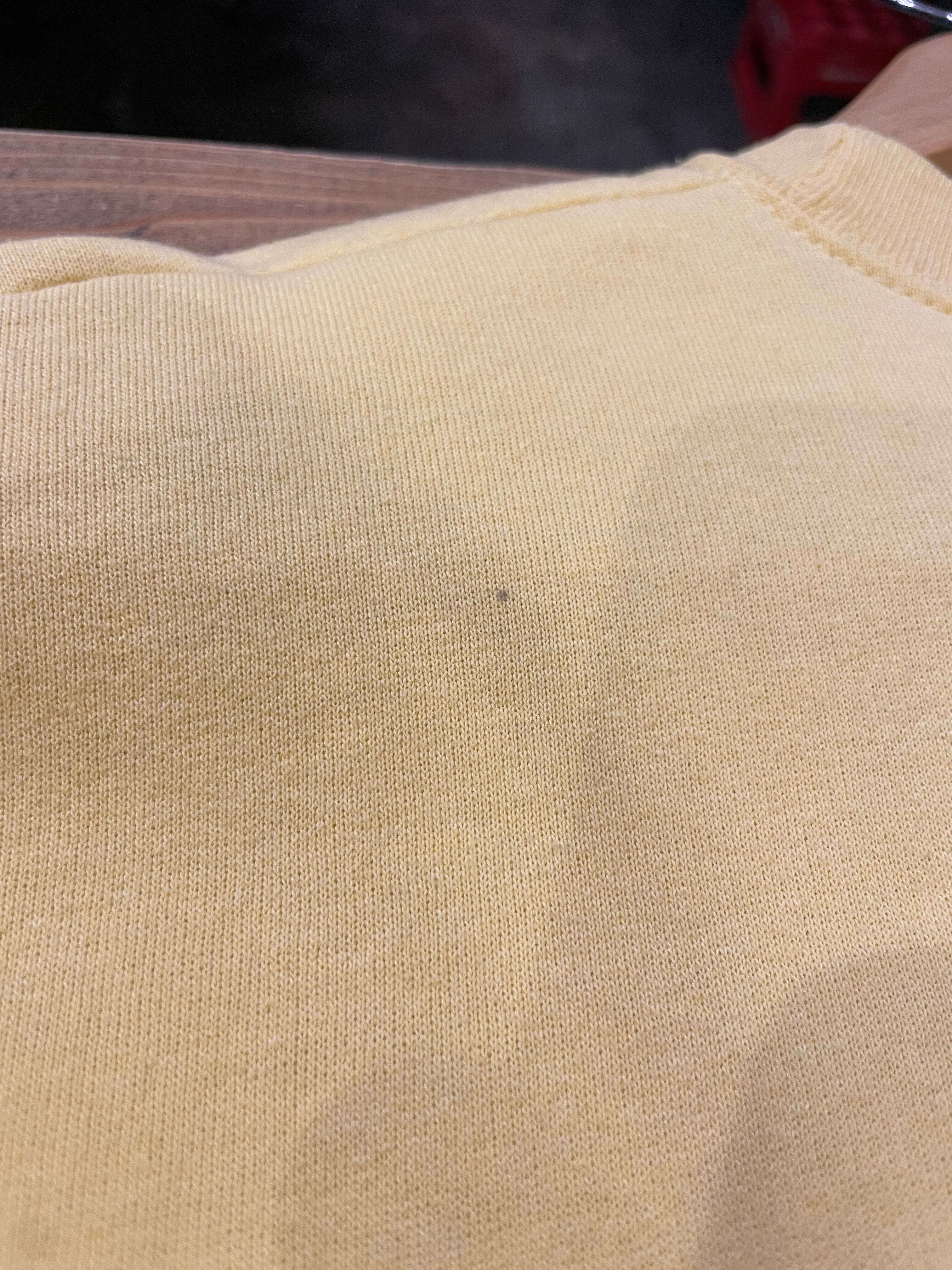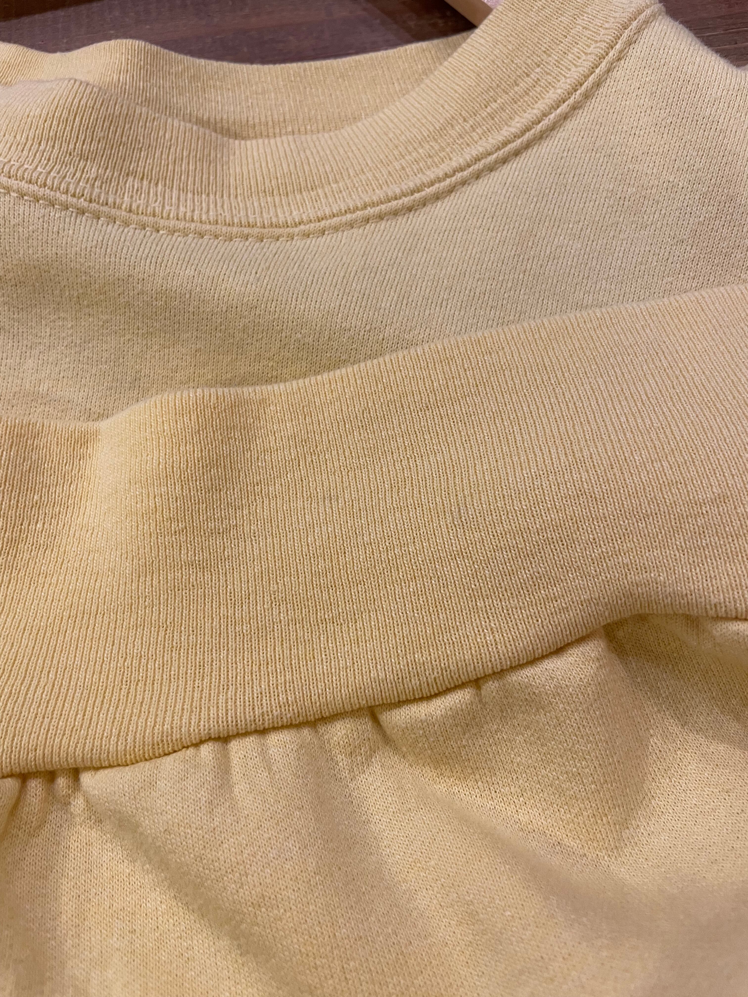 クリームイエロー地のボディがとても春らしい明るい色味ですし、ゆったり大きめなサイズ感もゆるくて良い感じです。