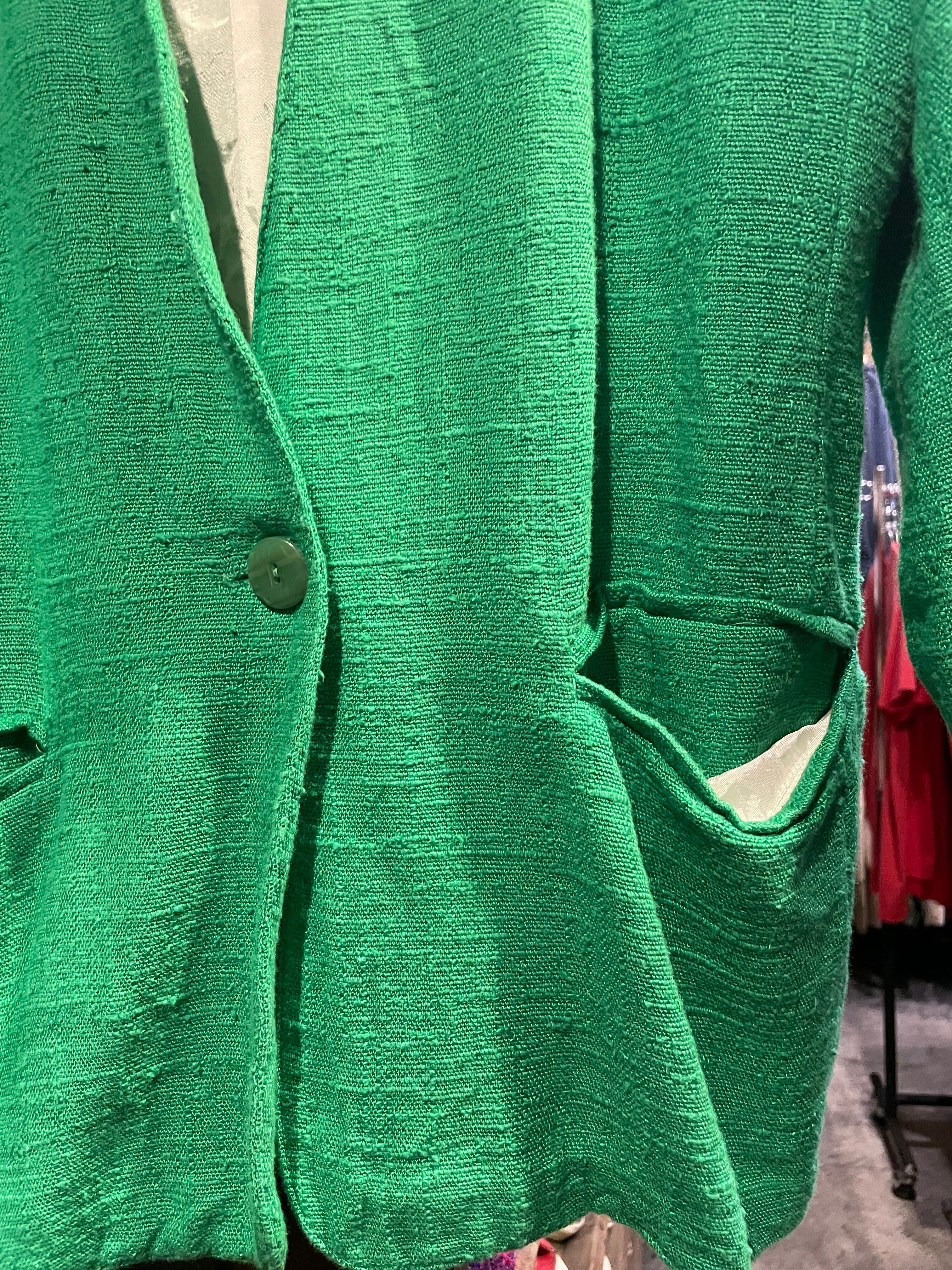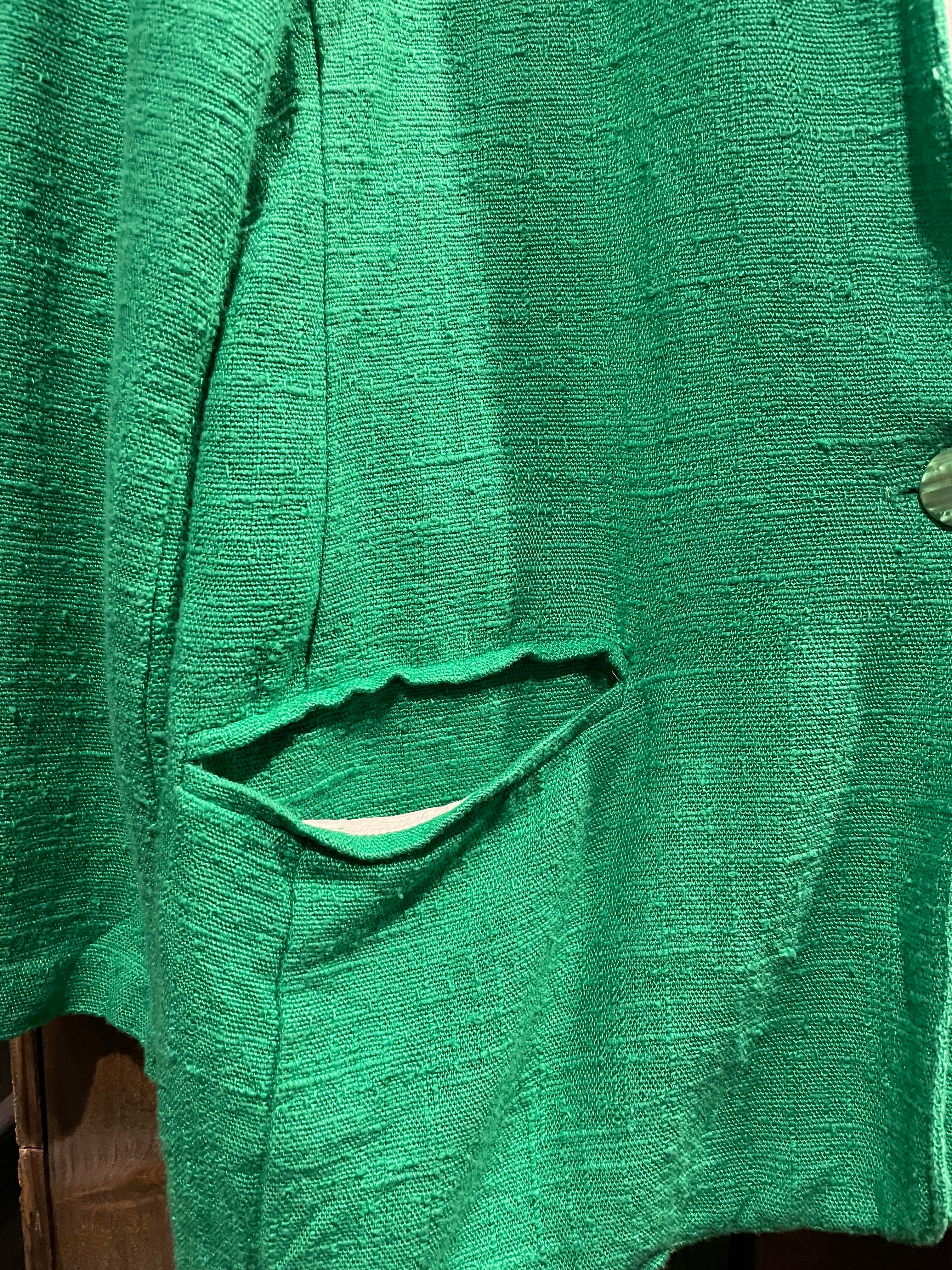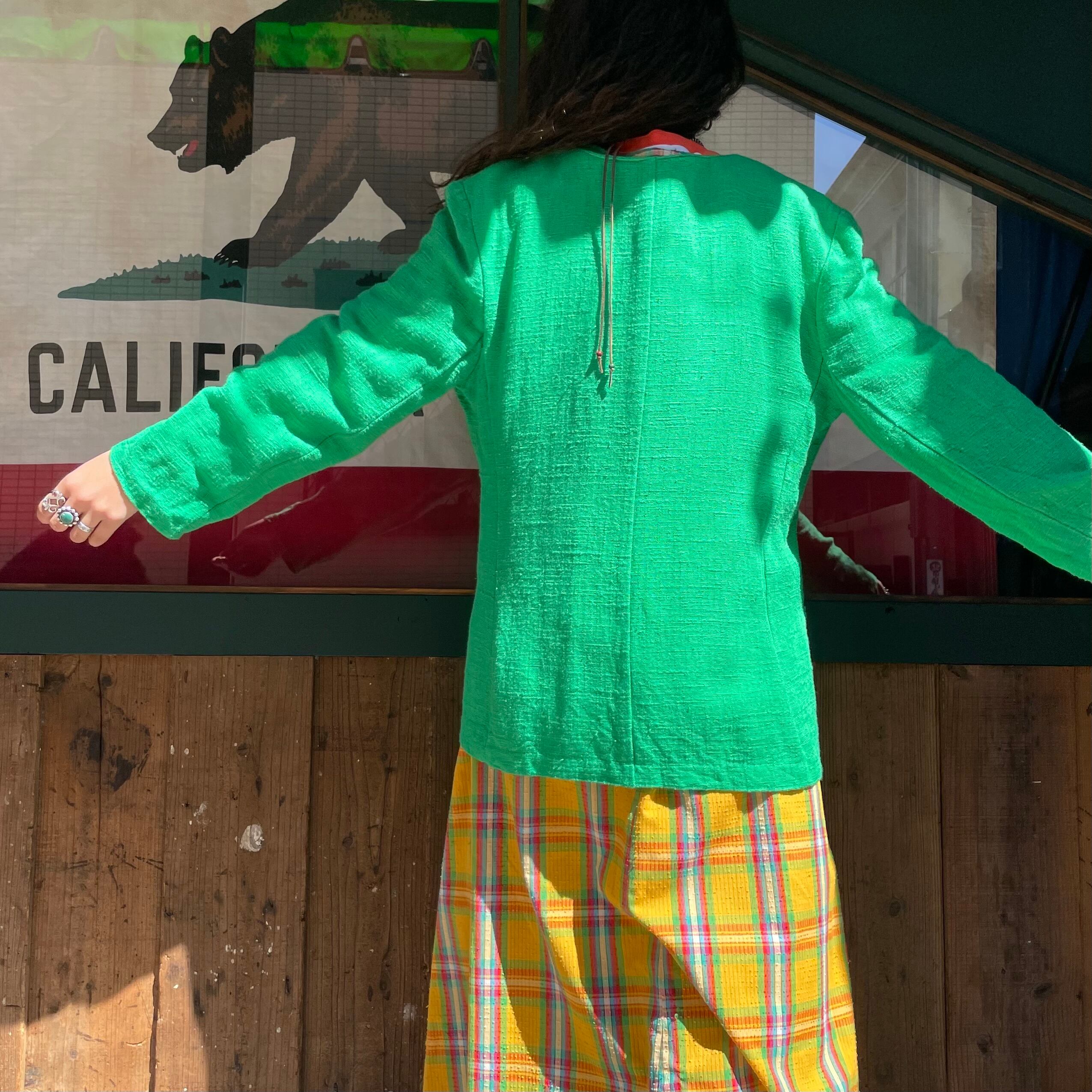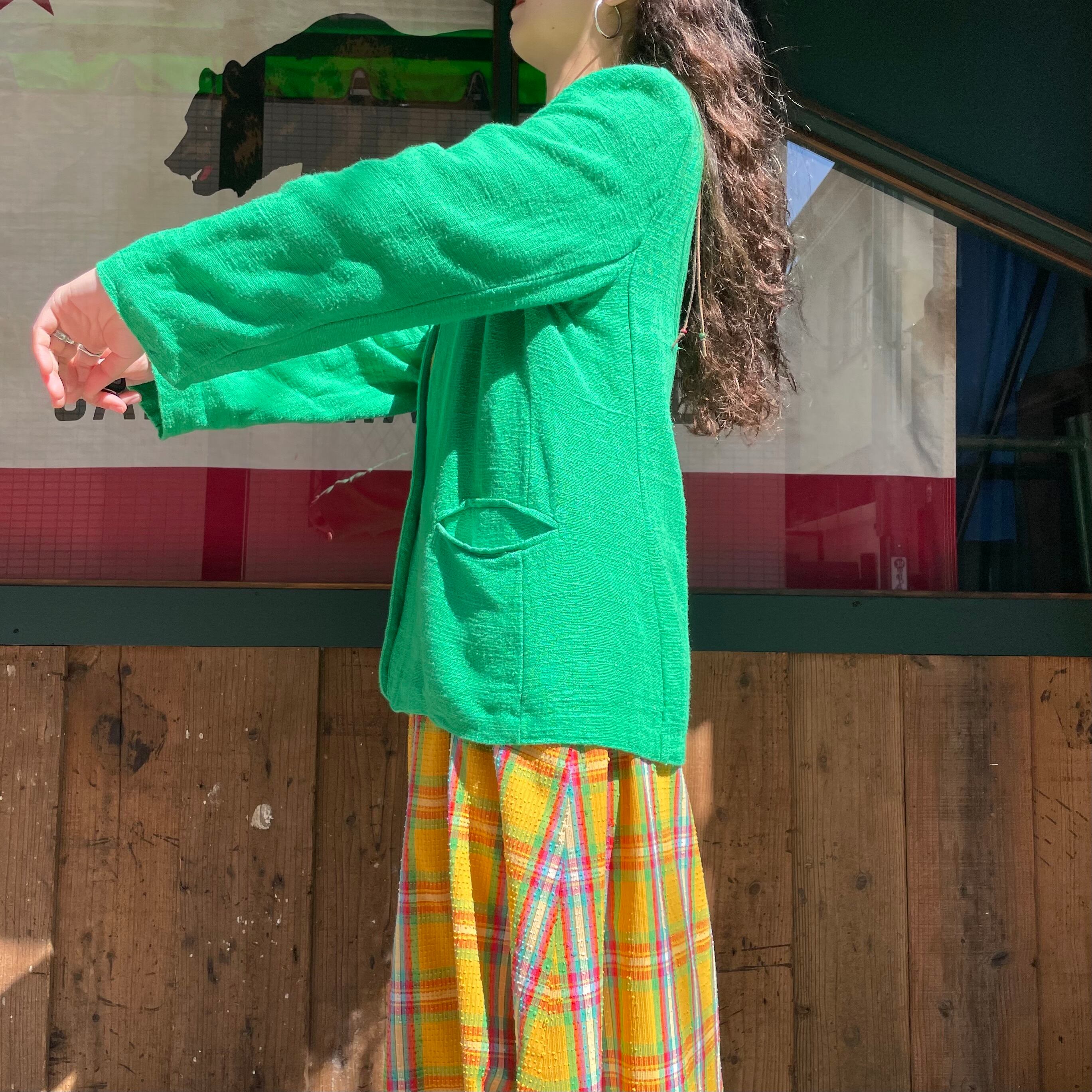 鮮やかな明るいグリーンがかわいいスプリングジャケットです。