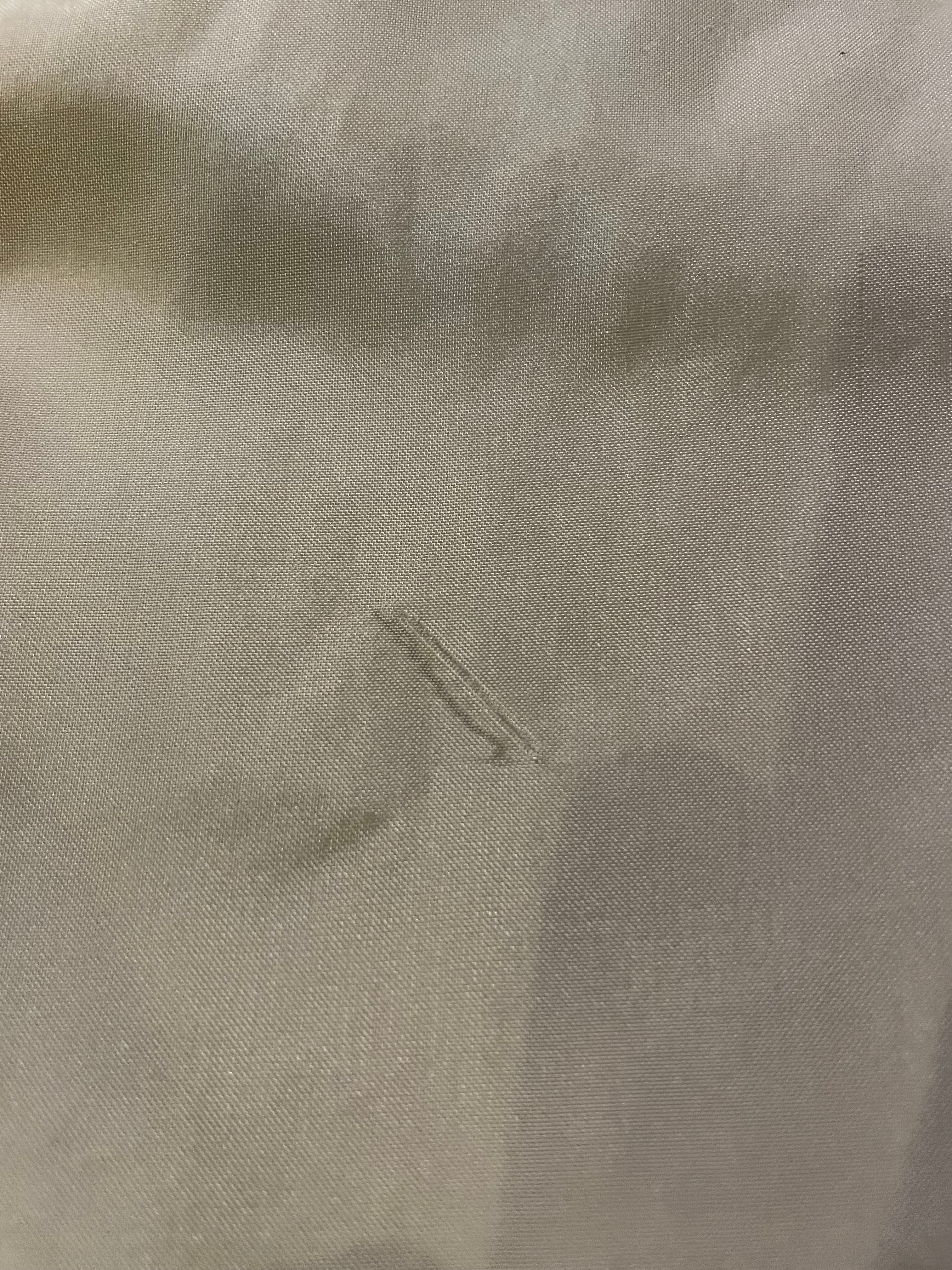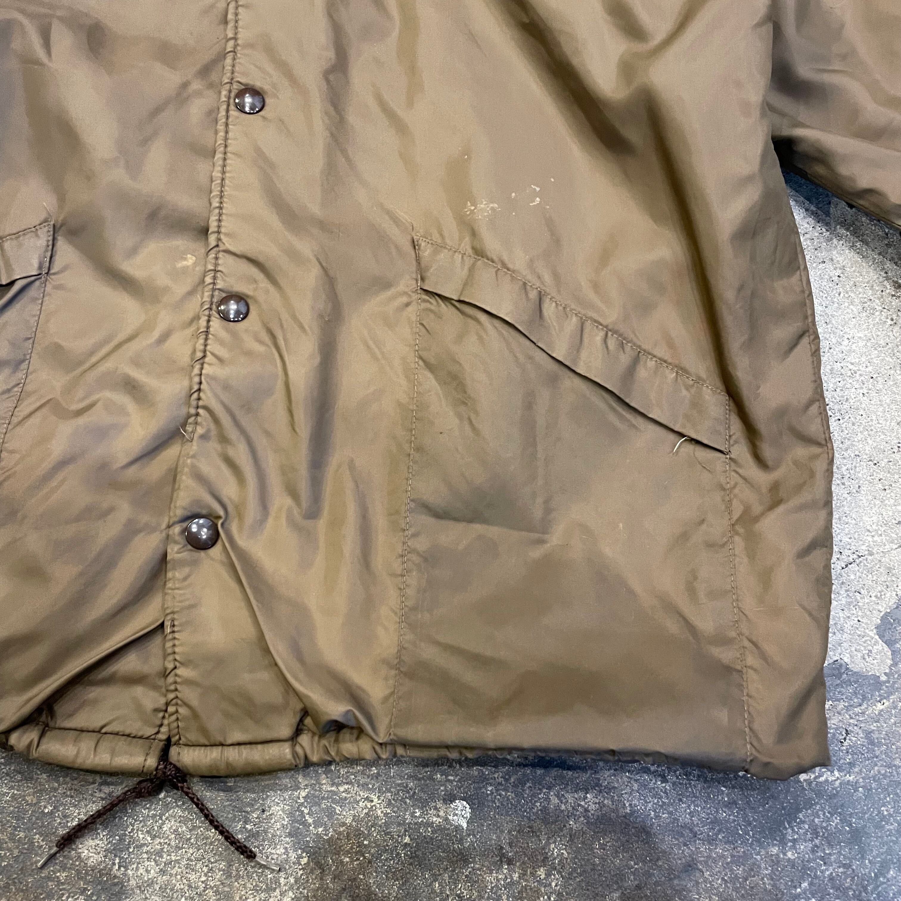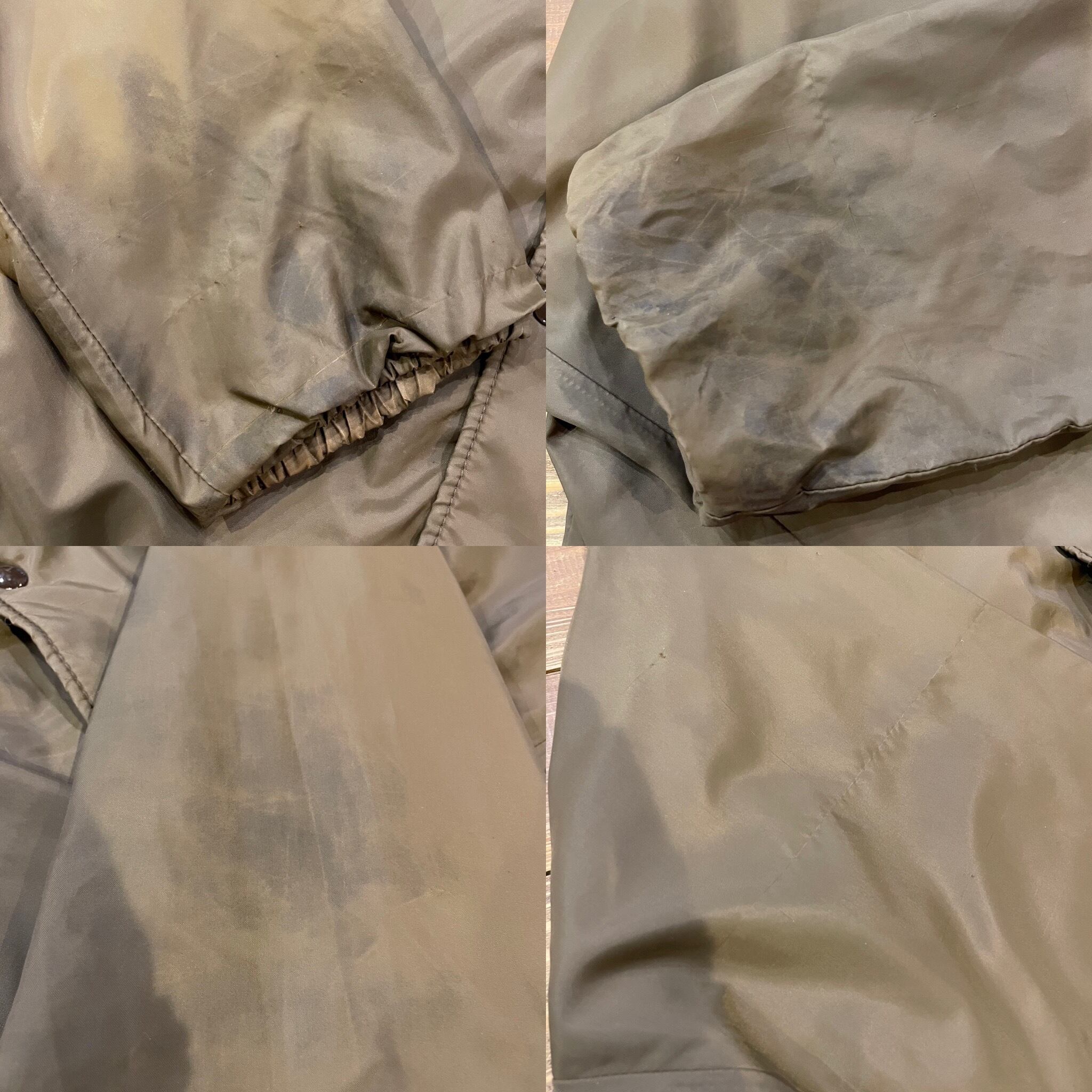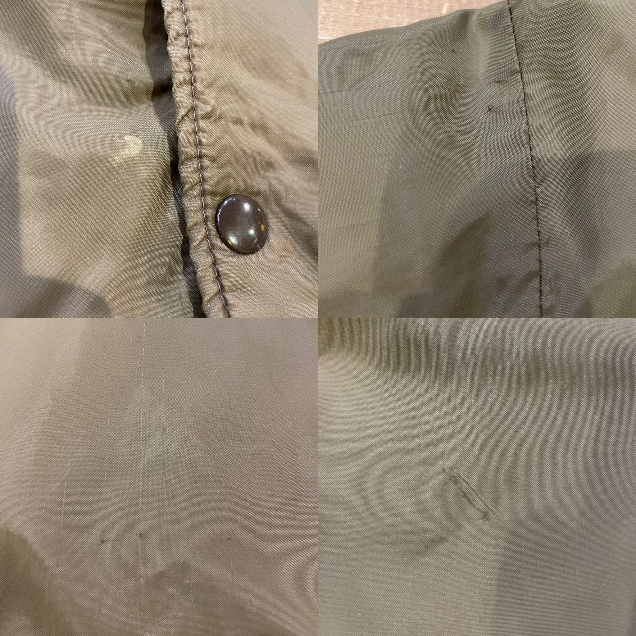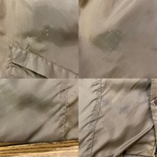 オイル汚れのようなシミ多数、ツレ多数袖口のゴムの伸び等かなりダメージのある商品です。