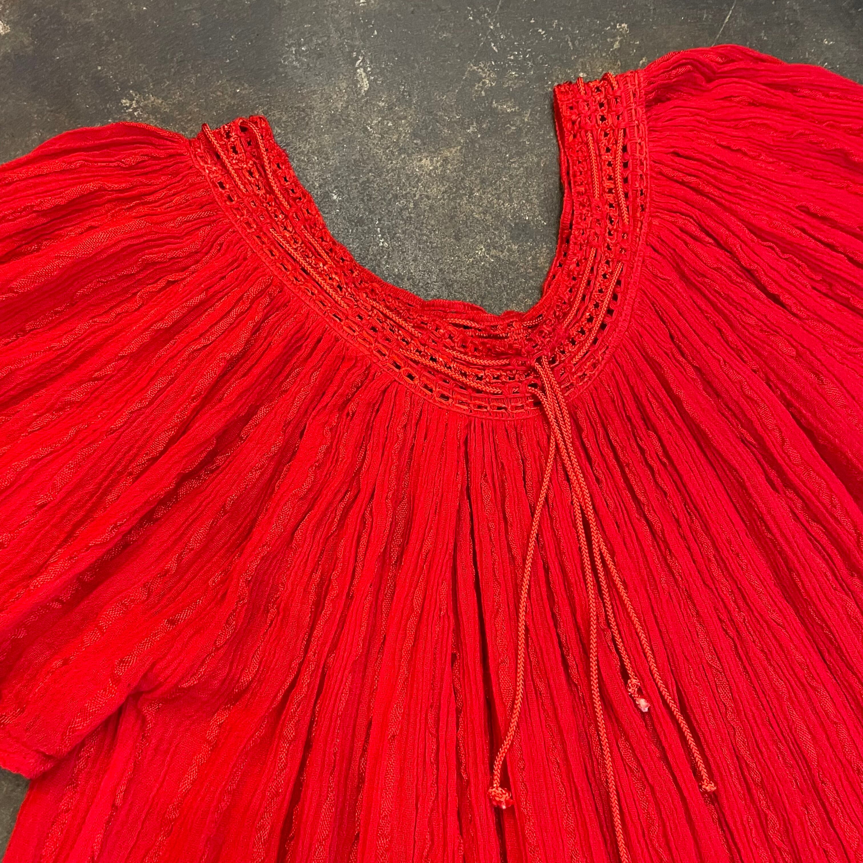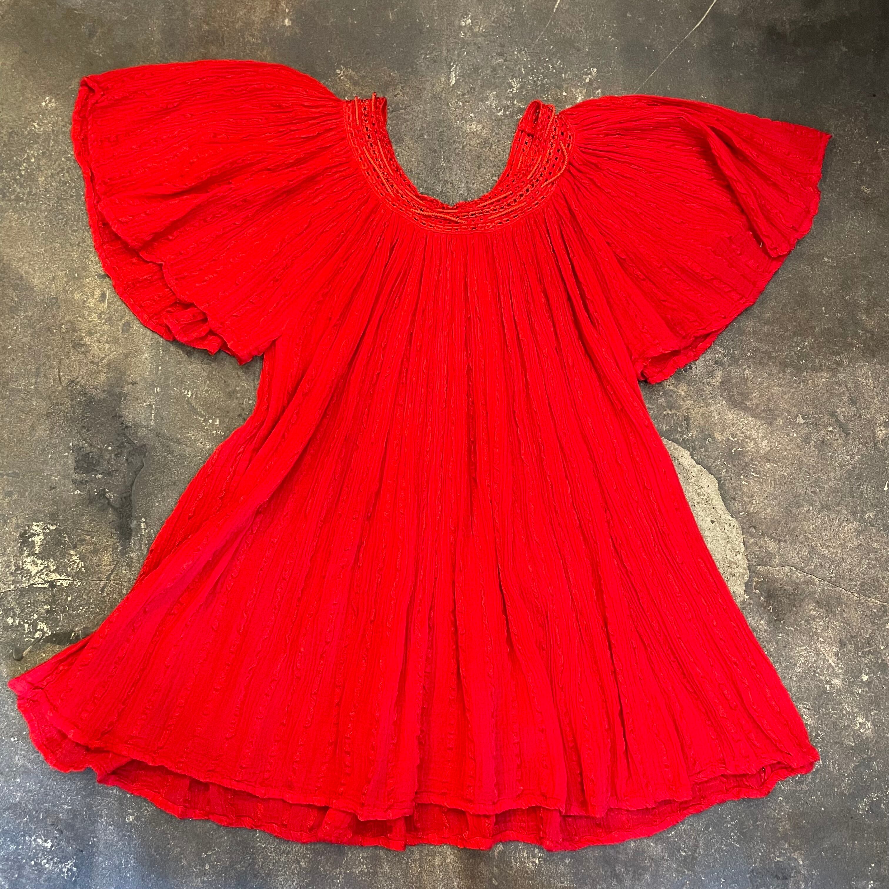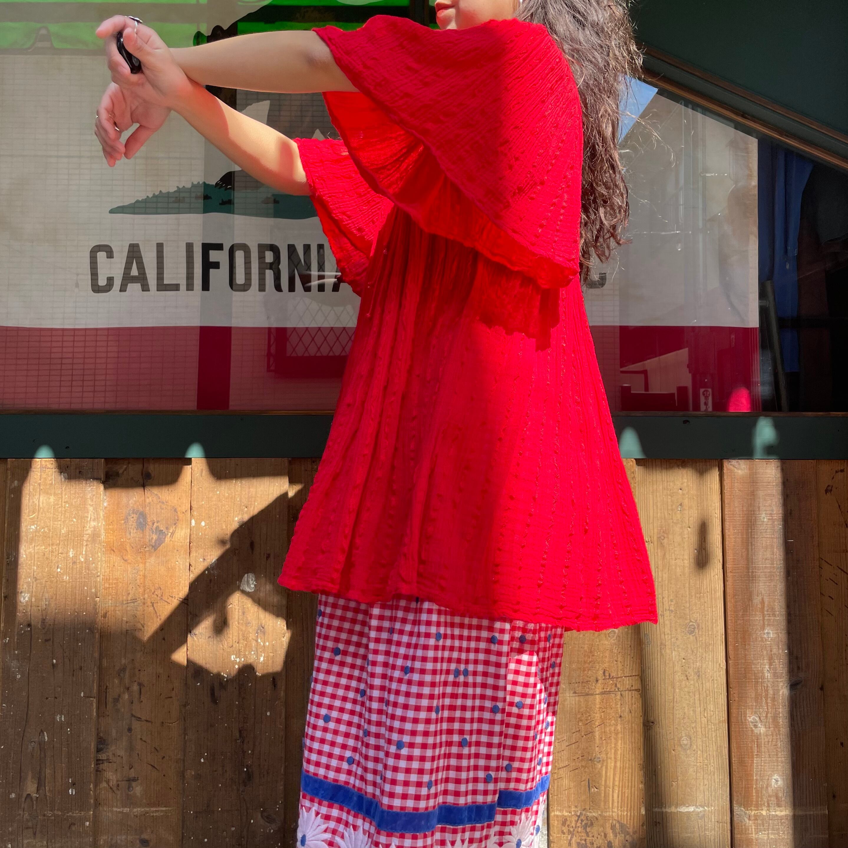 コットンレーヨンの軽やかでさらっとした生地感が素敵なチュニックです。潔く真っ赤なところもかわいいポイントですね。