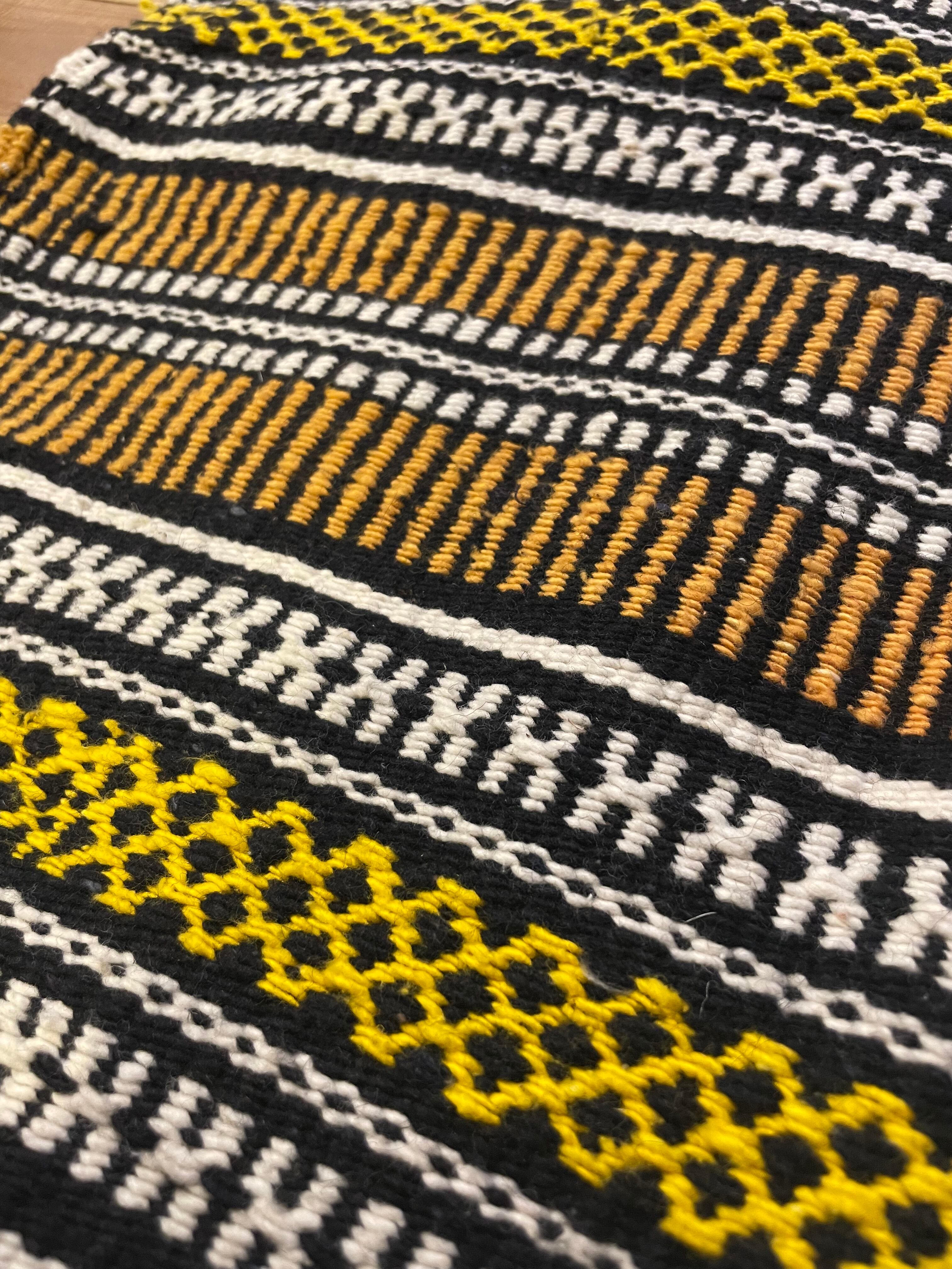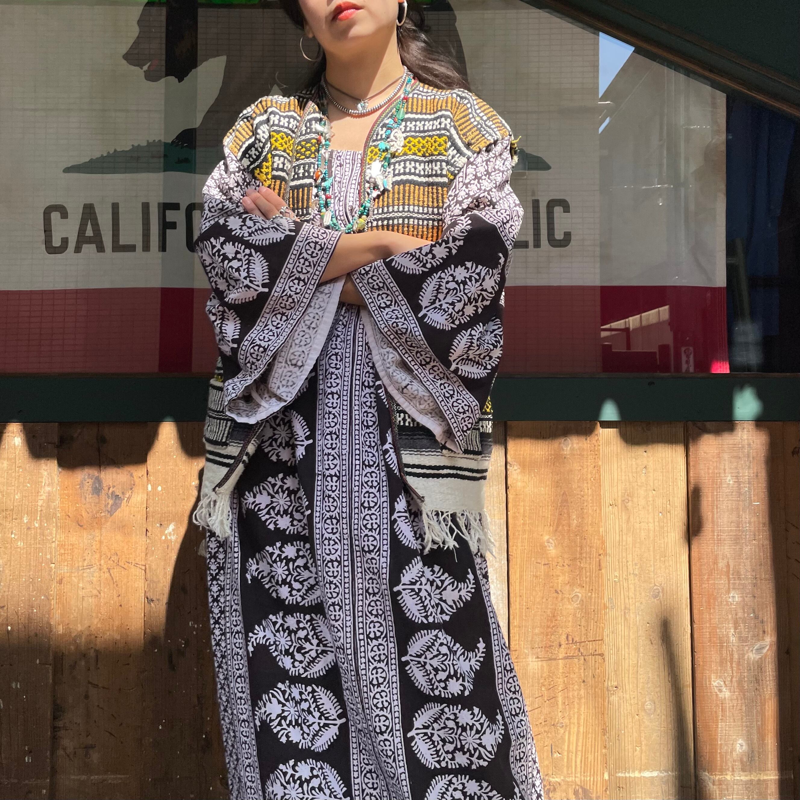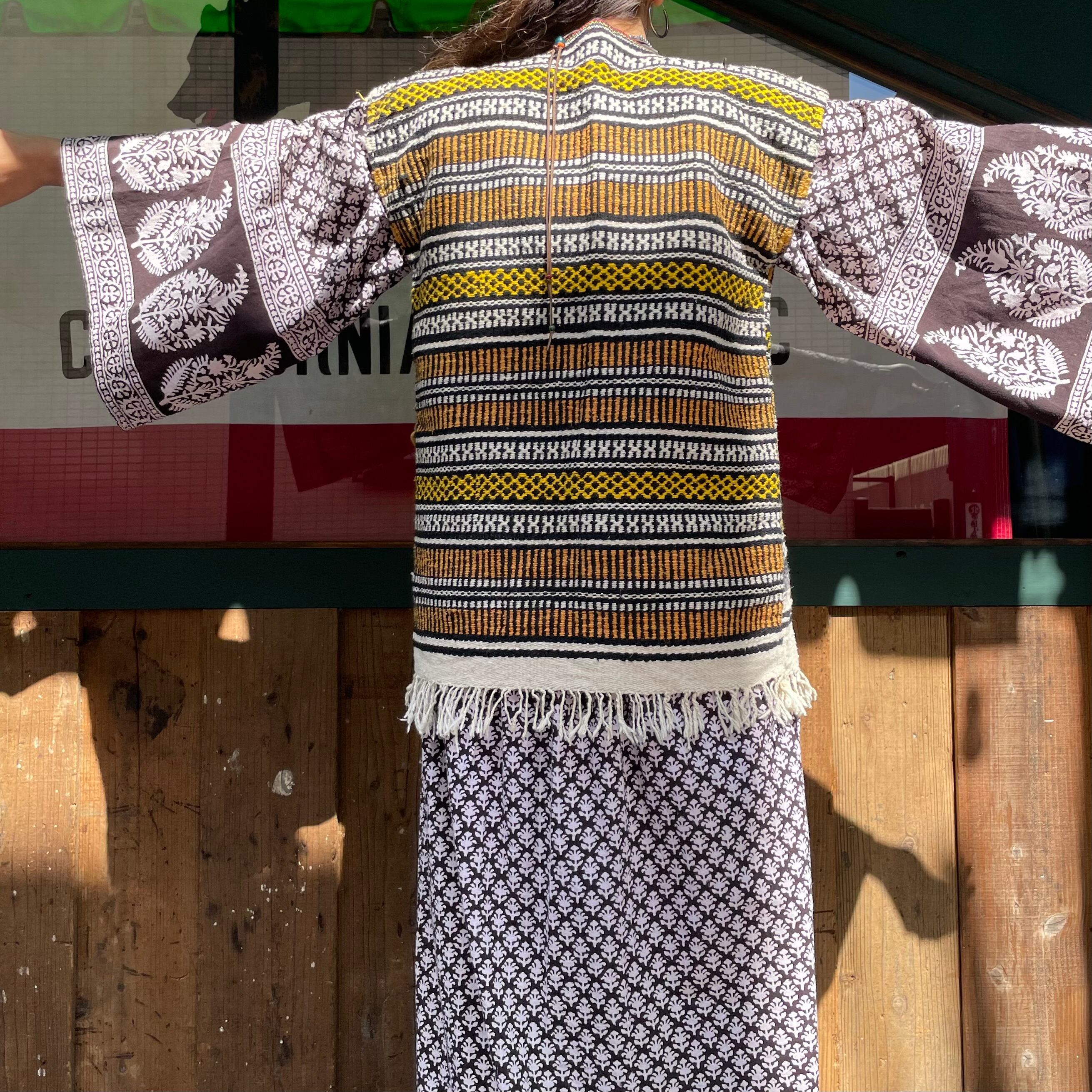 陽気な雰囲気がかわいいメキシカンラグのベストです。ややコンパクトめな女性が着やすいサイズ感だと思います。