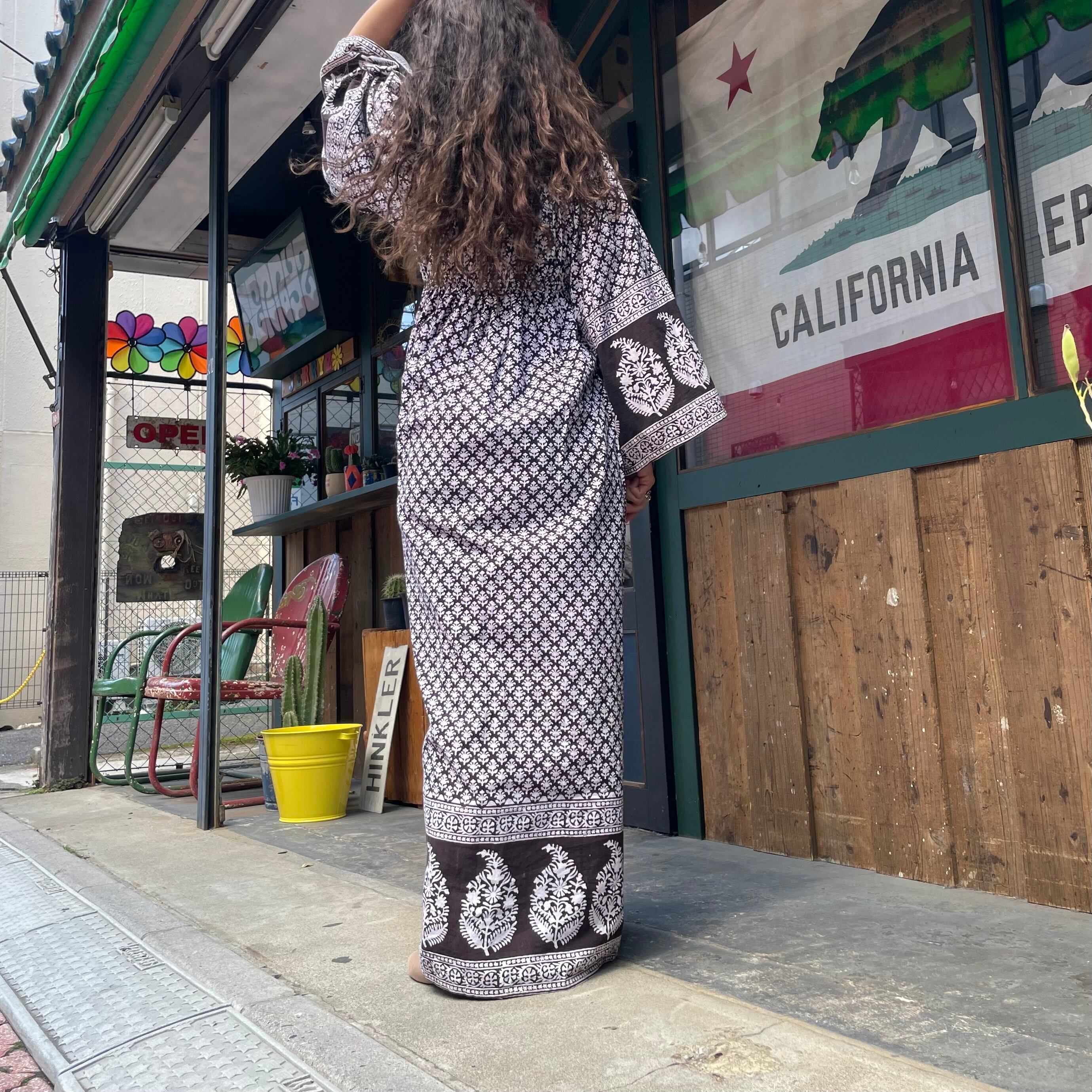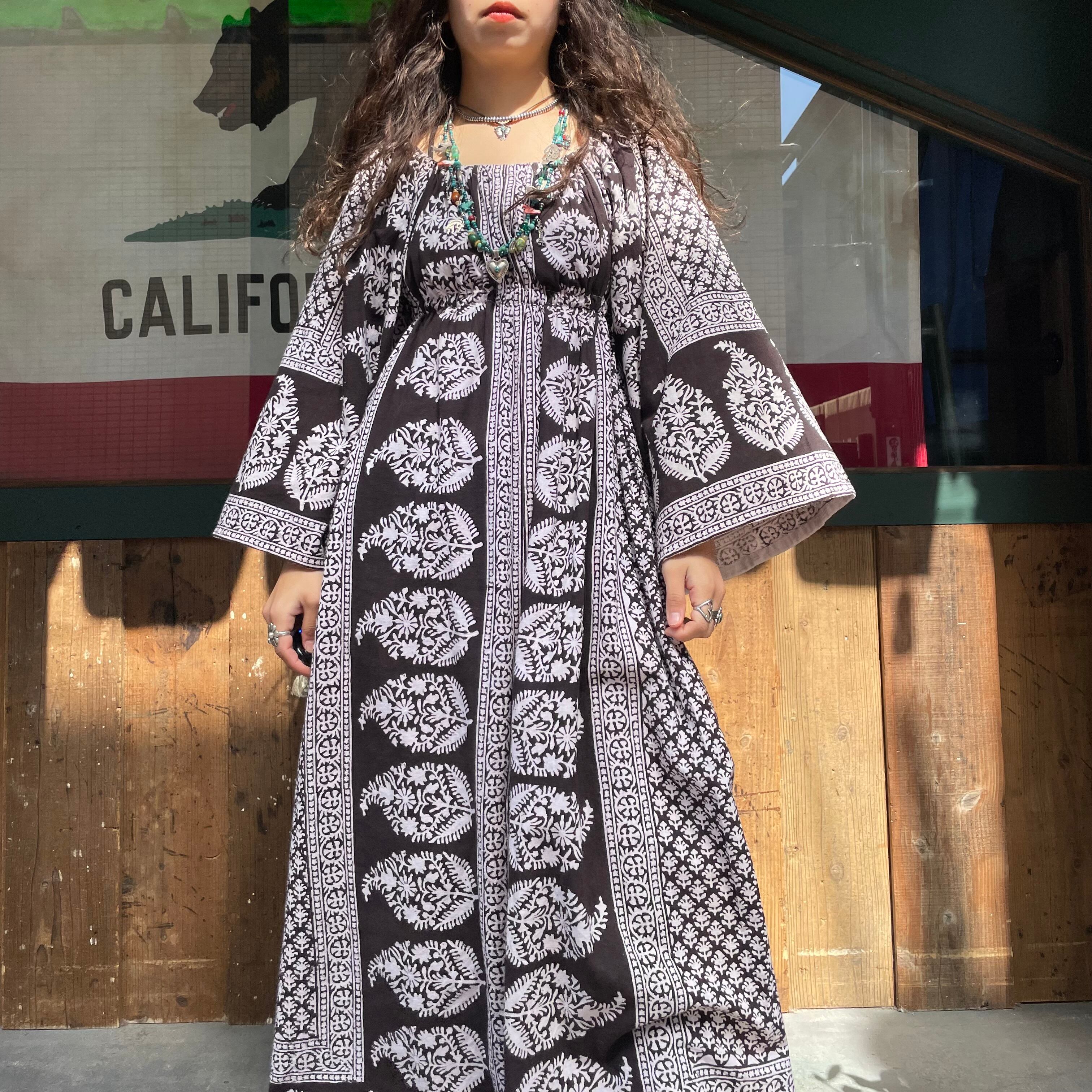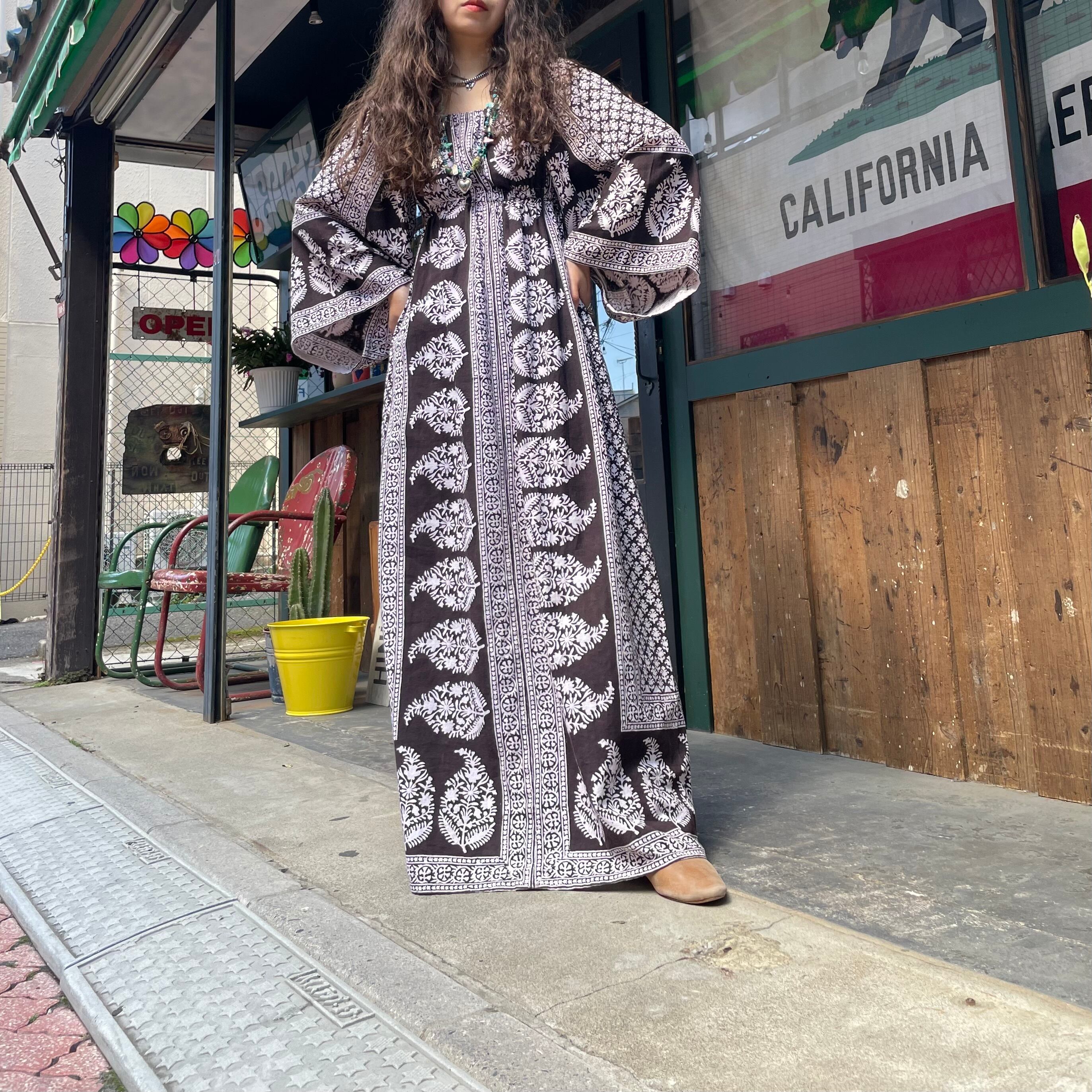 ブラックプリントがかわいい60〜70年代頃のインド製のワンピースです。